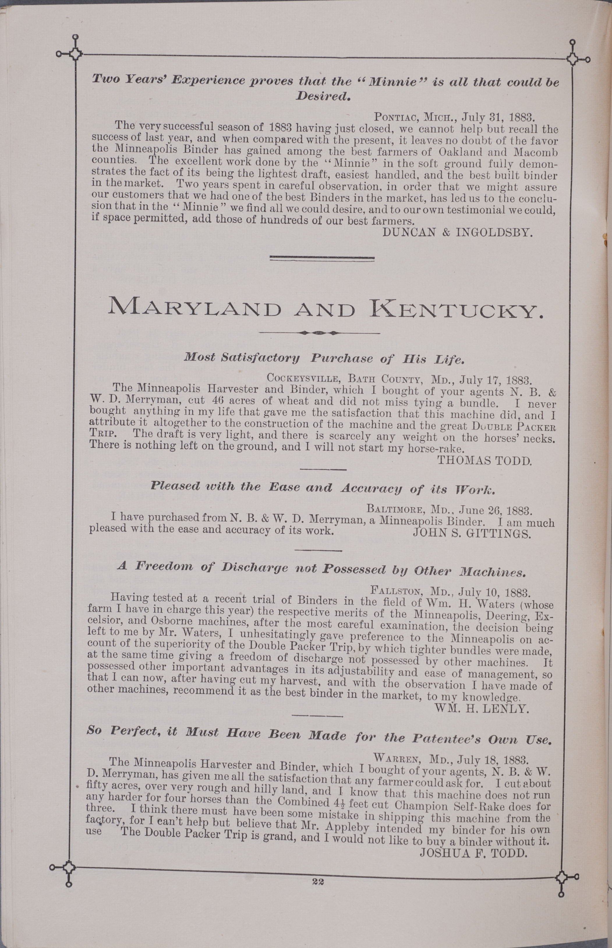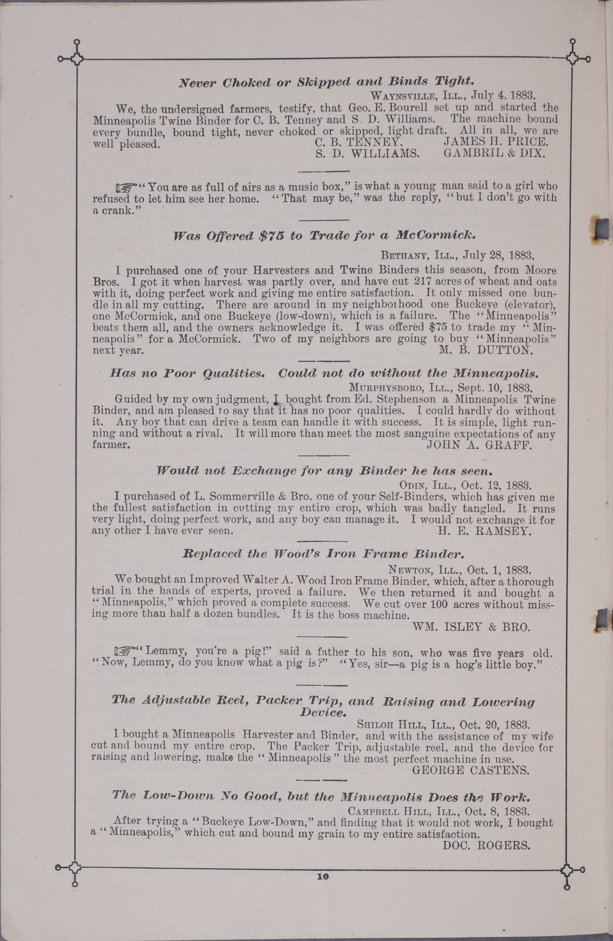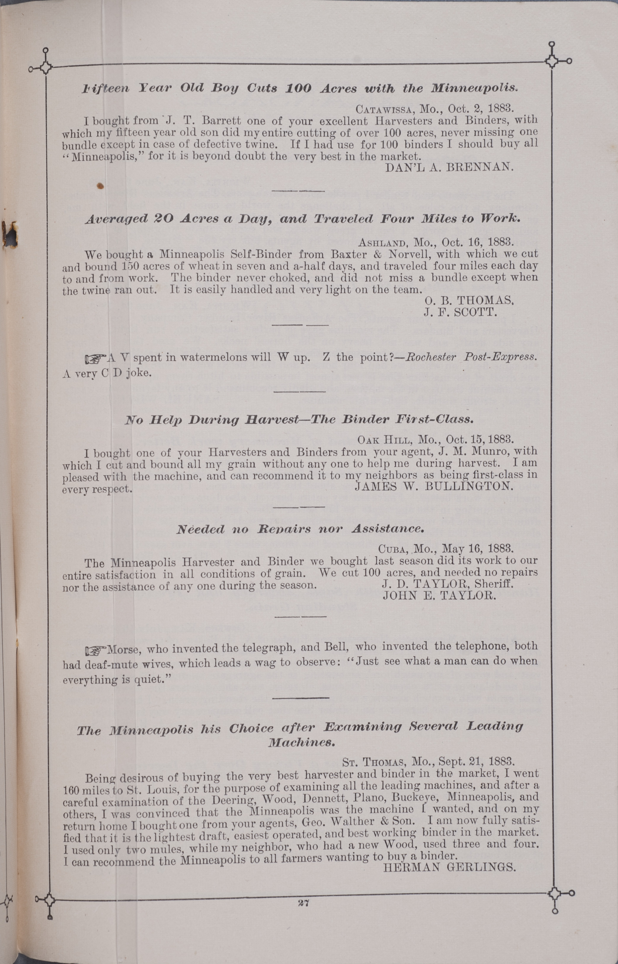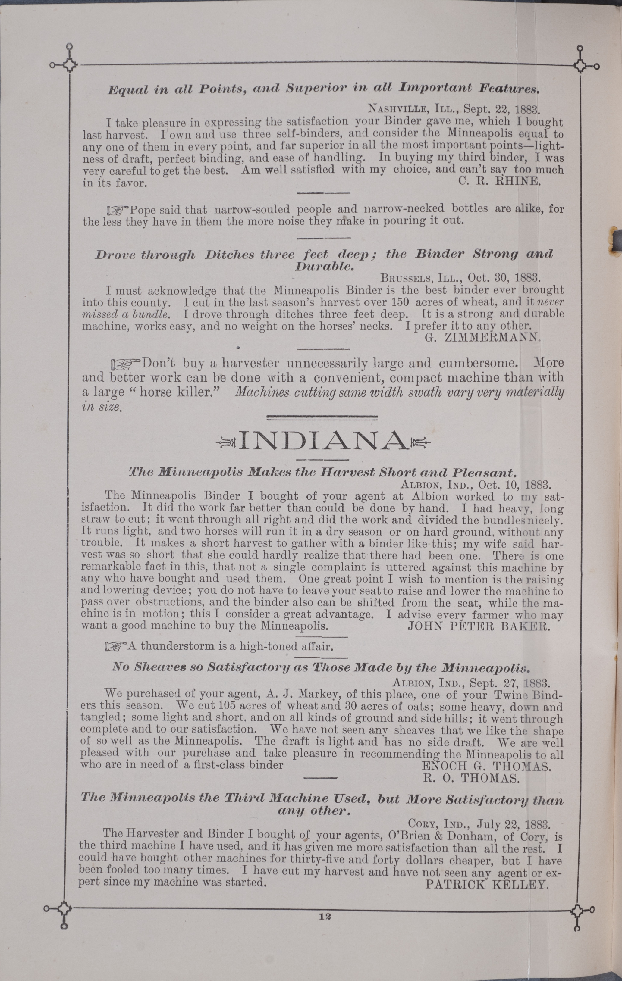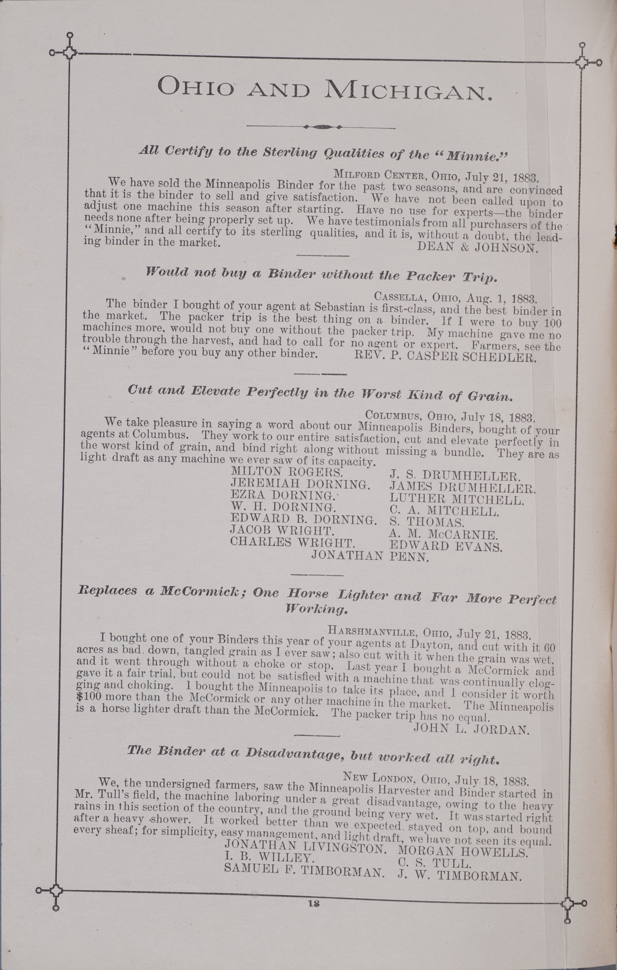 - Minneapolis Harvester Works 1884 catalog