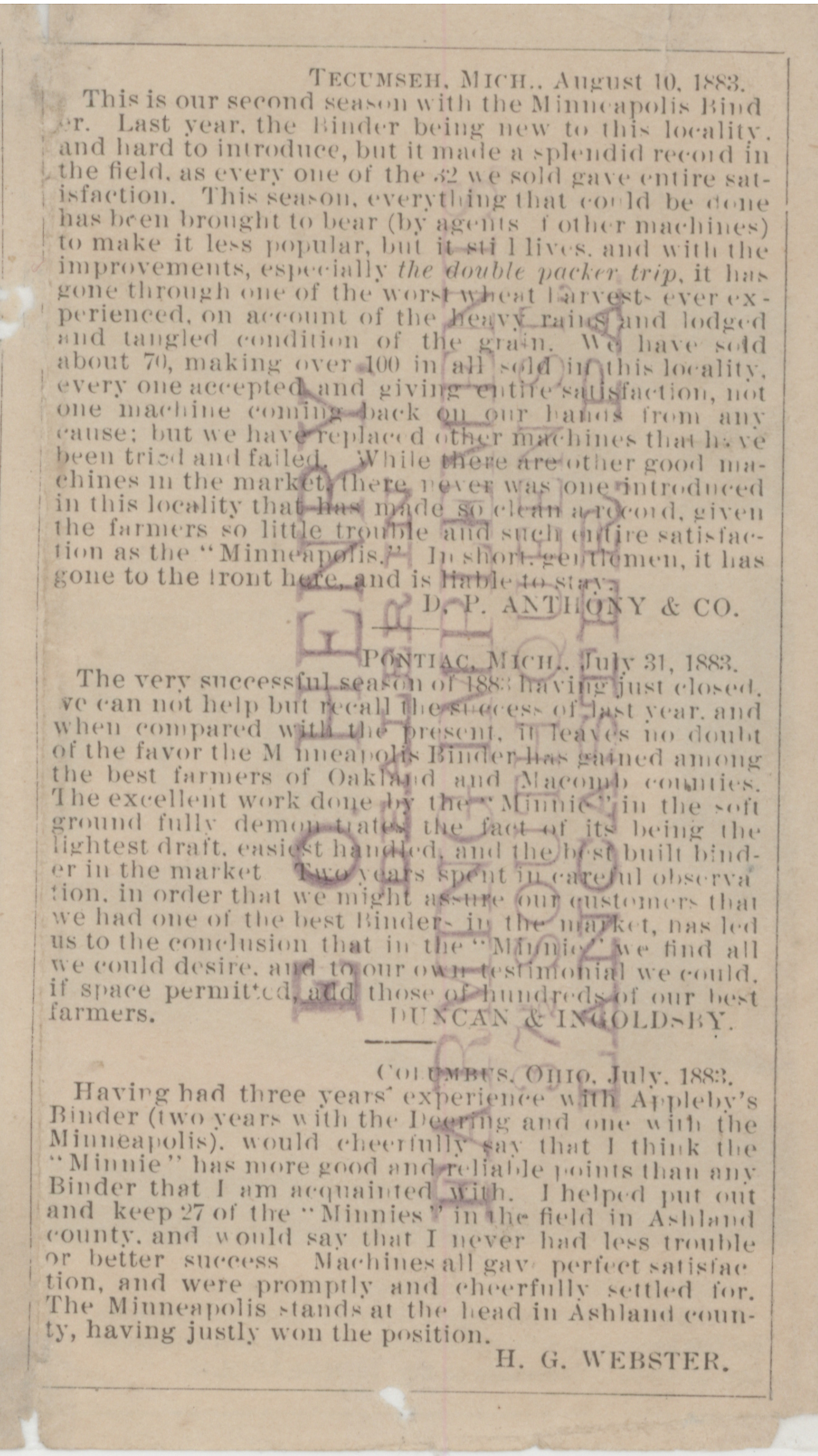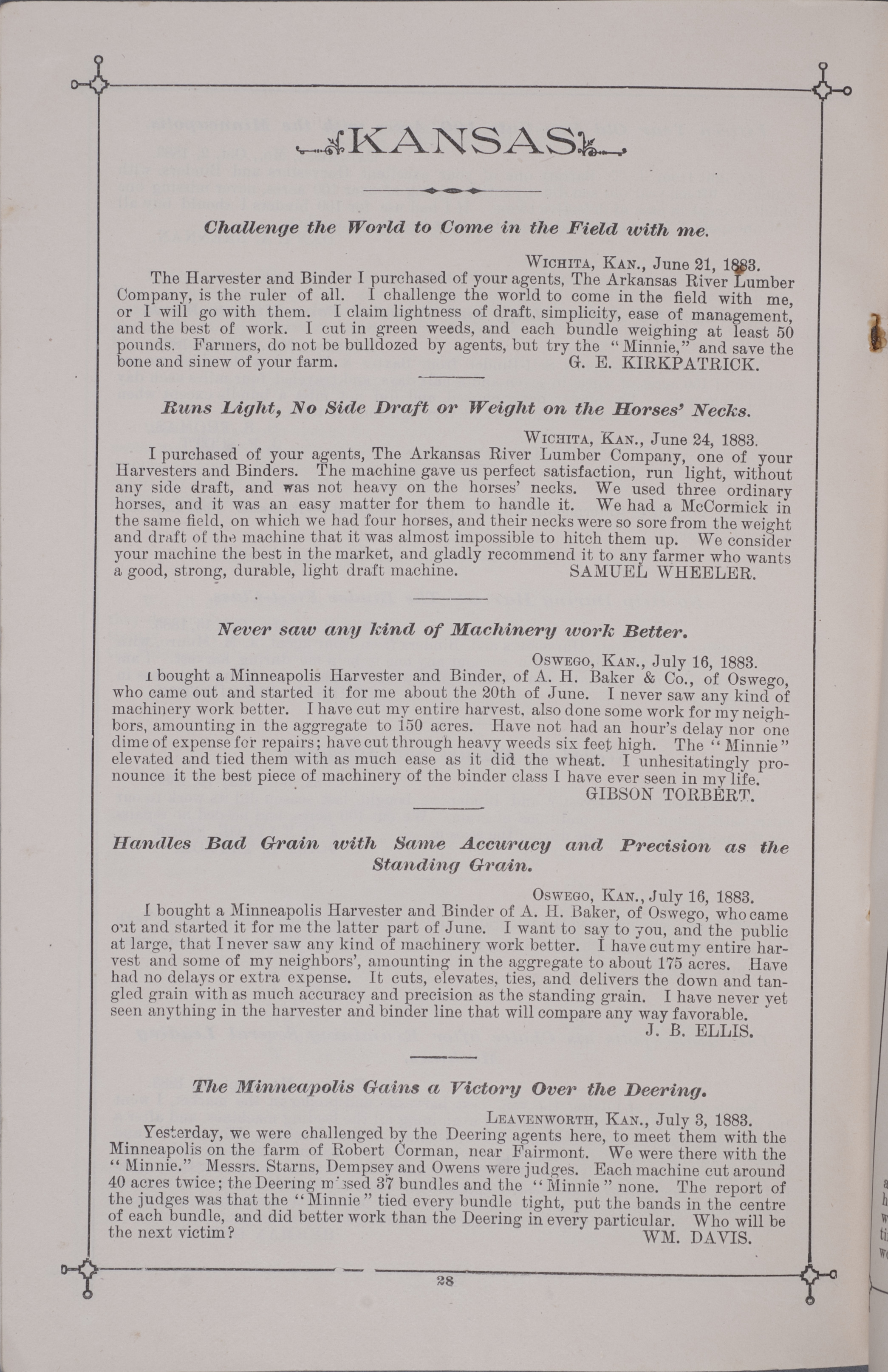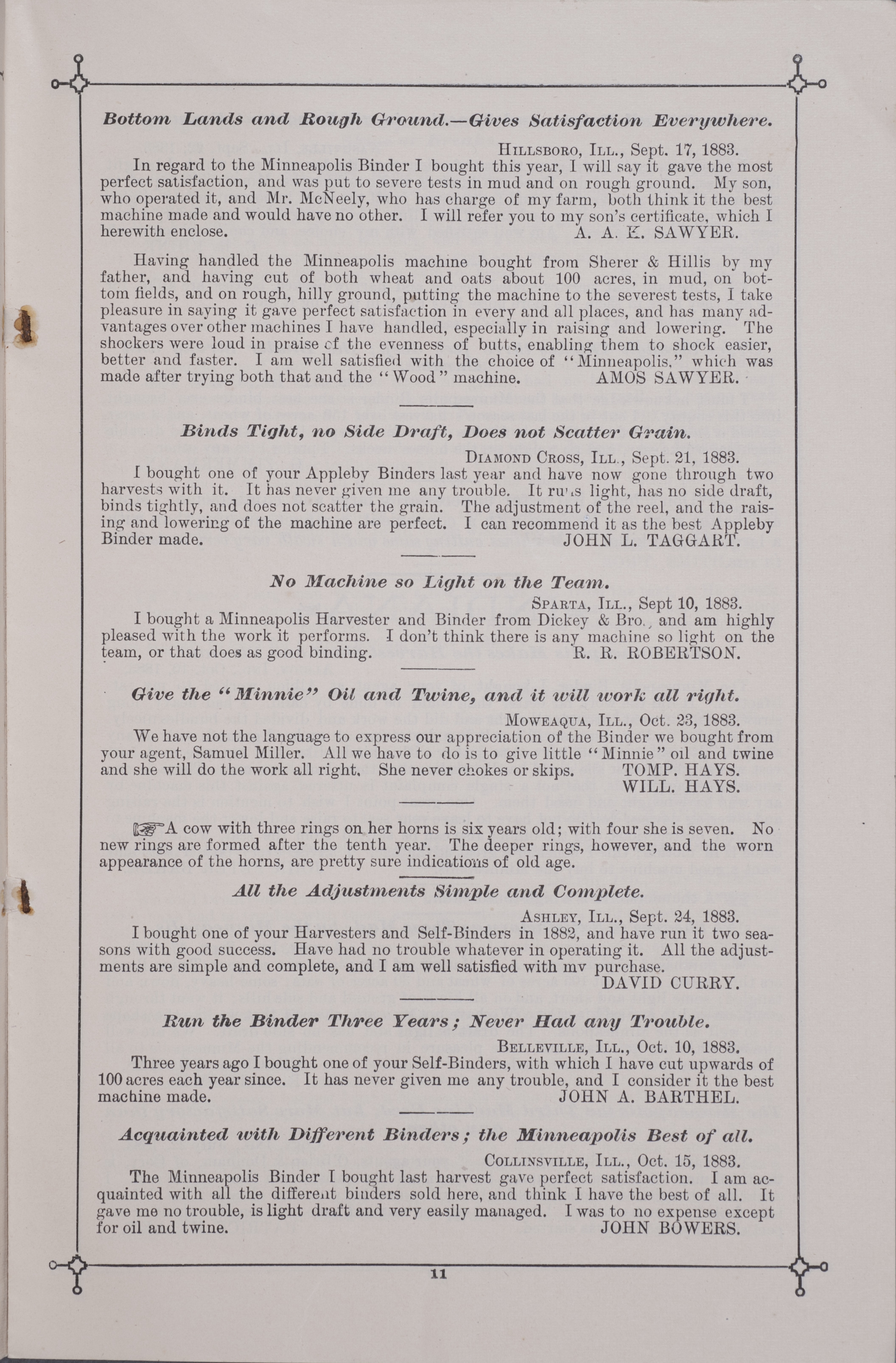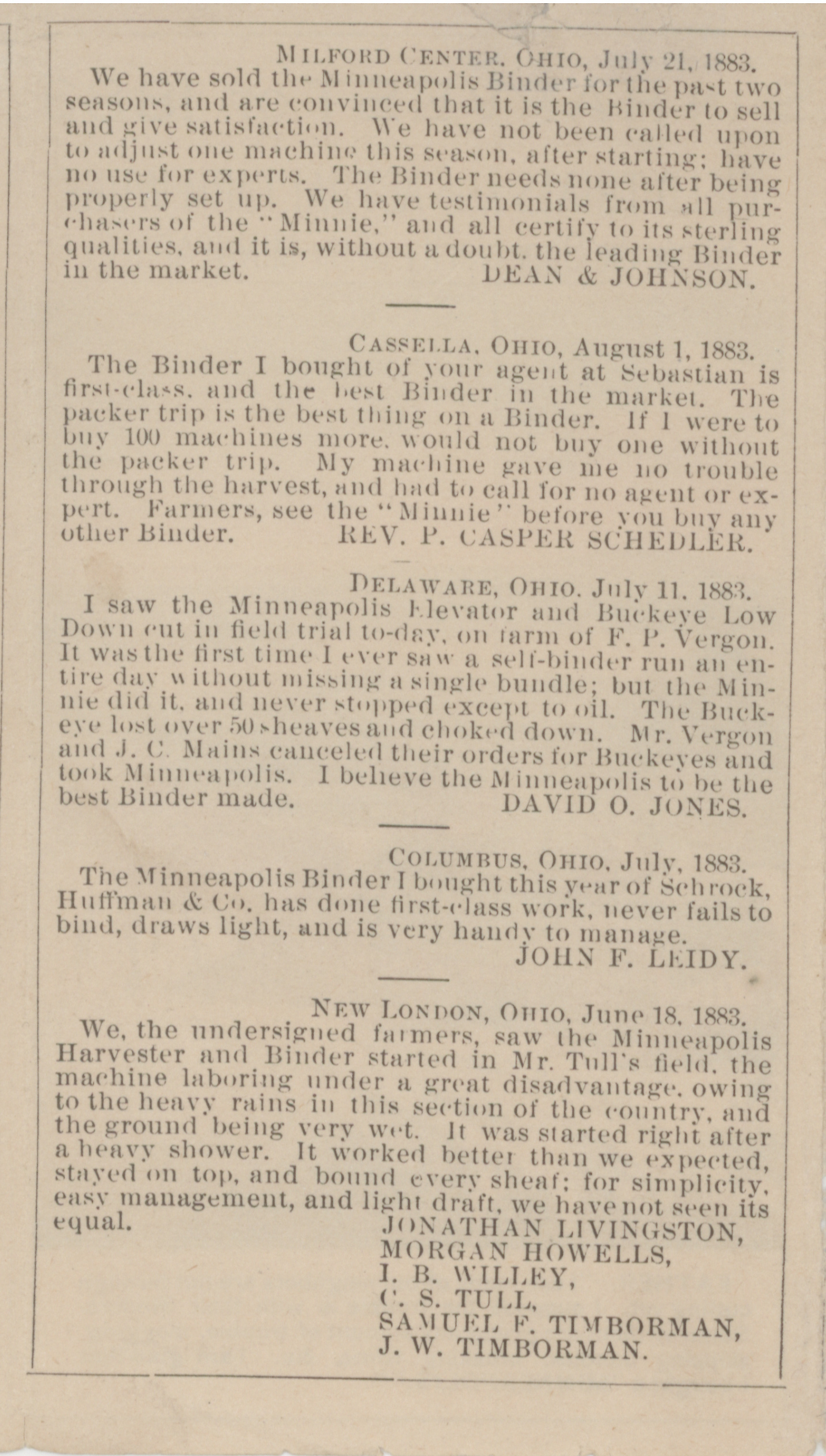 - "Minneapolis Harvester Works 1884 catalog", Agricultural Machinery Literature Collection, Iowa State University Library Digital Collections