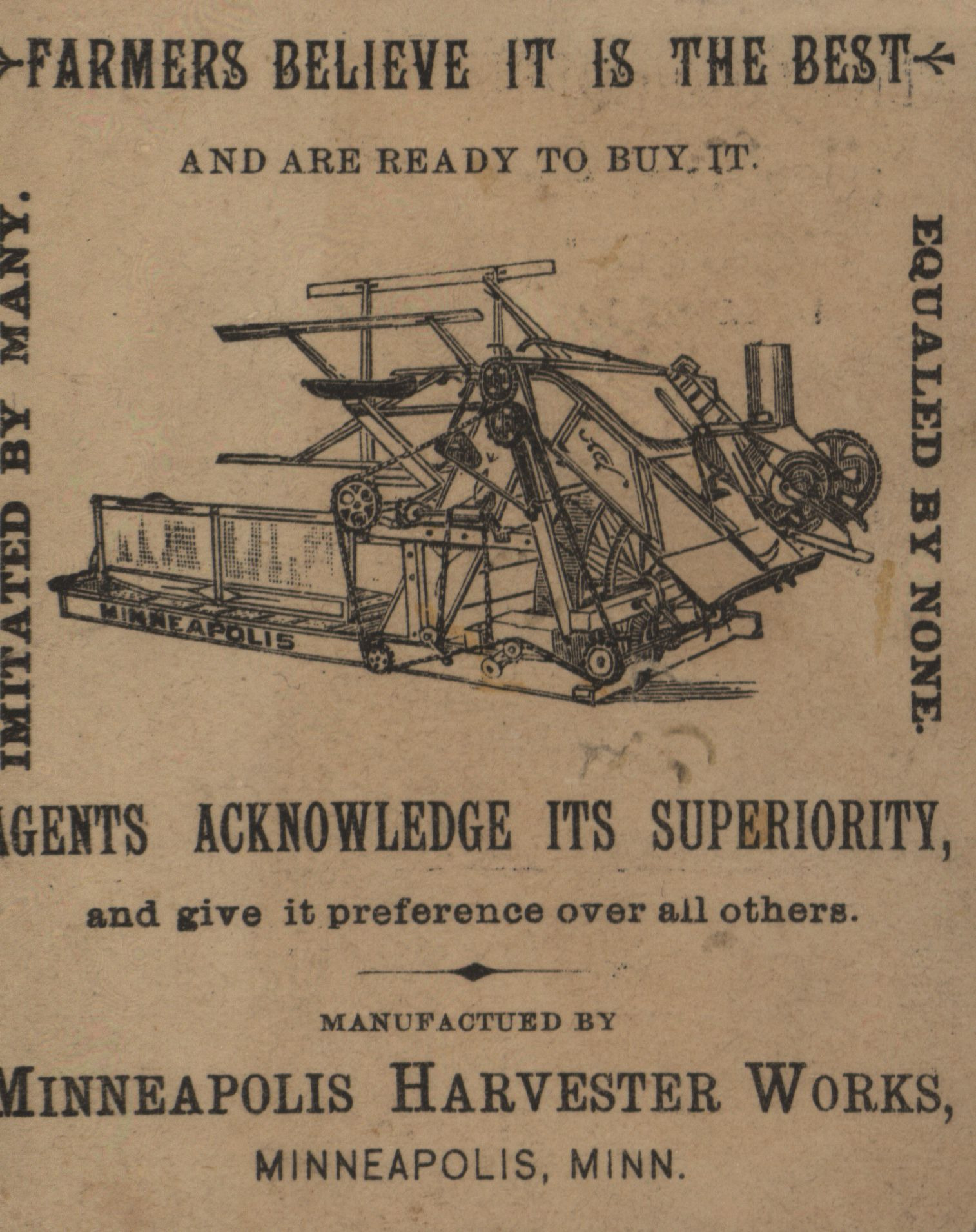 - "Minneapolis Harvester Works twine binder advertisement", Agricultural Machinery Literature Collection, Iowa State University Library Digital Collections