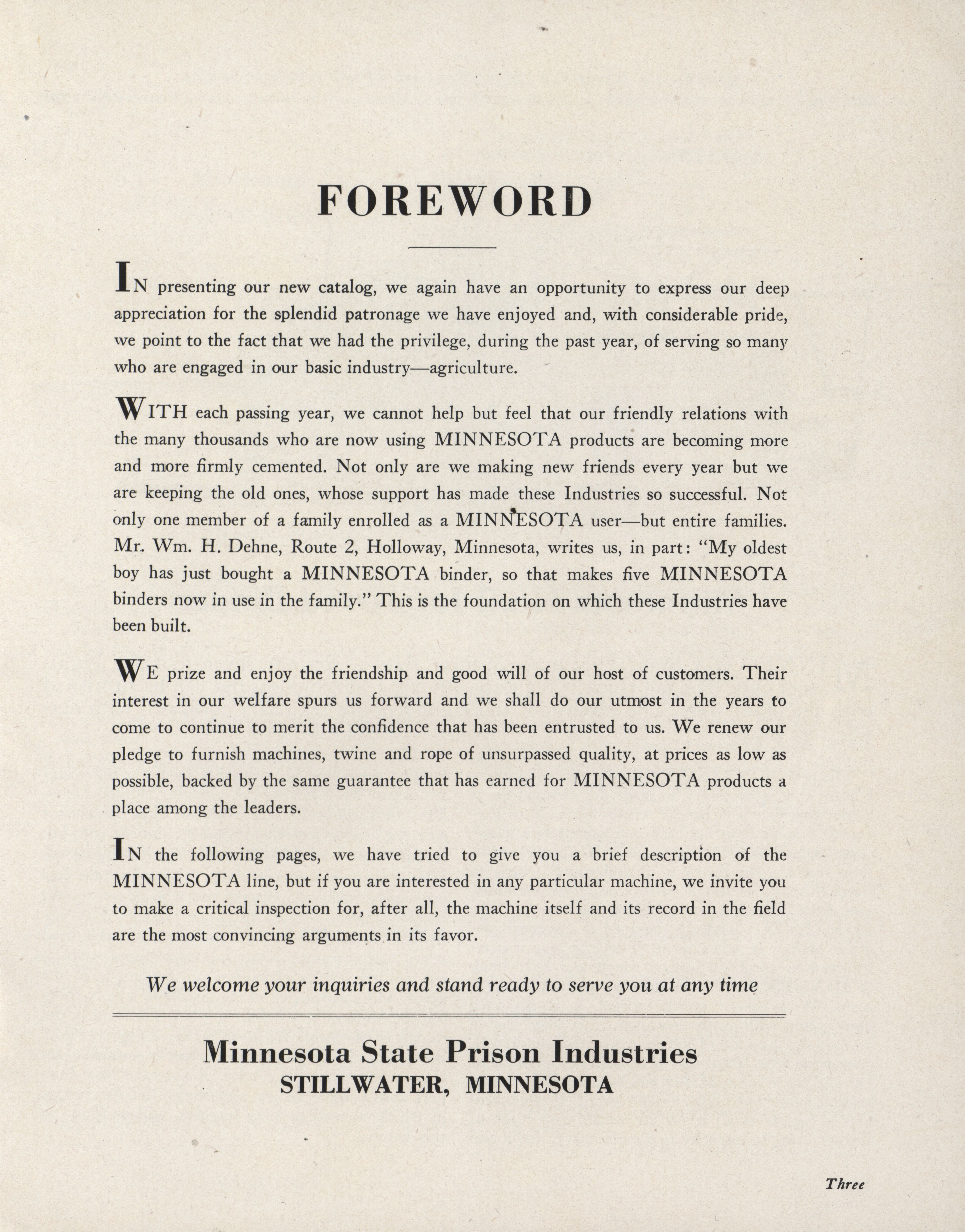 - "Minnesota State Prison Industries catalog", Agricultural Machinery Literature Collection, Iowa State University Library Digital Collections