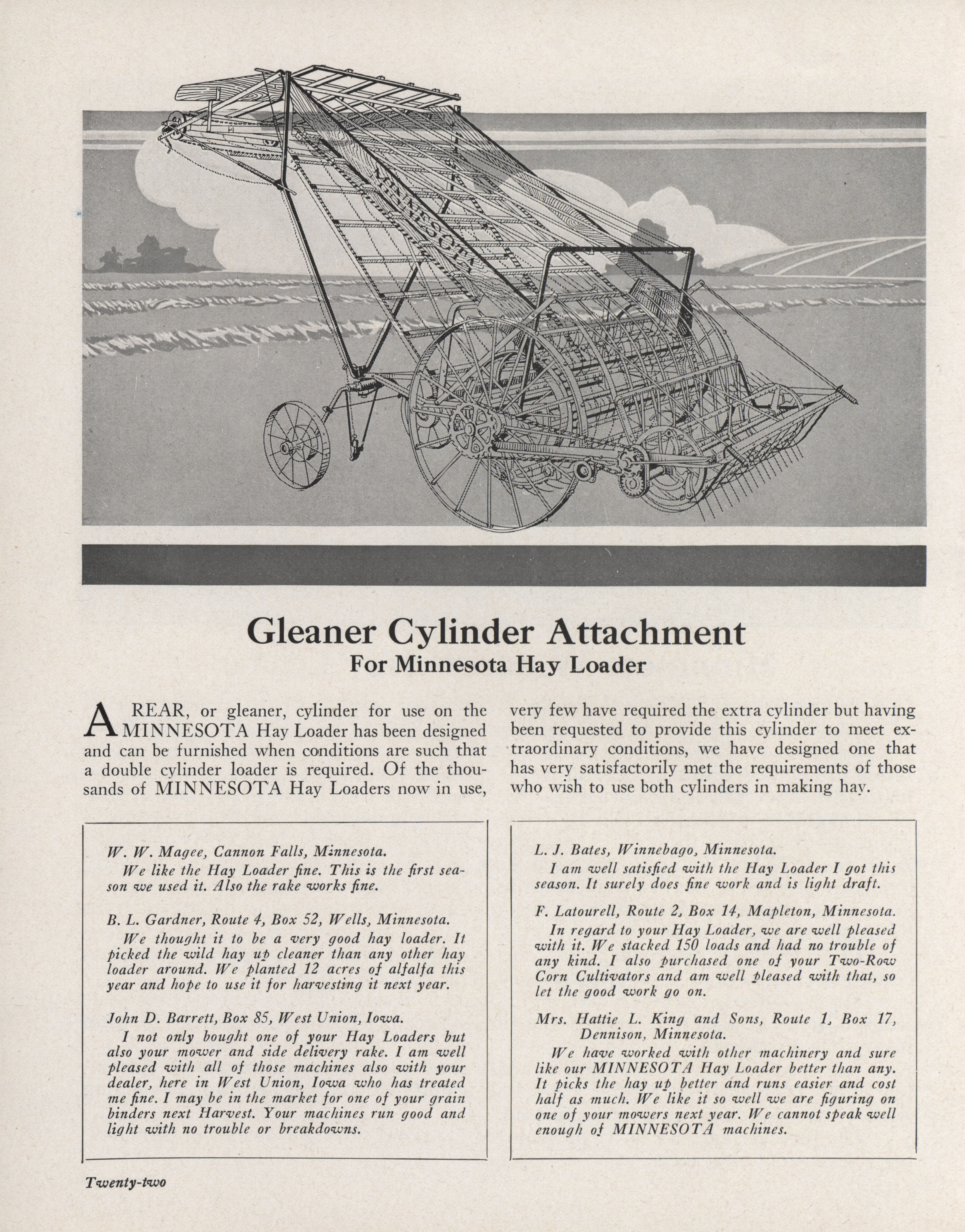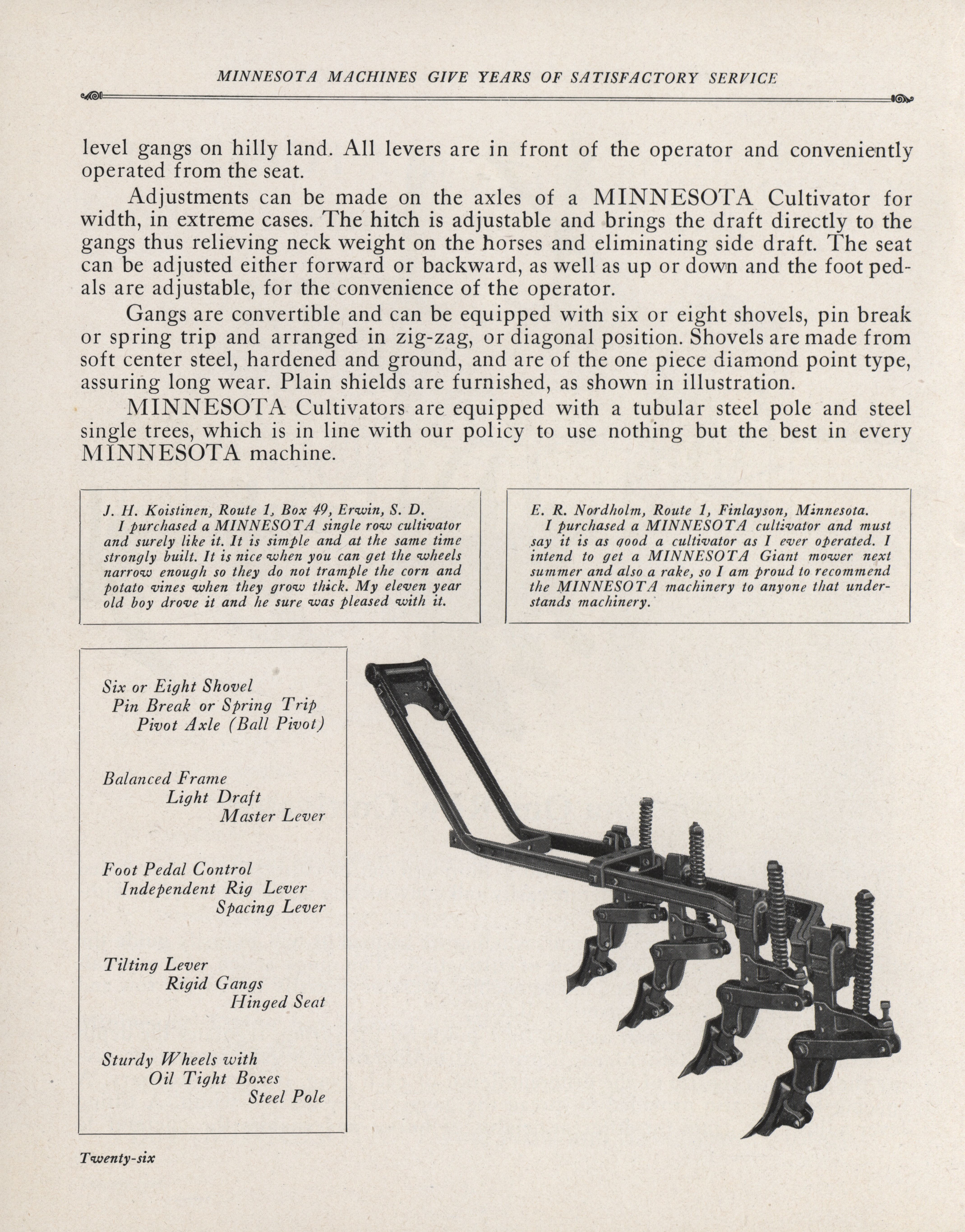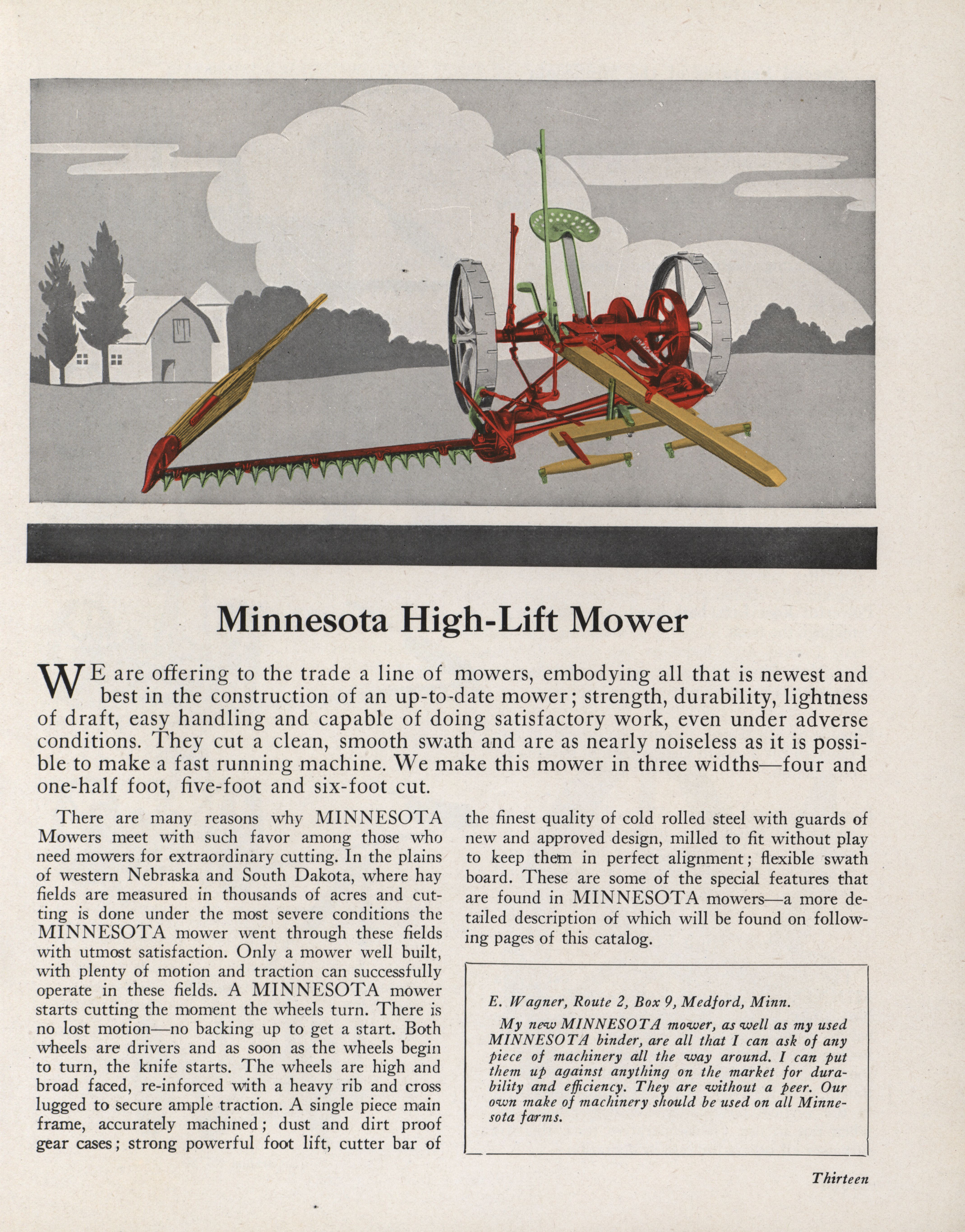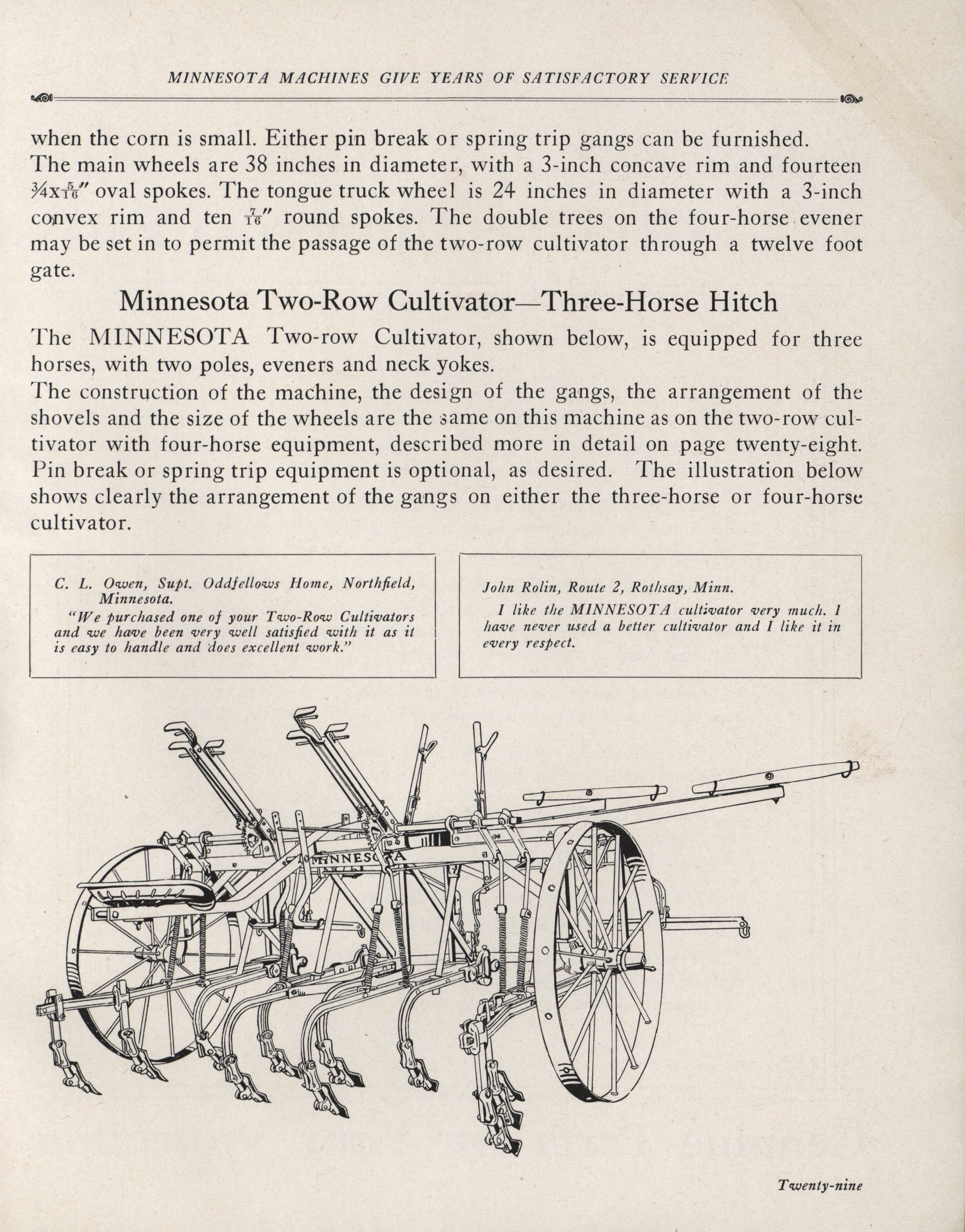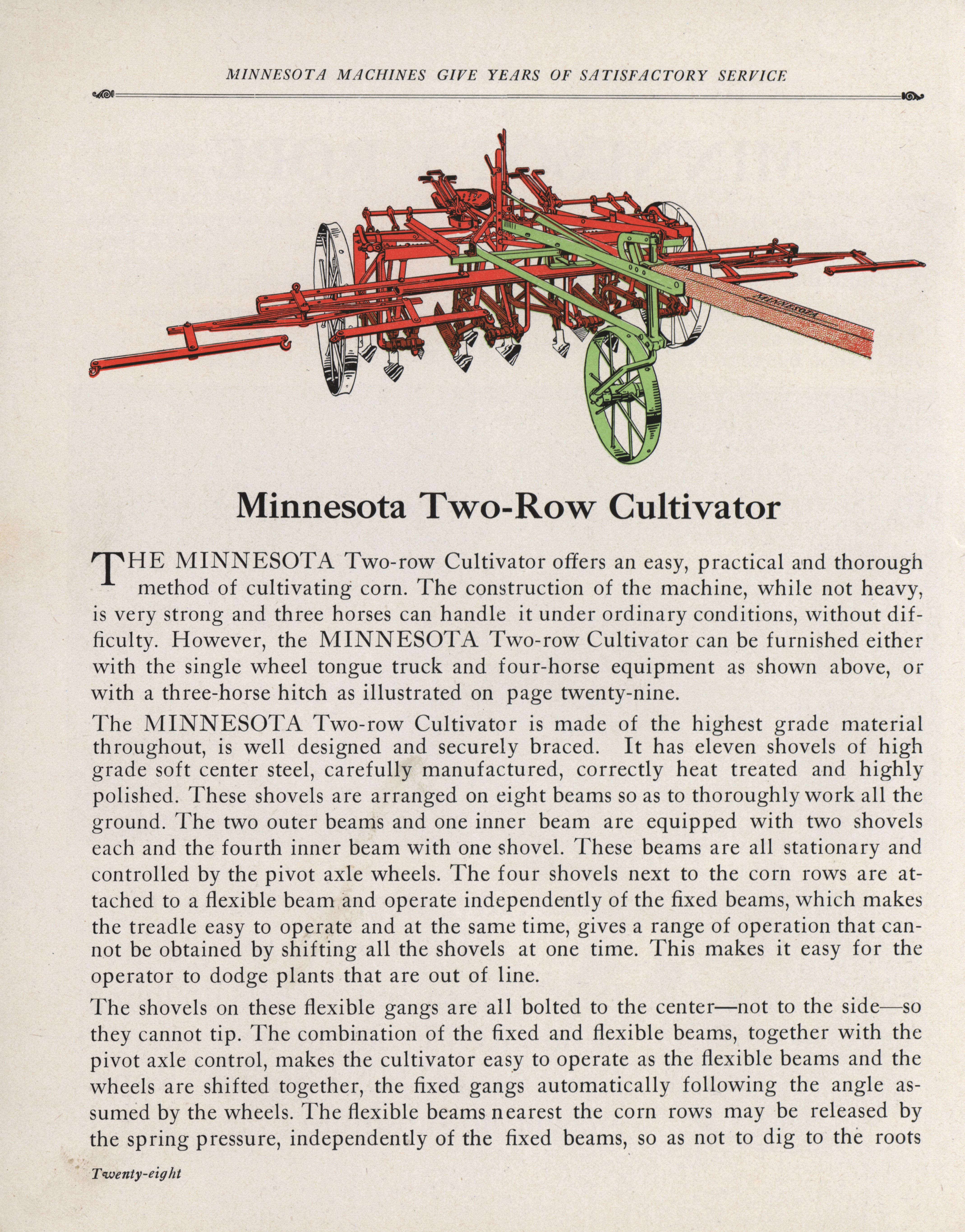 - Illustrated catalog describing the agricultural implements offered by Minnesota State Prison Industries.