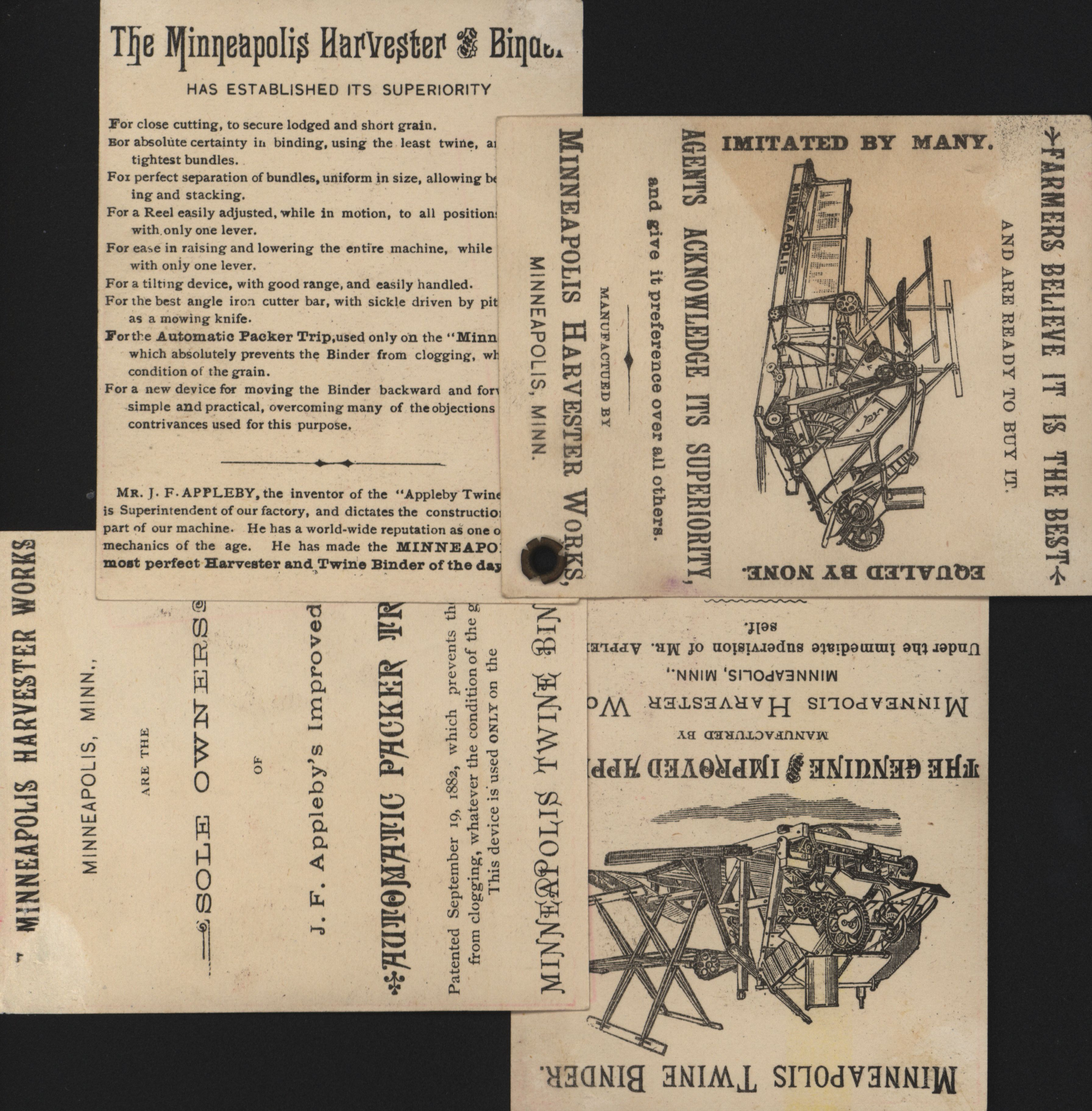- Minneapolis Harvester Works advertisement cards