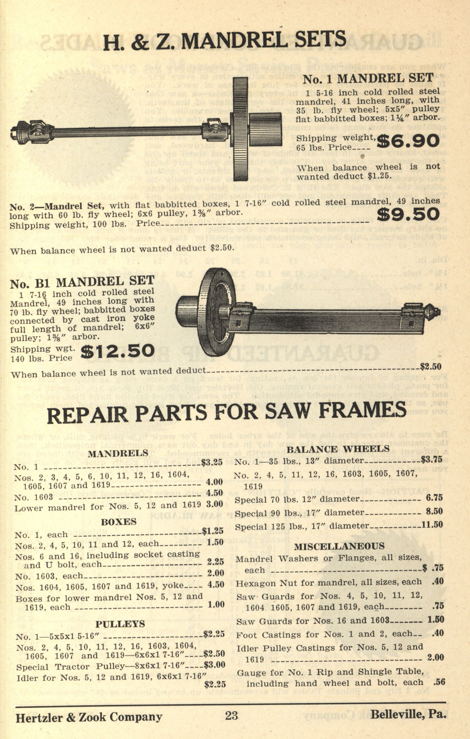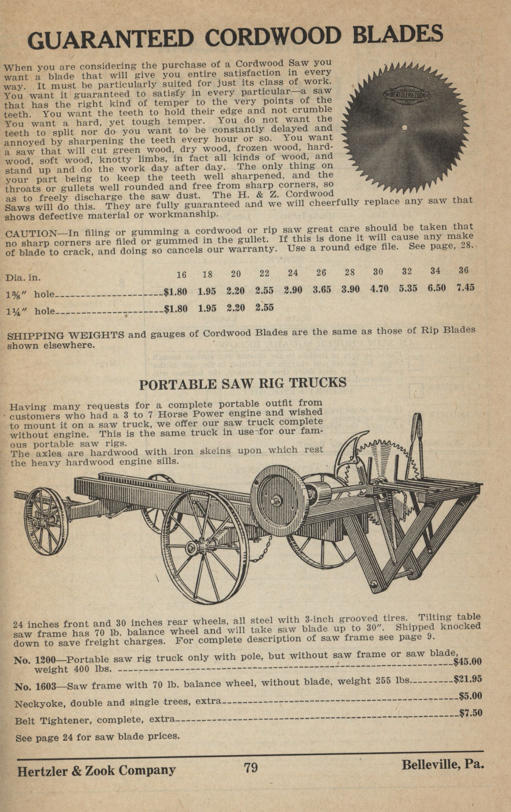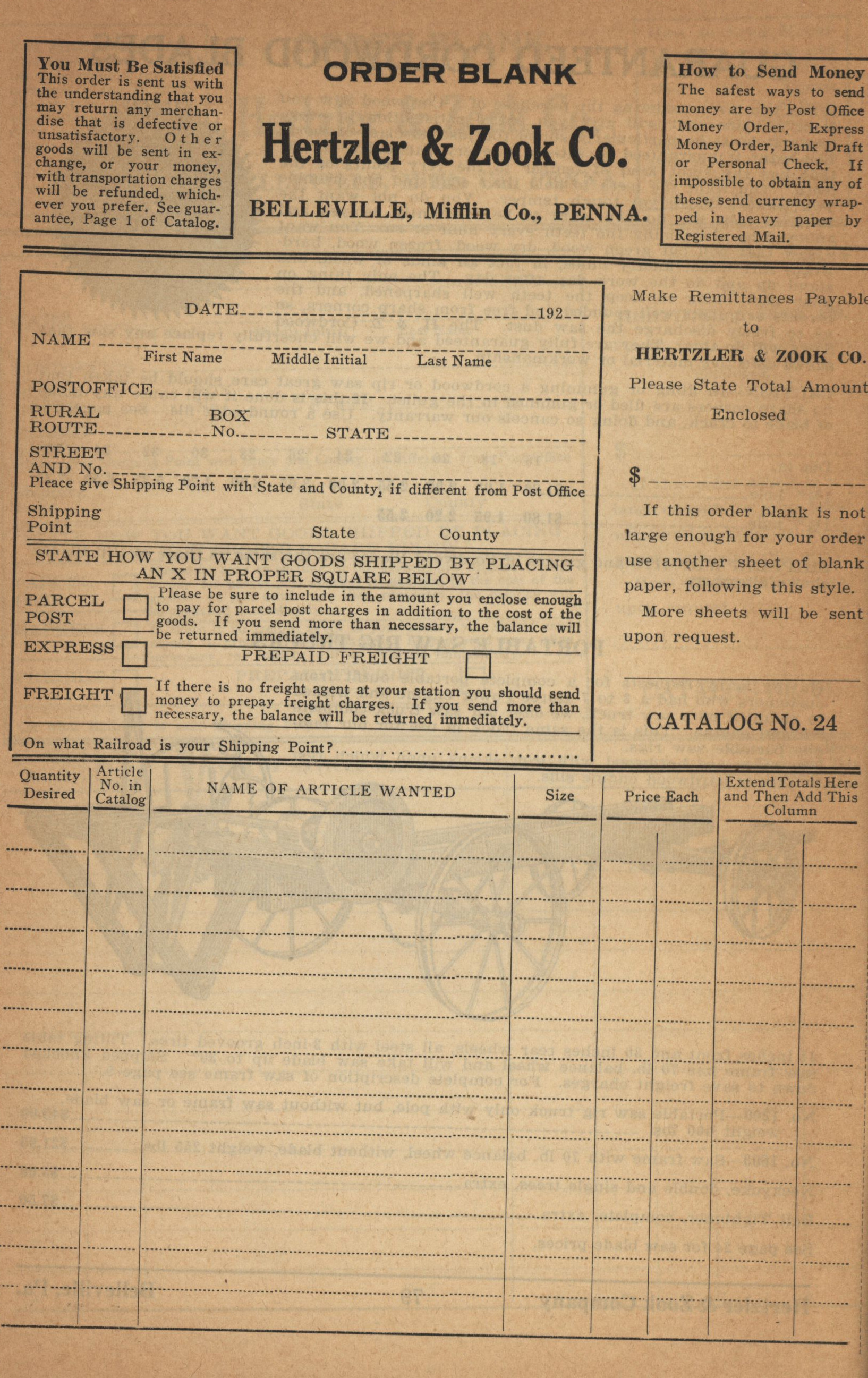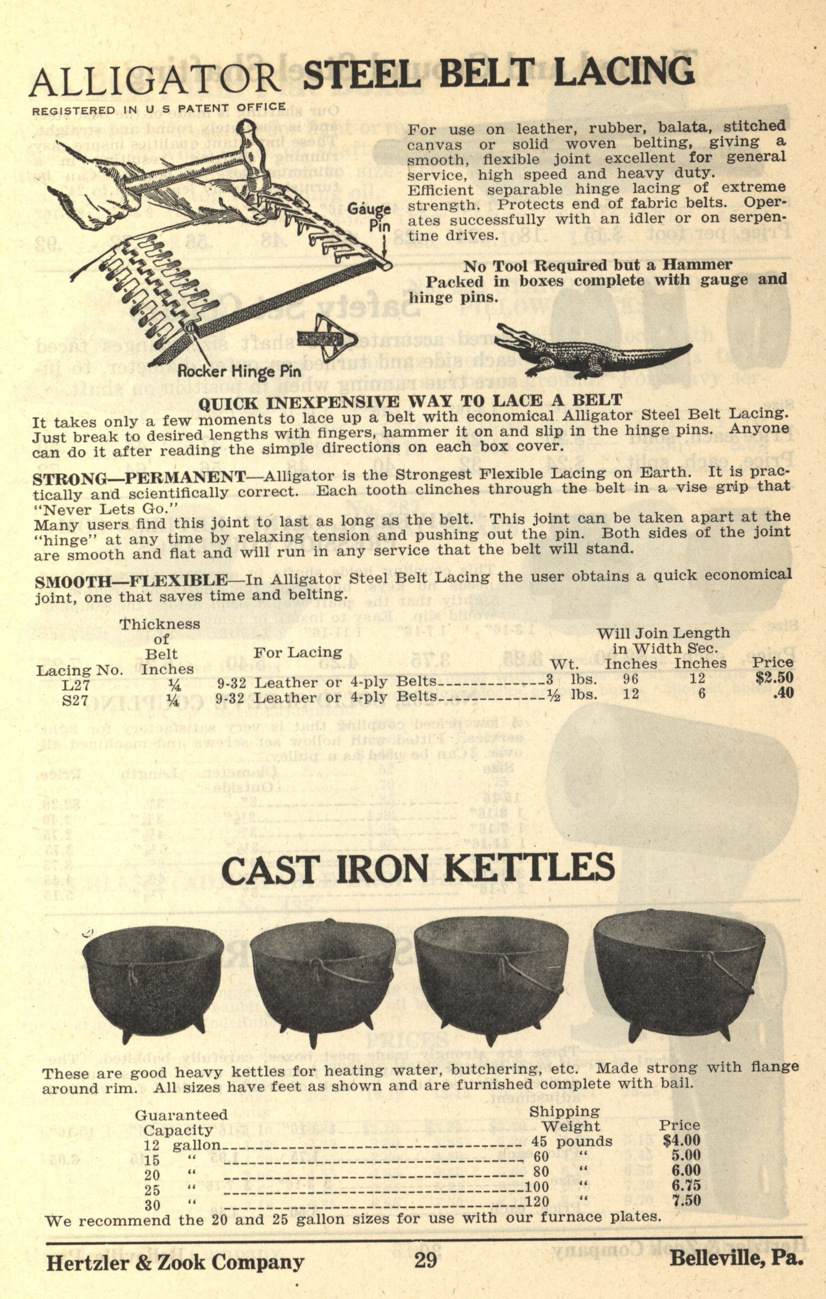 Hertzler and Zook Company 1928-1929 catalog Item Info