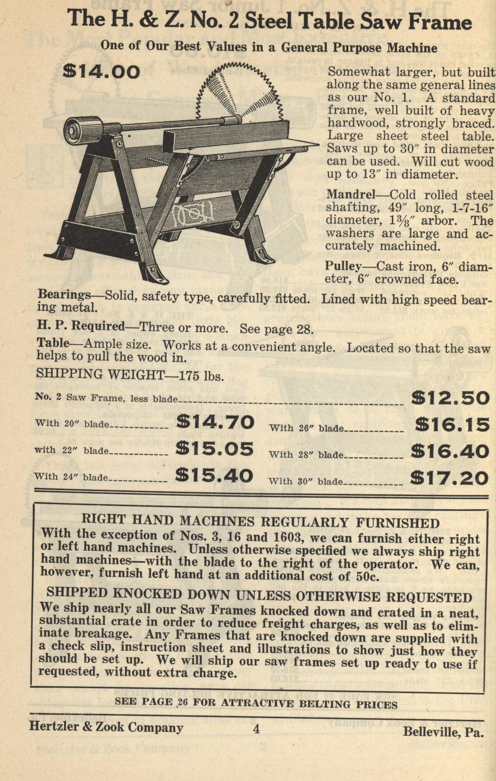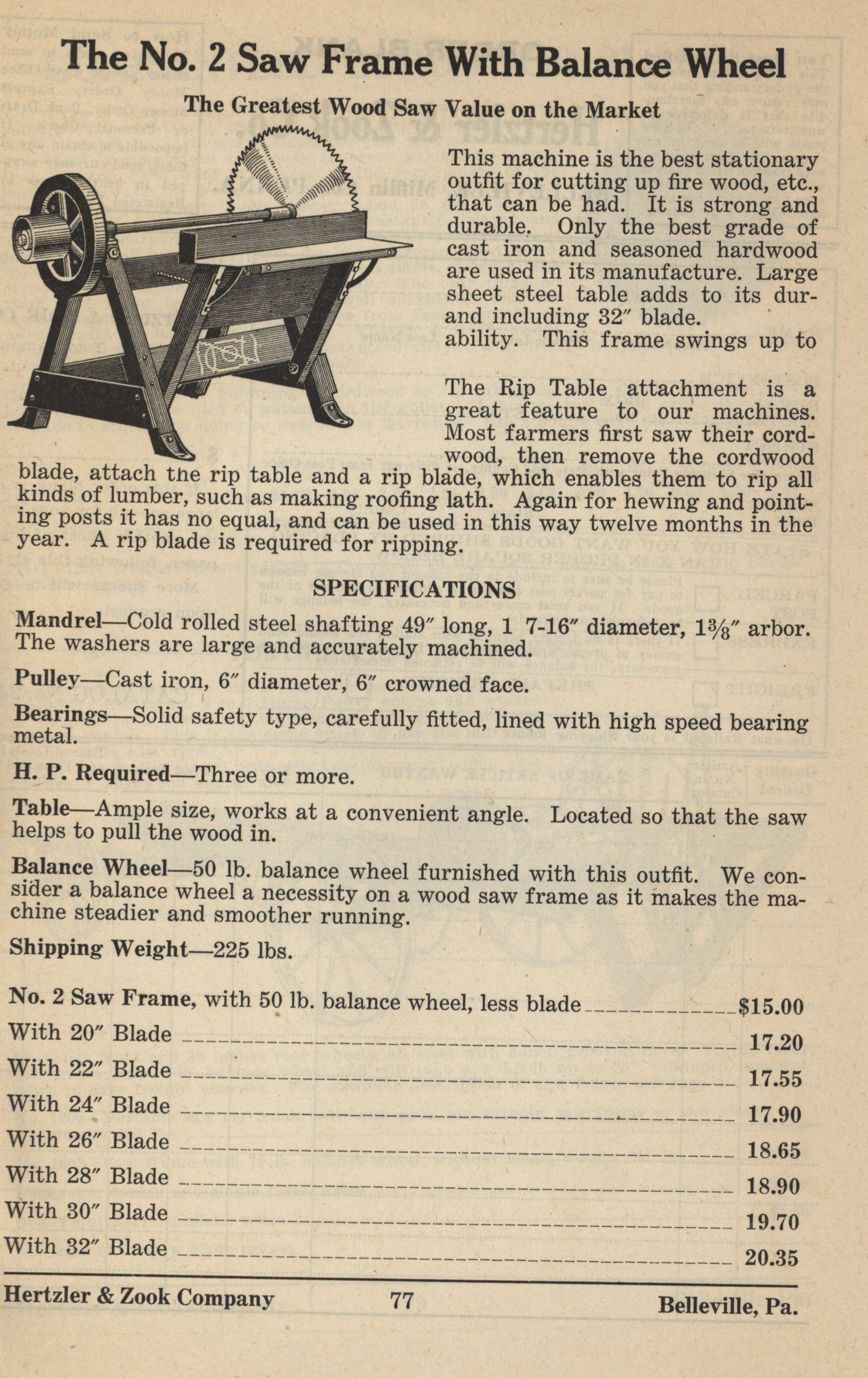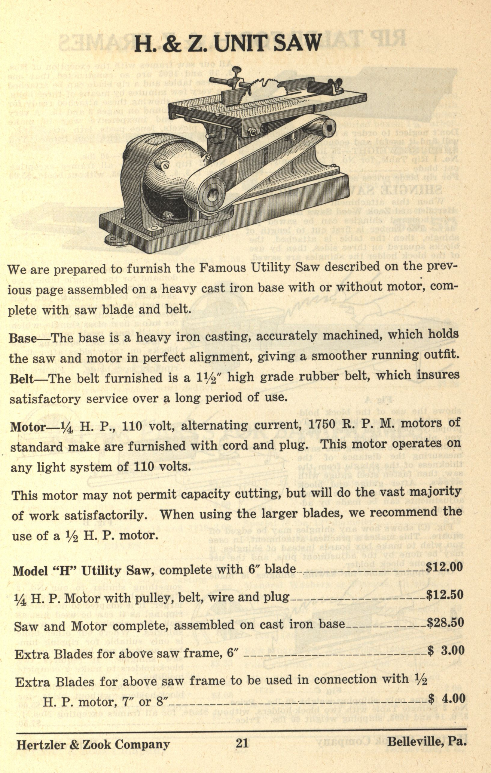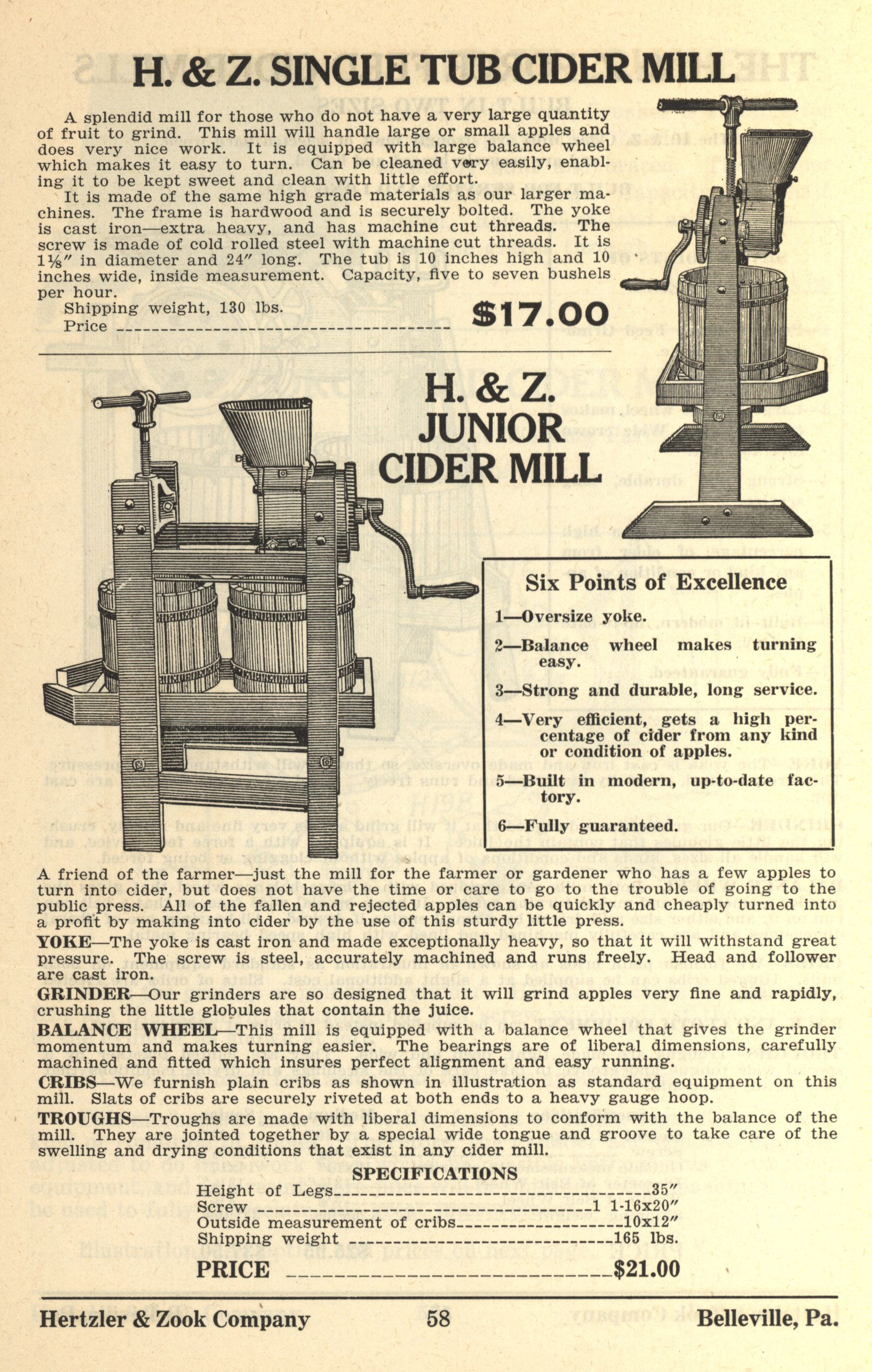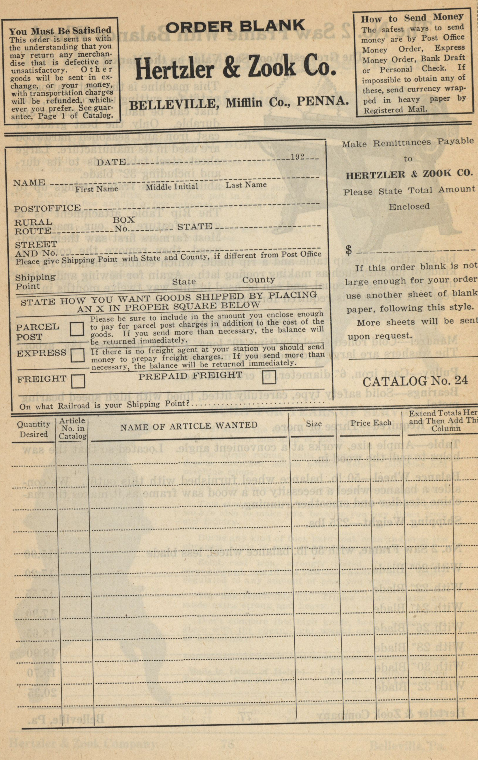 Hertzler and Zook Company 1928-1929 catalog Item Info