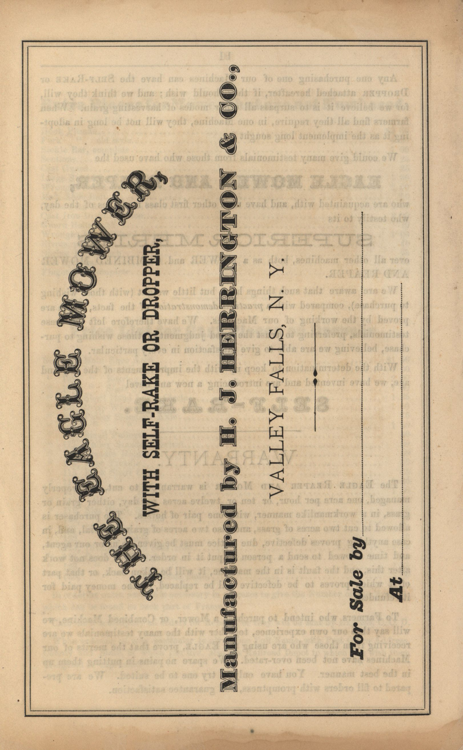 - H. J. Herrington and Company 1870 Herrington's Patent Harvesting Machines catalog