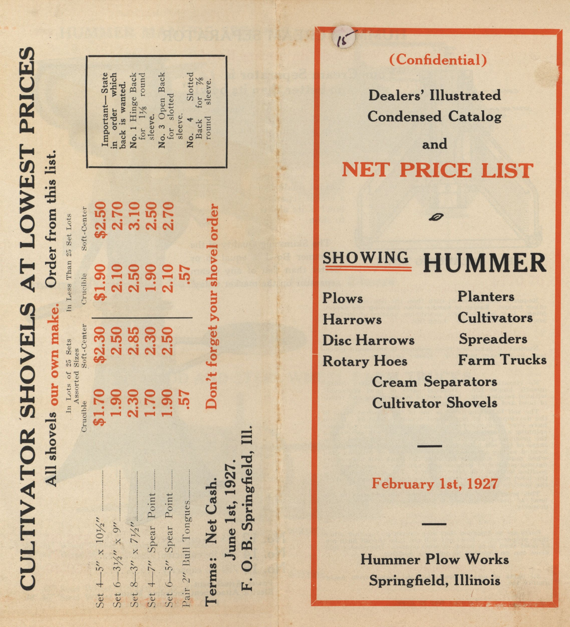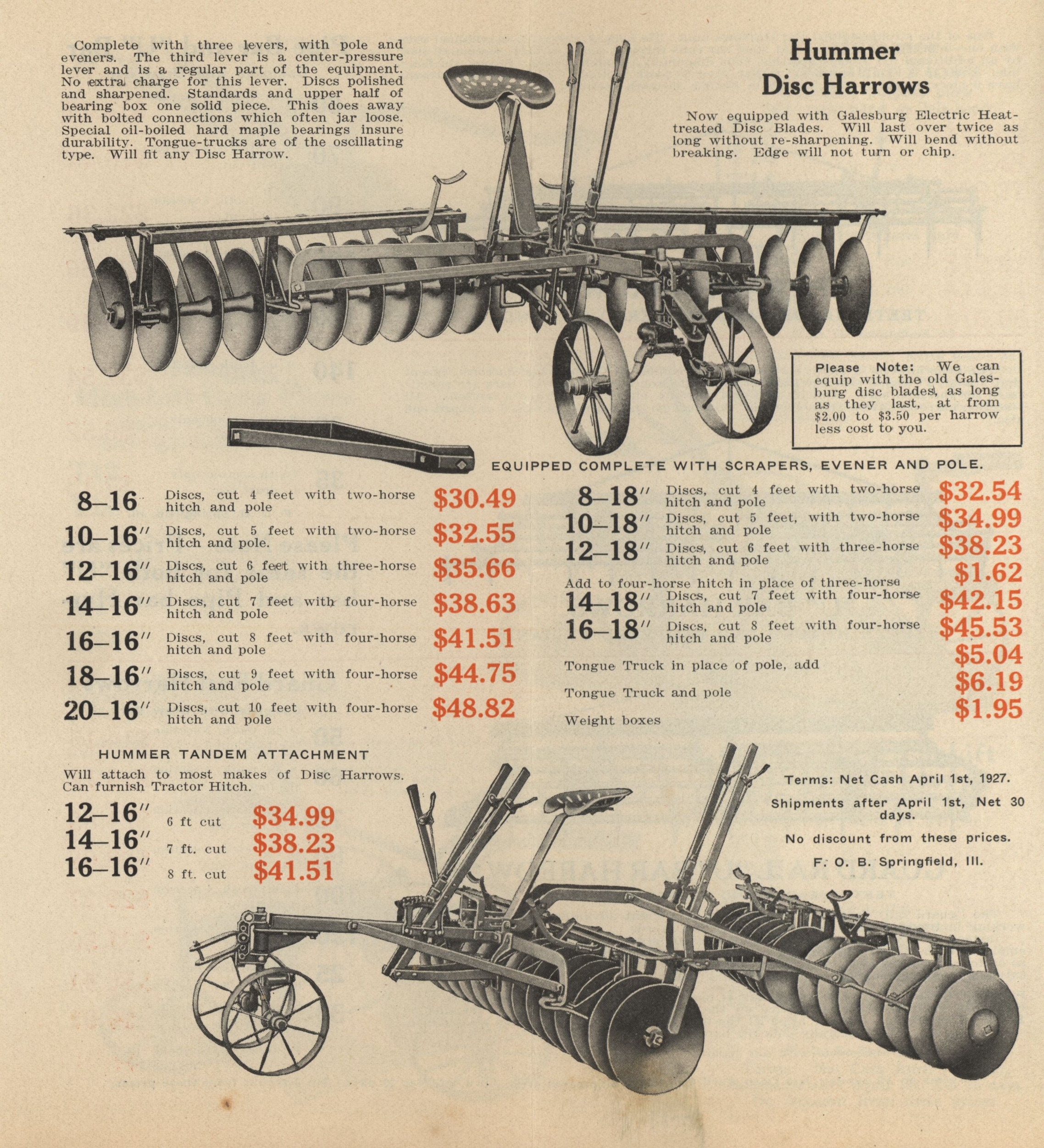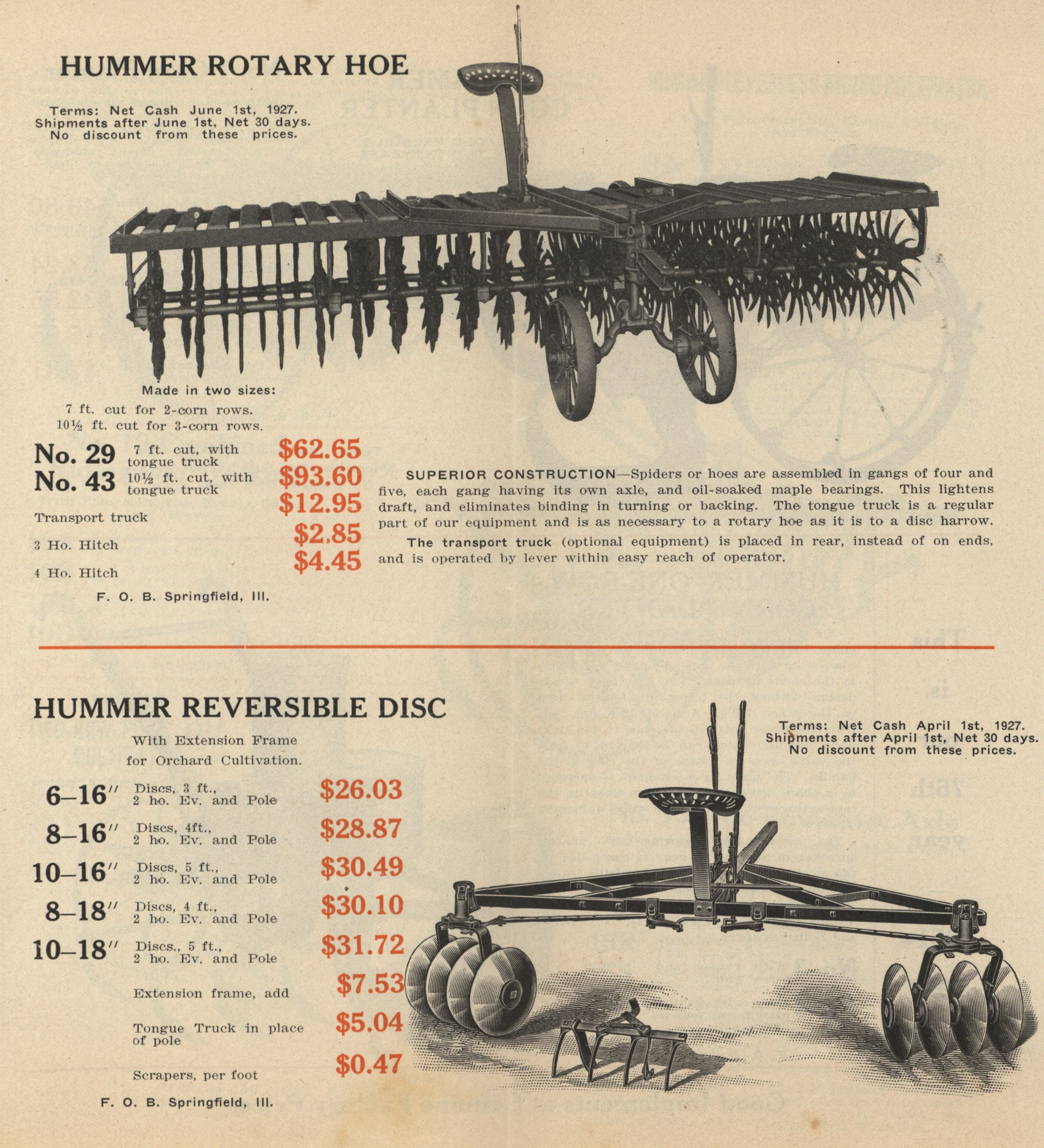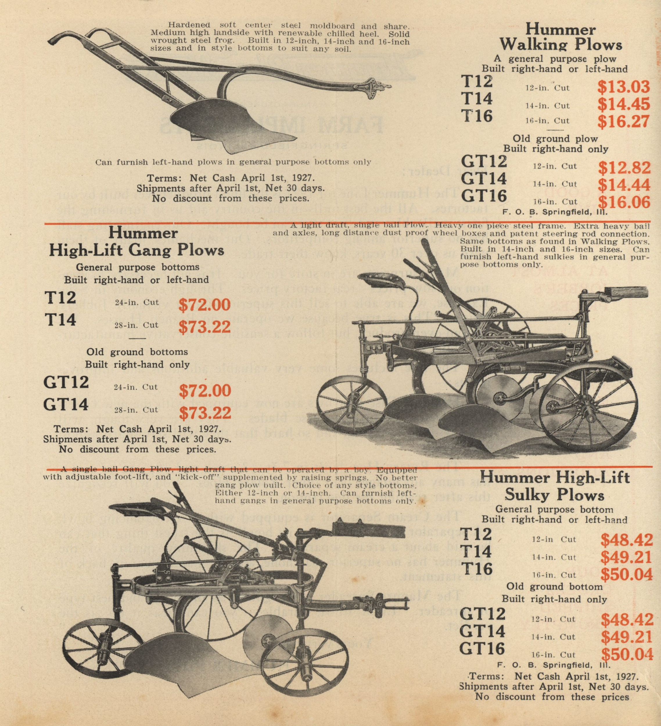 - Hummer Plow Works 1927 farm implements catalogs and price list