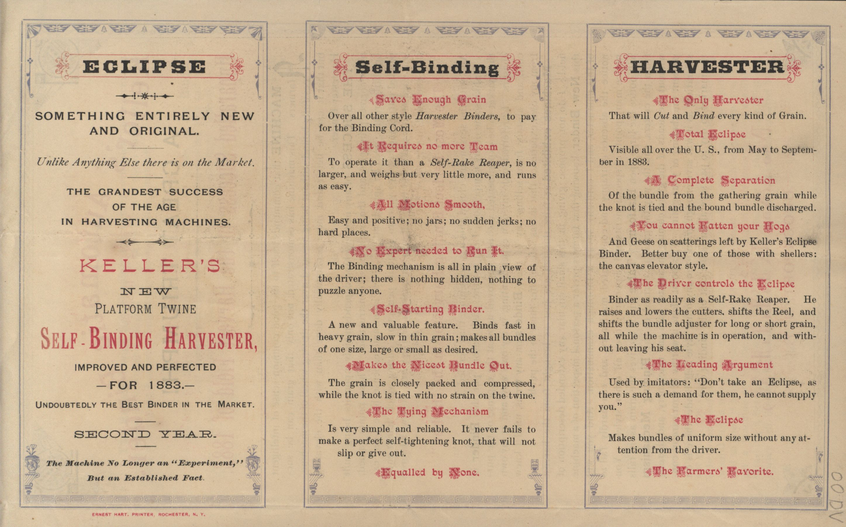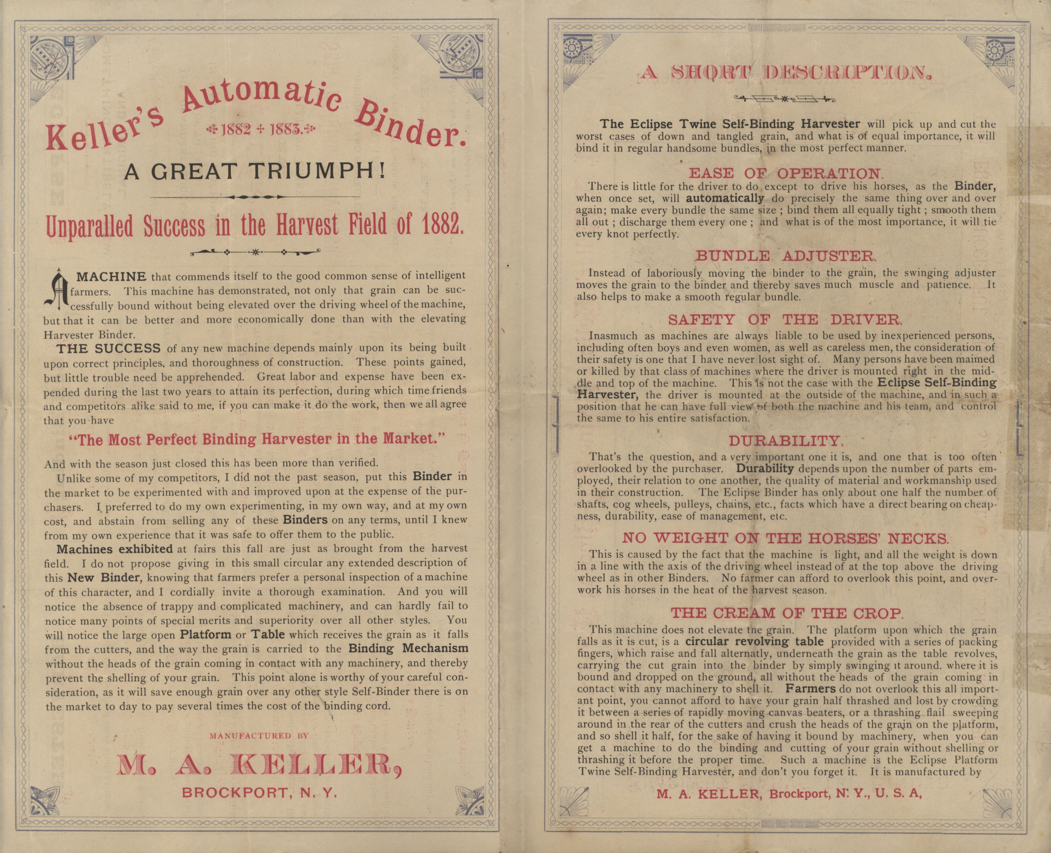 - "M. A. Keller's Automatic Binder 1882-1883 advertisement pamphlet", Agricultural Machinery Literature Collection, Iowa State University Library Digital Collections
