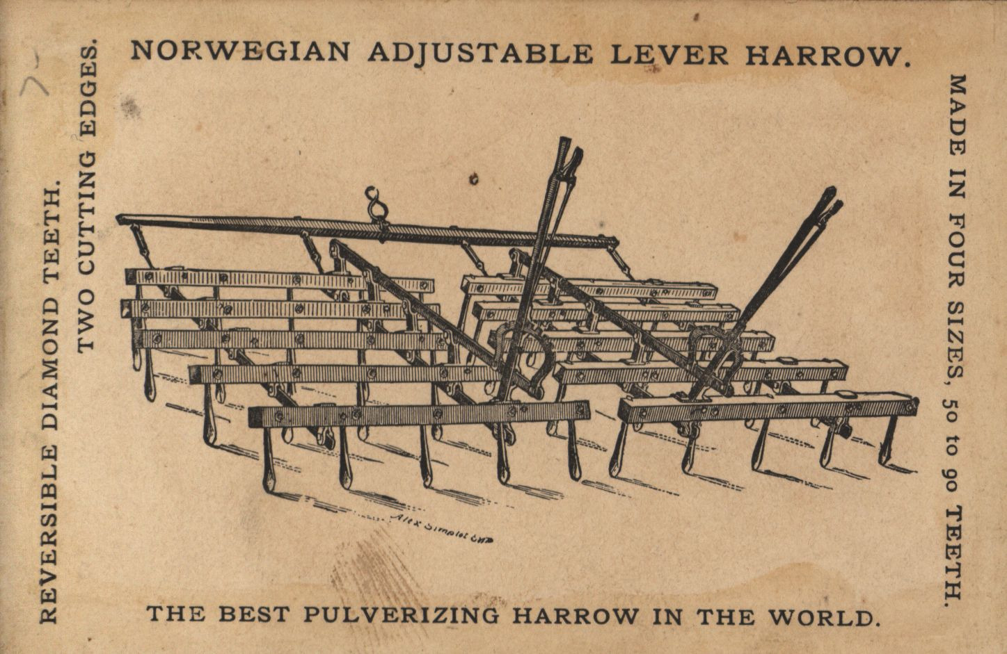 - "Norwegian Plow Company Adjustable Lever Harrow advertisement card", Agricultural Machinery Literature Collection, Iowa State University Library Digital Collections