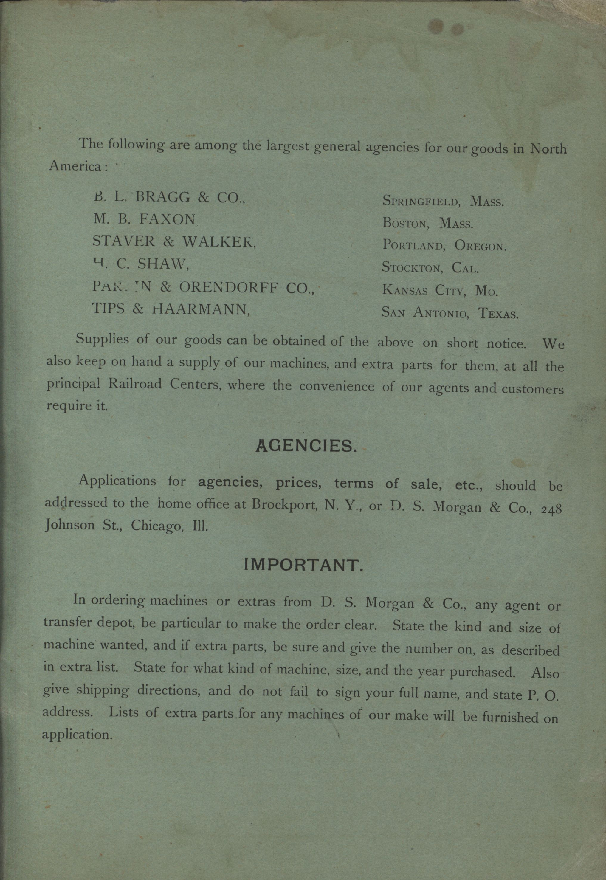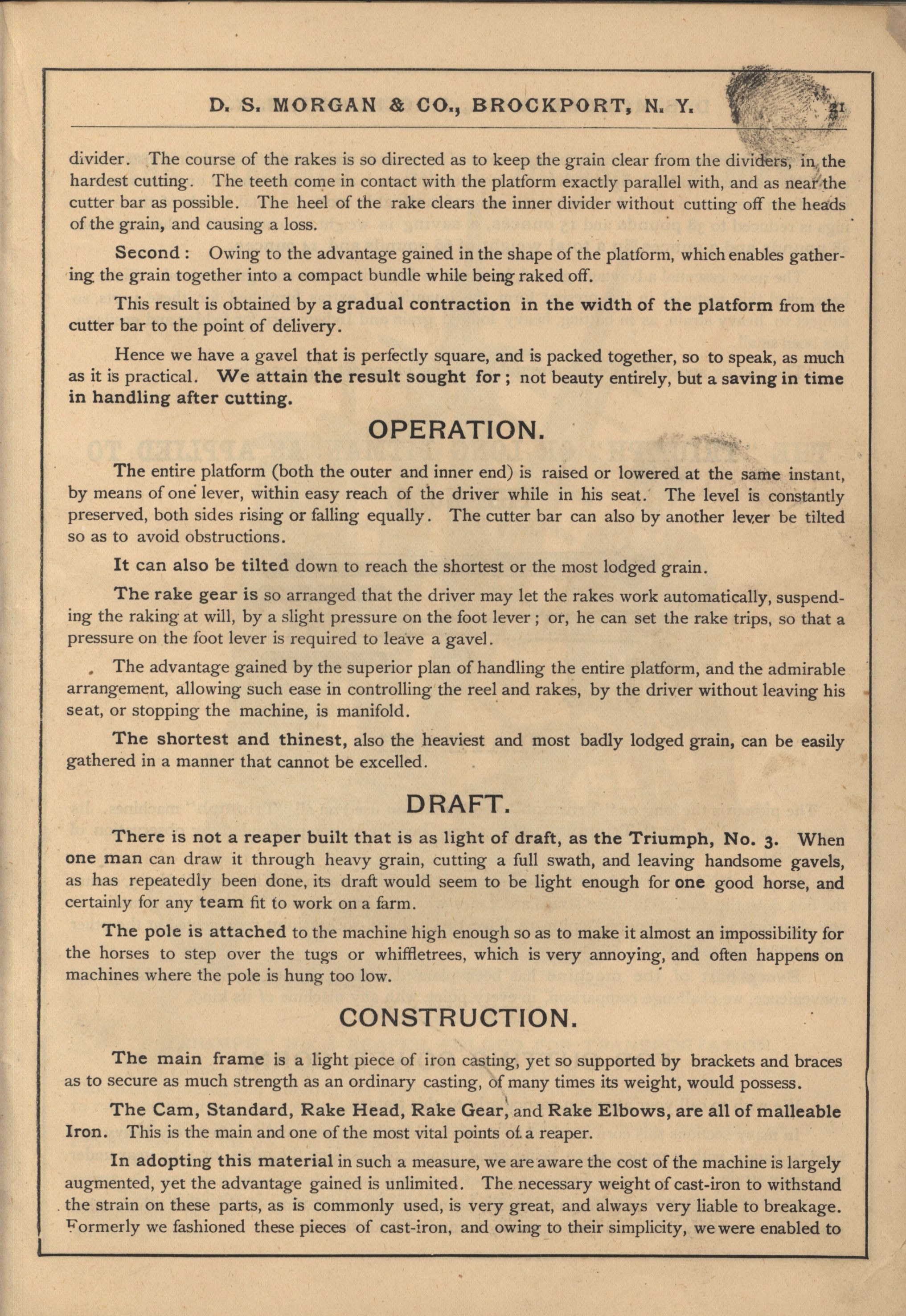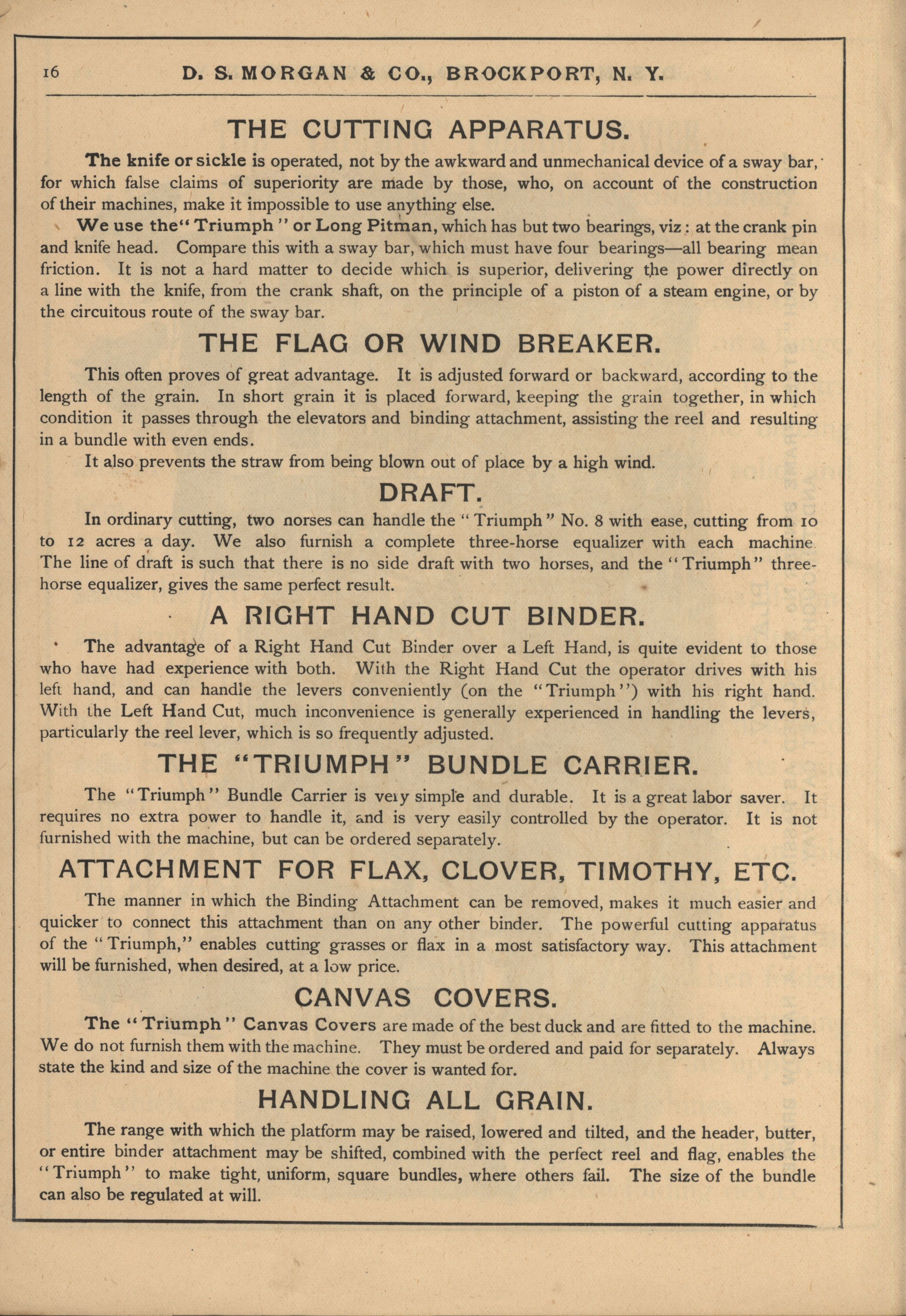 - "D. S. Morgan and Company 1889 Triumph Harvesting Machinery catalog", Agricultural Machinery Literature Collection, Iowa State University Library Digital Collections