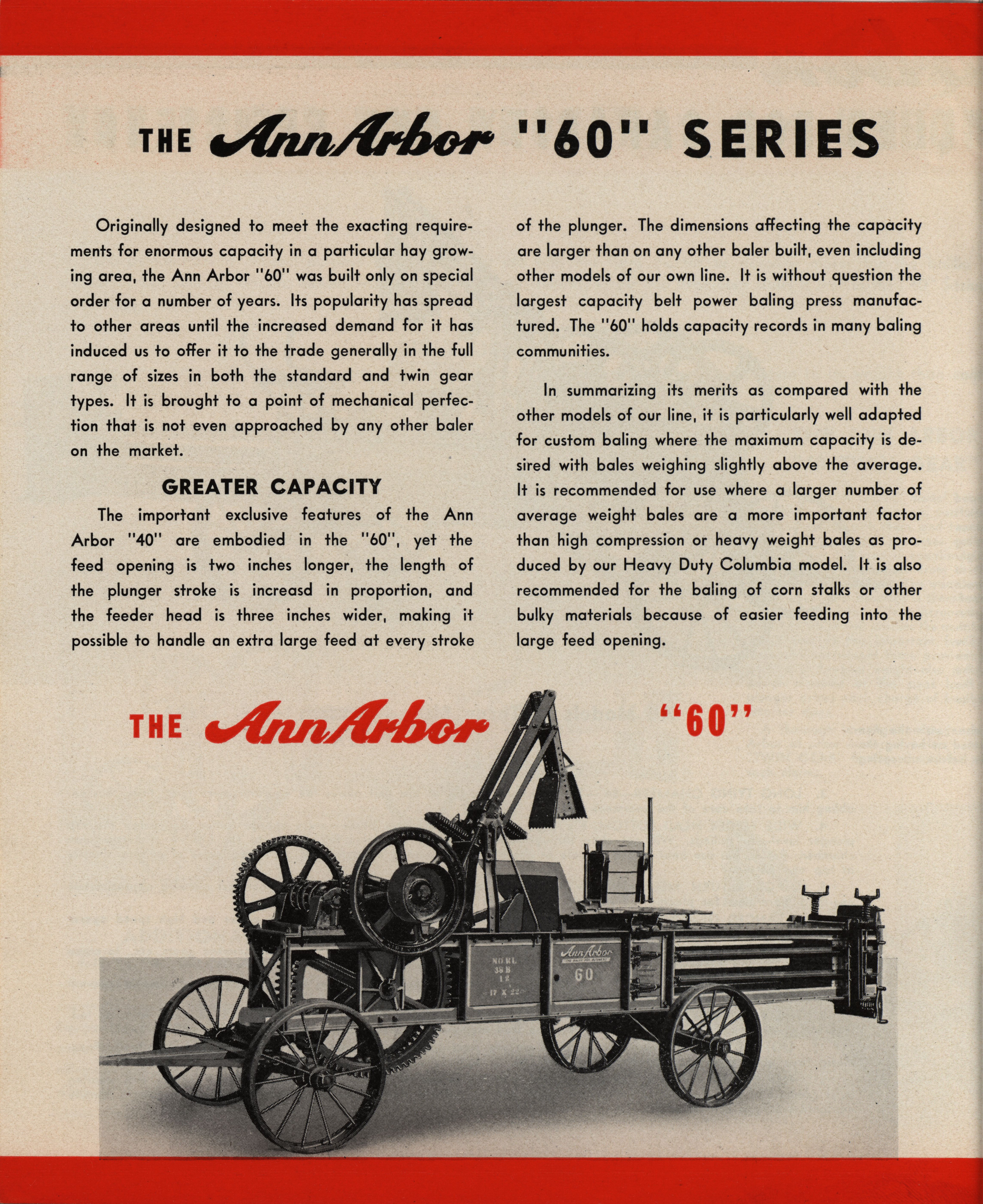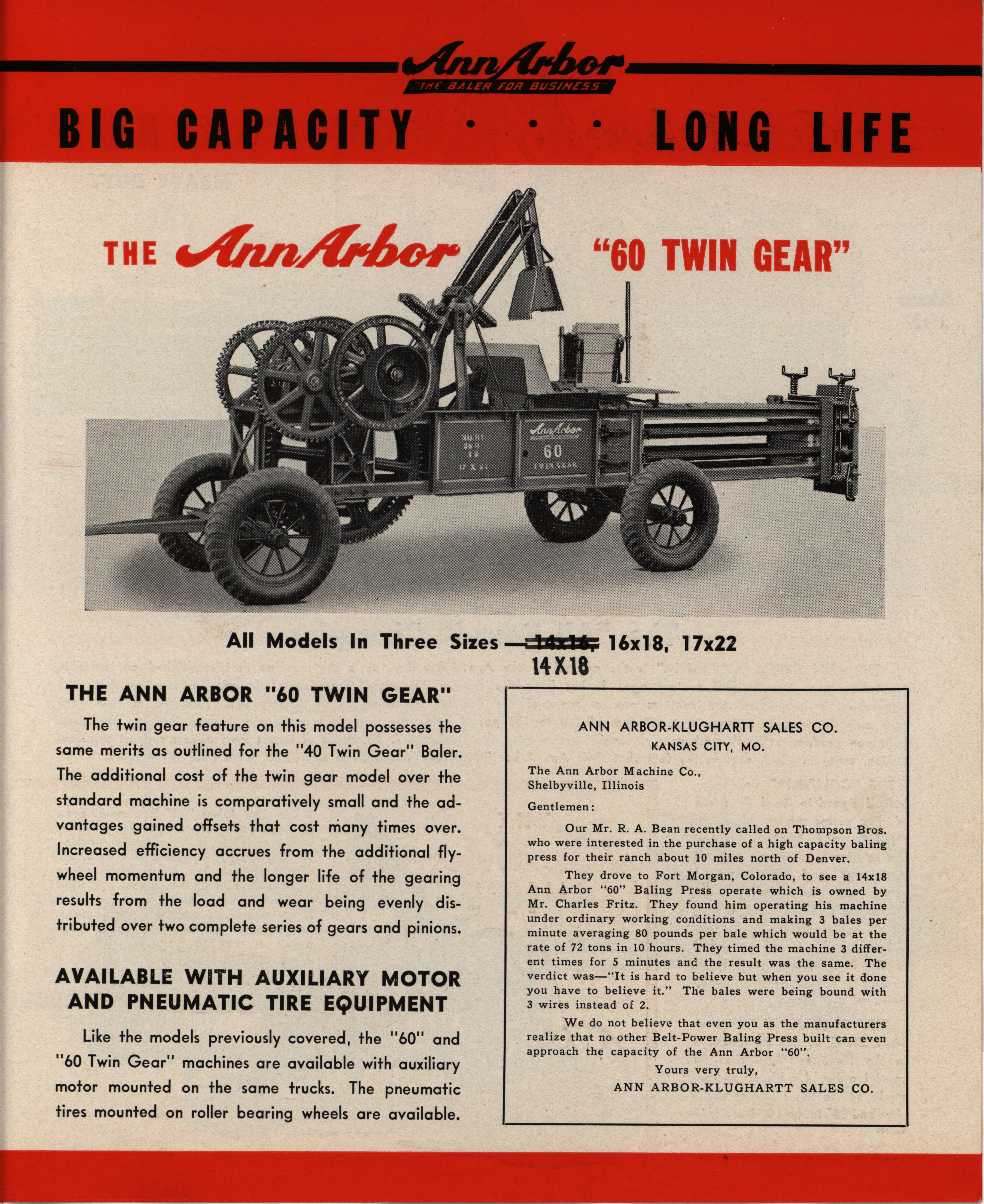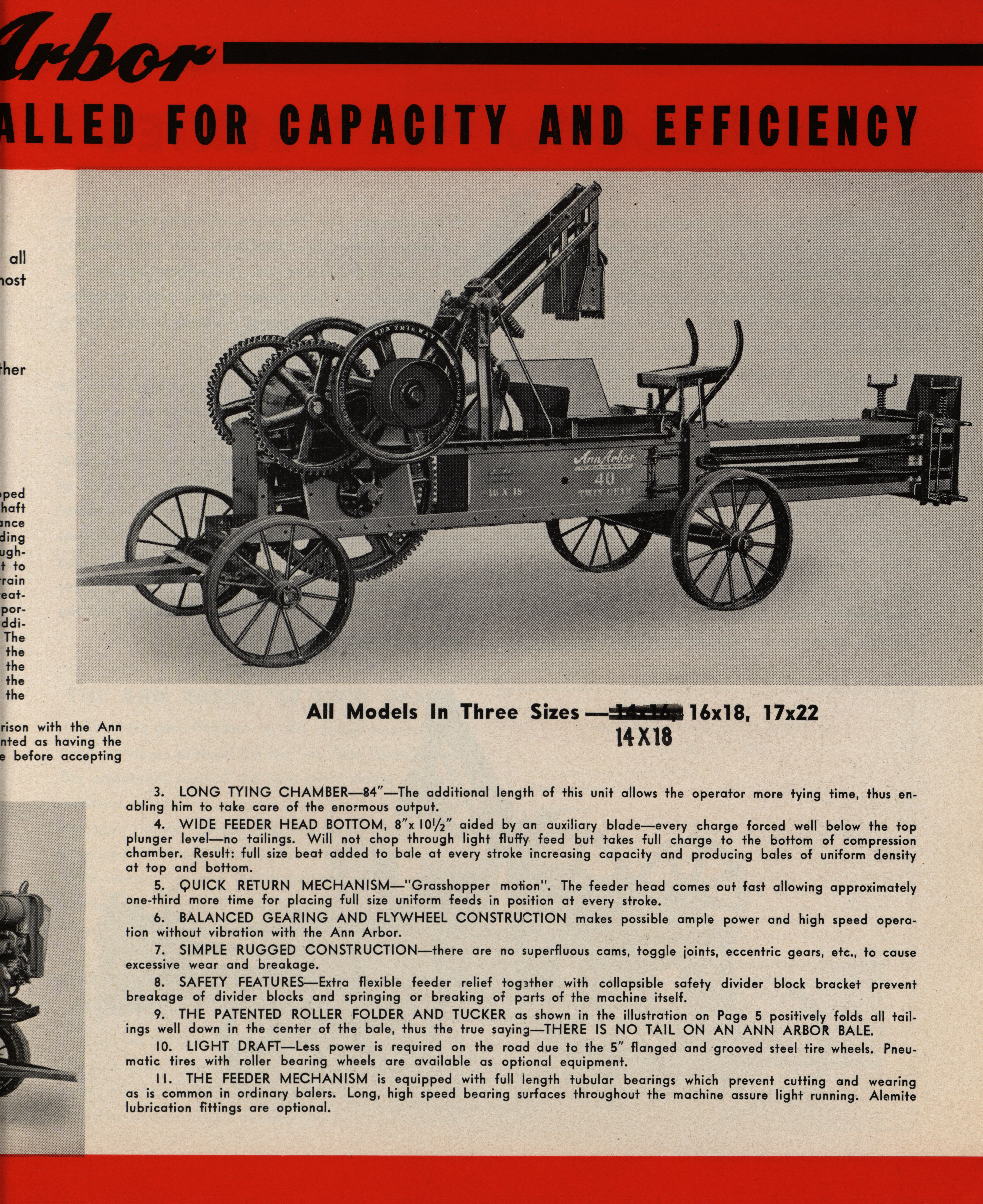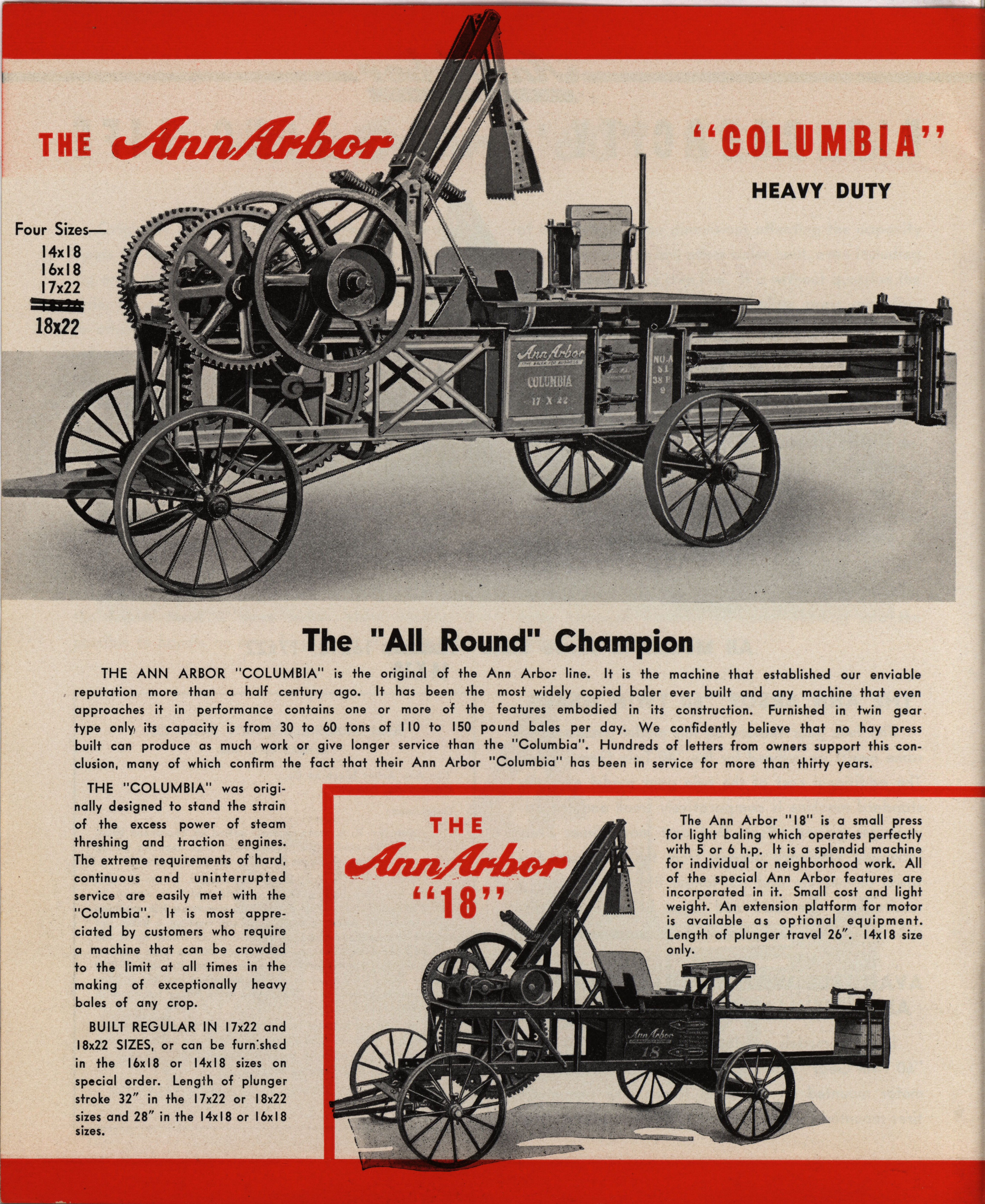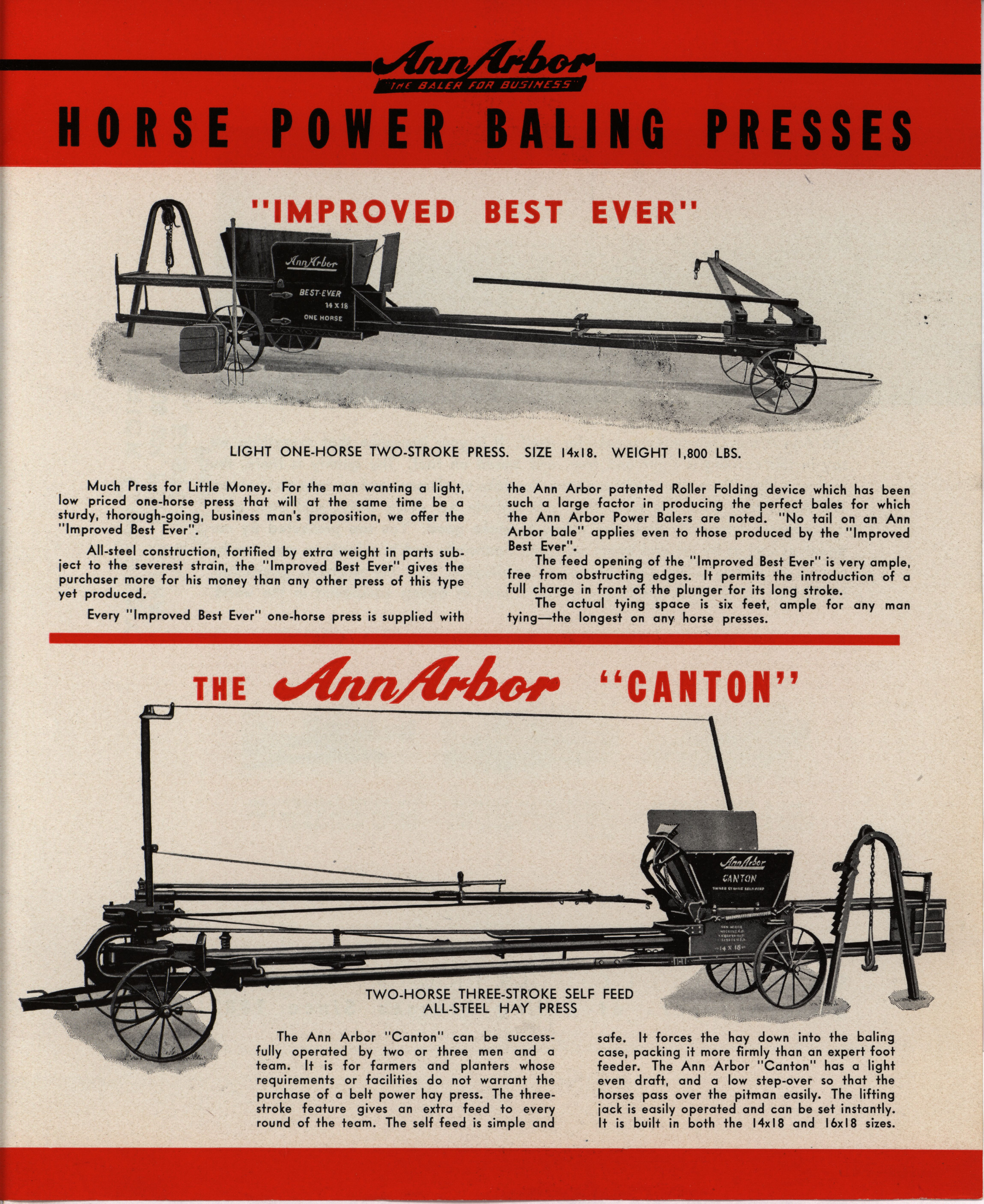 - "The Ann Arbor Machine Company Power Baling Presses catalog", Agricultural Machinery Literature Collection, Iowa State University Library Digital Collections