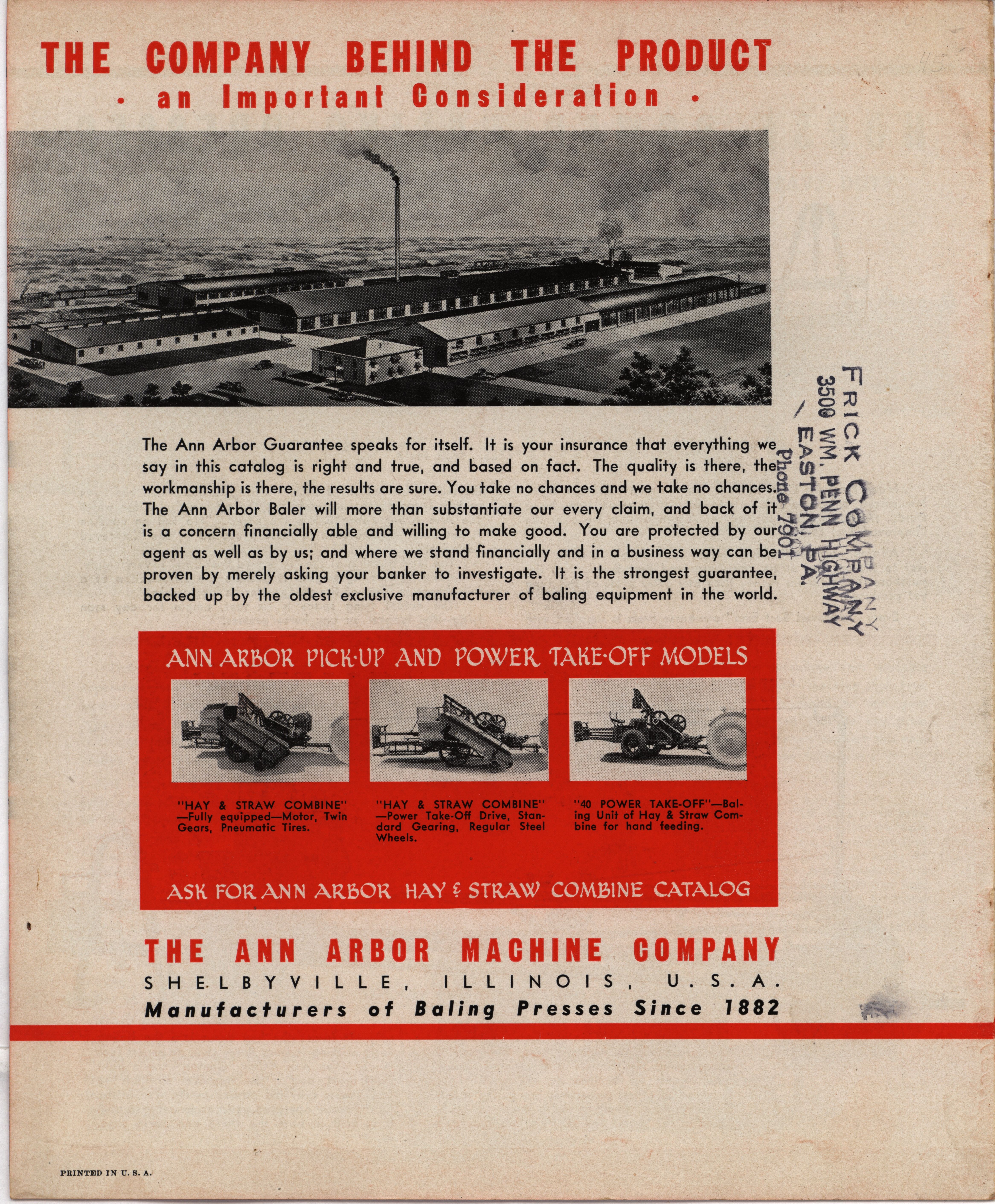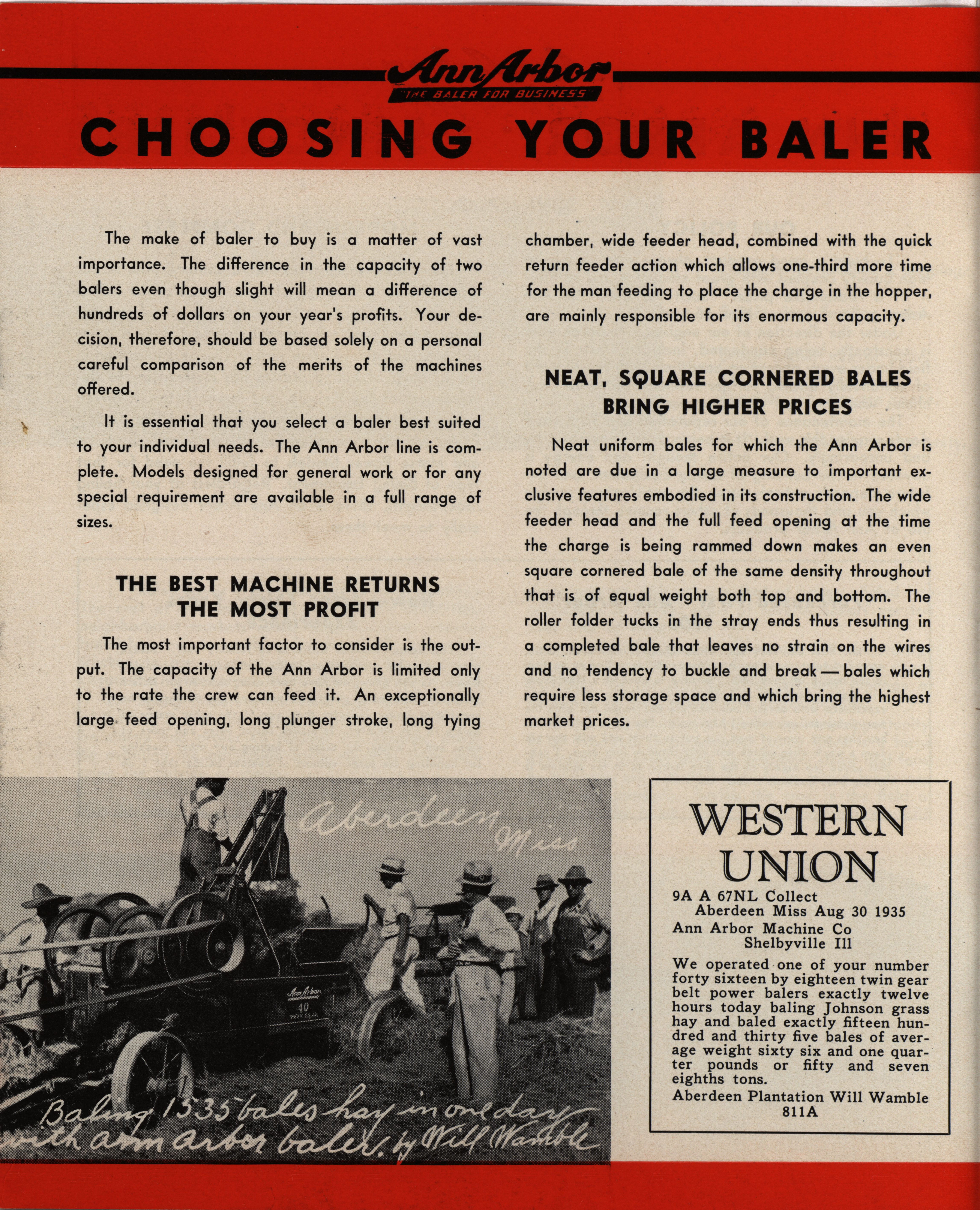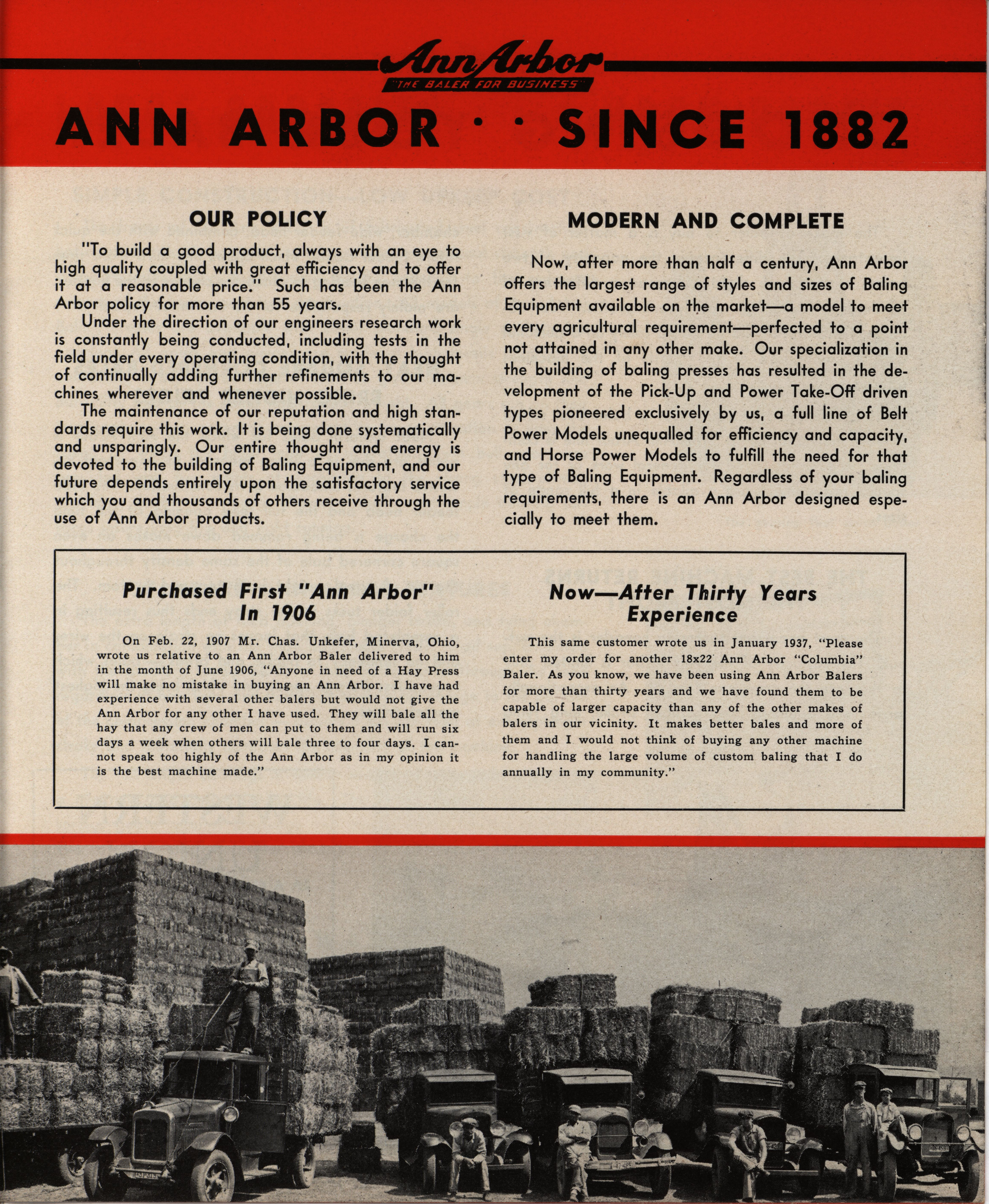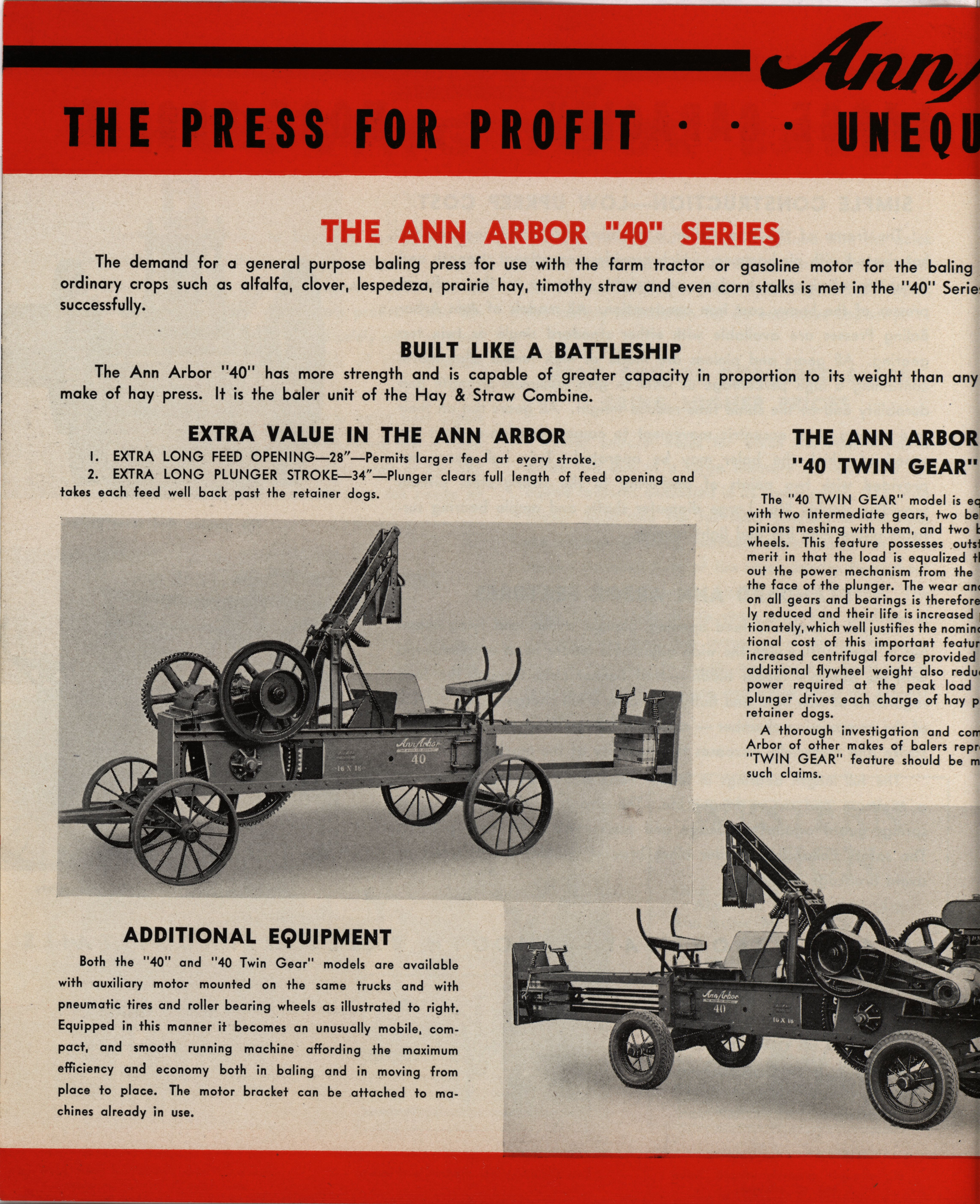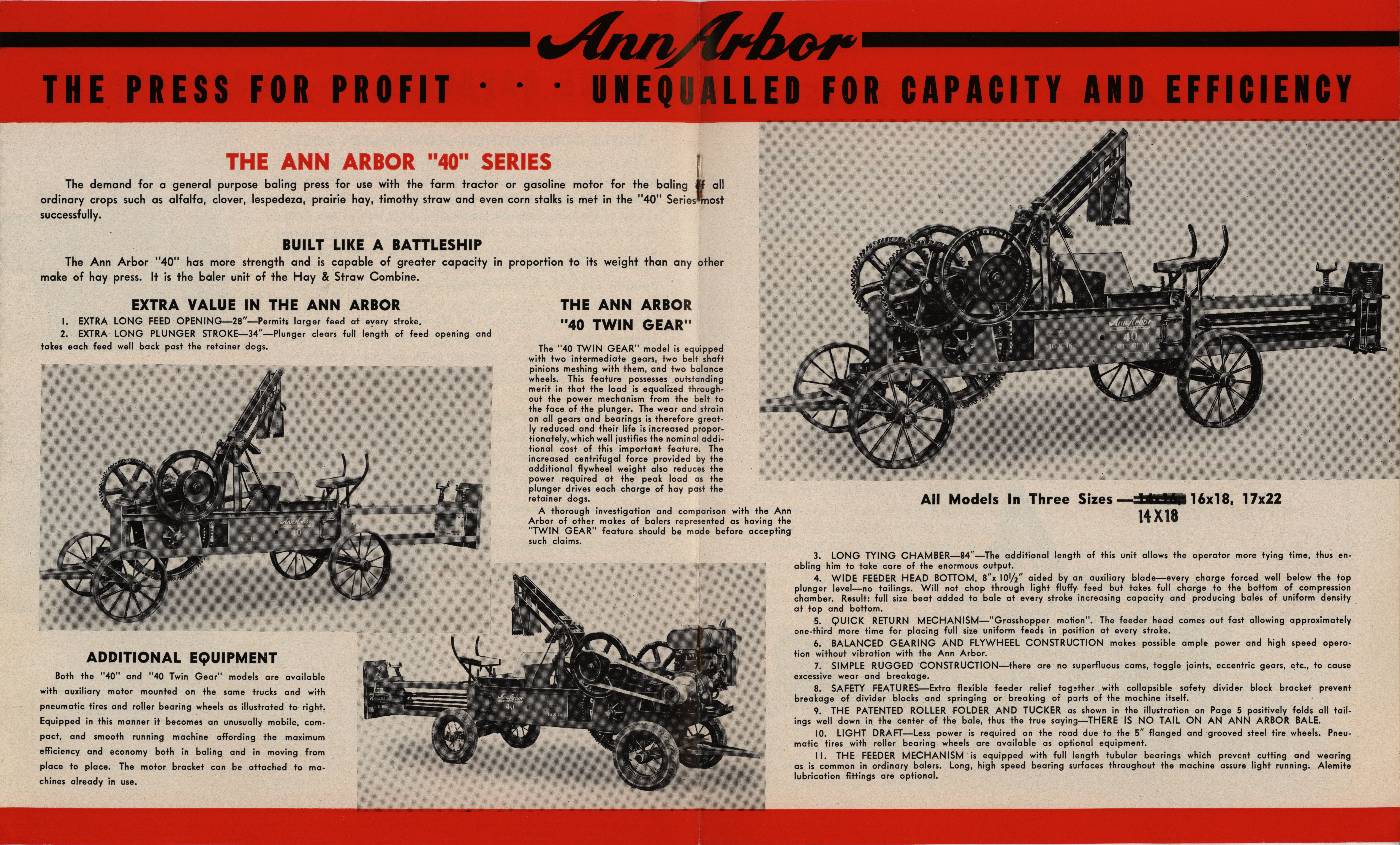 - "The Ann Arbor Machine Company Power Baling Presses catalog", Agricultural Machinery Literature Collection, Iowa State University Library Digital Collections