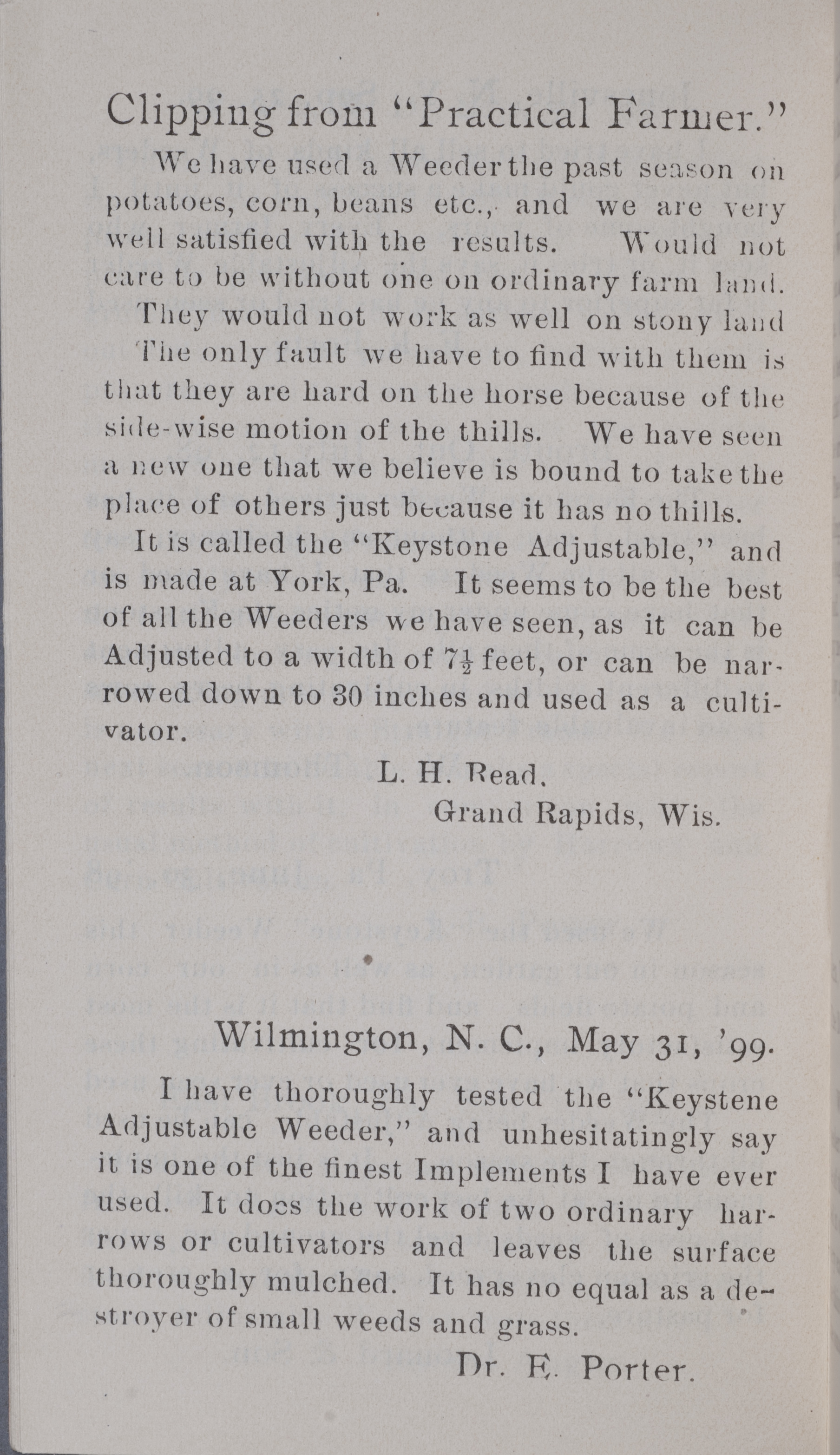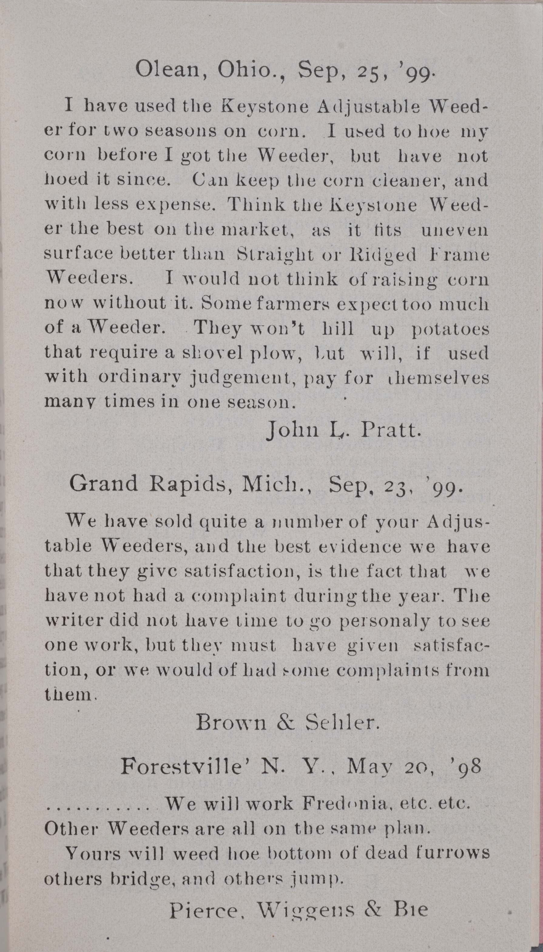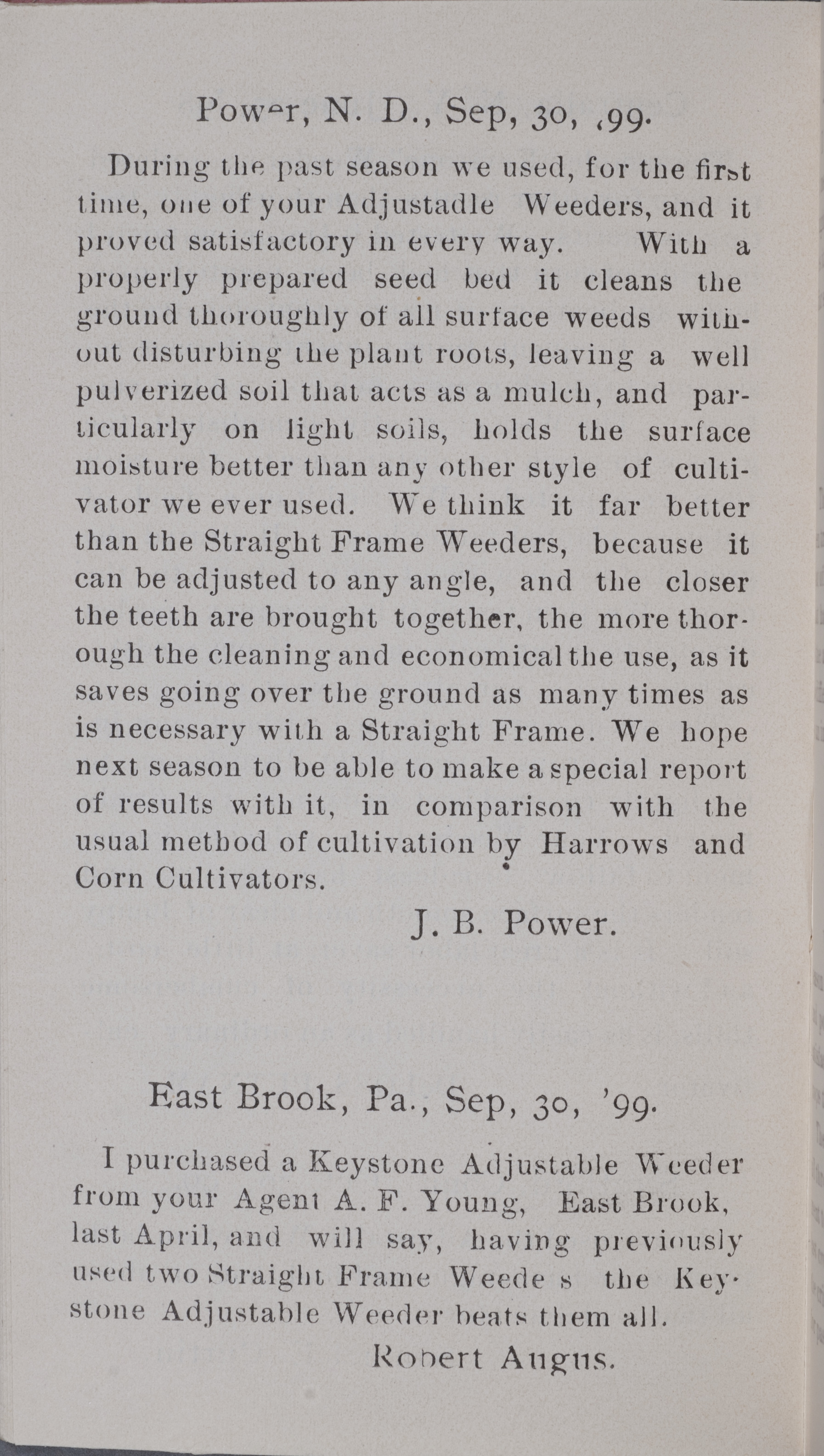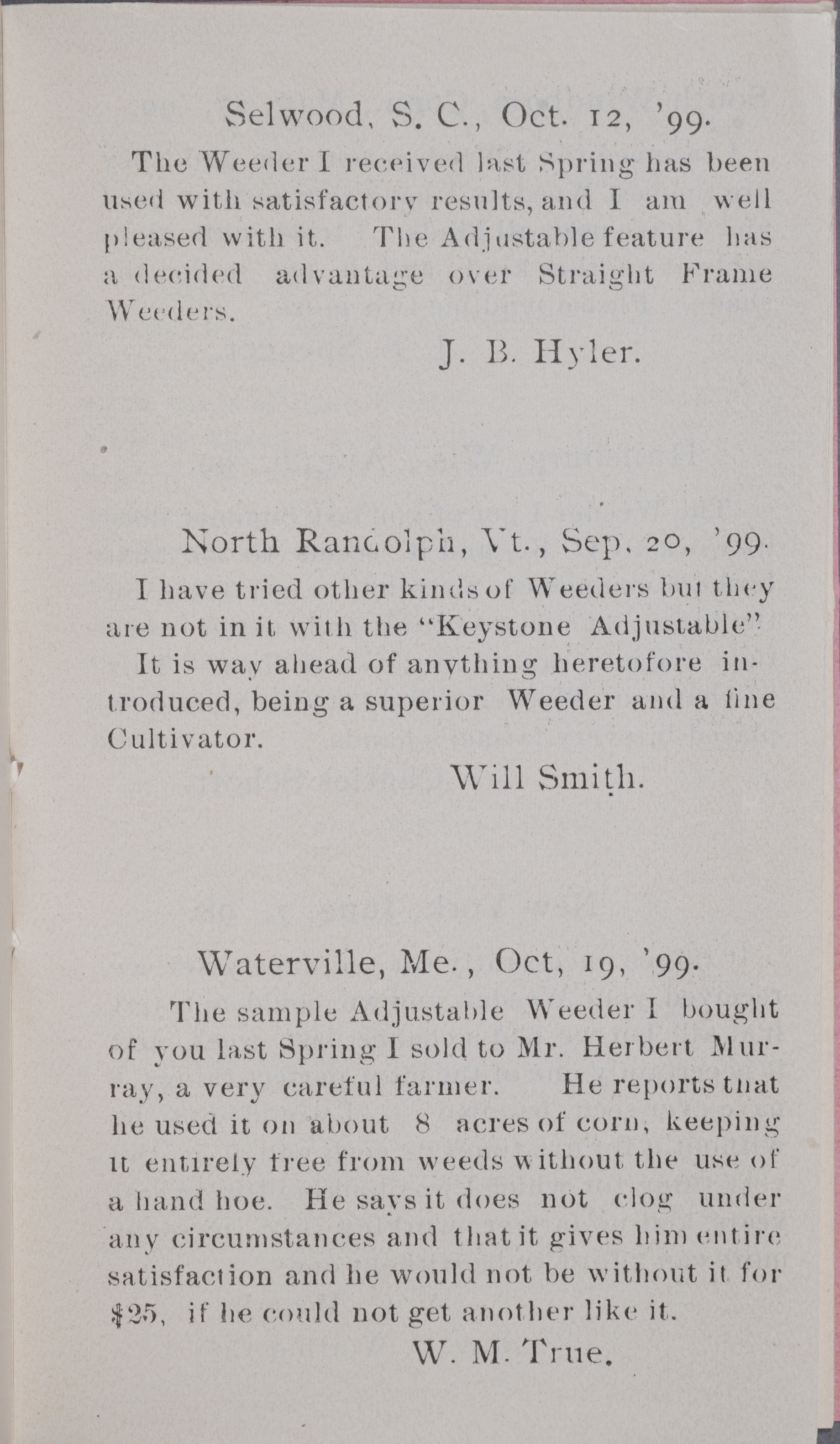 - "Keystone Farm Machine Company A Few Hints to Progressive Farmers", Agricultural Machinery Literature Collection, Iowa State University Library Digital Collections