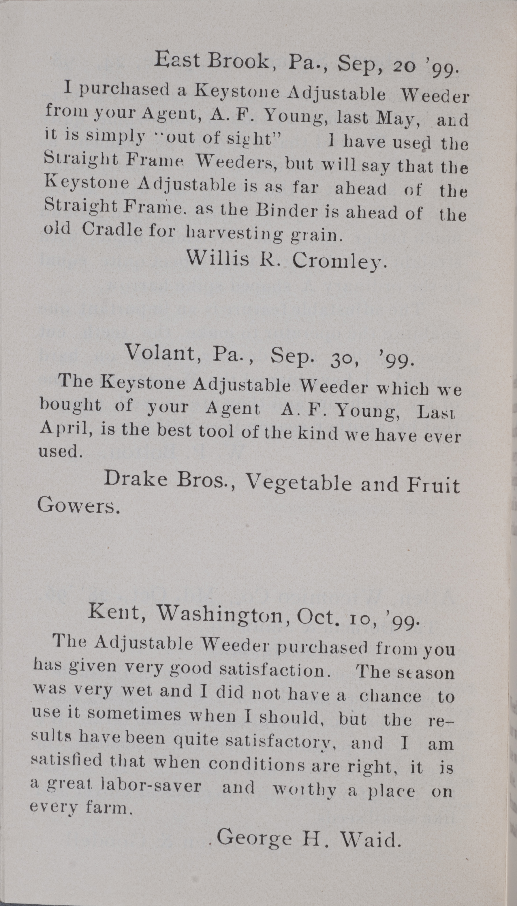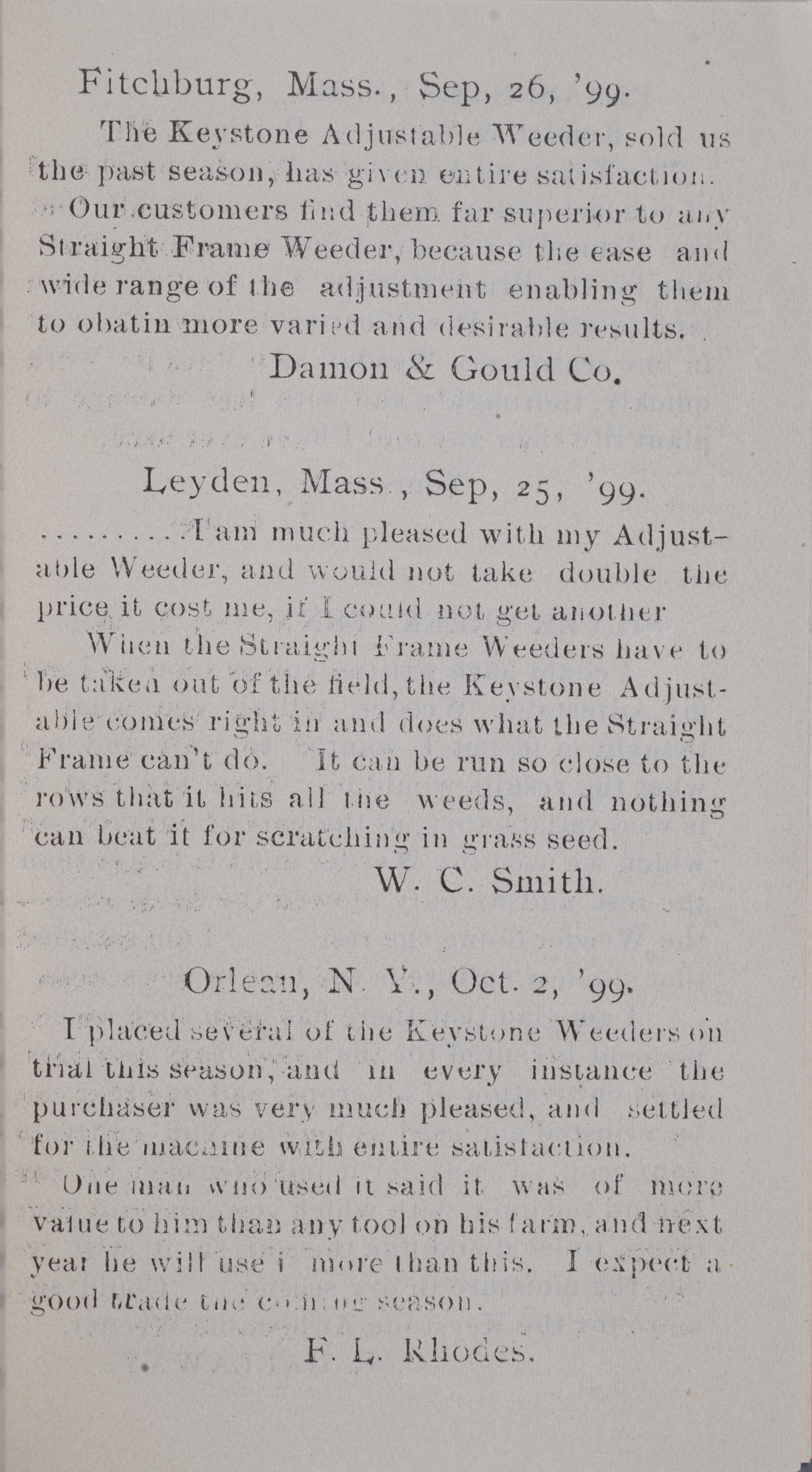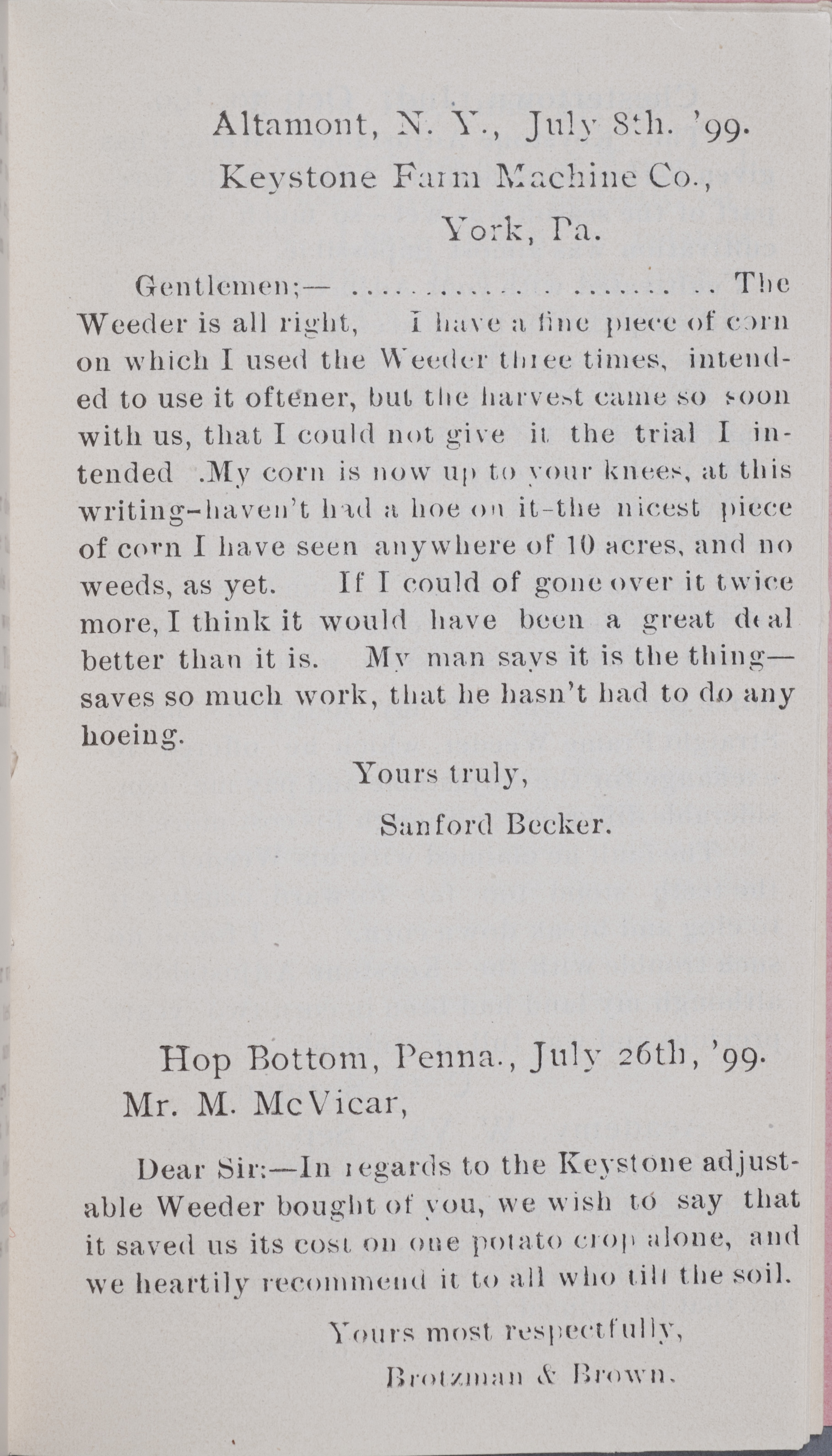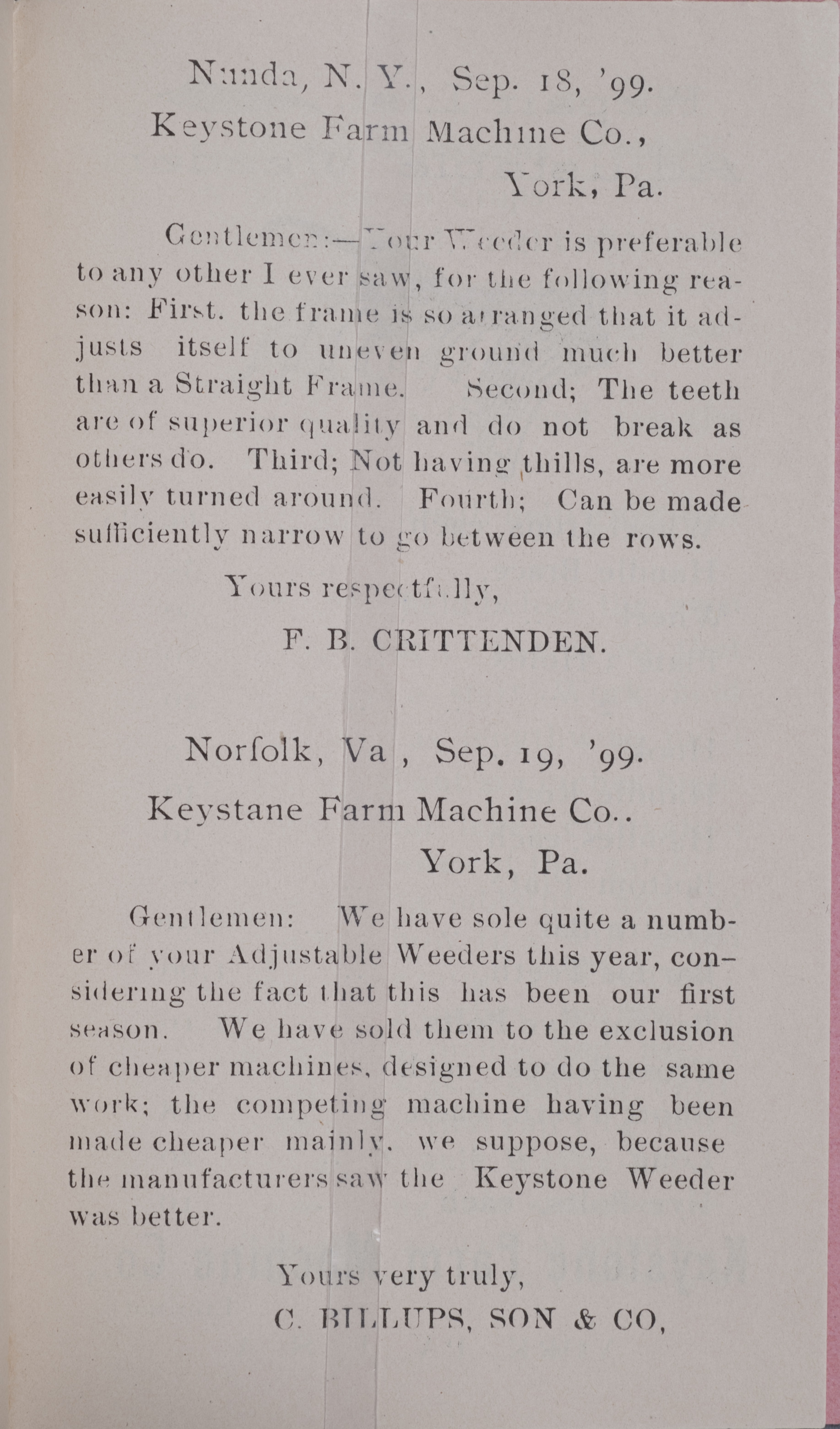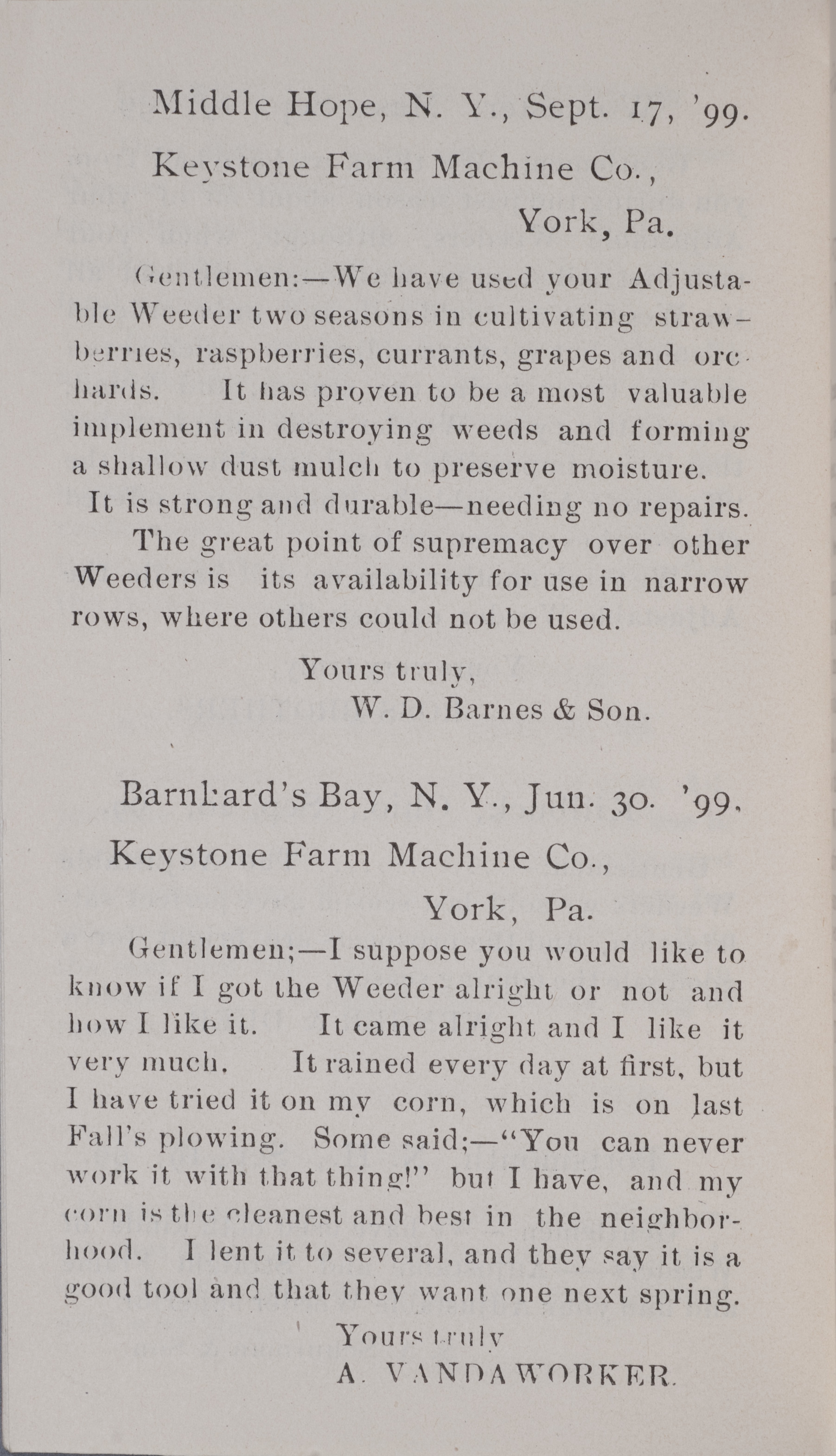 - "Keystone Farm Machine Company A Few Hints to Progressive Farmers", Agricultural Machinery Literature Collection, Iowa State University Library Digital Collections