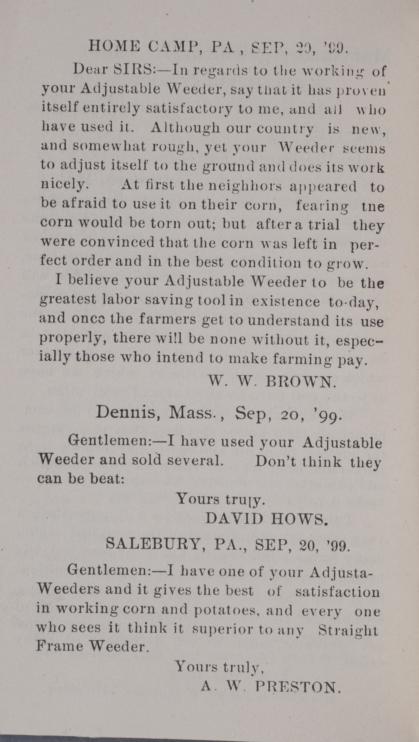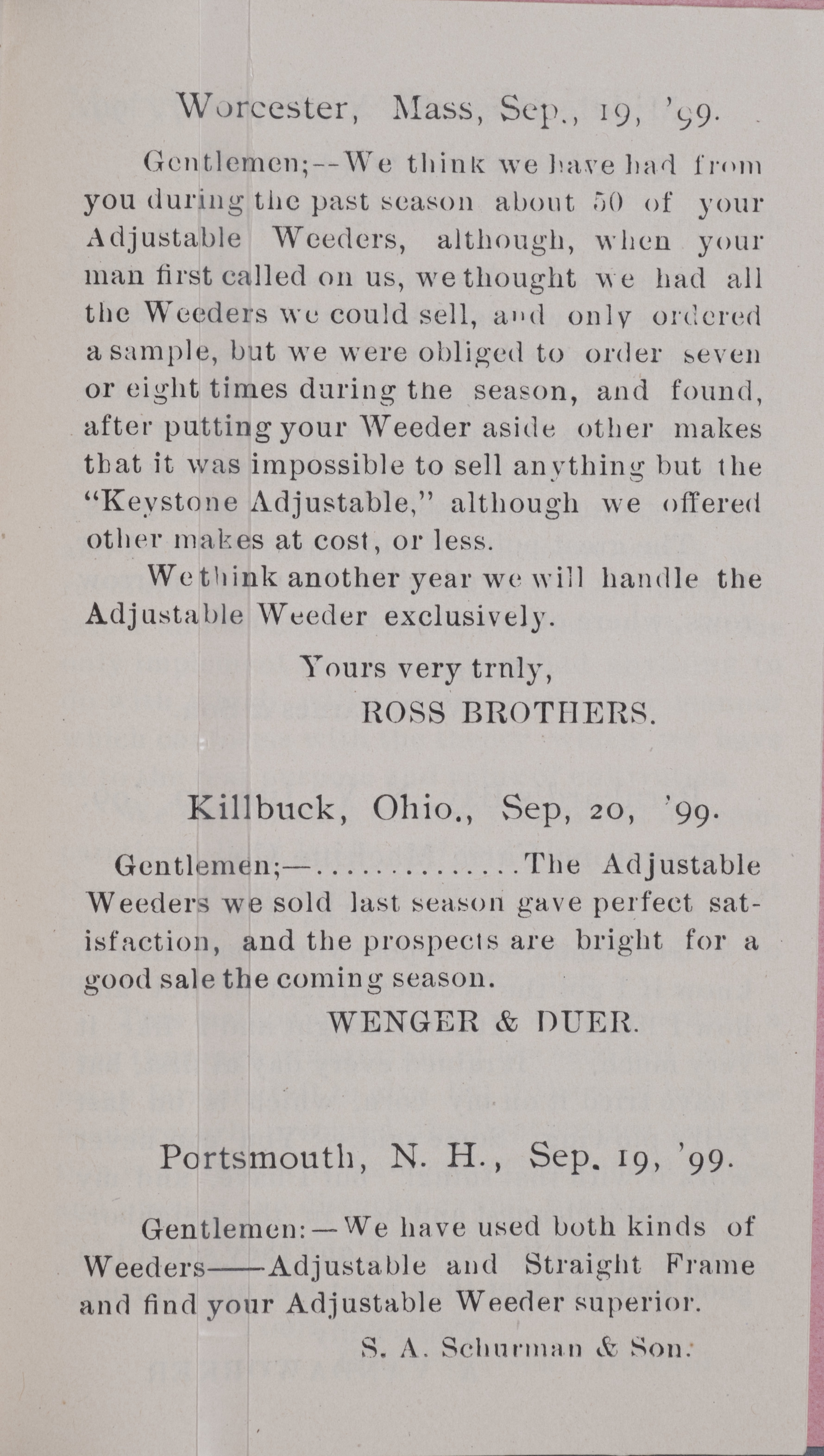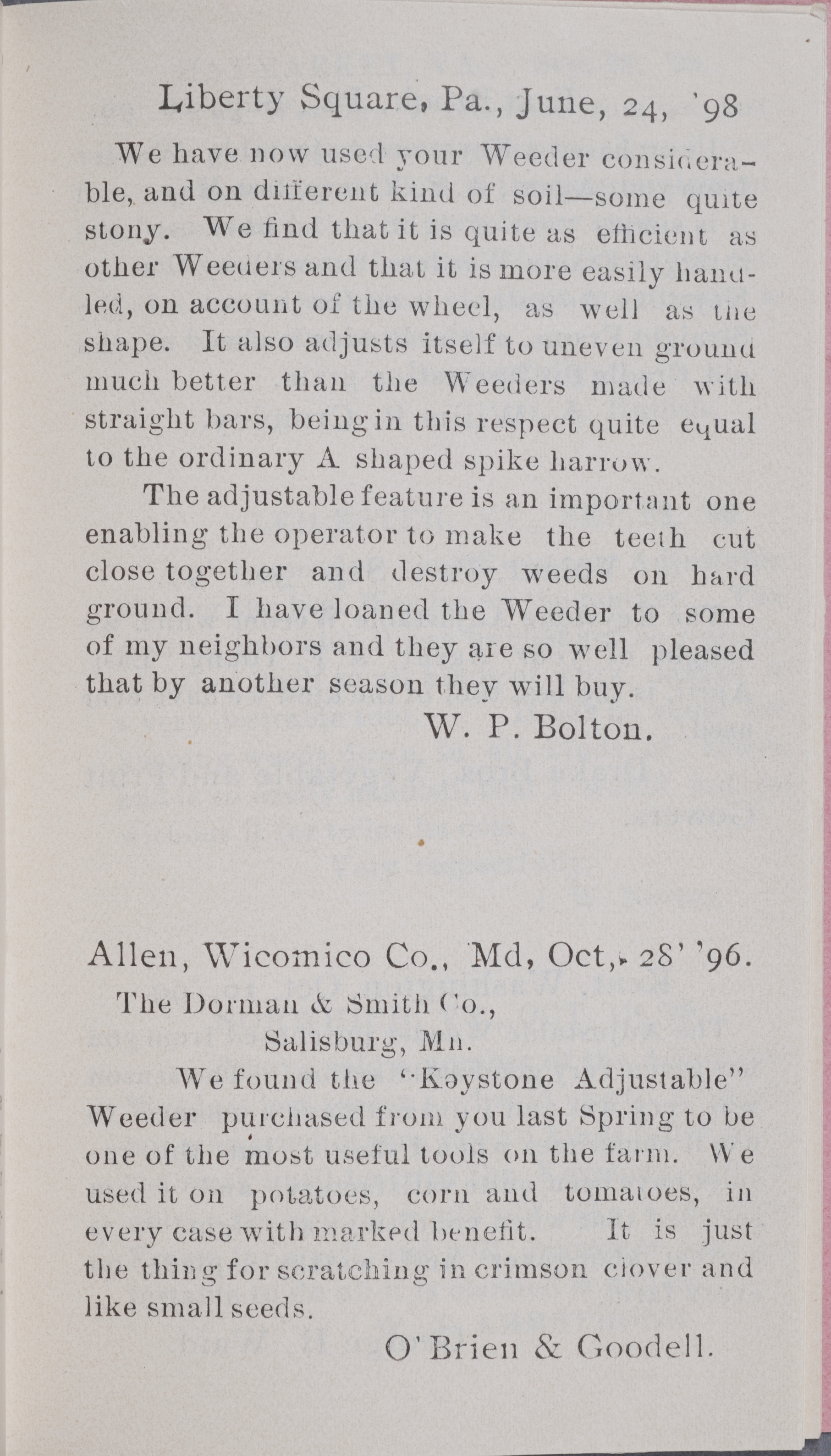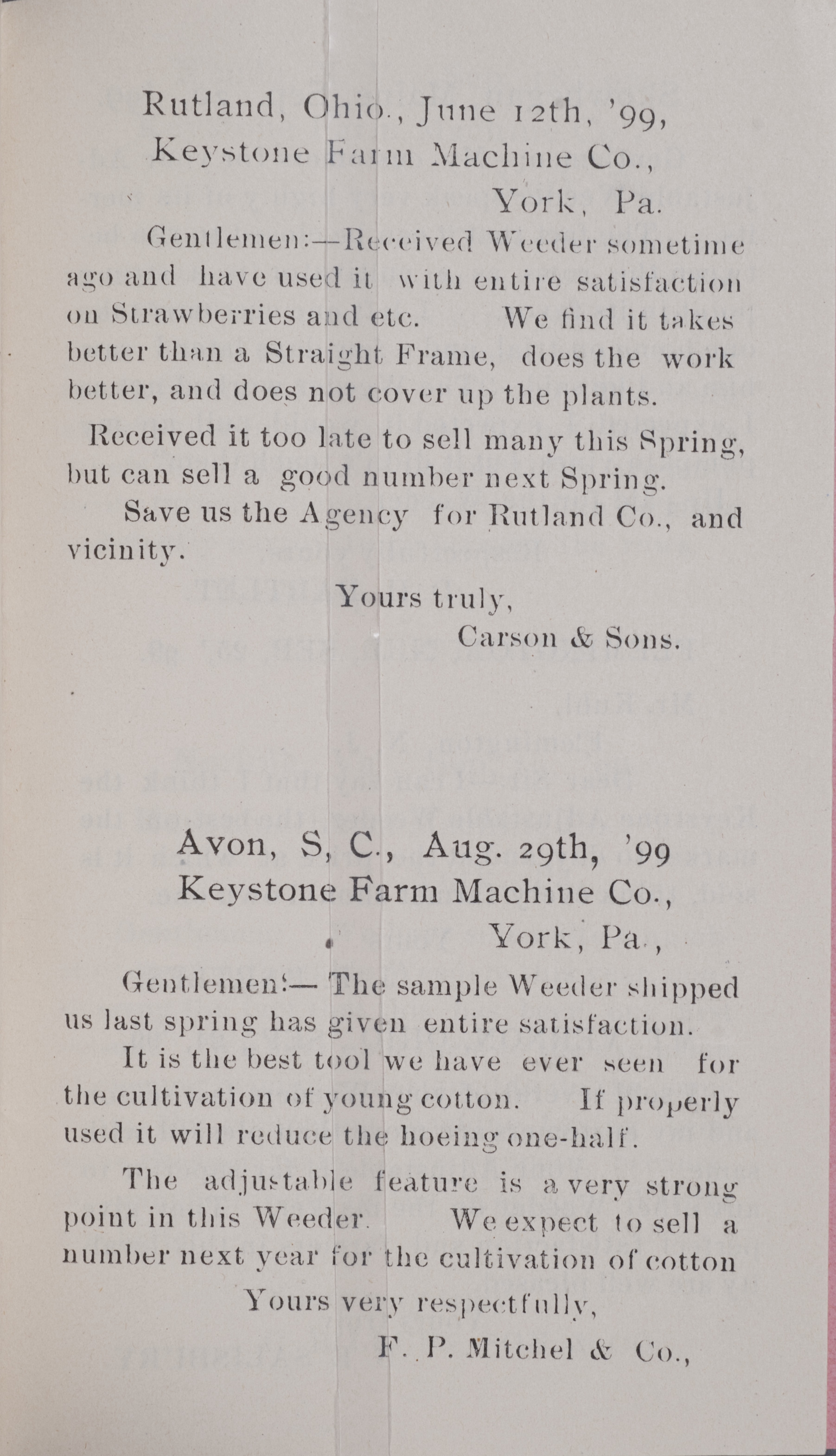 - "Keystone Farm Machine Company A Few Hints to Progressive Farmers", Agricultural Machinery Literature Collection, Iowa State University Library Digital Collections