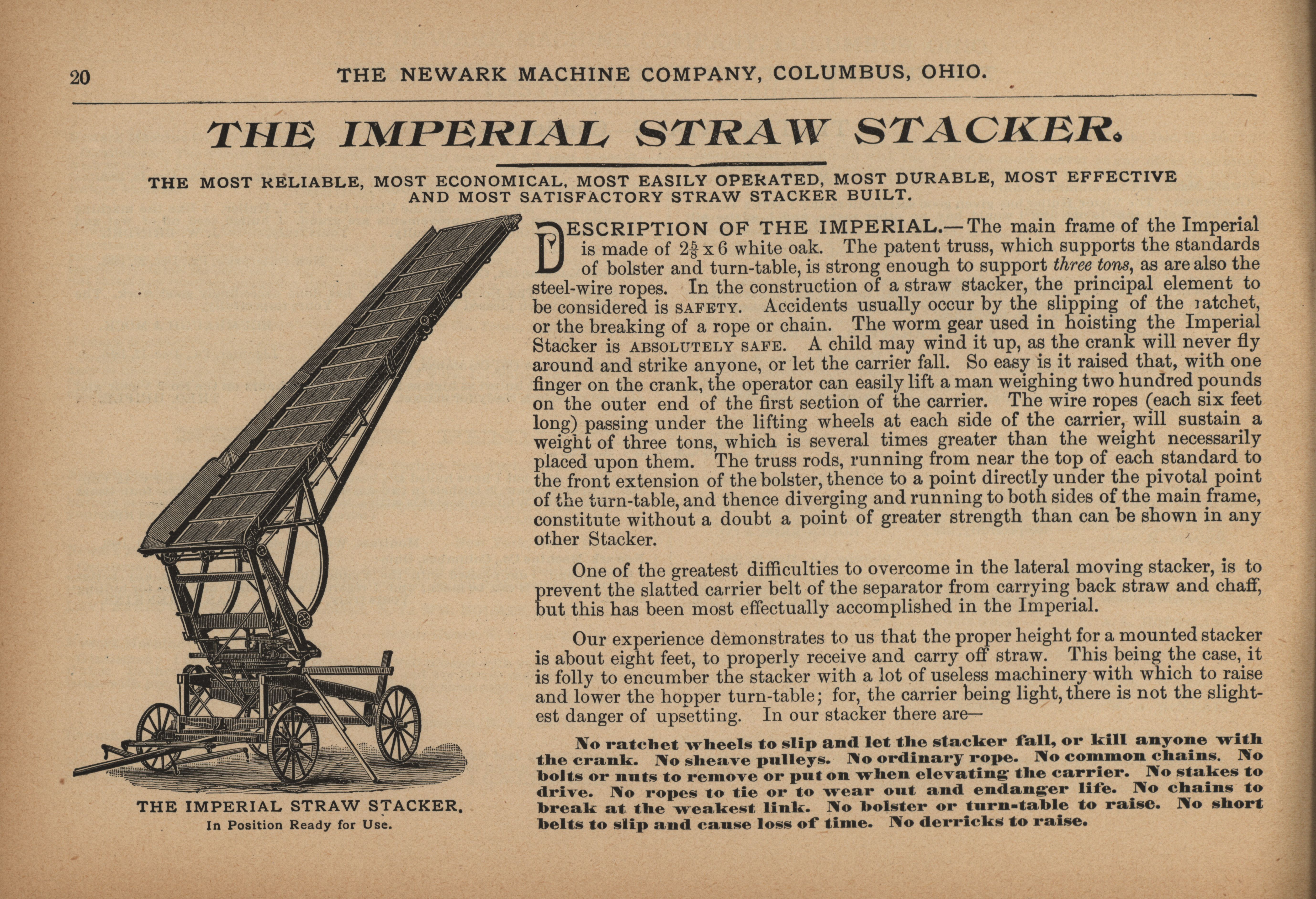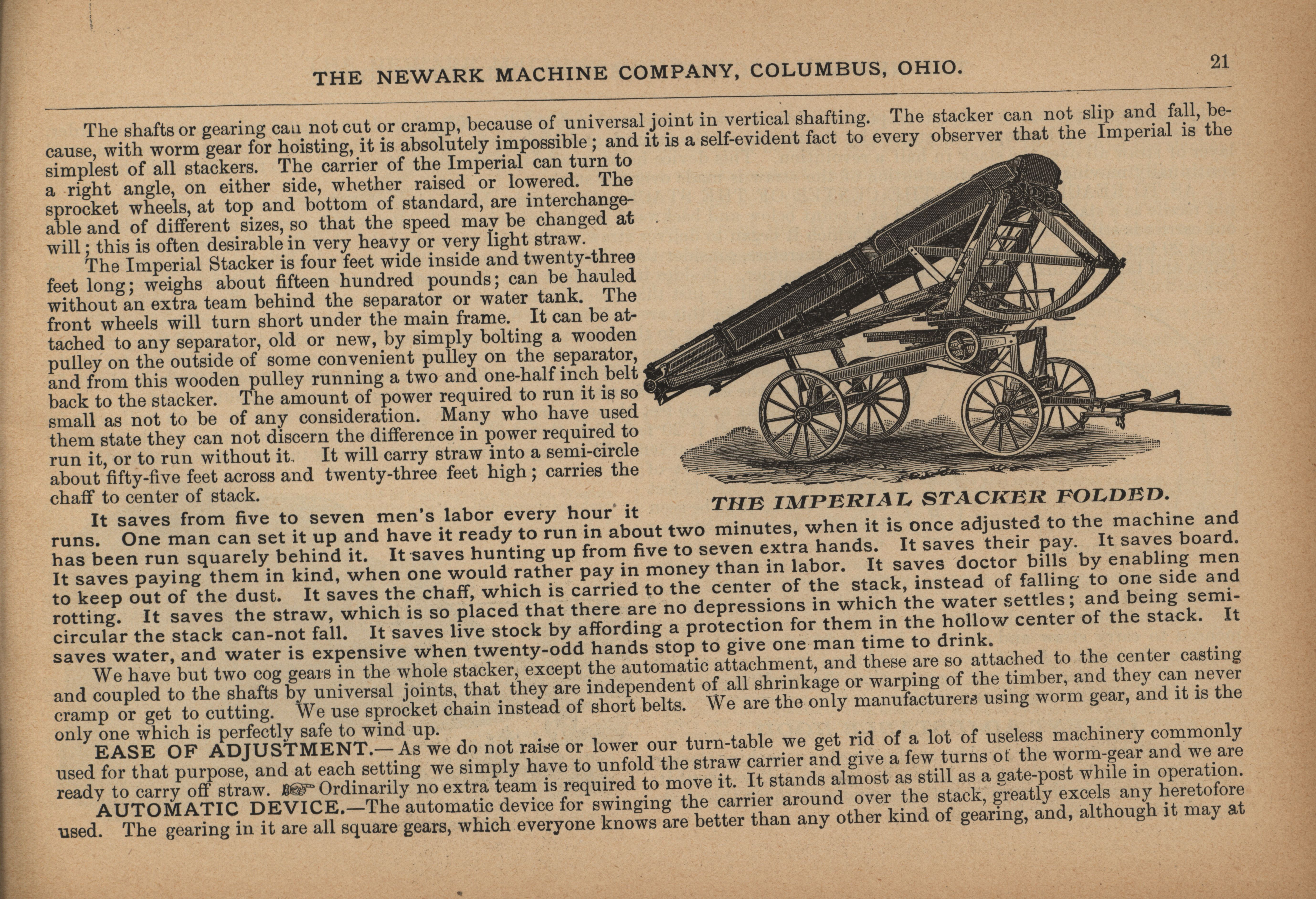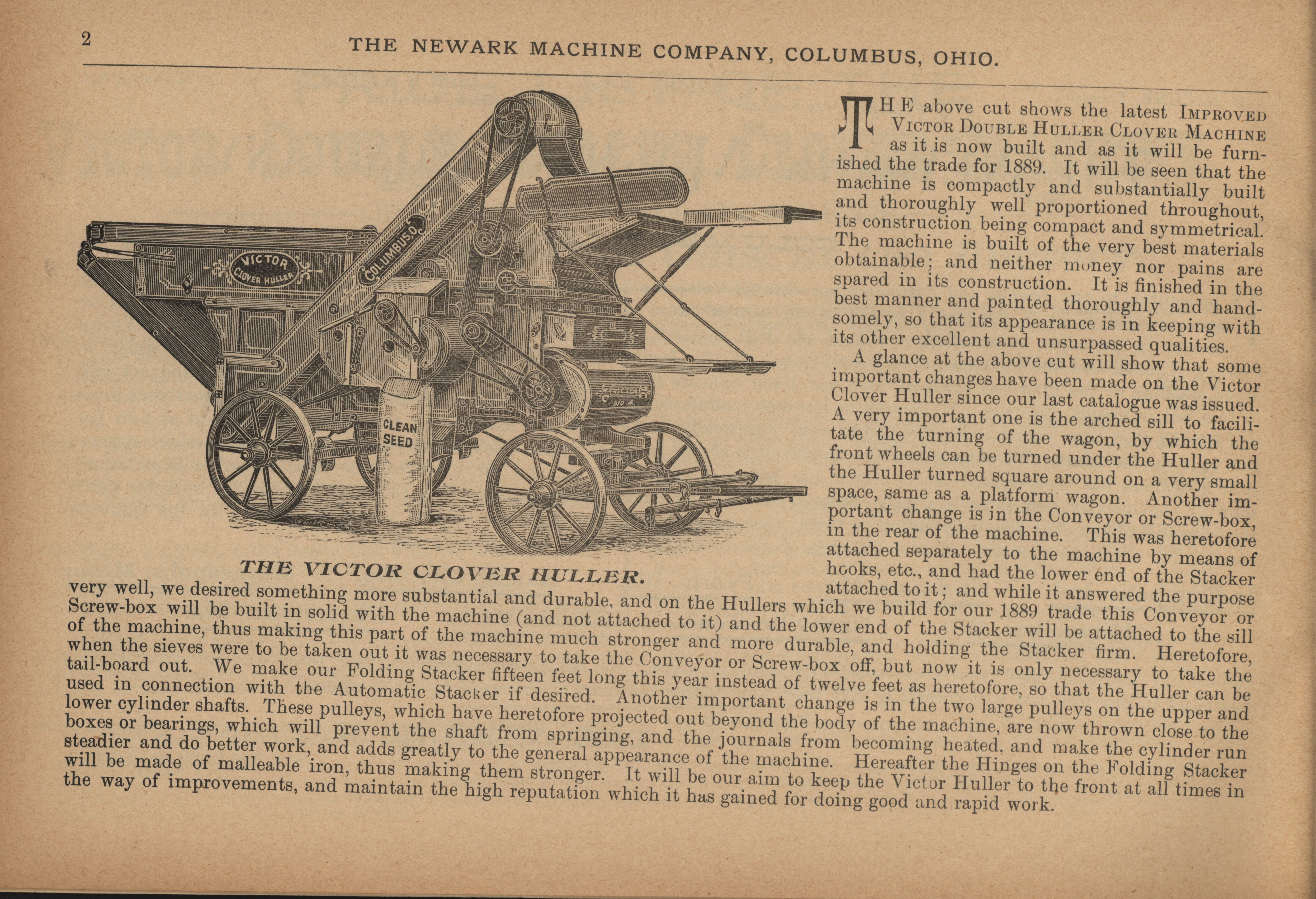 - Catalog describing the agricultural machinery offered by The Newark Machine Company in 1889.