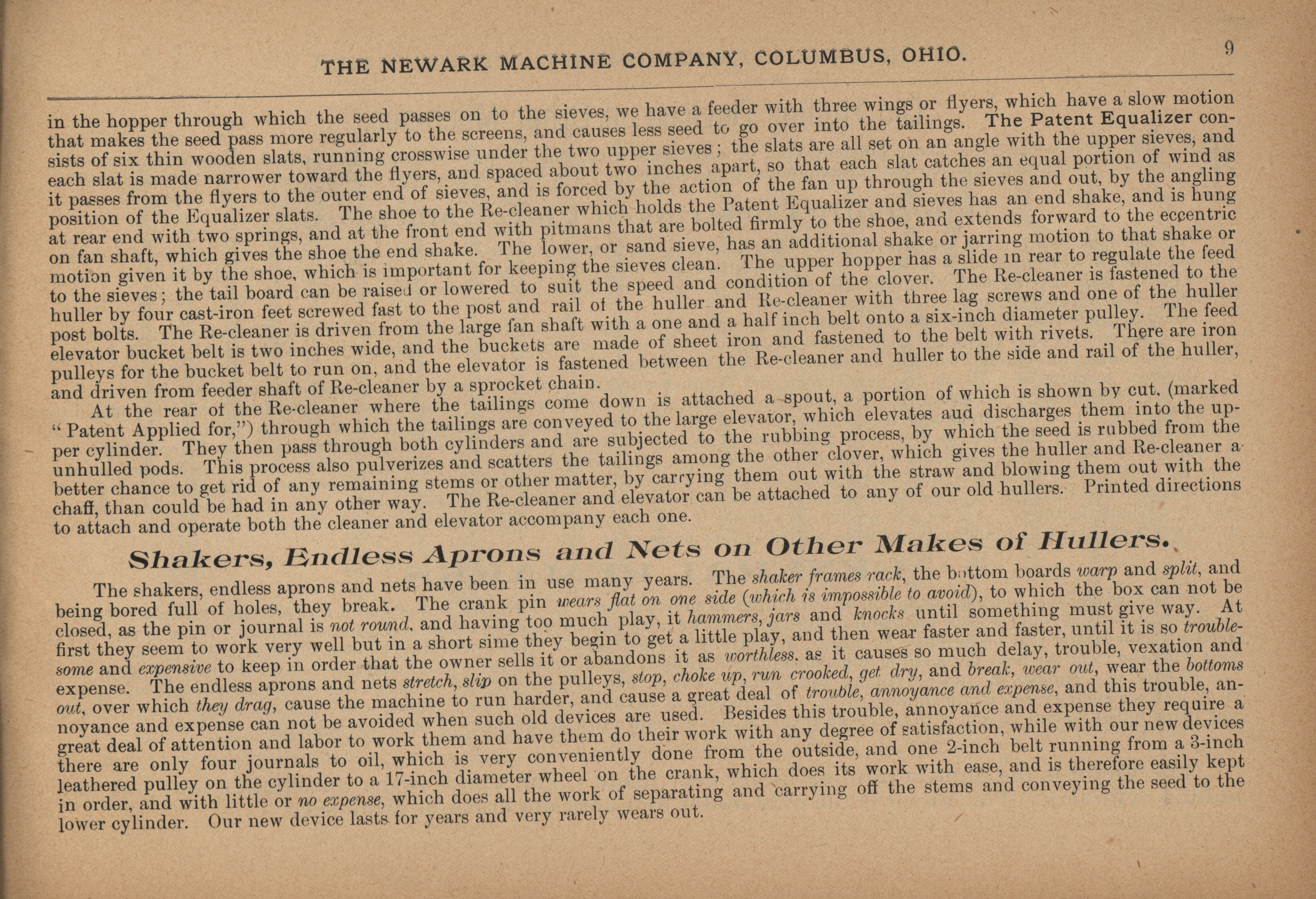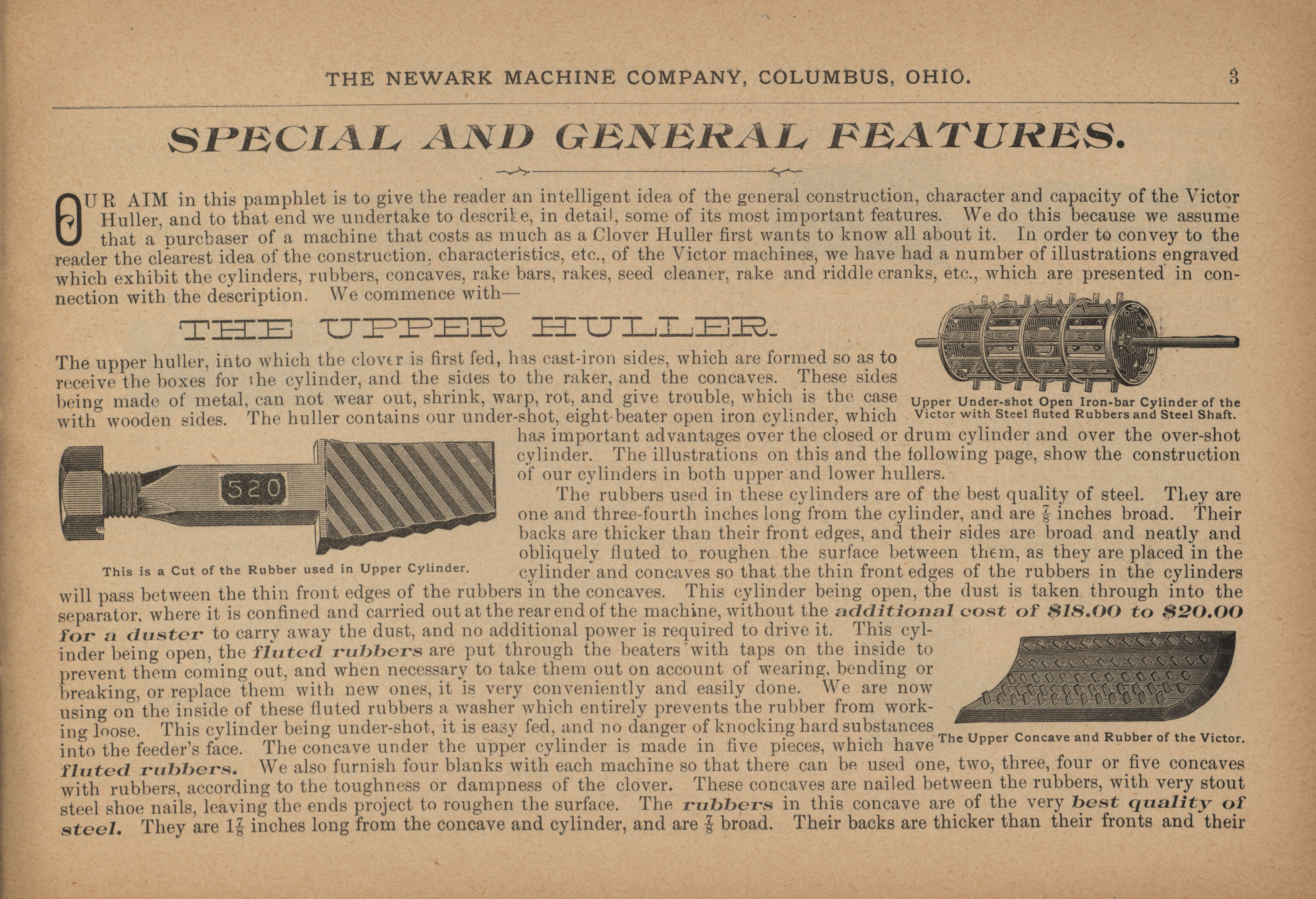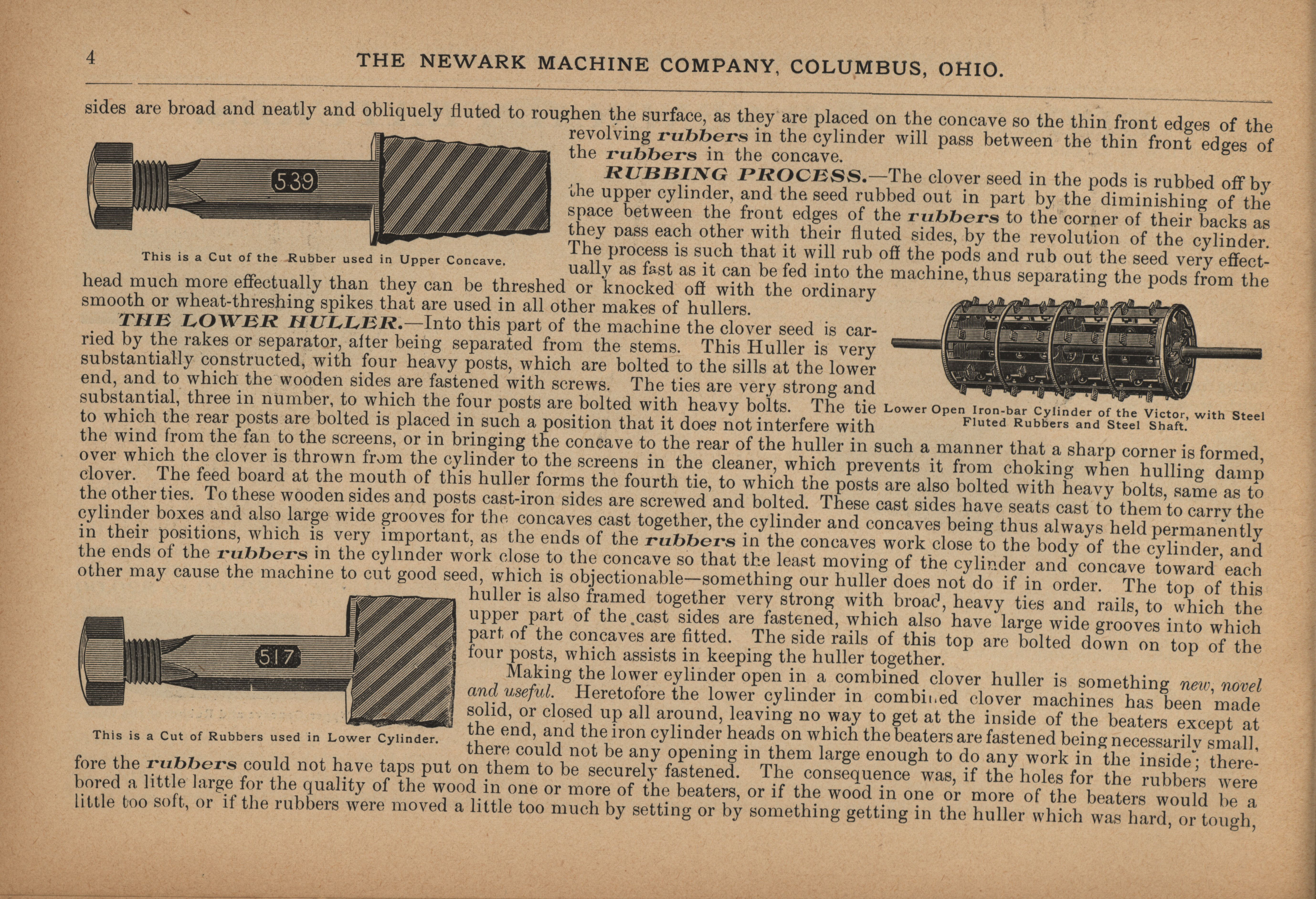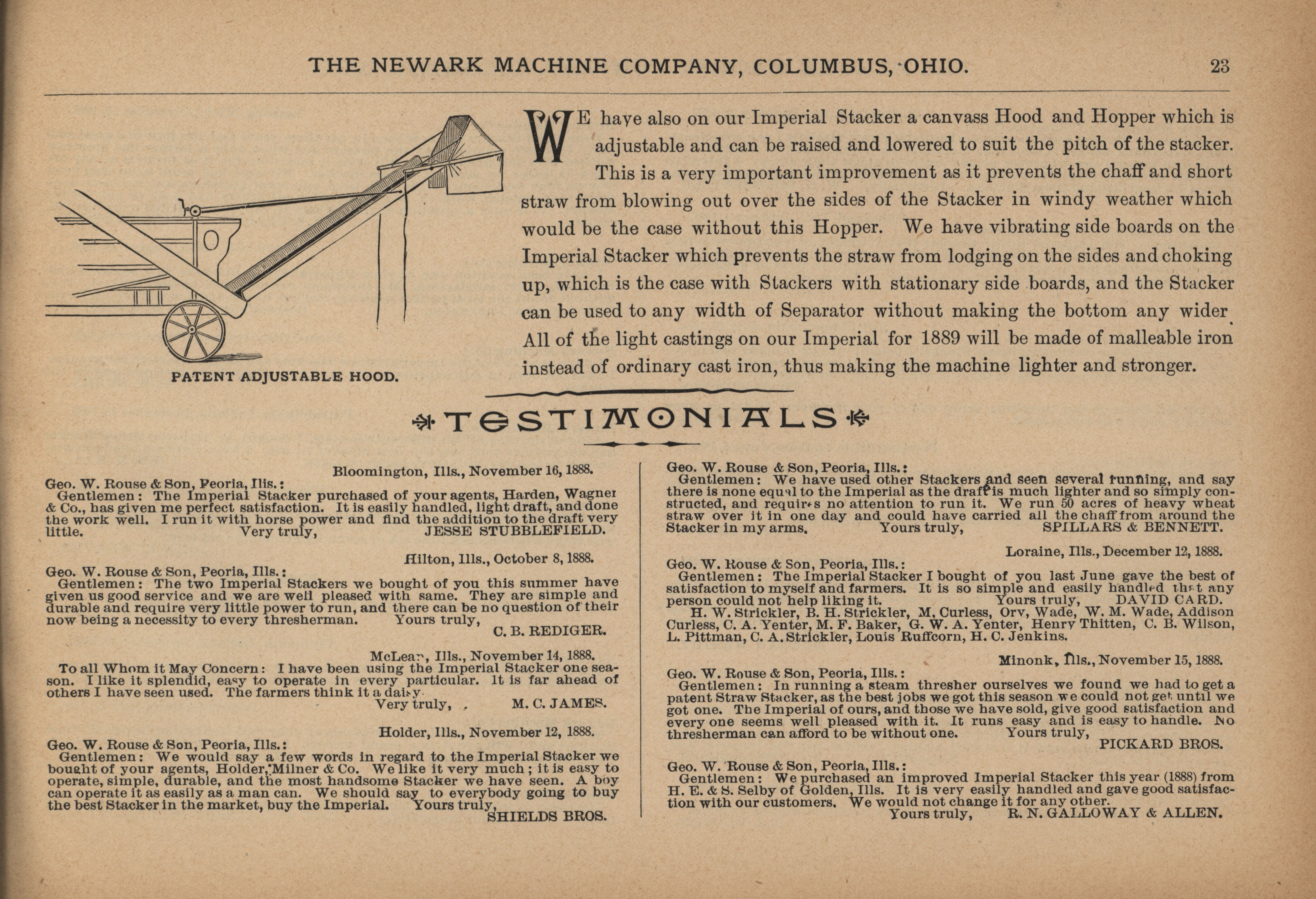 - Catalog describing the agricultural machinery offered by The Newark Machine Company in 1889.