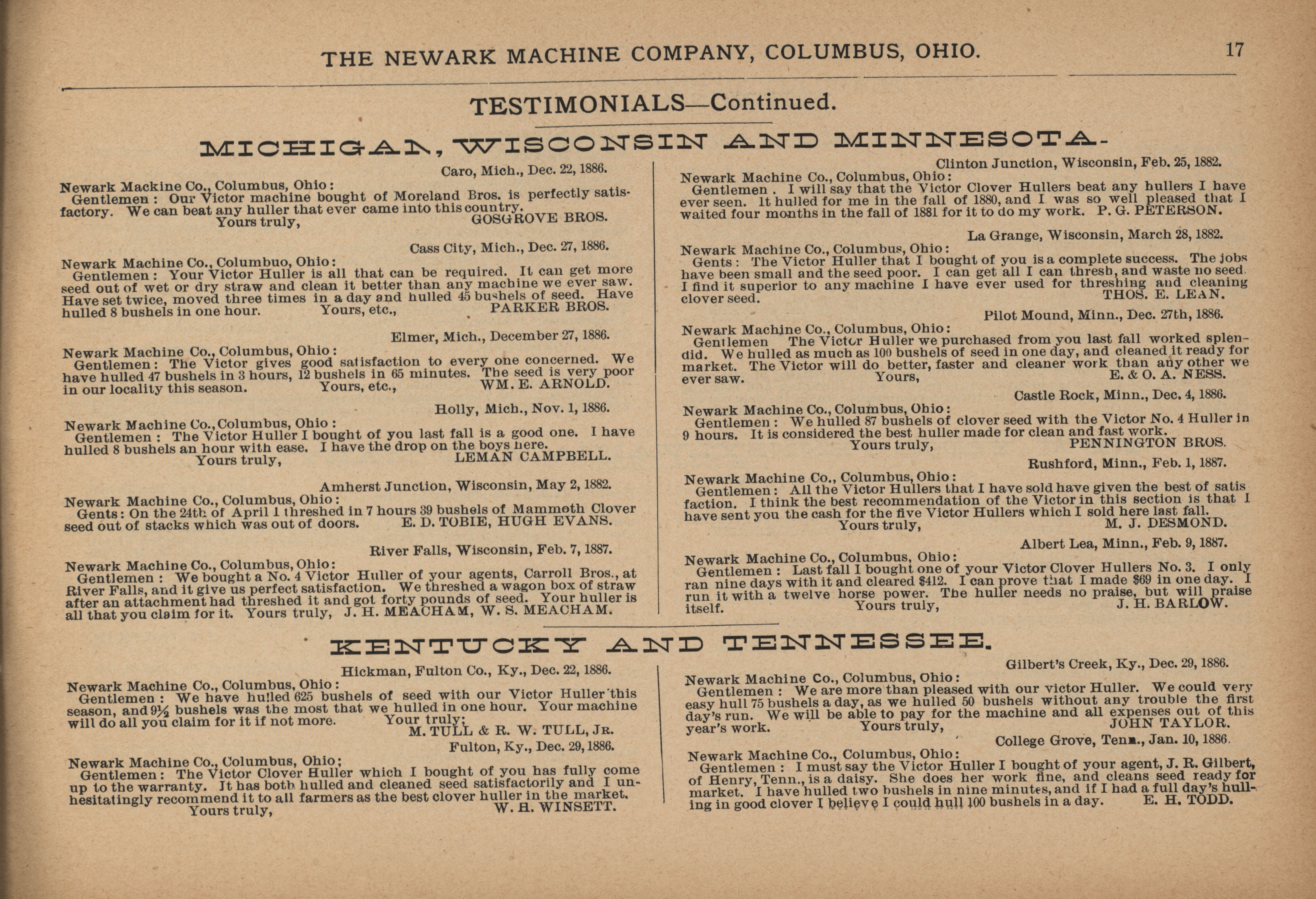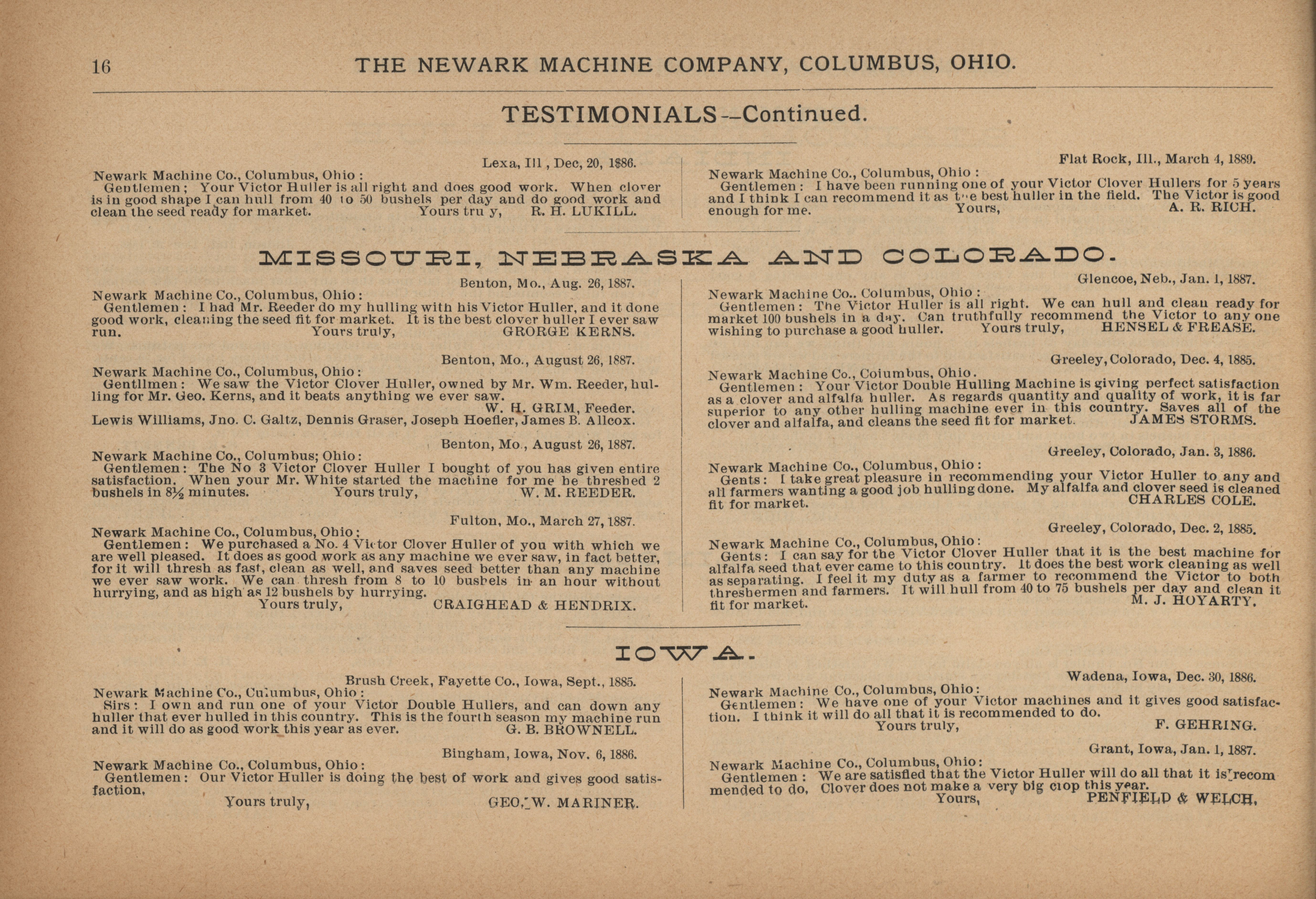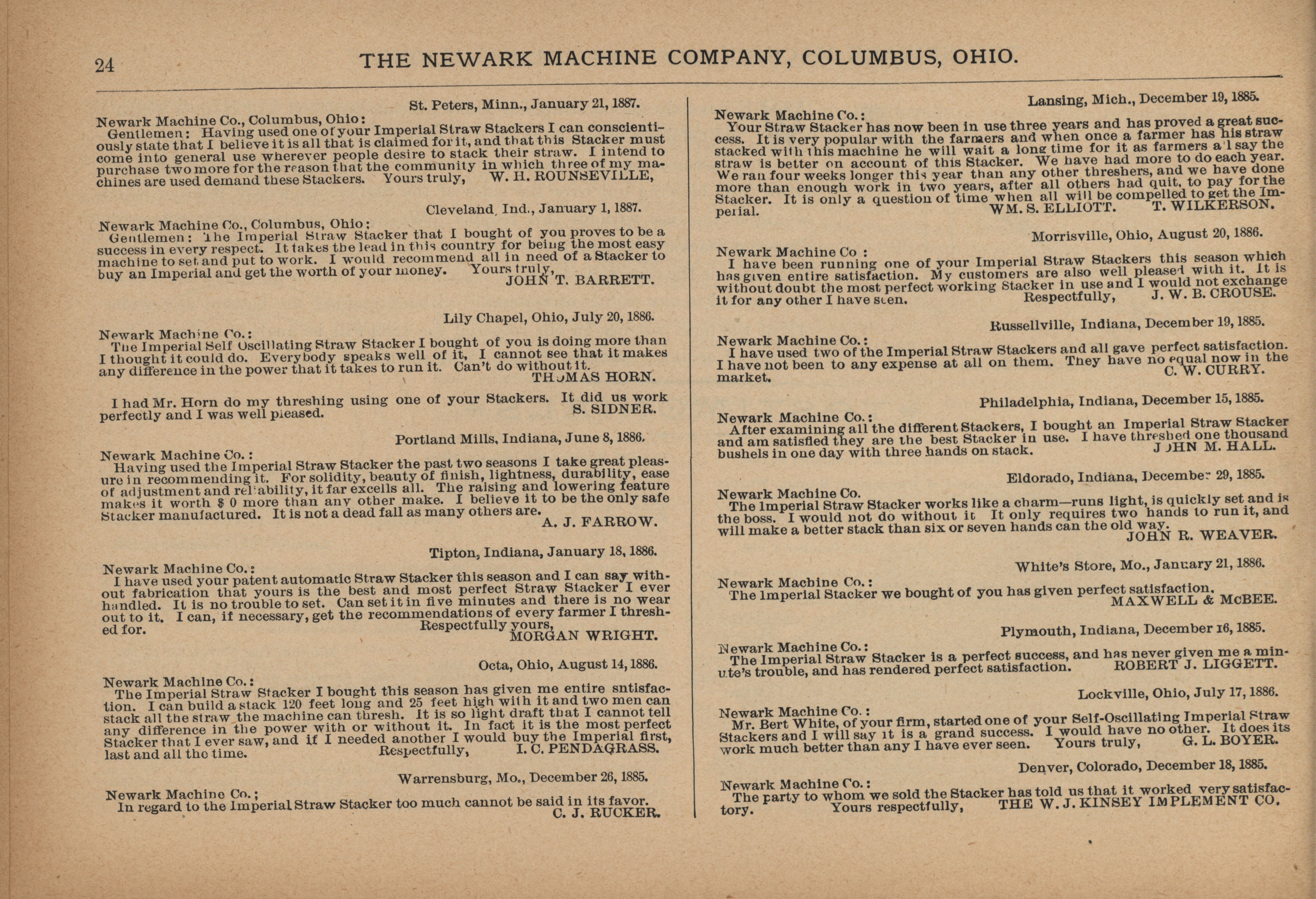 - "The Newark Machine Company 1889 catalog", Agricultural Machinery Literature Collection, Iowa State University Library Digital Collections