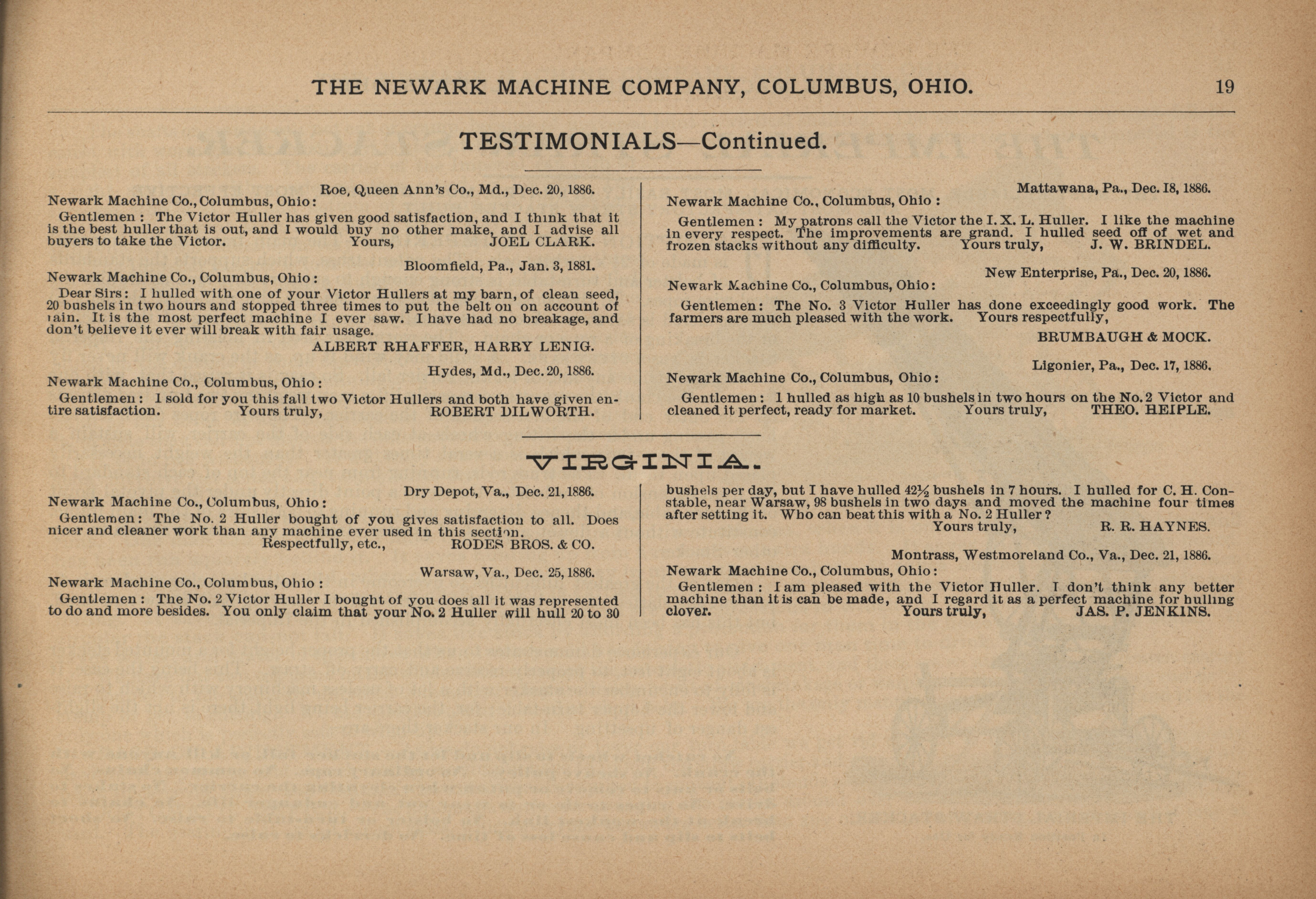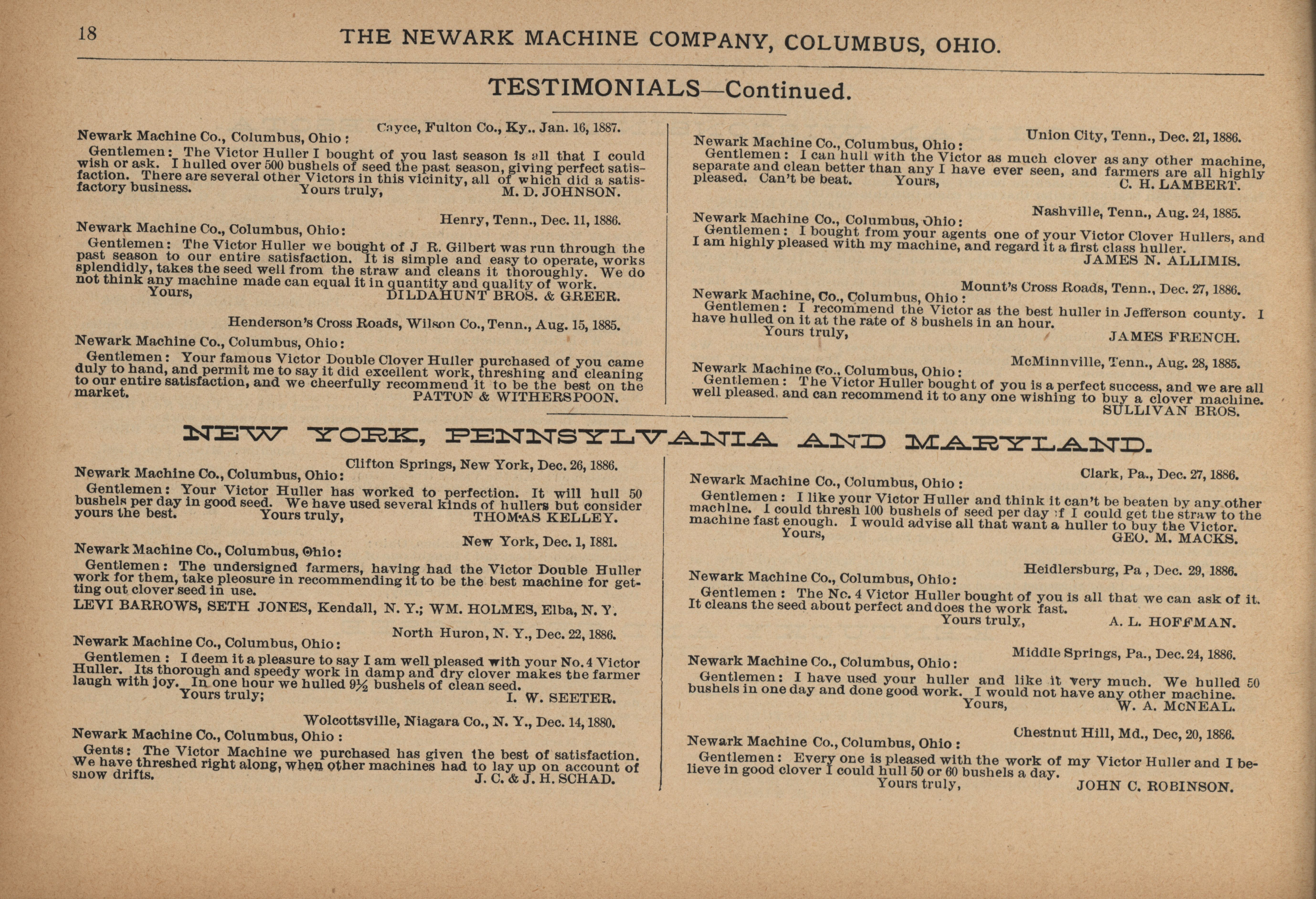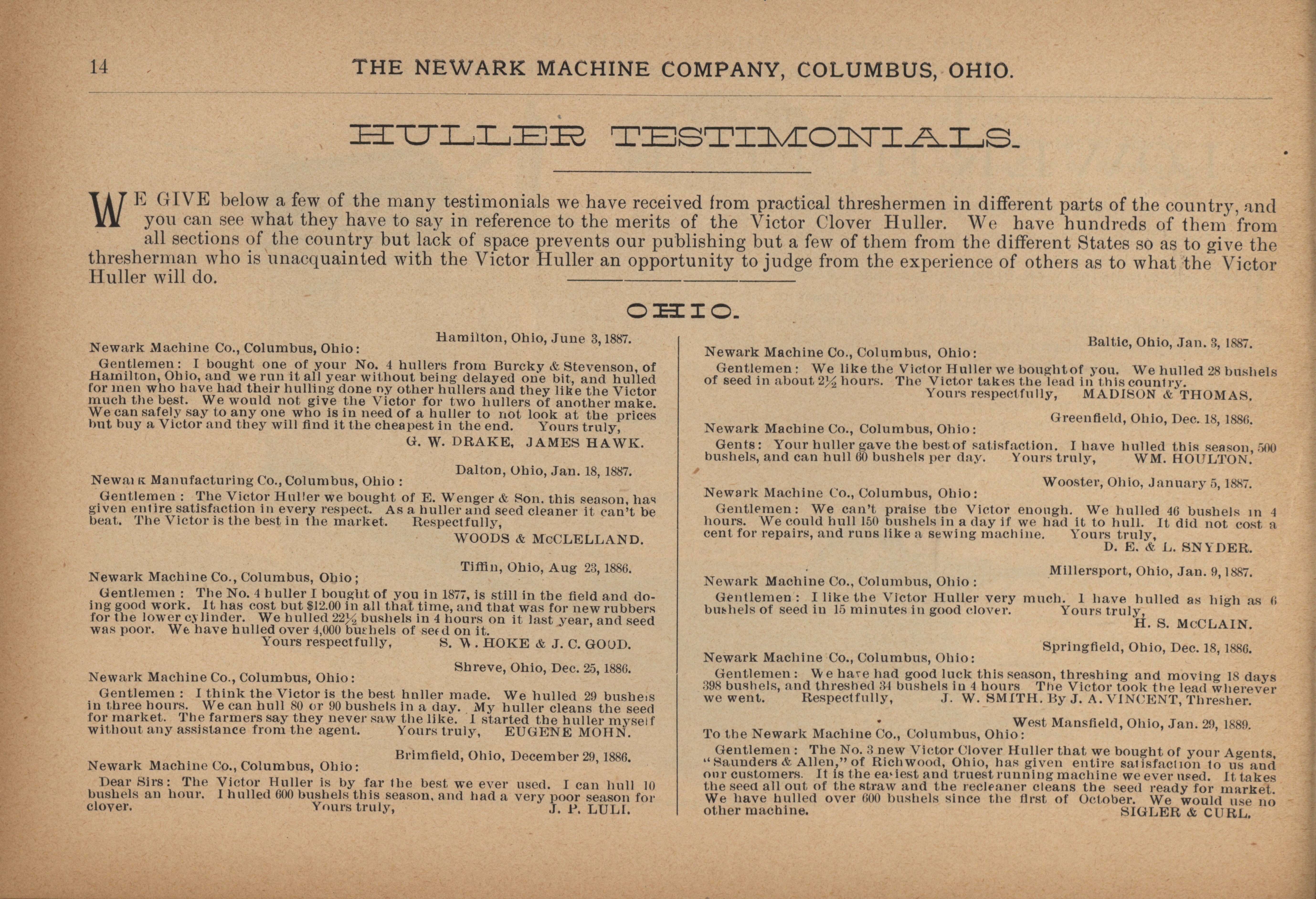 - "The Newark Machine Company 1889 catalog", Agricultural Machinery Literature Collection, Iowa State University Library Digital Collections