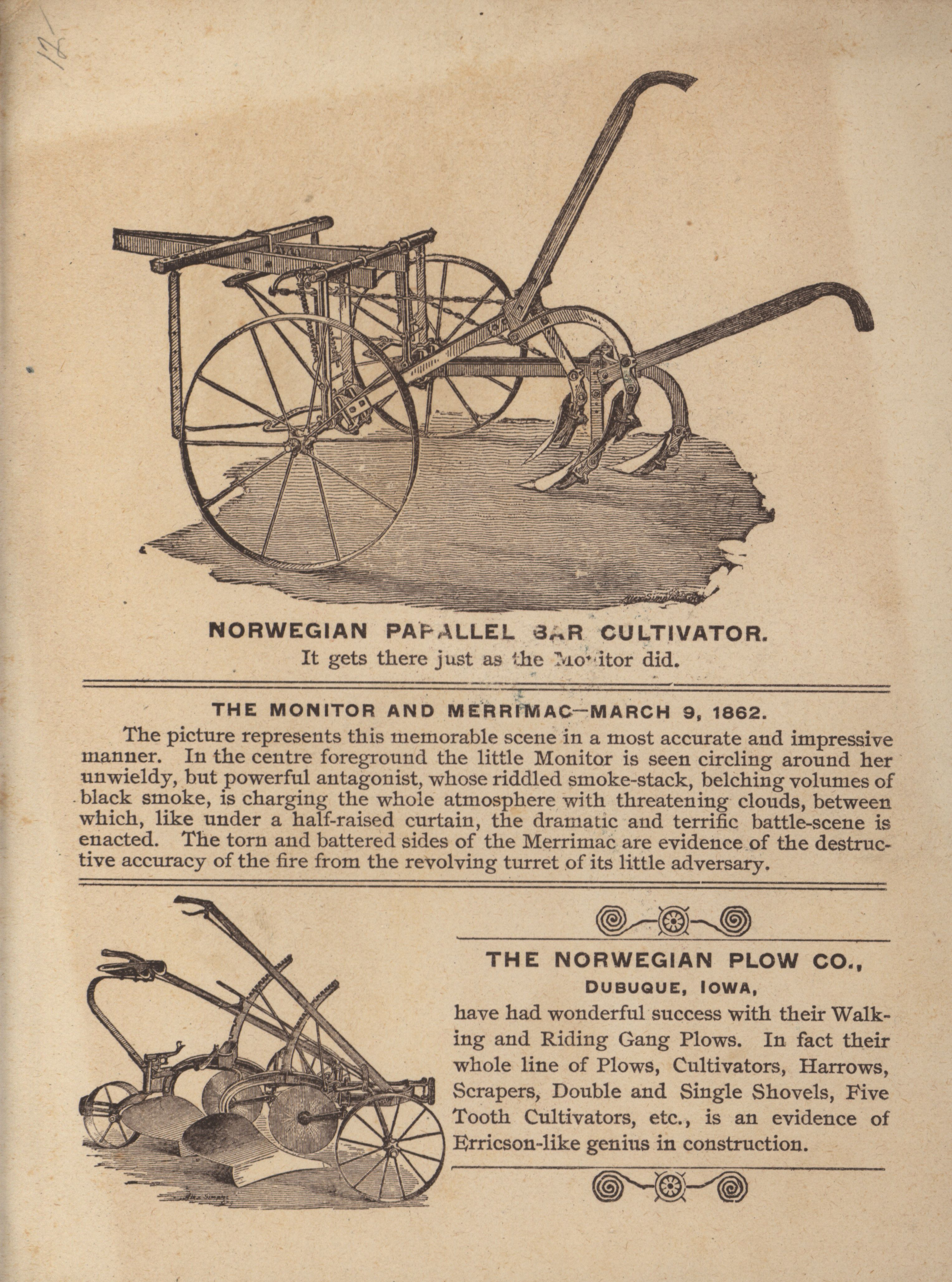 - "Norwegian Plow Company Civil War Battle advertisements", Agricultural Machinery Literature Collection, Iowa State University Library Digital Collections