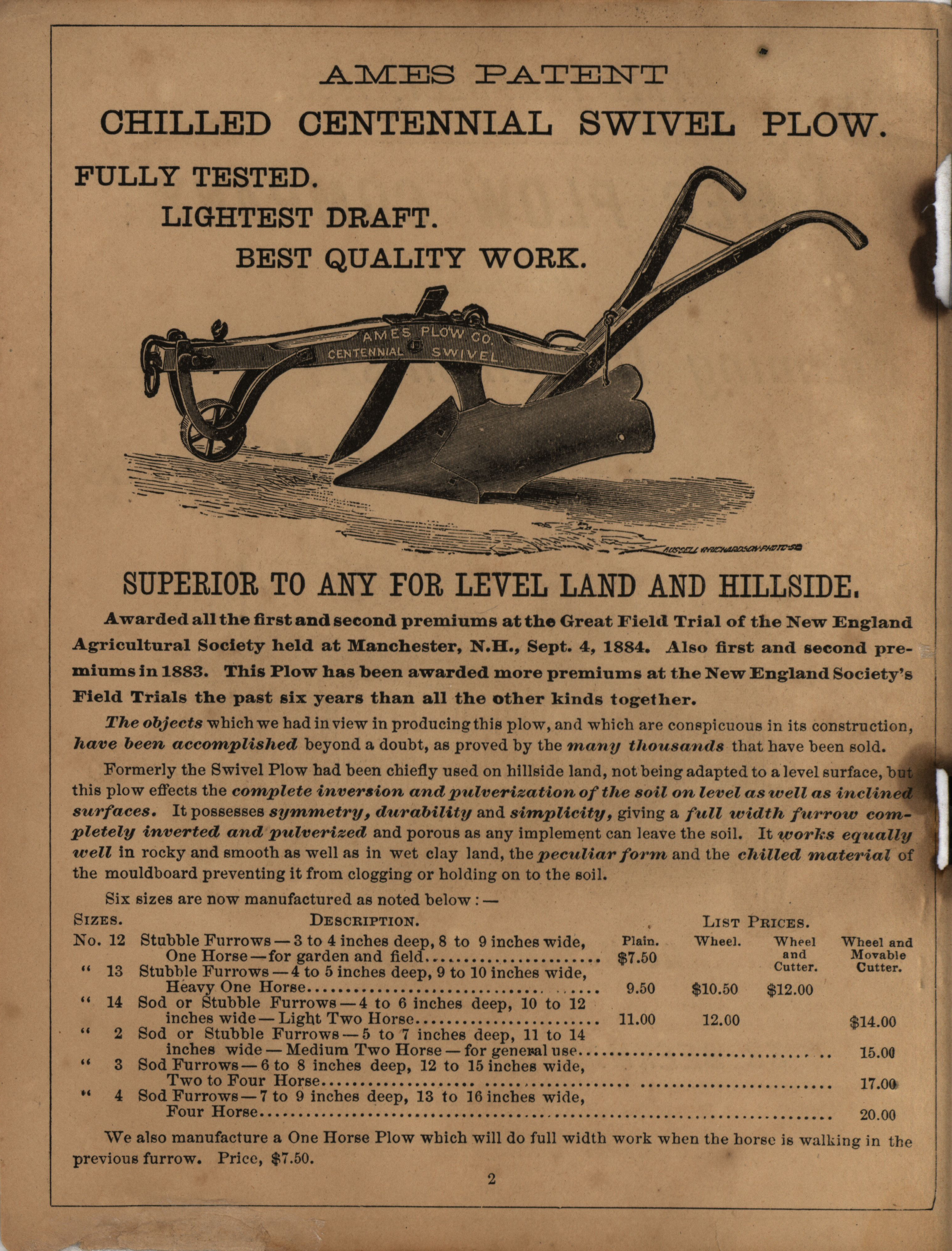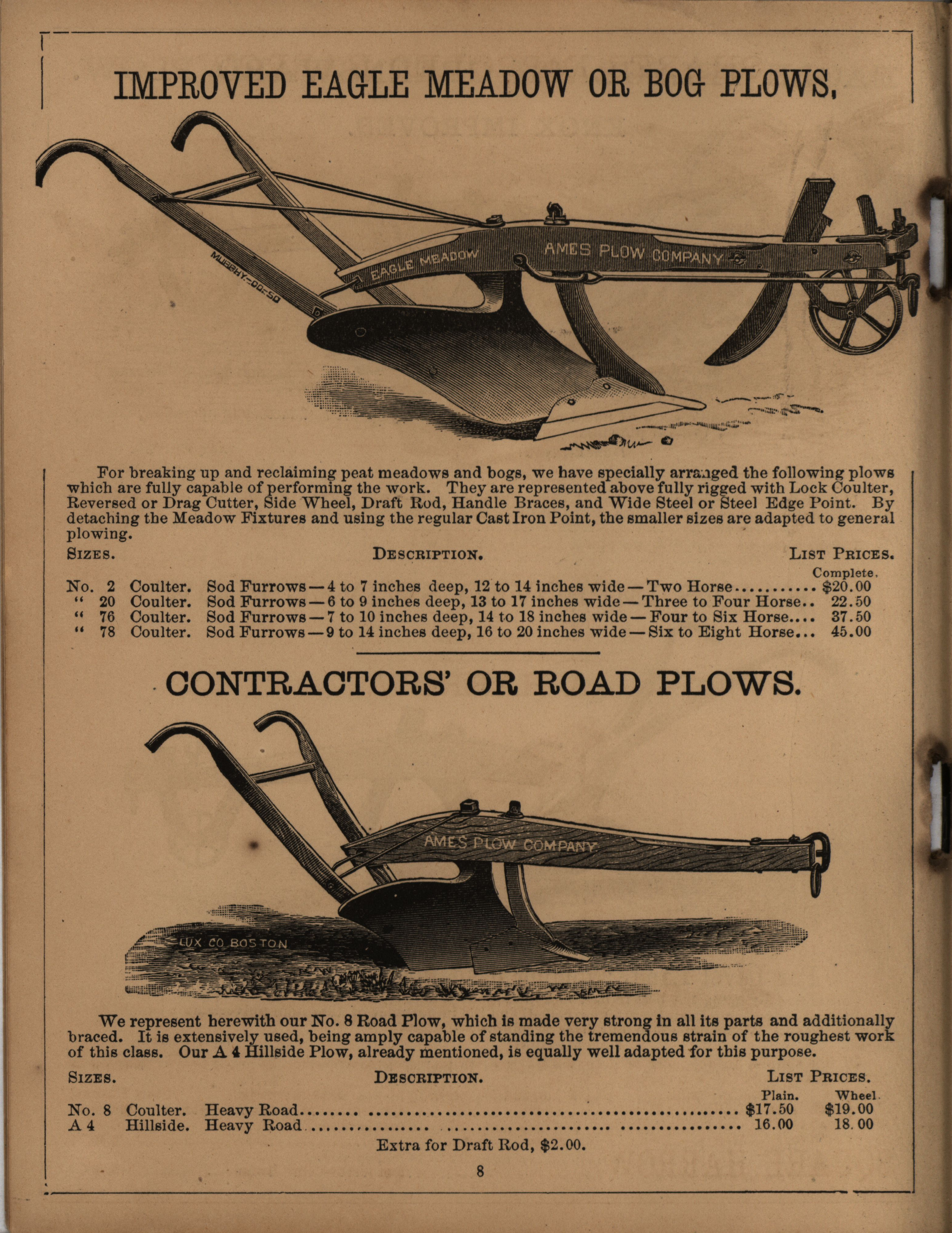 - "Ames Plow Company Farming Implements and Machines Fall Pamphlet, 1885", Agricultural Machinery Literature Collection, Iowa State University Library Digital Collections