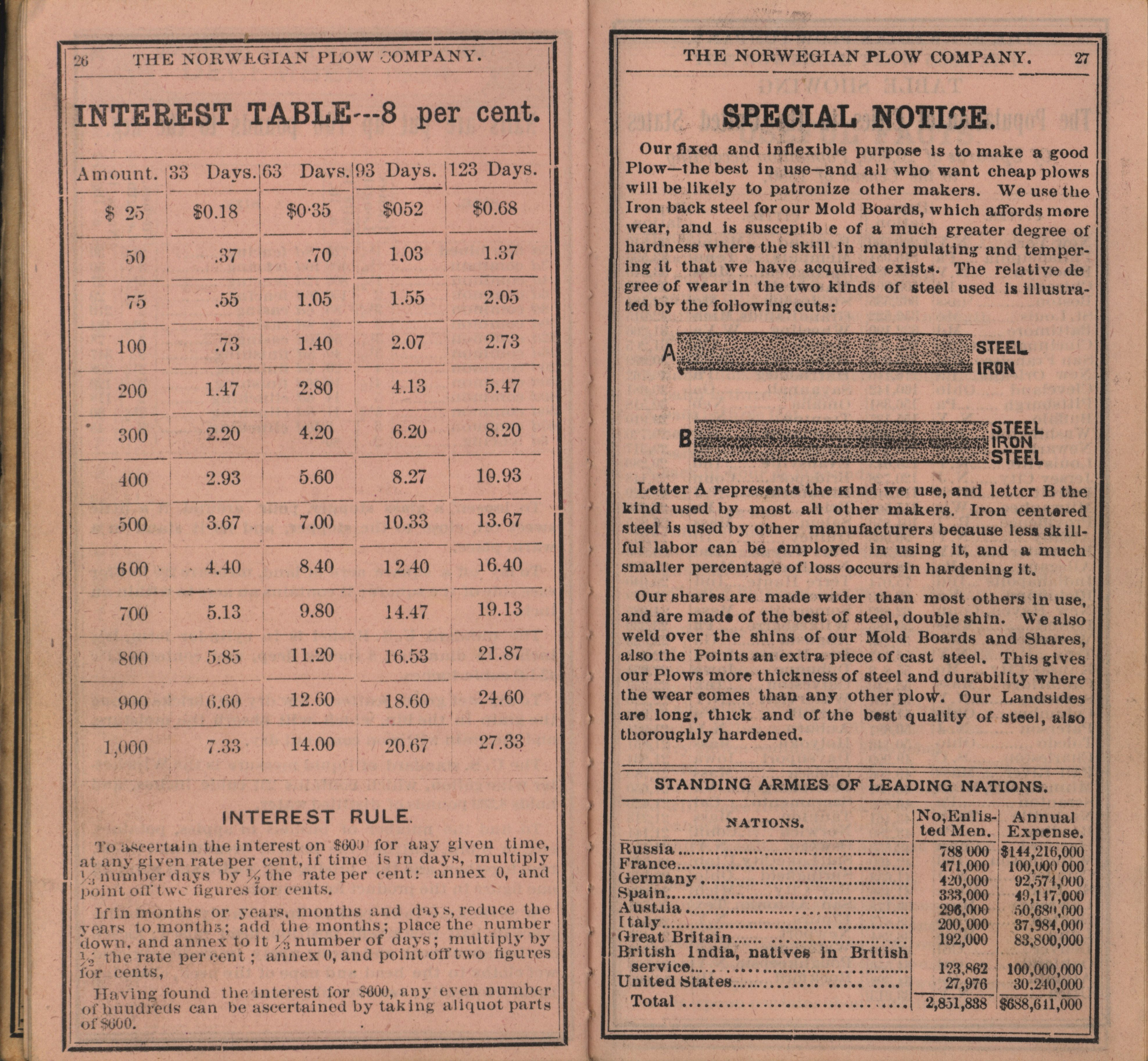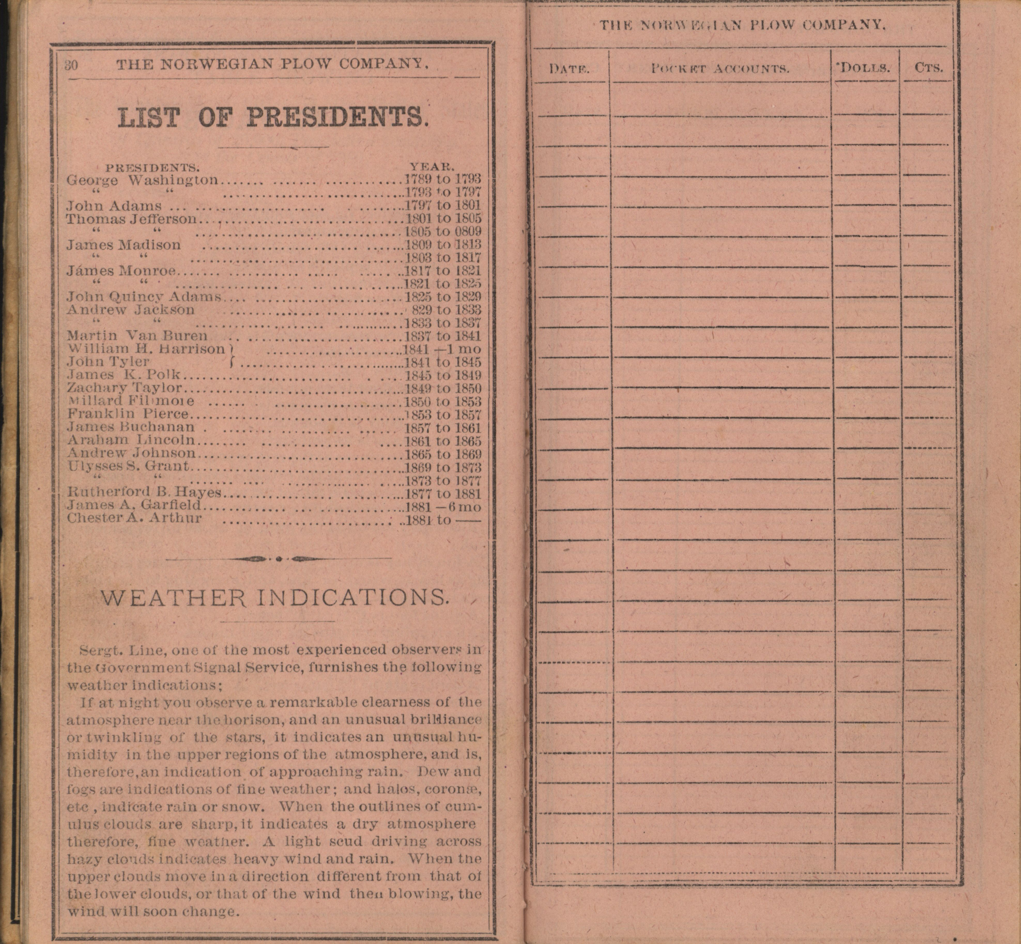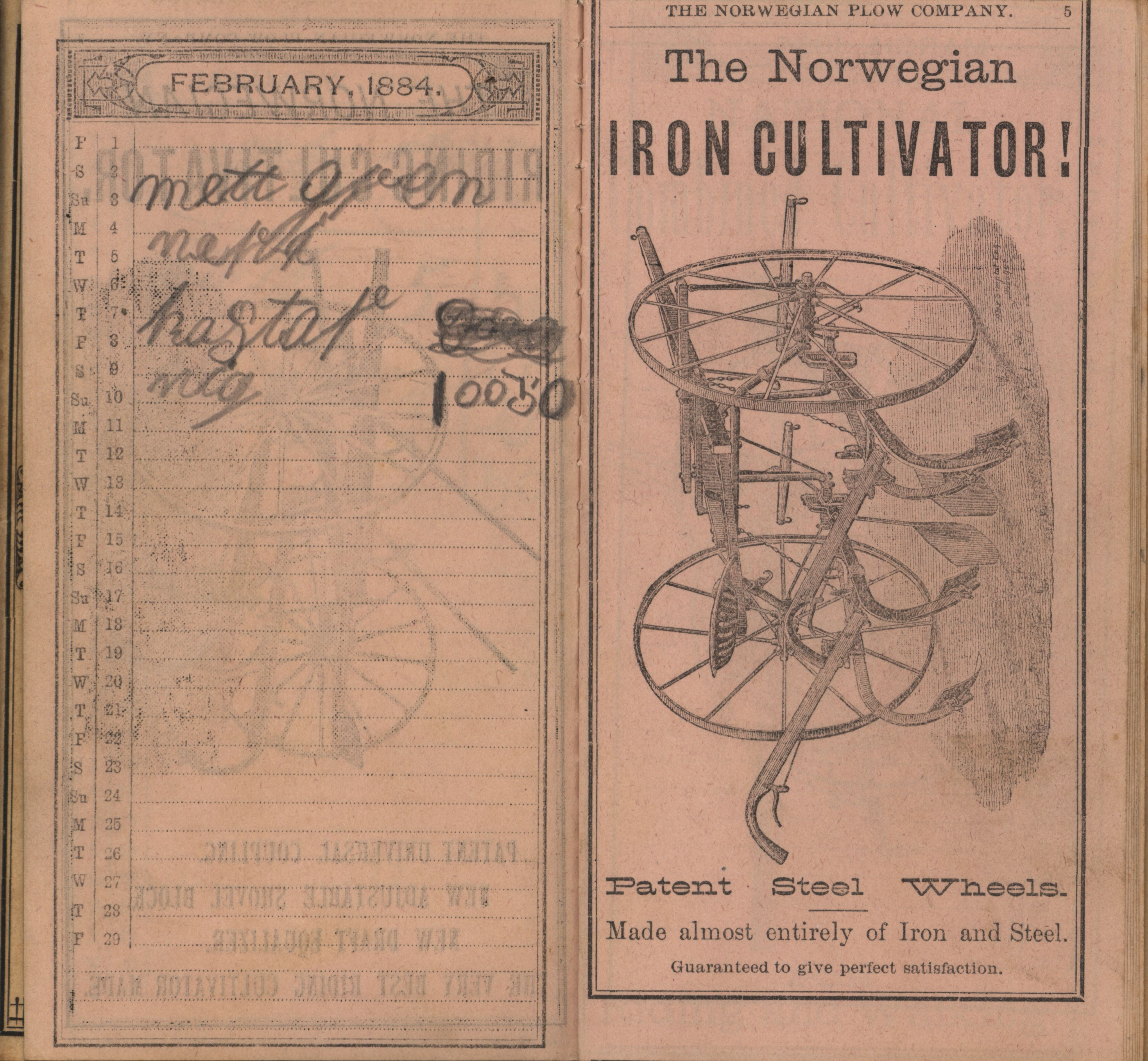 - Illustrated catalog describing the agricultural works offered by Norwegian Plow Company in 1884.