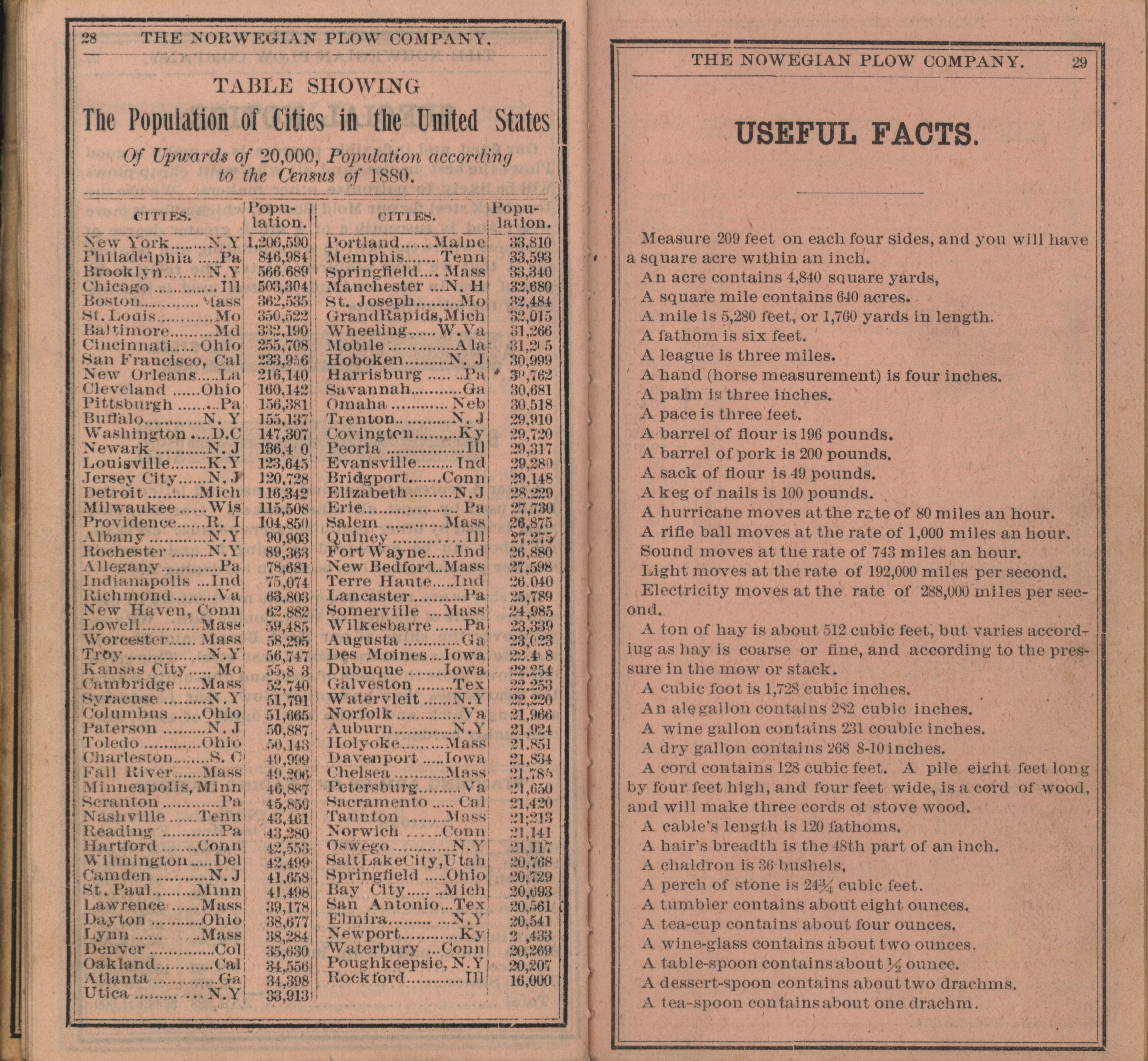 - "Norwegian Plow Company Agricultural Works 1884 catalog", Agricultural Machinery Literature Collection, Iowa State University Library Digital Collections