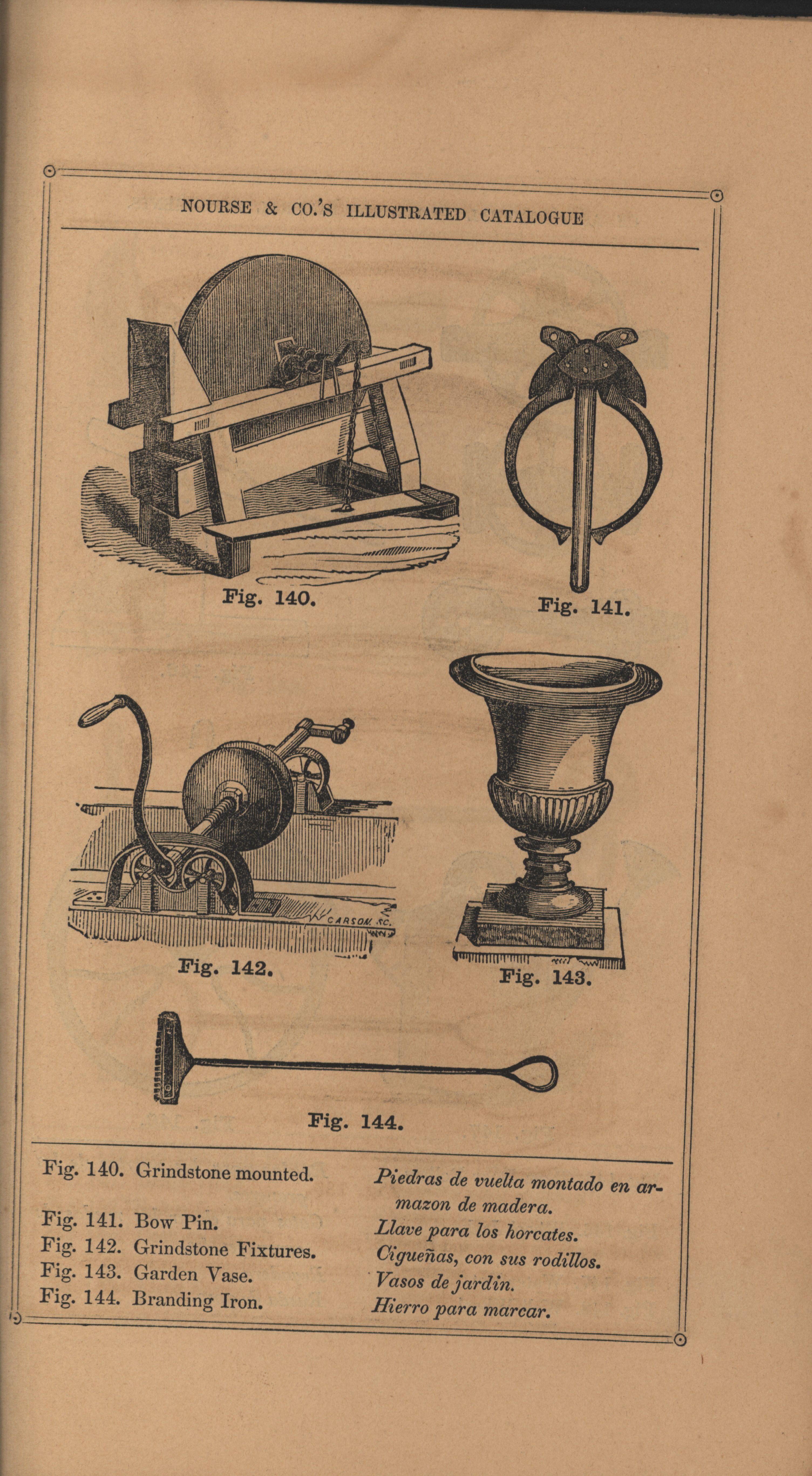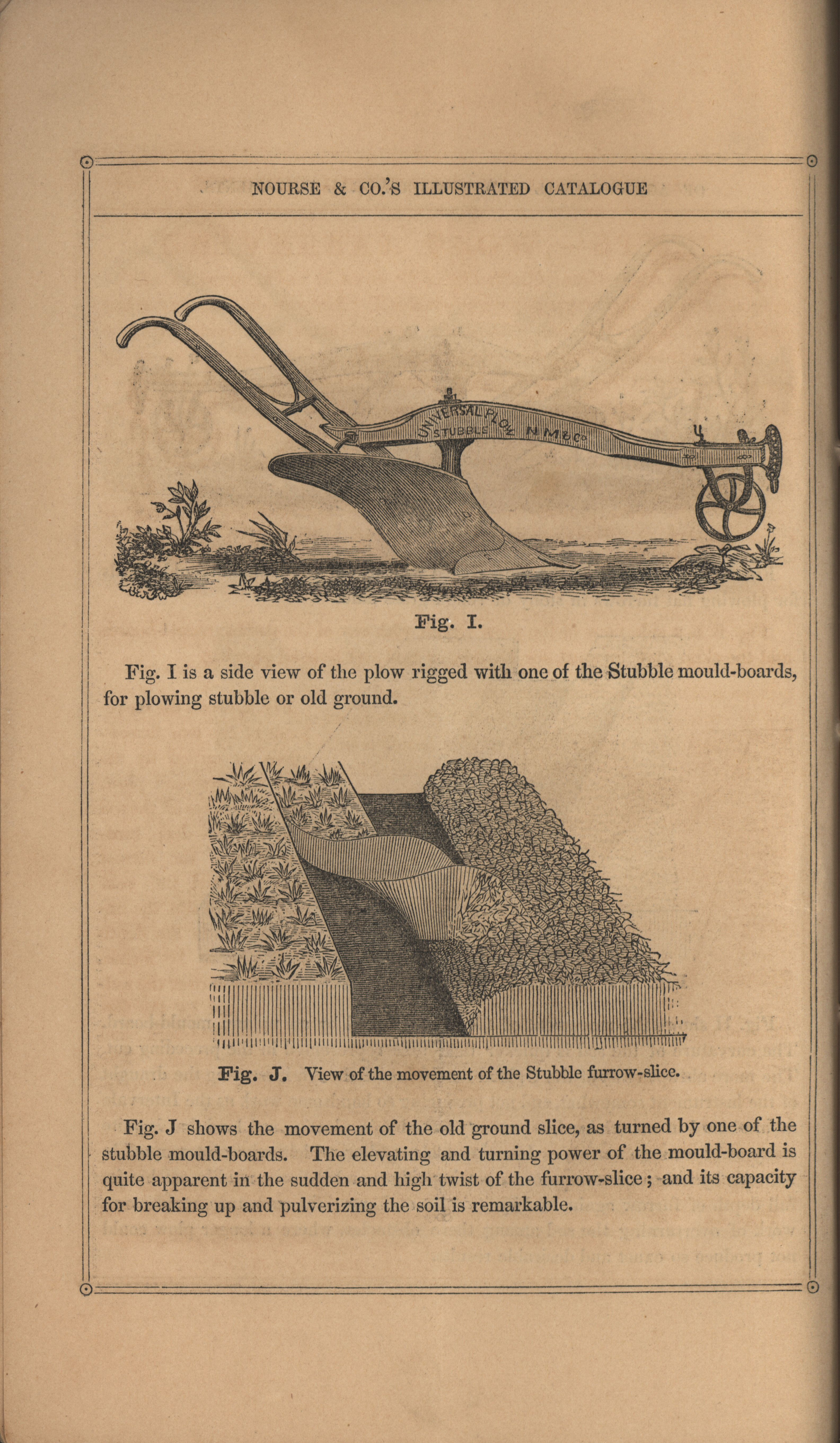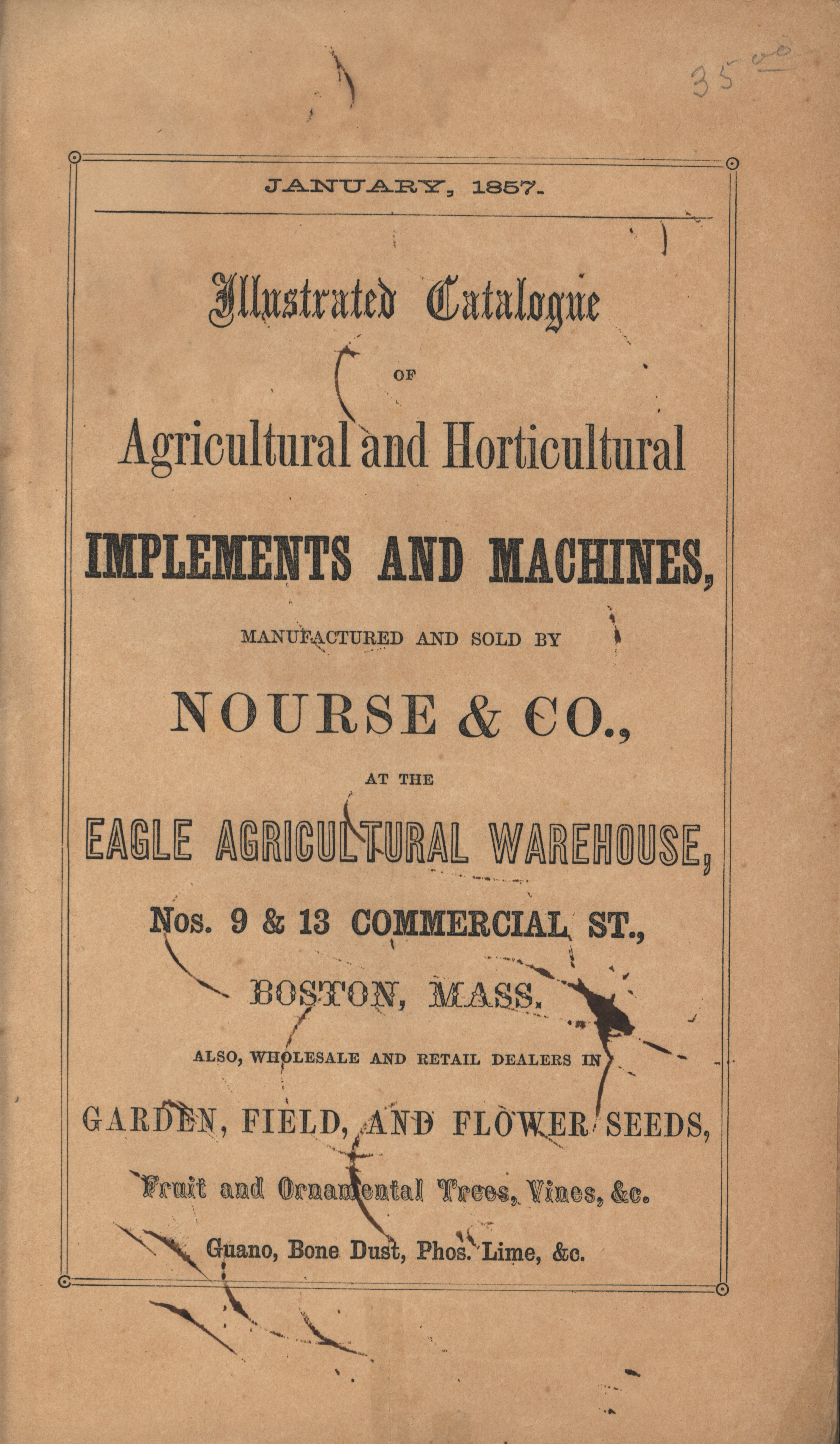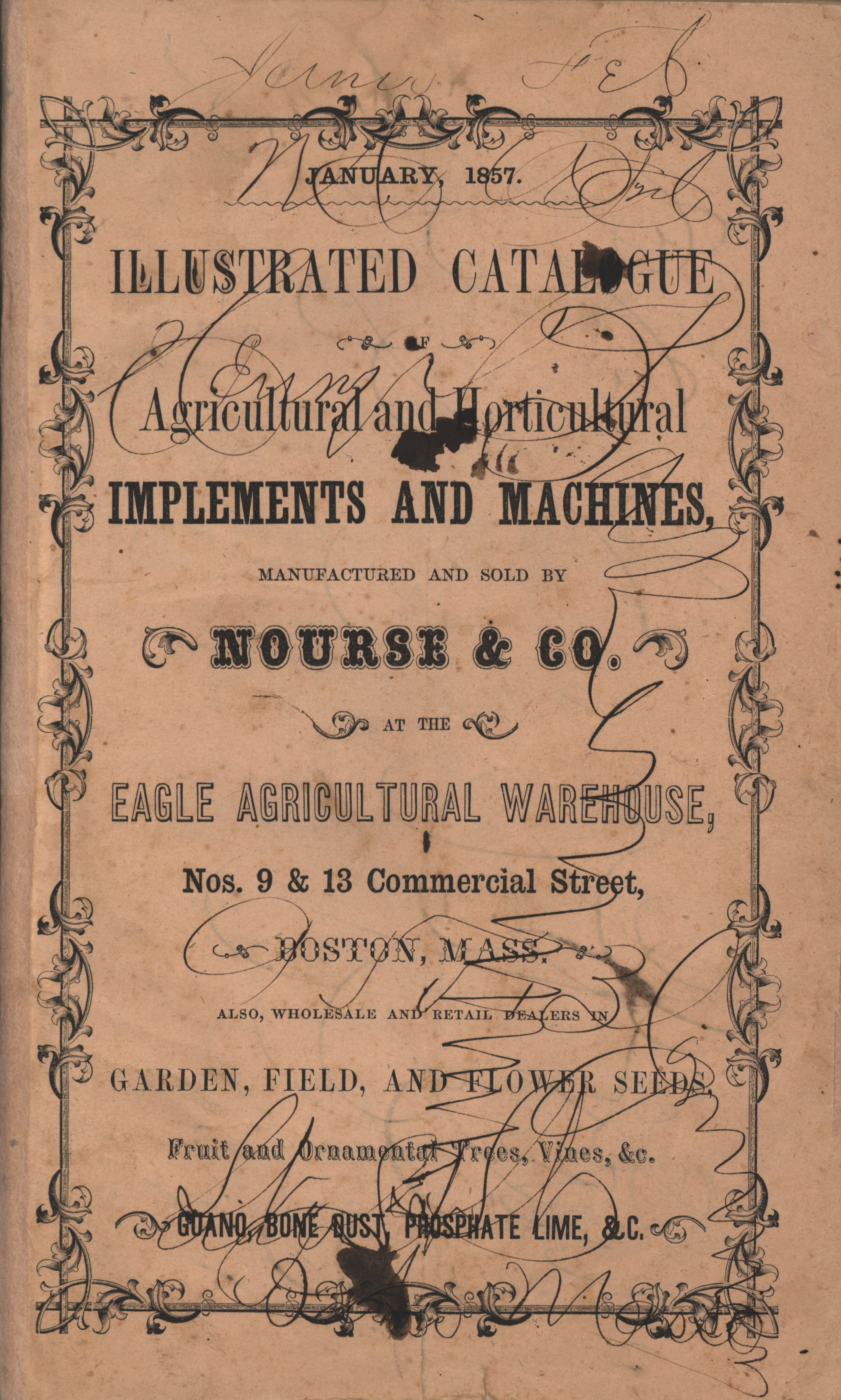 - Illustrated catalog describing the agricultural and horticultural implements and machines offered by Nourse and Company in 1857.