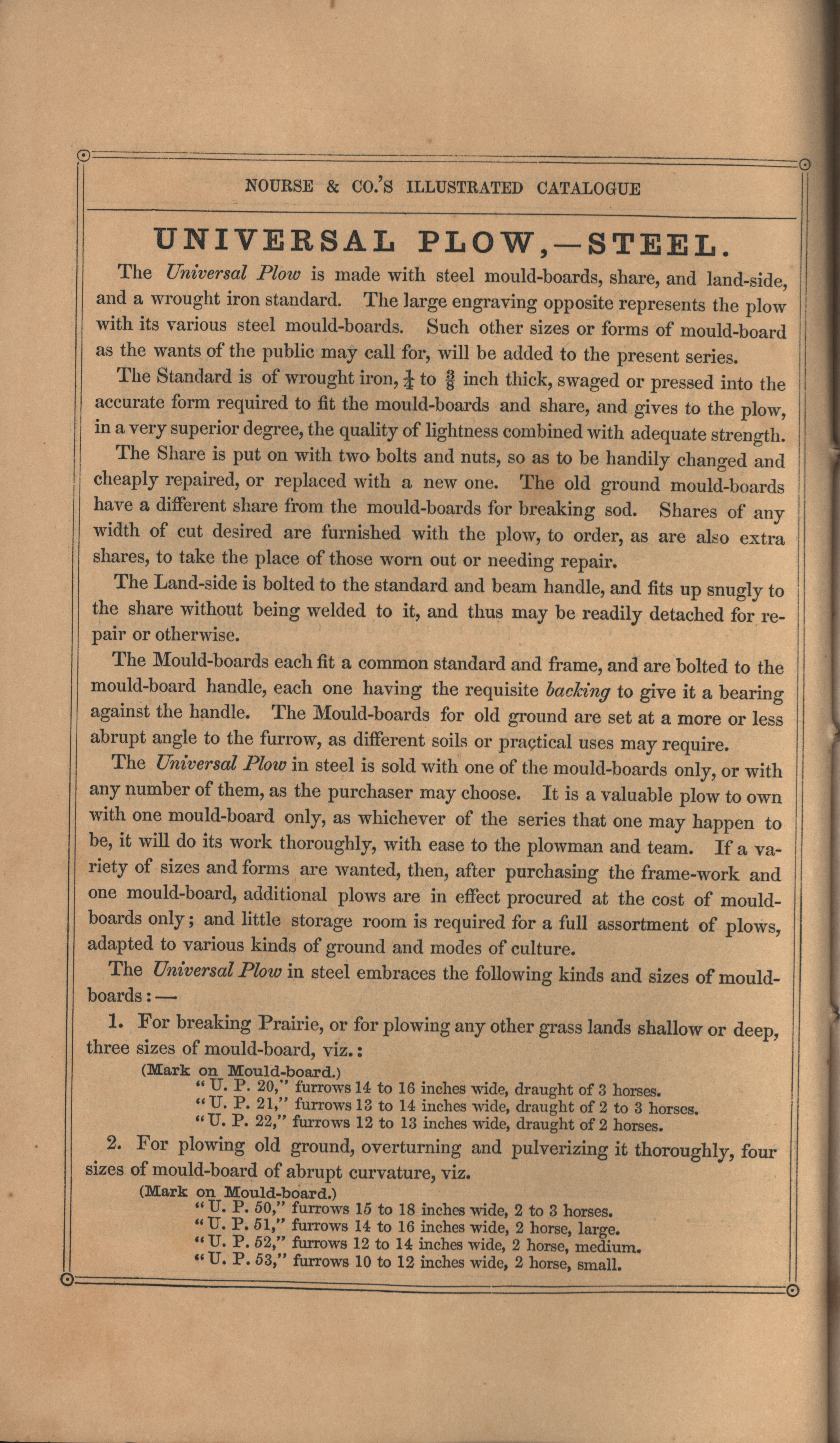 - "Nourse and Company Agricultural and Horticultural Implements and Machines 1857 catalog", Agricultural Machinery Literature Collection, Iowa State University Library Digital Collections