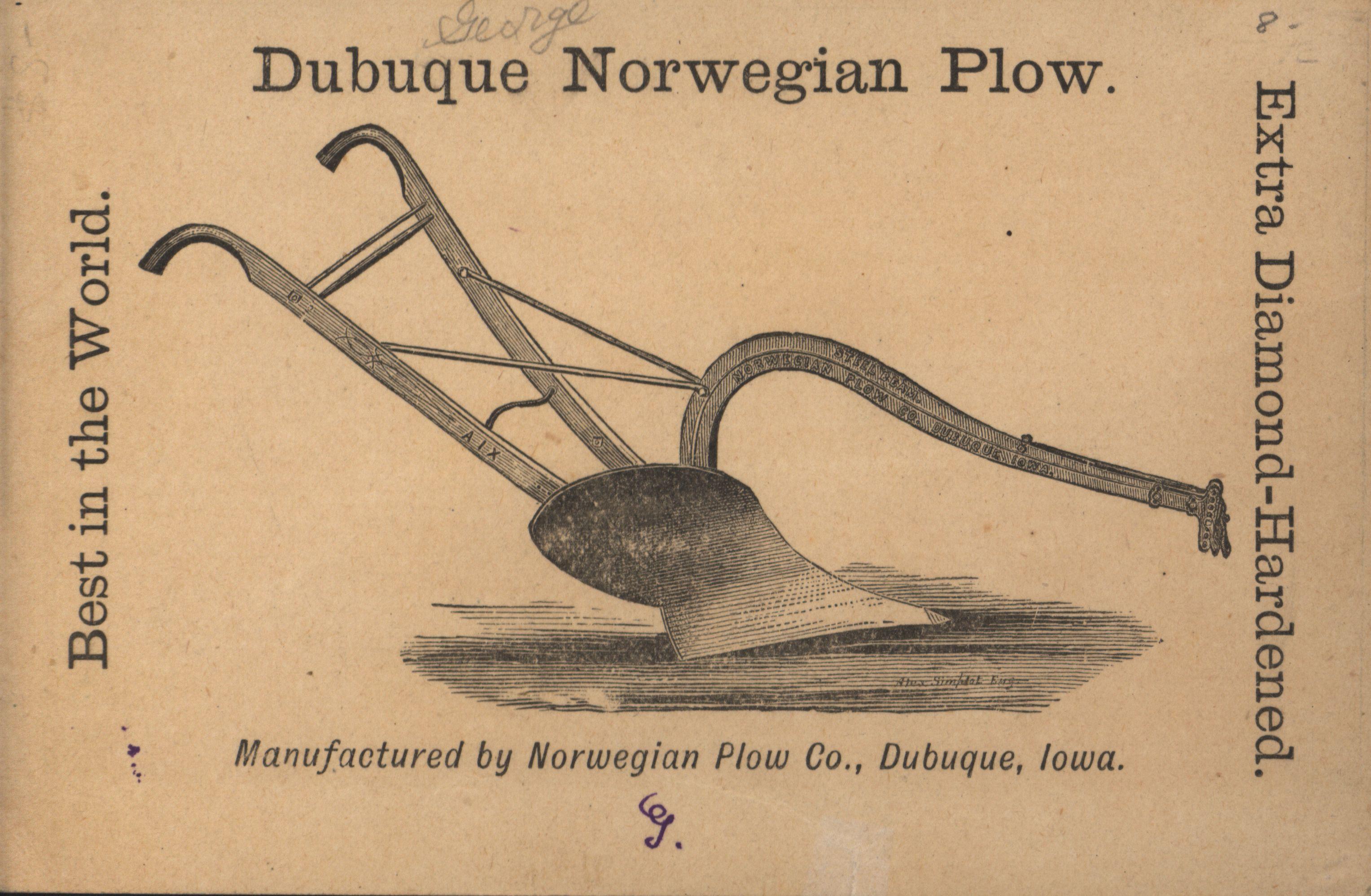 - "Norwegian Plow Company Dubuque Norwegian Plow advertisement card", Agricultural Machinery Literature Collection, Iowa State University Library Digital Collections