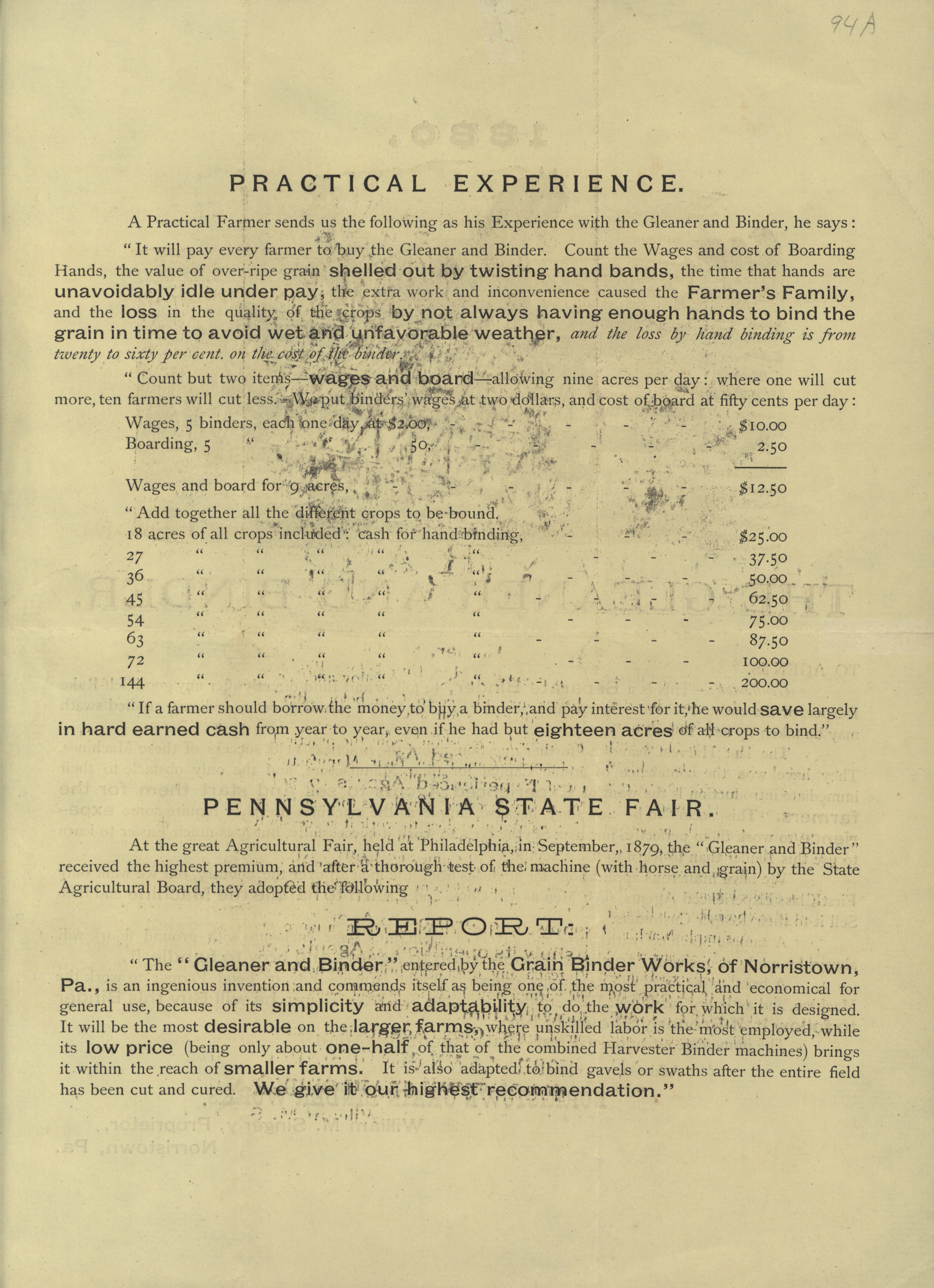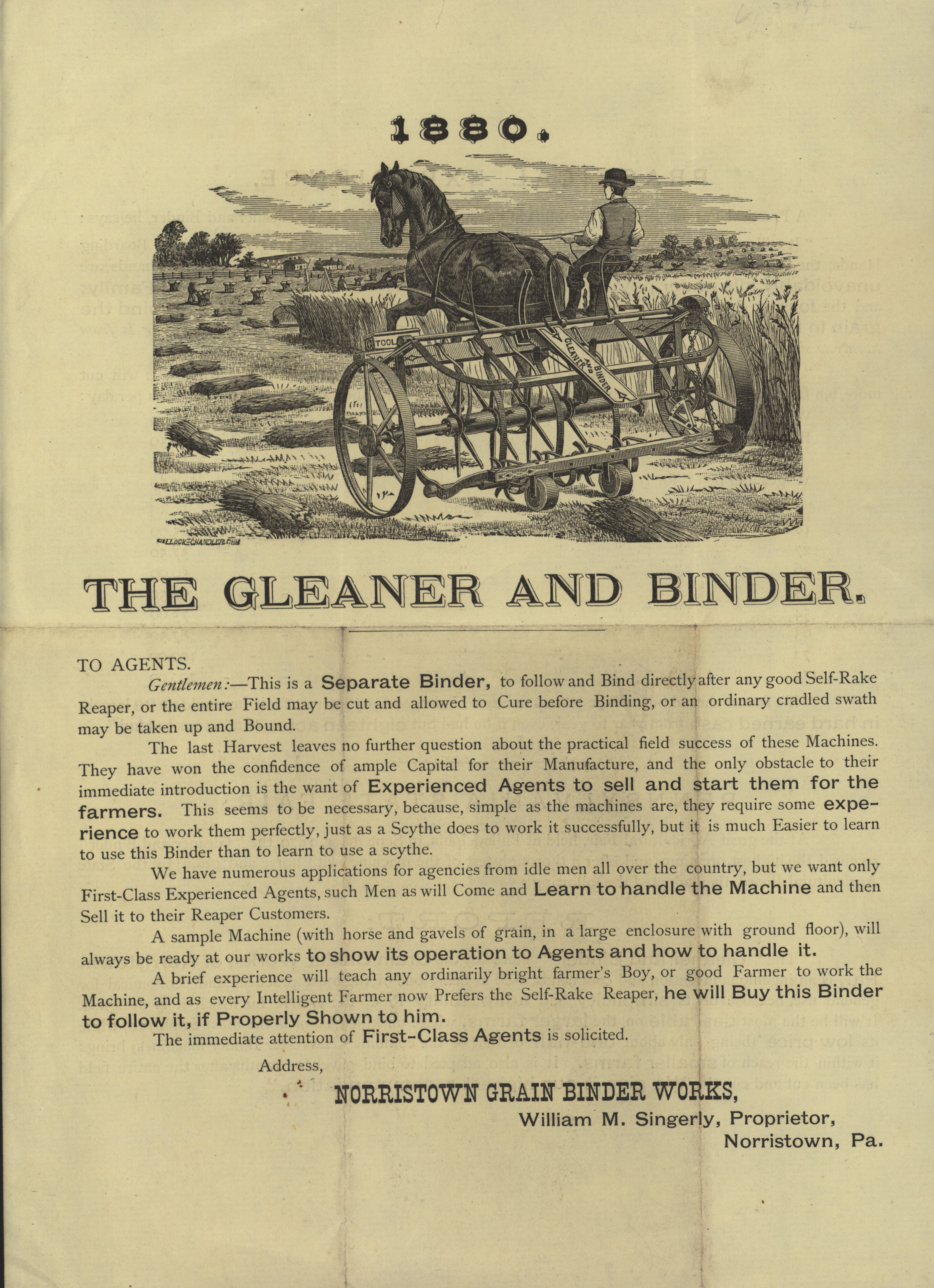 - Norristown Grain Binder Works 1880 Gleaner and Binder advertisement