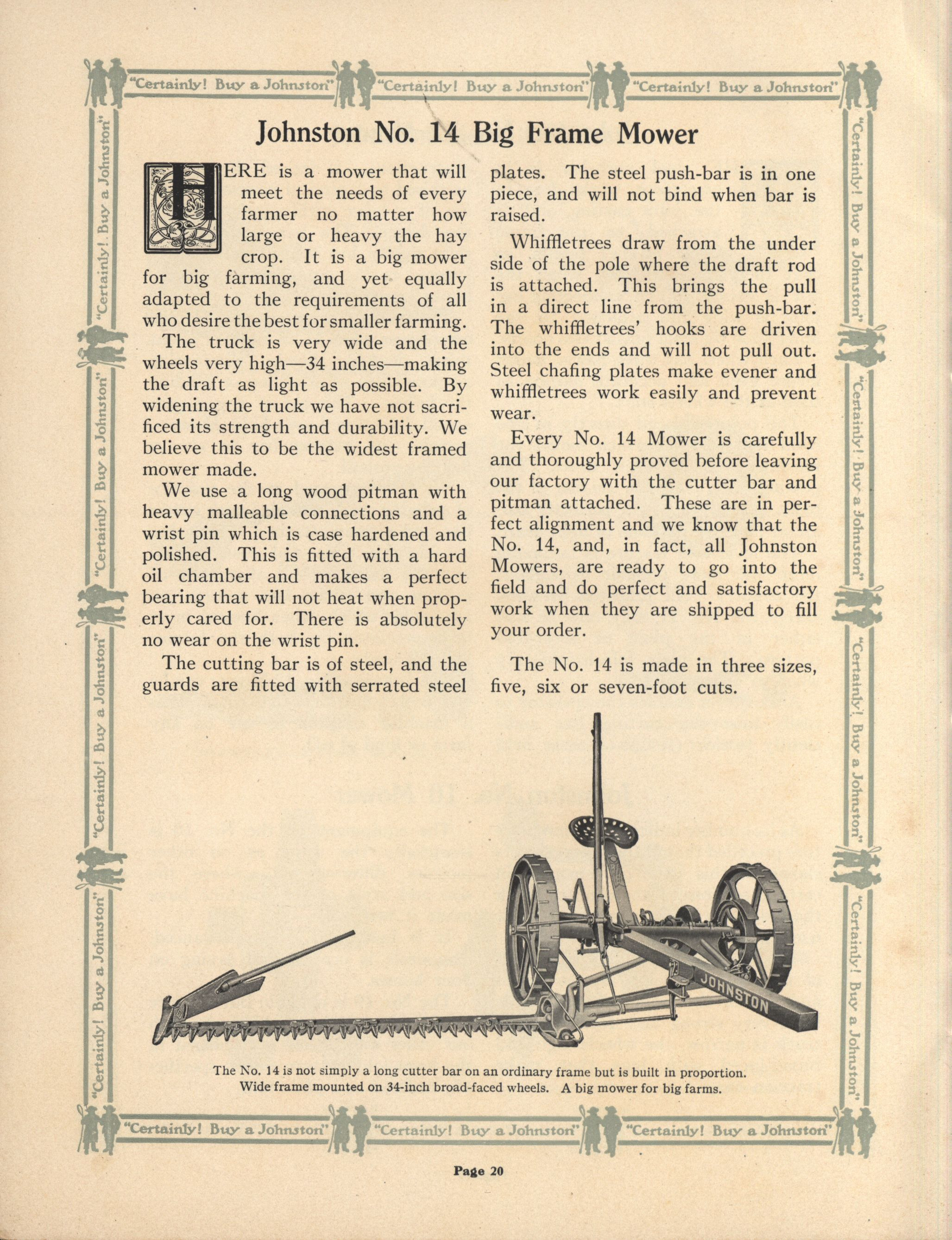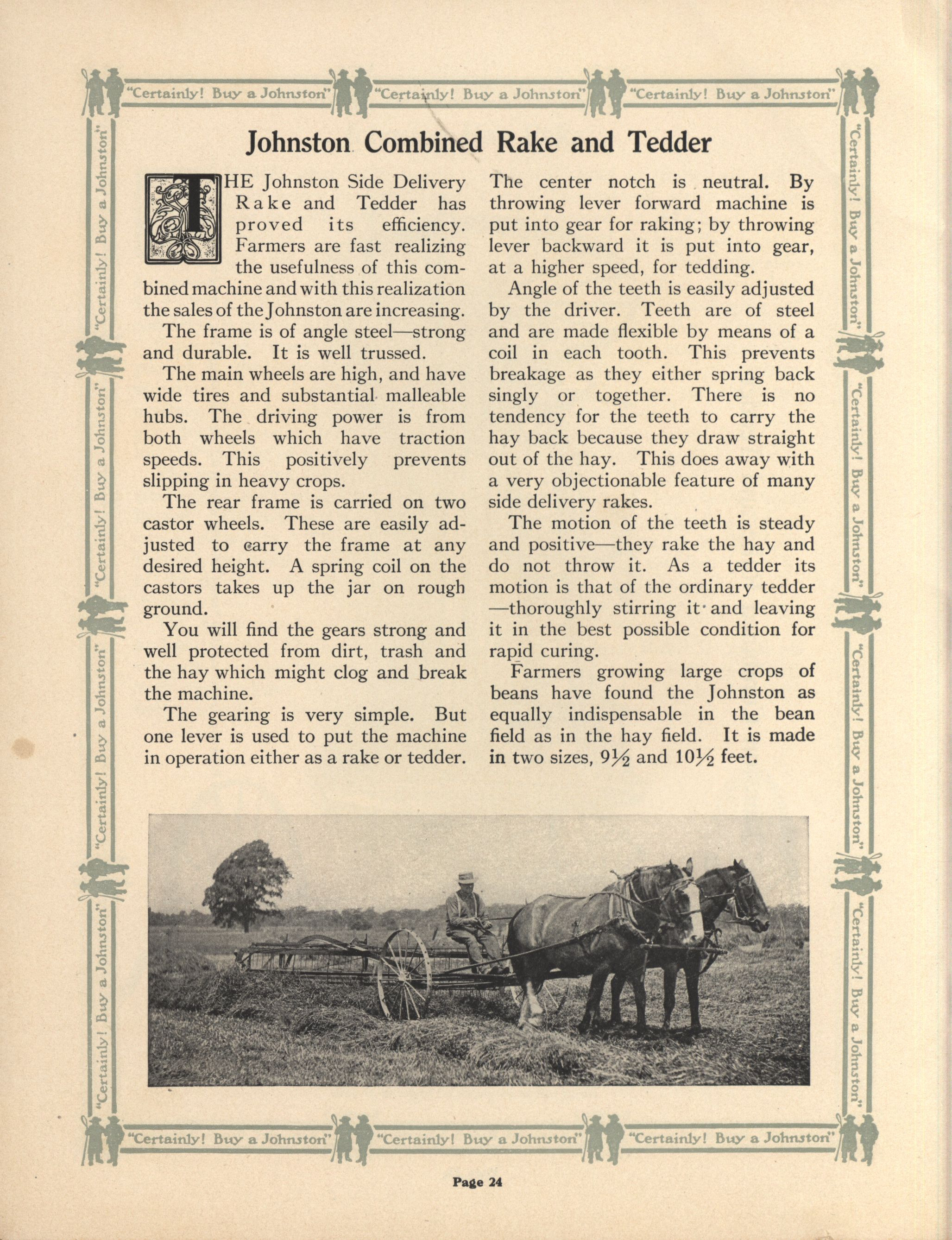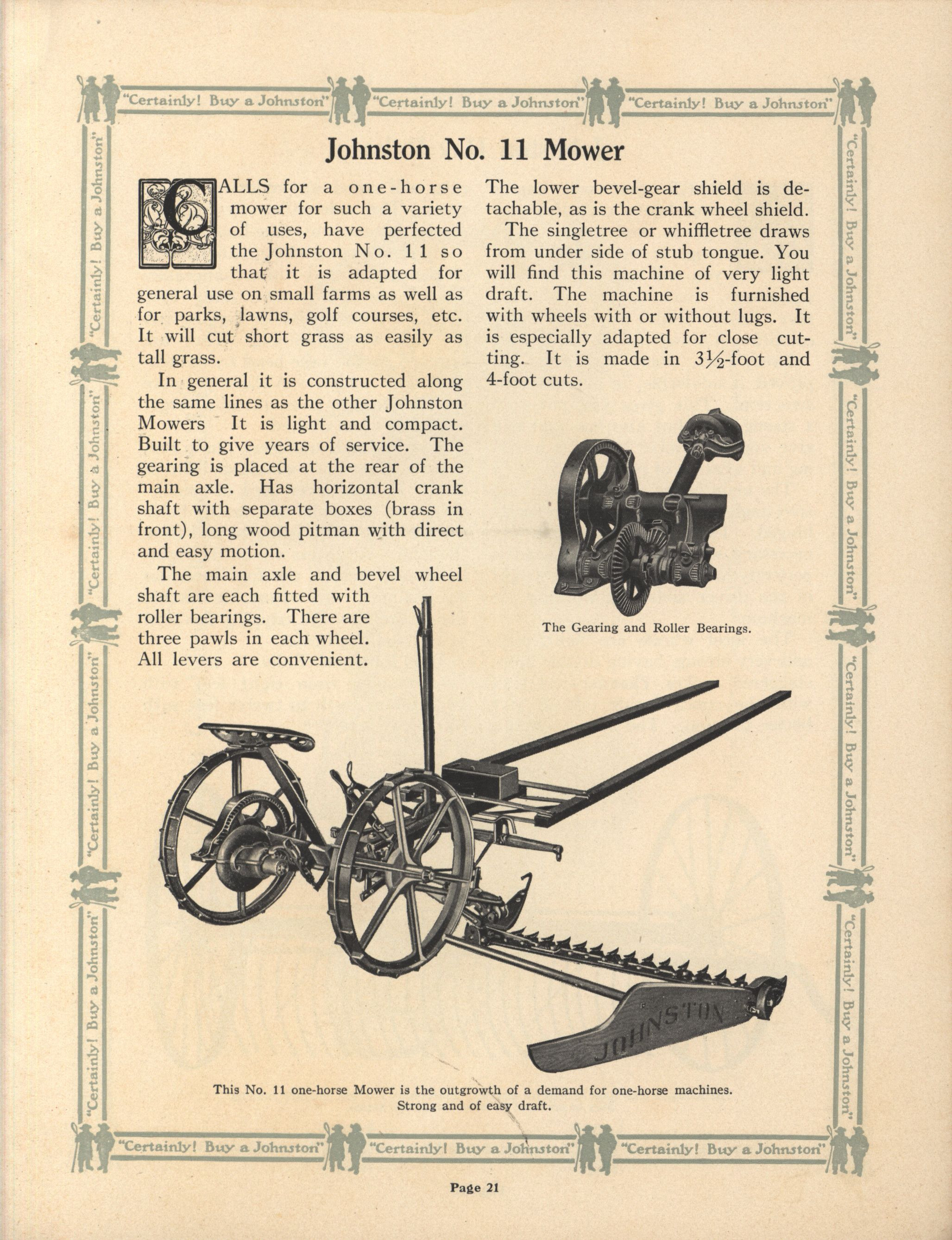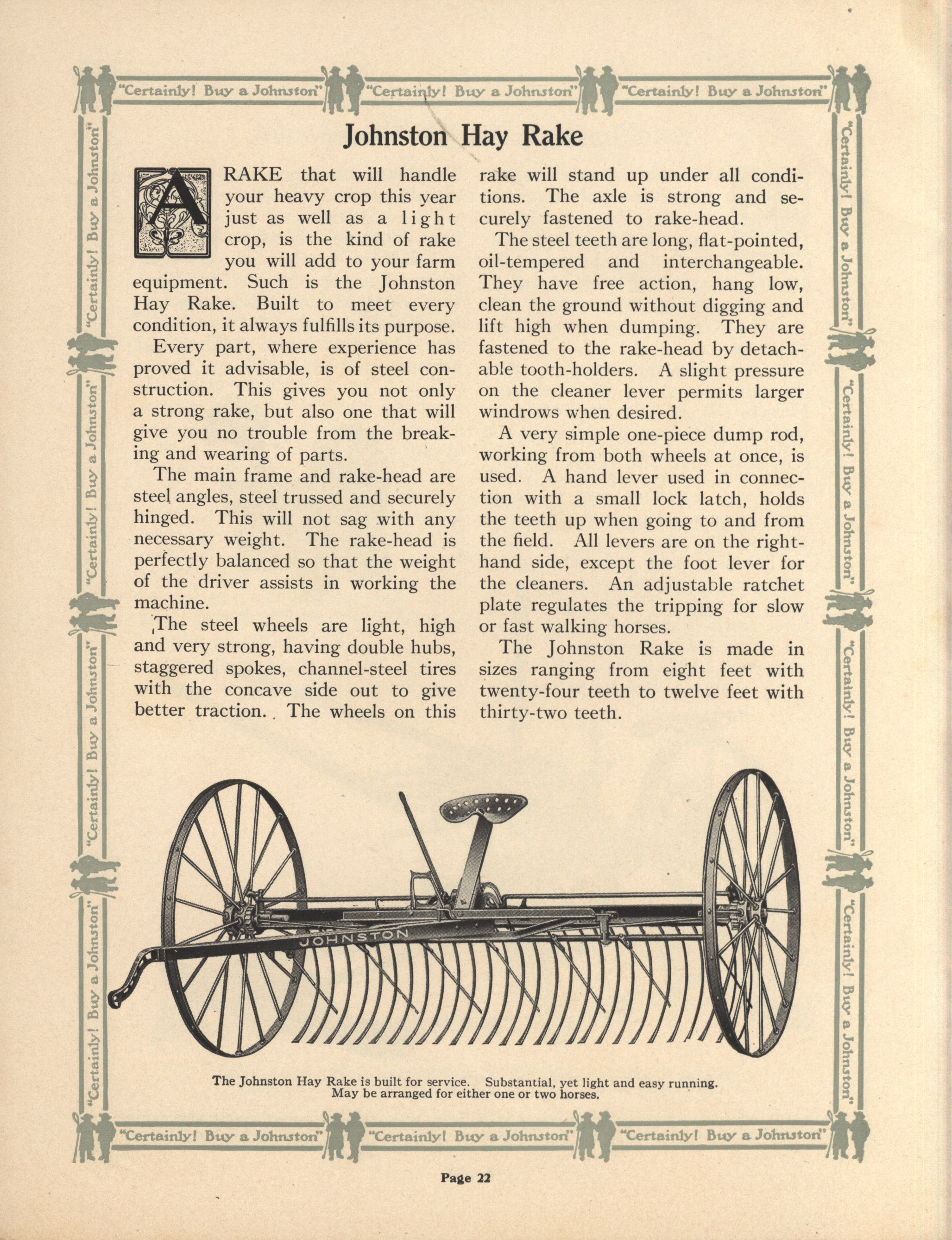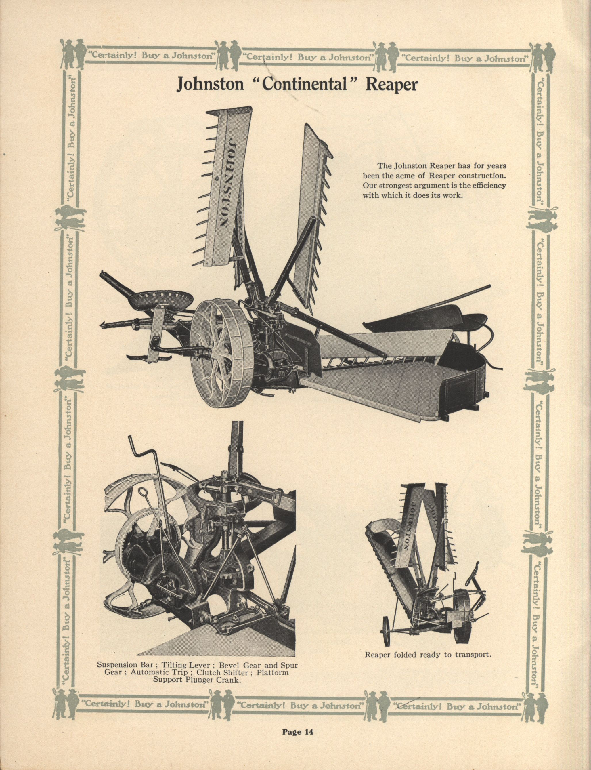 - "The Johnston Harvester Company farm machinery catalog", Agricultural Machinery Literature Collection, Iowa State University Library Digital Collections