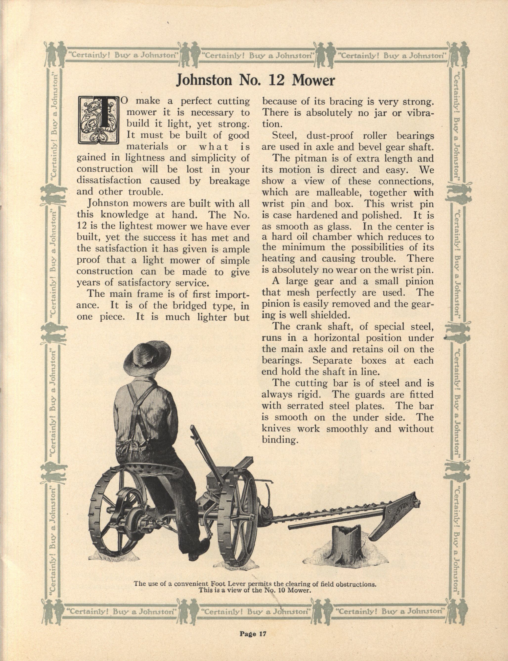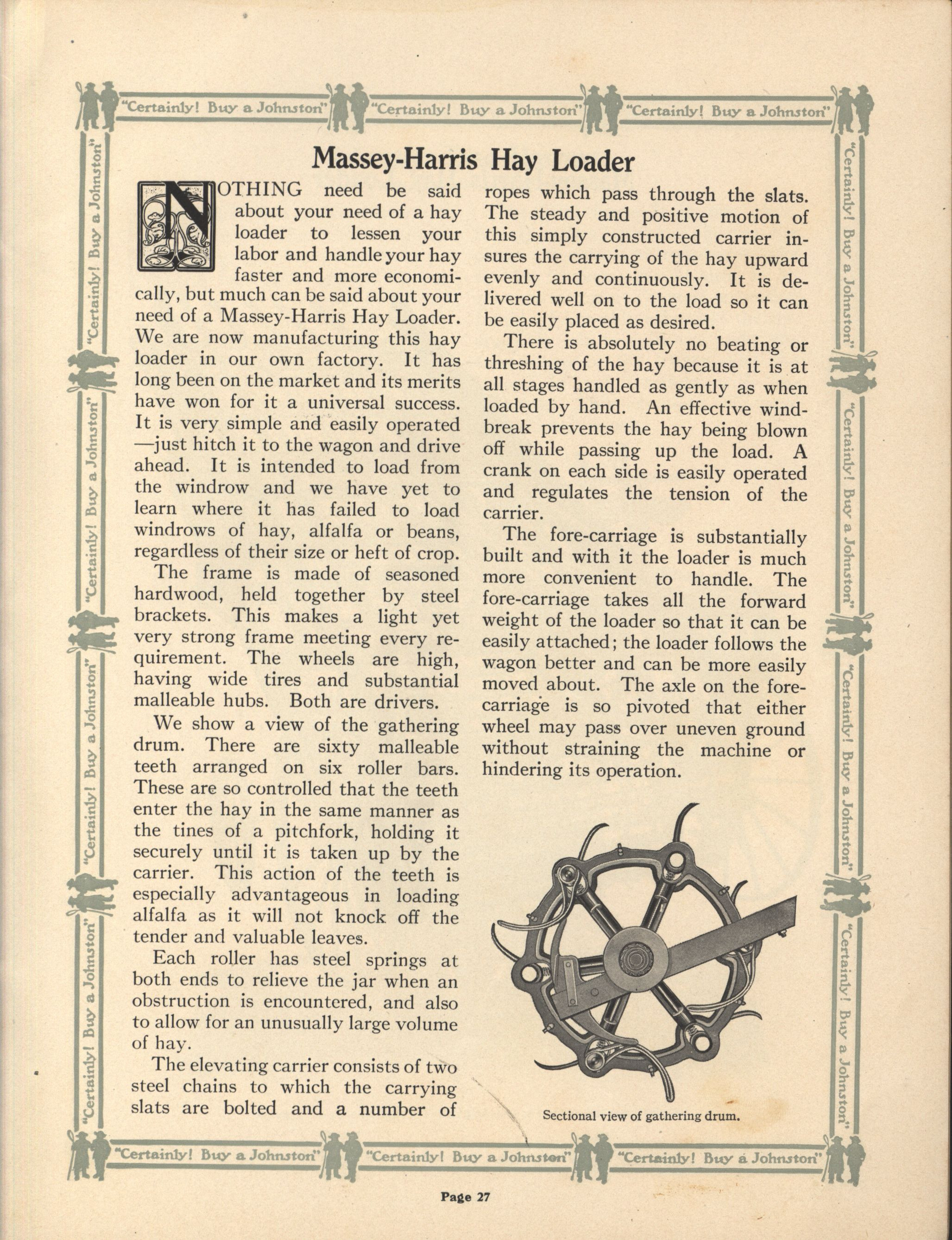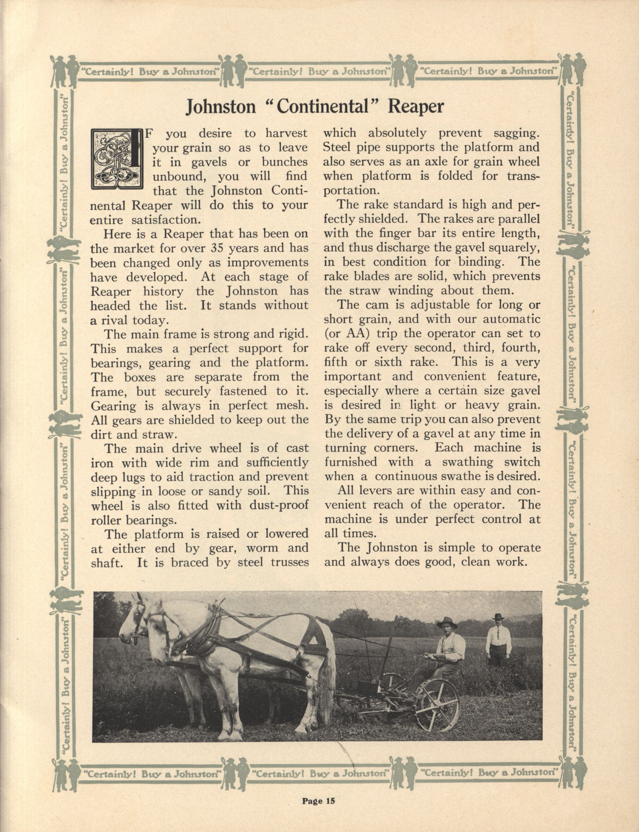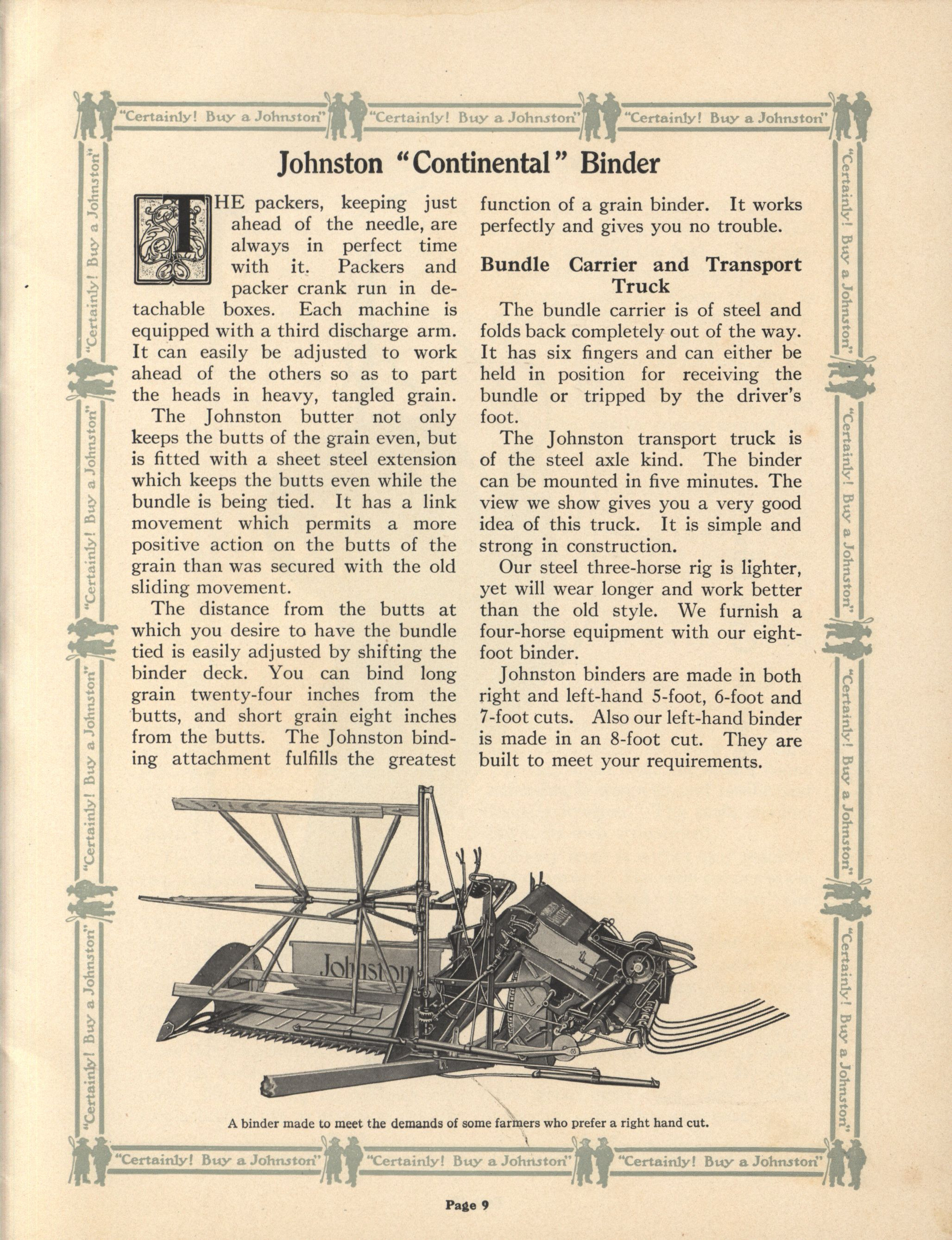 - "The Johnston Harvester Company farm machinery catalog", Agricultural Machinery Literature Collection, Iowa State University Library Digital Collections