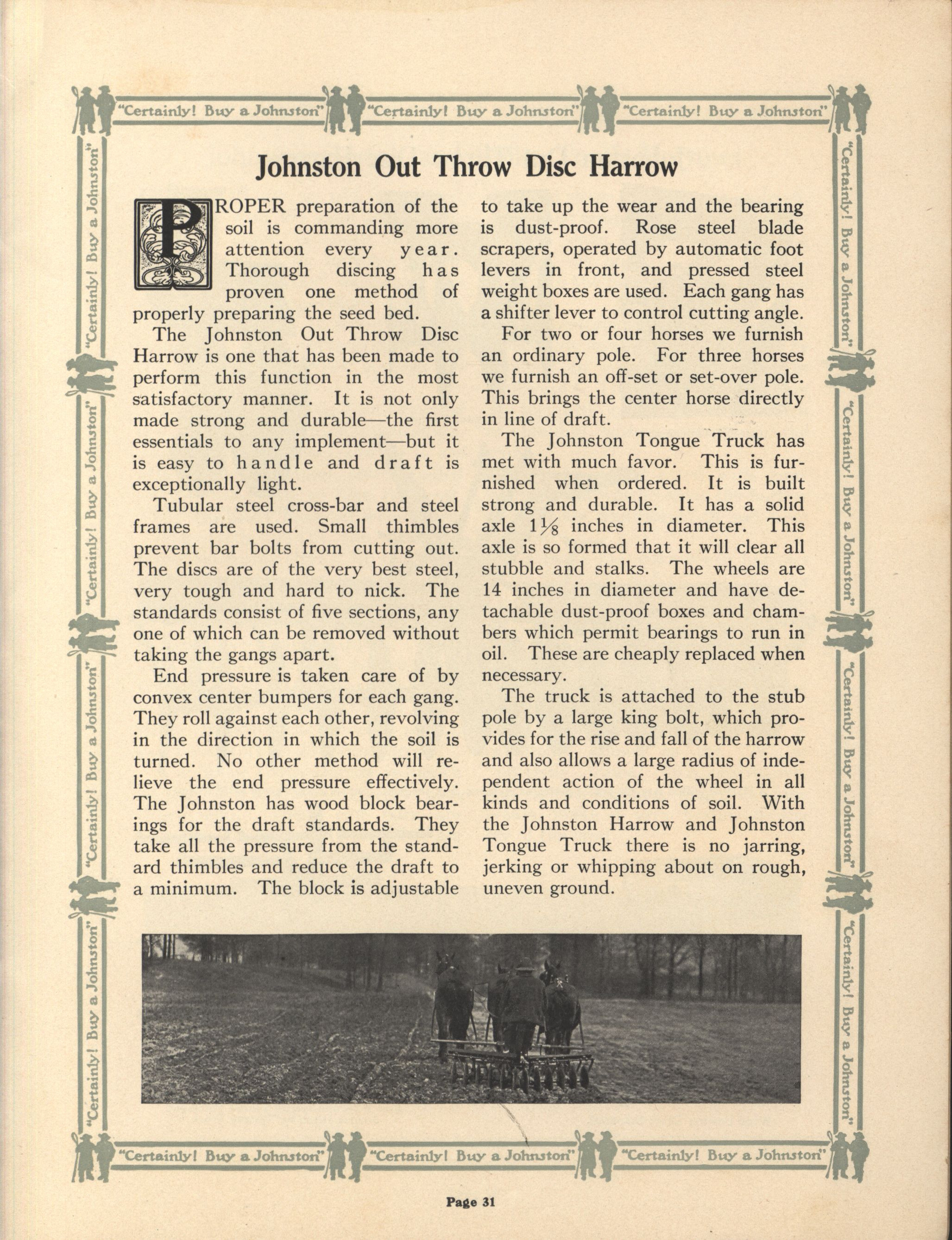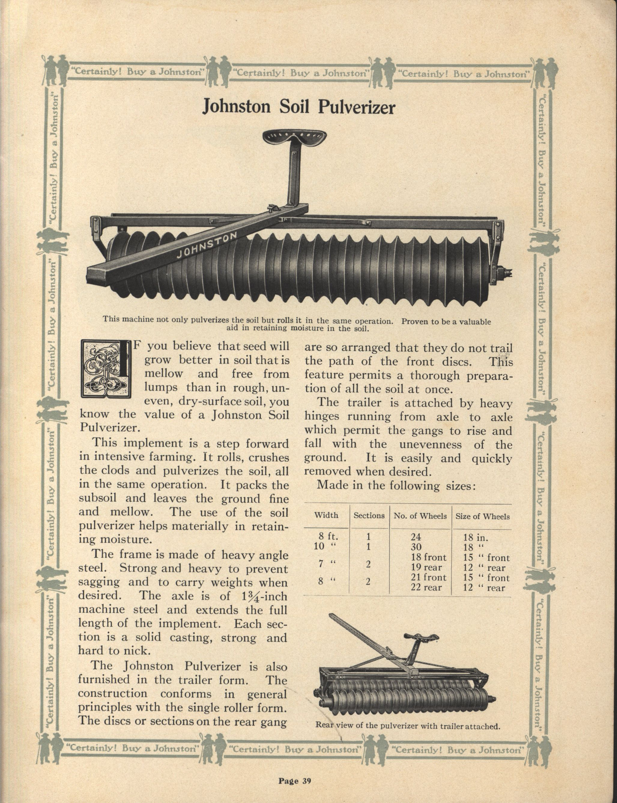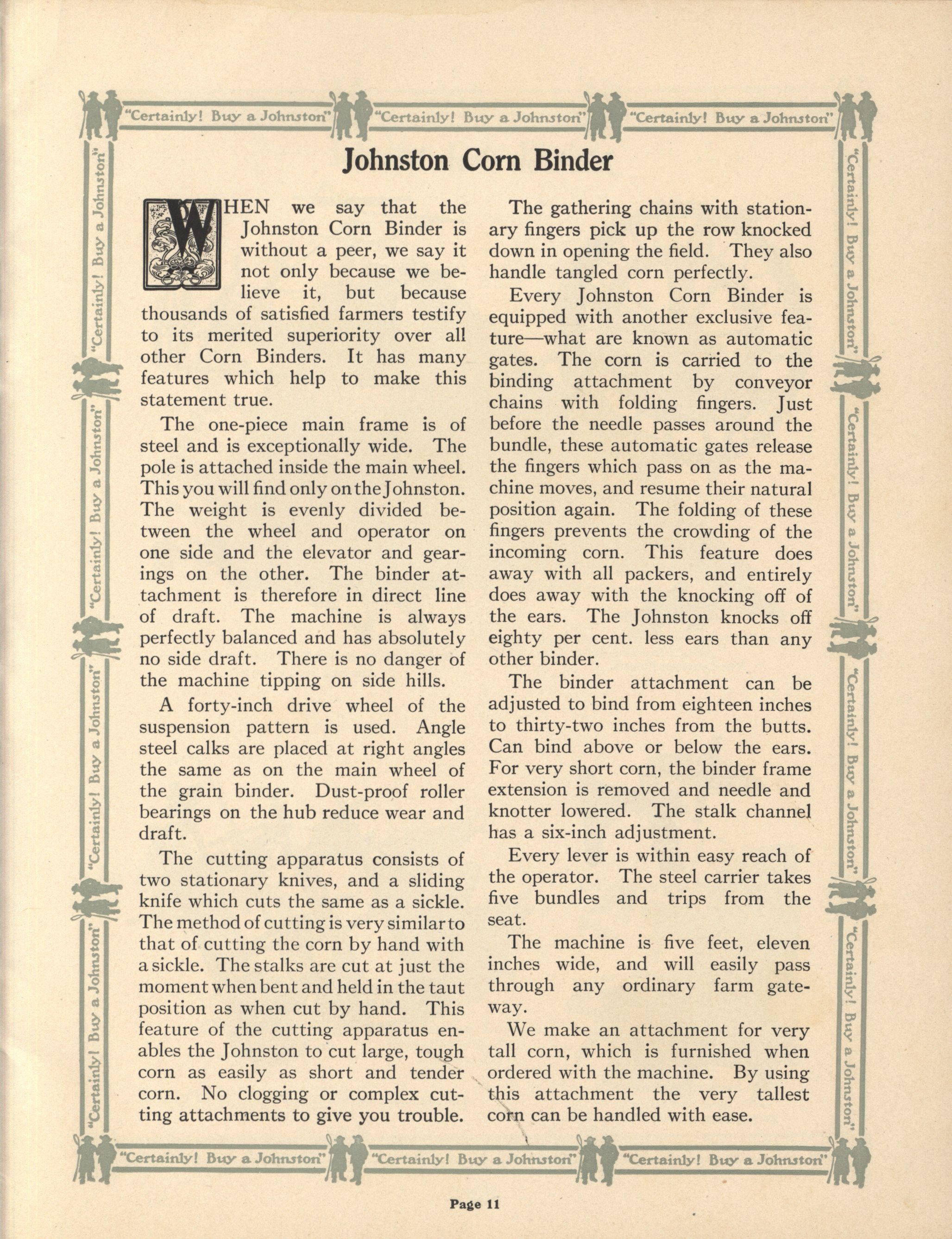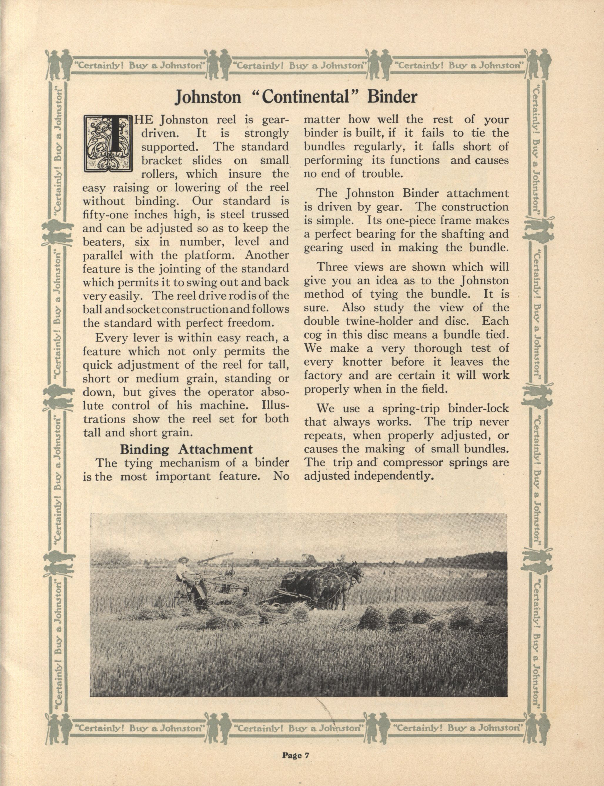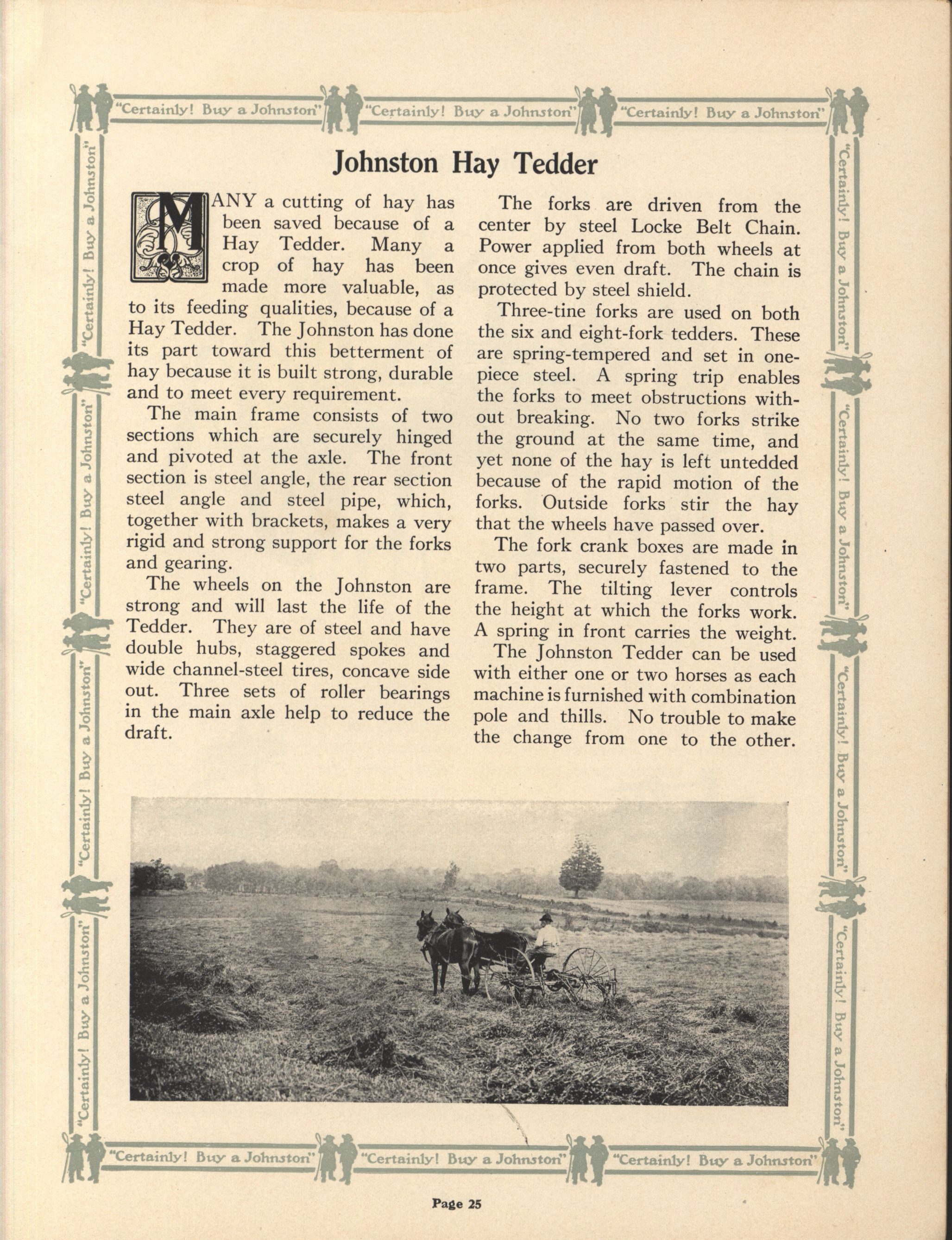 - "The Johnston Harvester Company farm machinery catalog", Agricultural Machinery Literature Collection, Iowa State University Library Digital Collections
