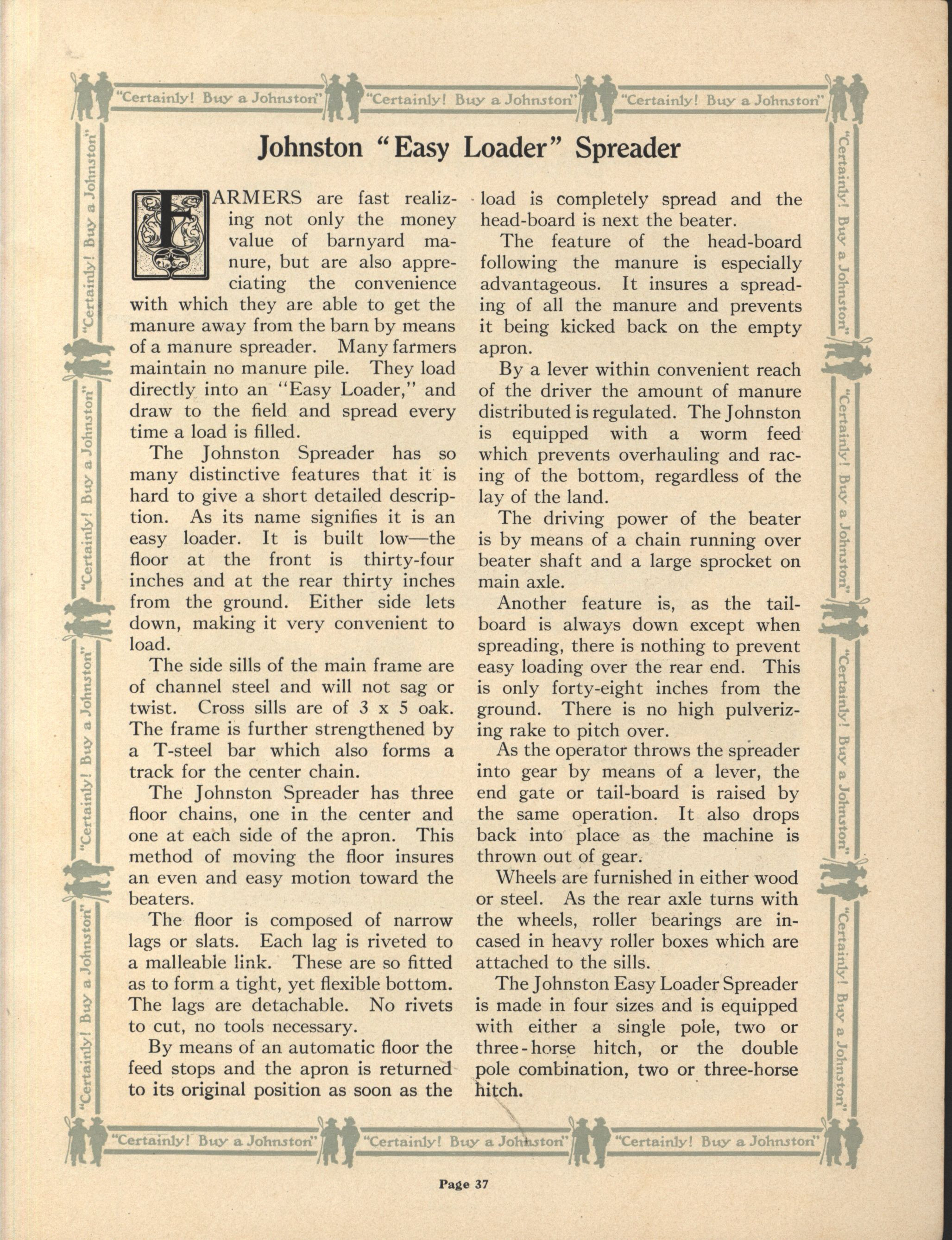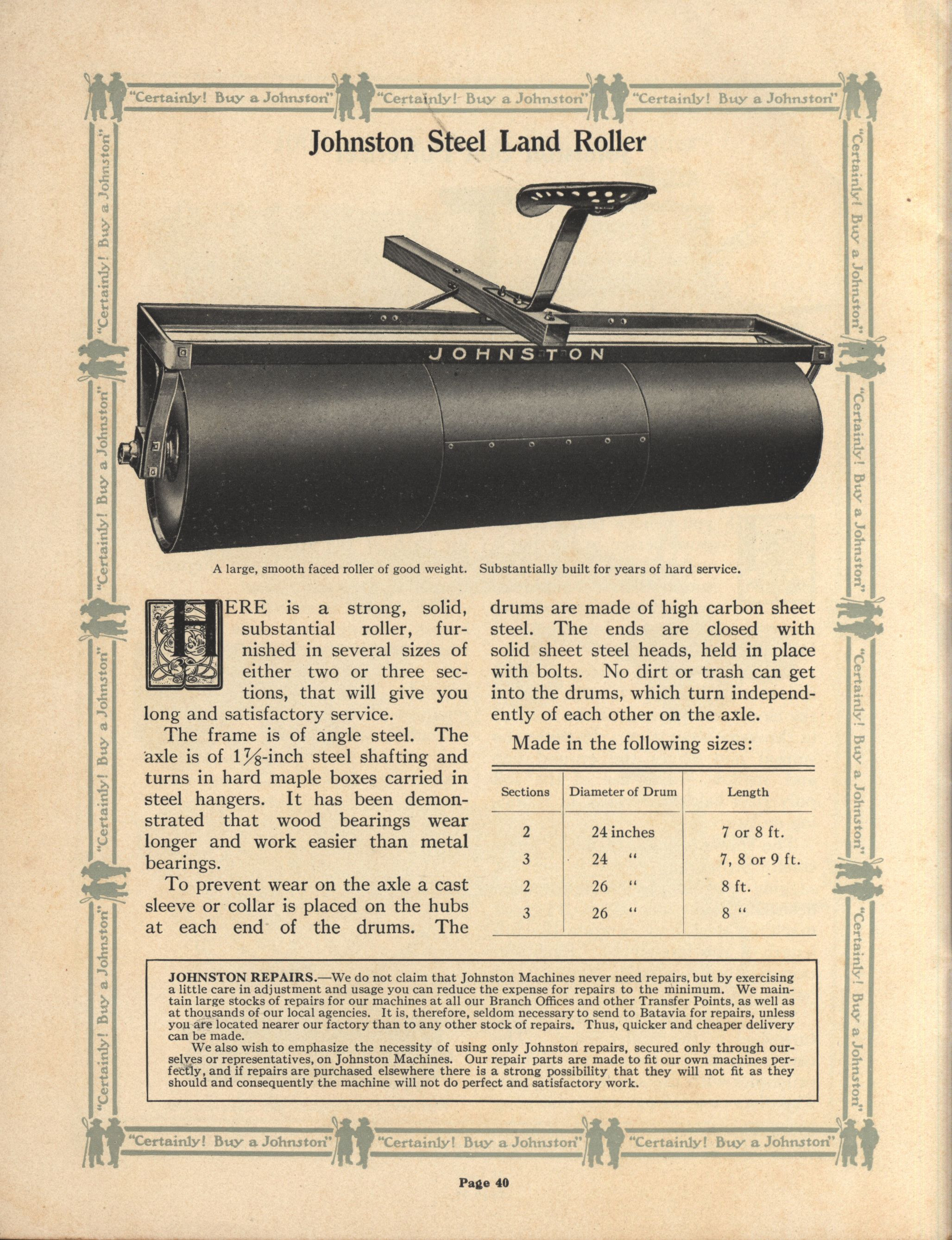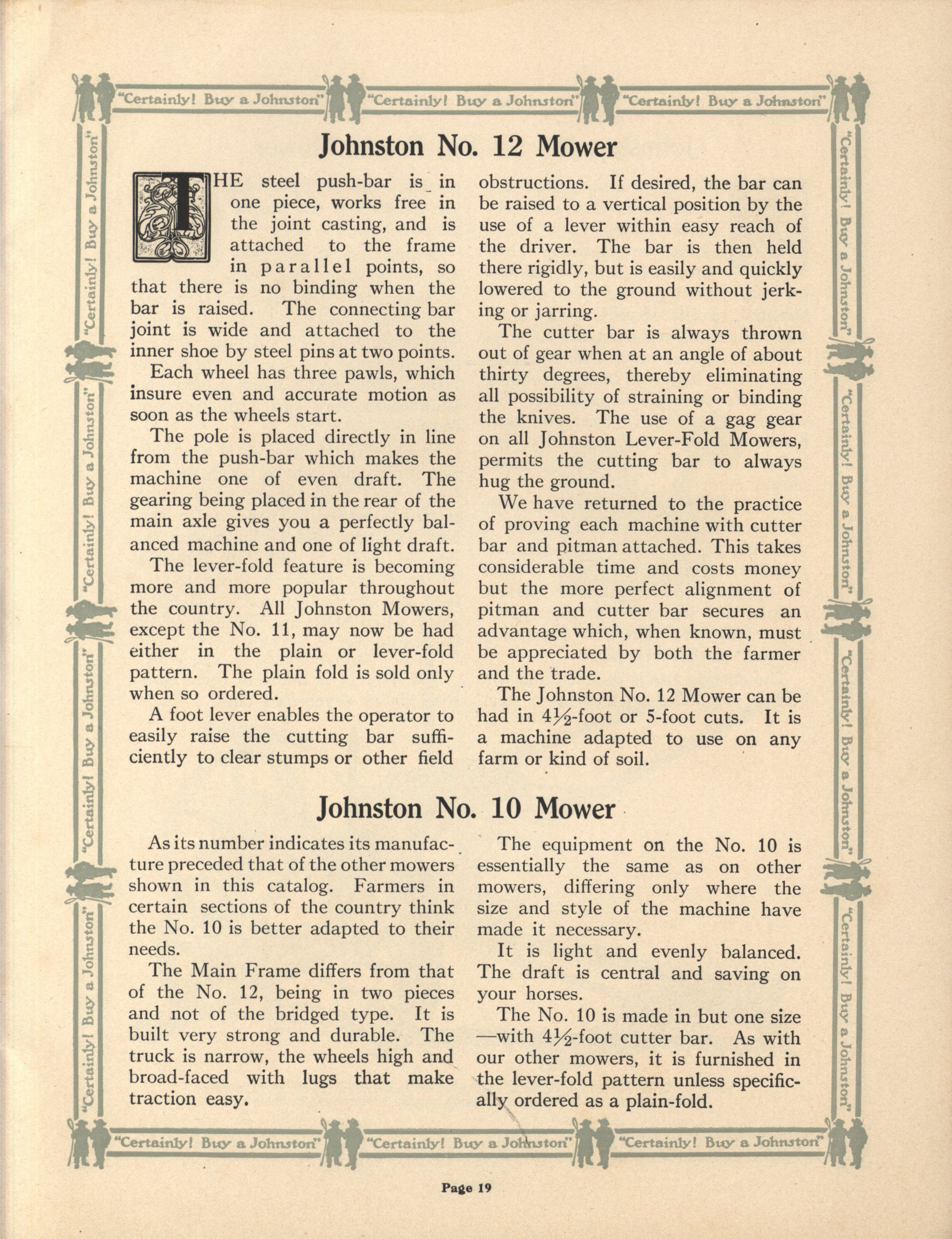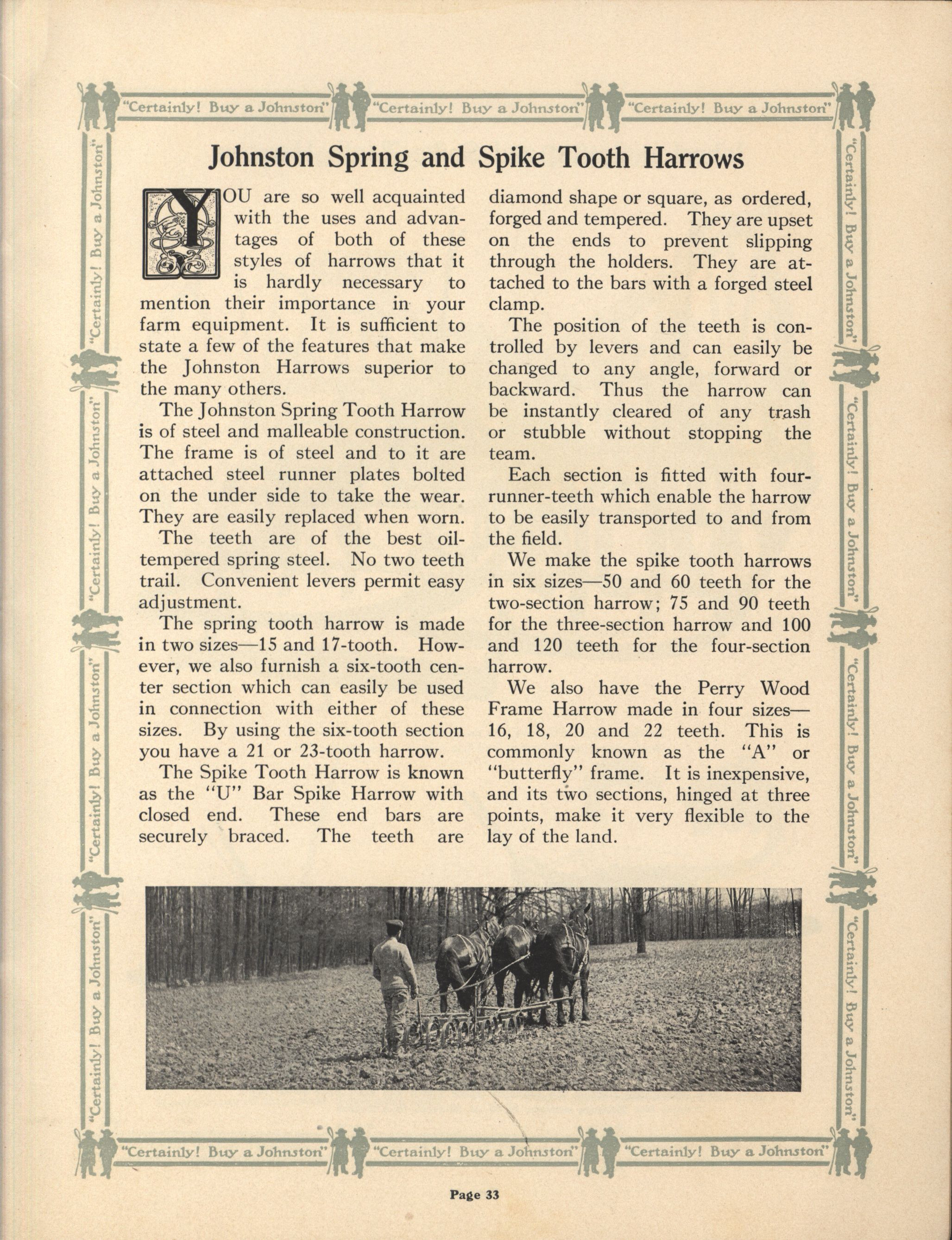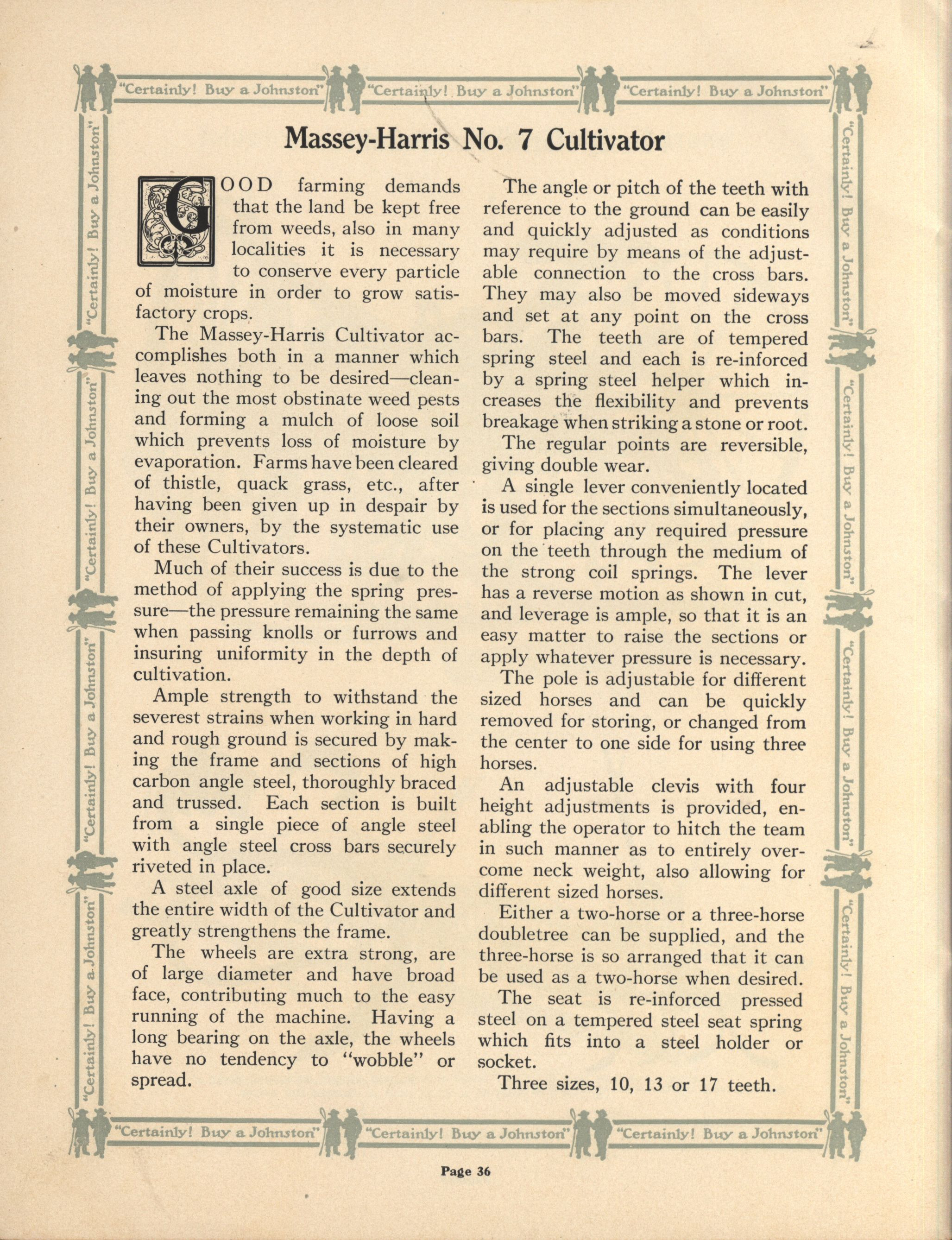 - "The Johnston Harvester Company farm machinery catalog", Agricultural Machinery Literature Collection, Iowa State University Library Digital Collections