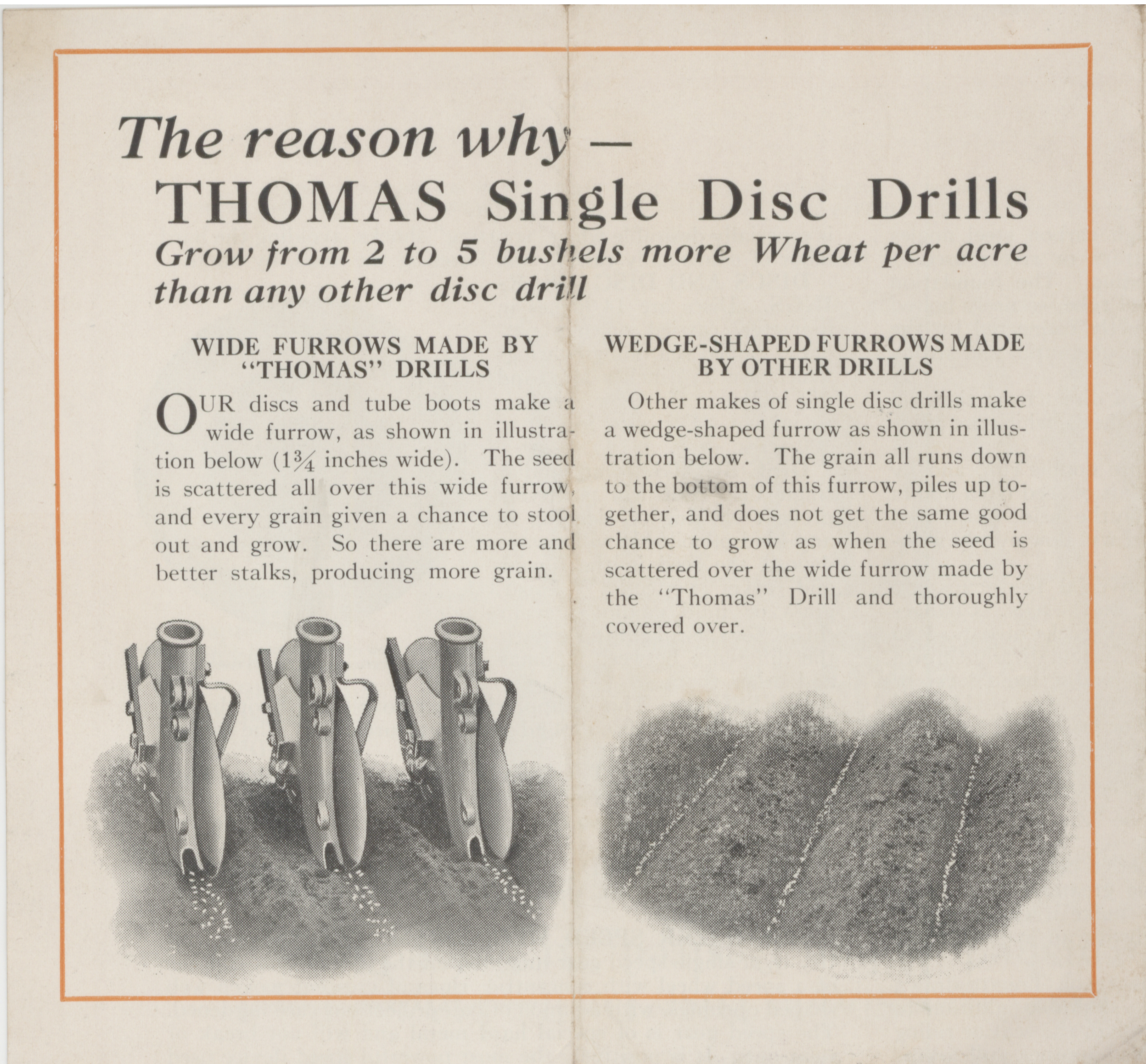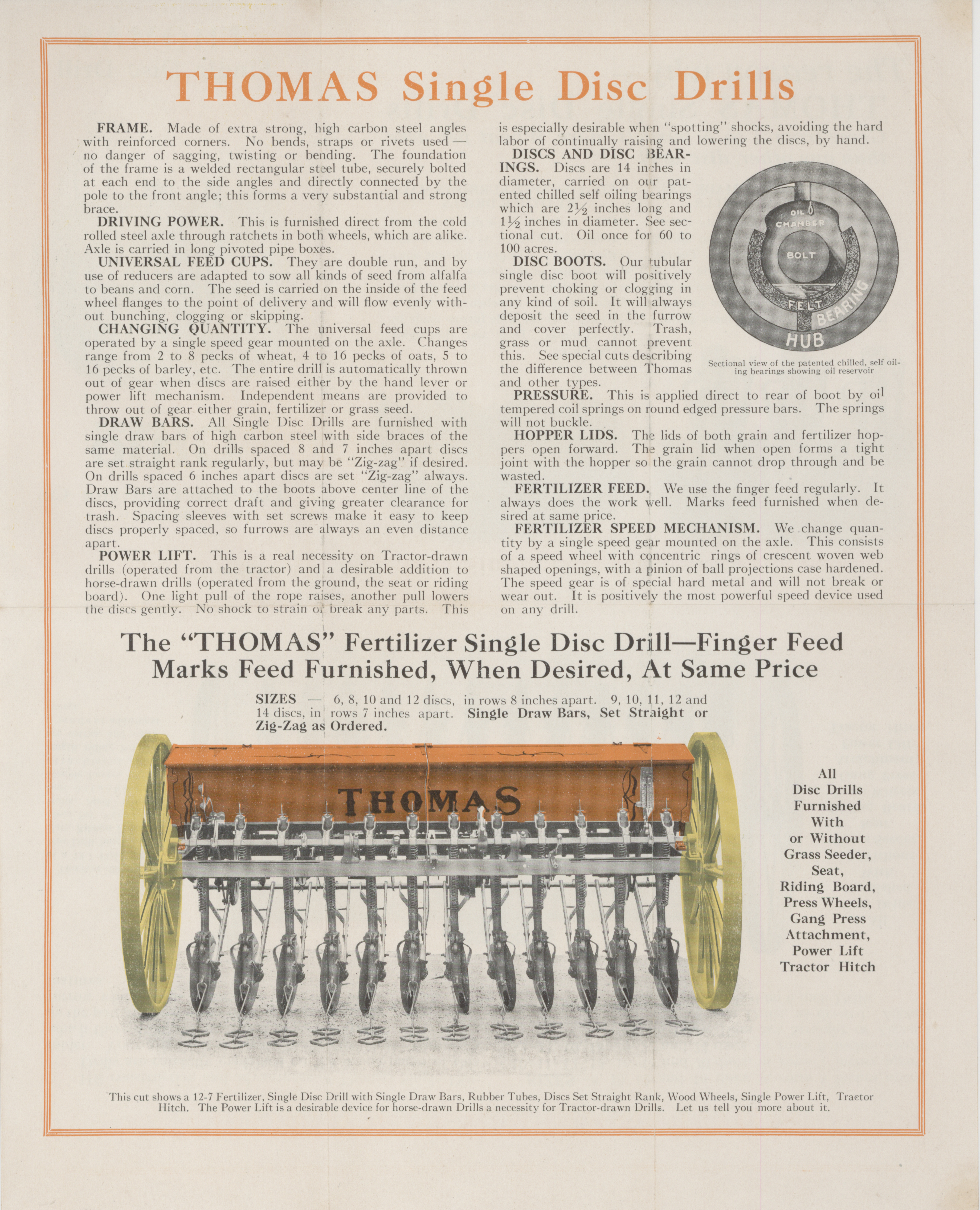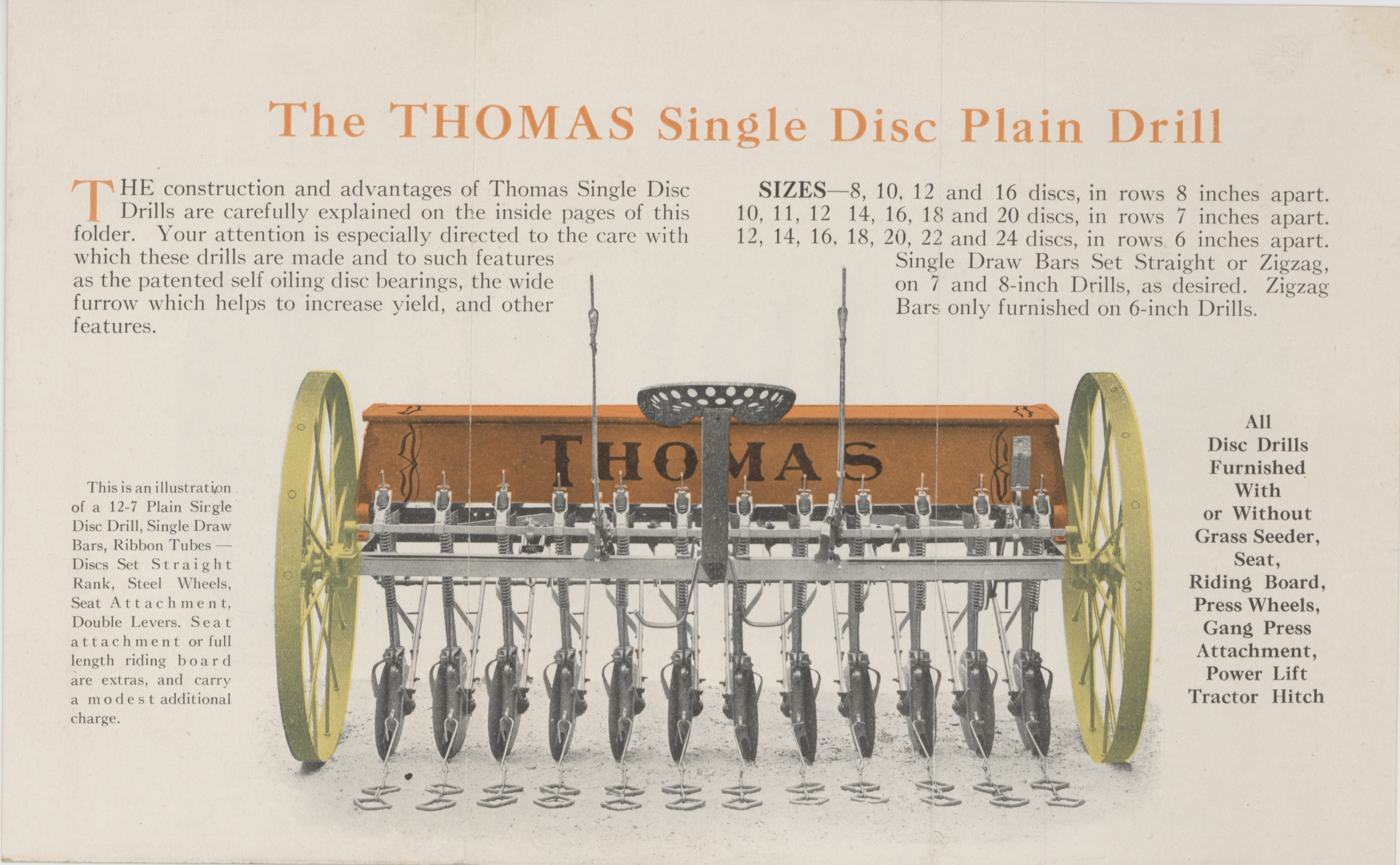 - "Ohio Cultivator Company Thomas Single Disc Drill advertisement", Agricultural Machinery Literature Collection, Iowa State University Library Digital Collections
