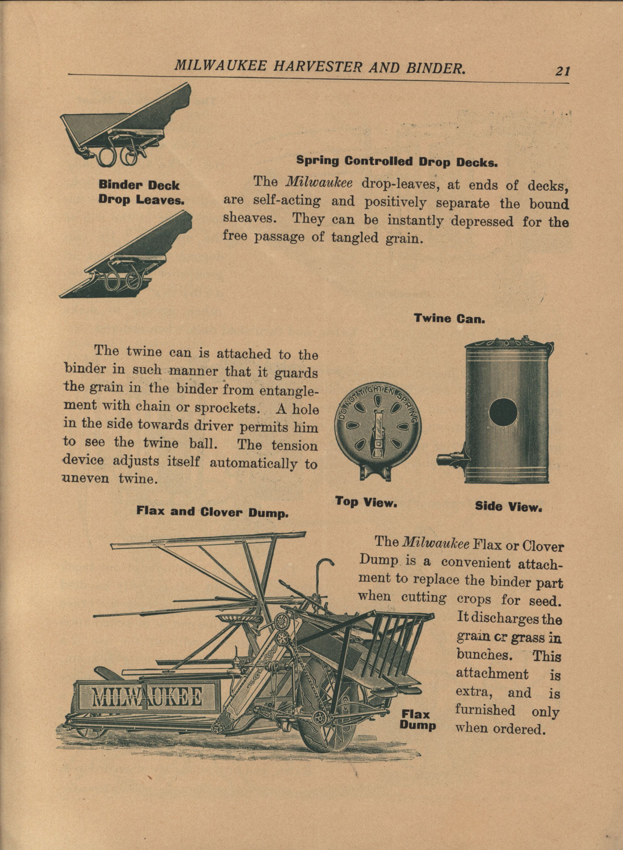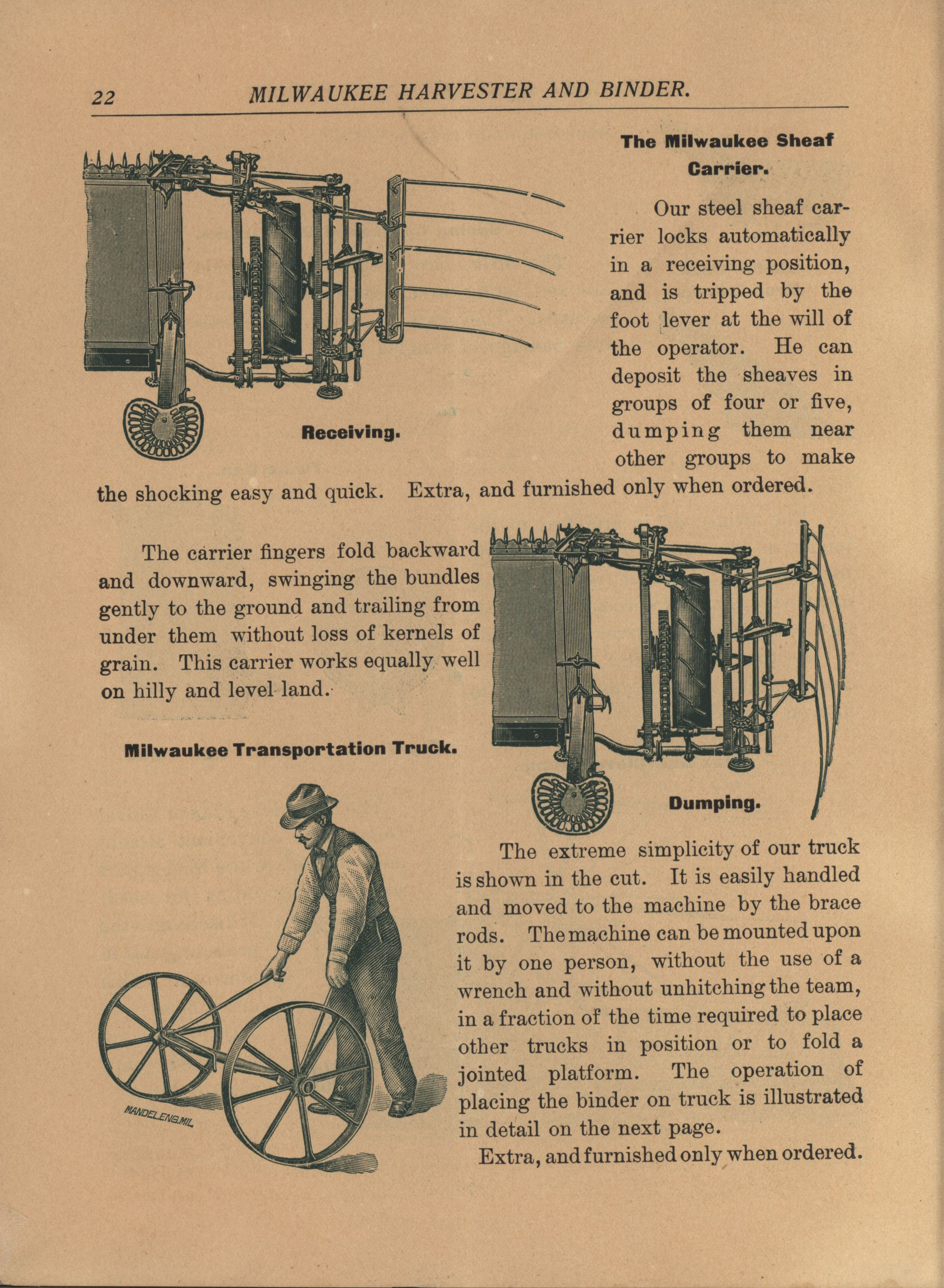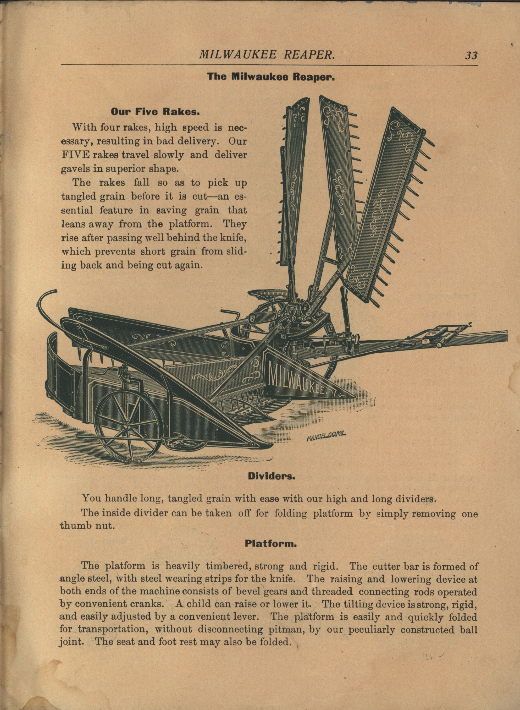 - "Milwaukee Harvester Company harvesters, mowers and reapers catalog", Agricultural Machinery Literature Collection, Iowa State University Library Digital Collections