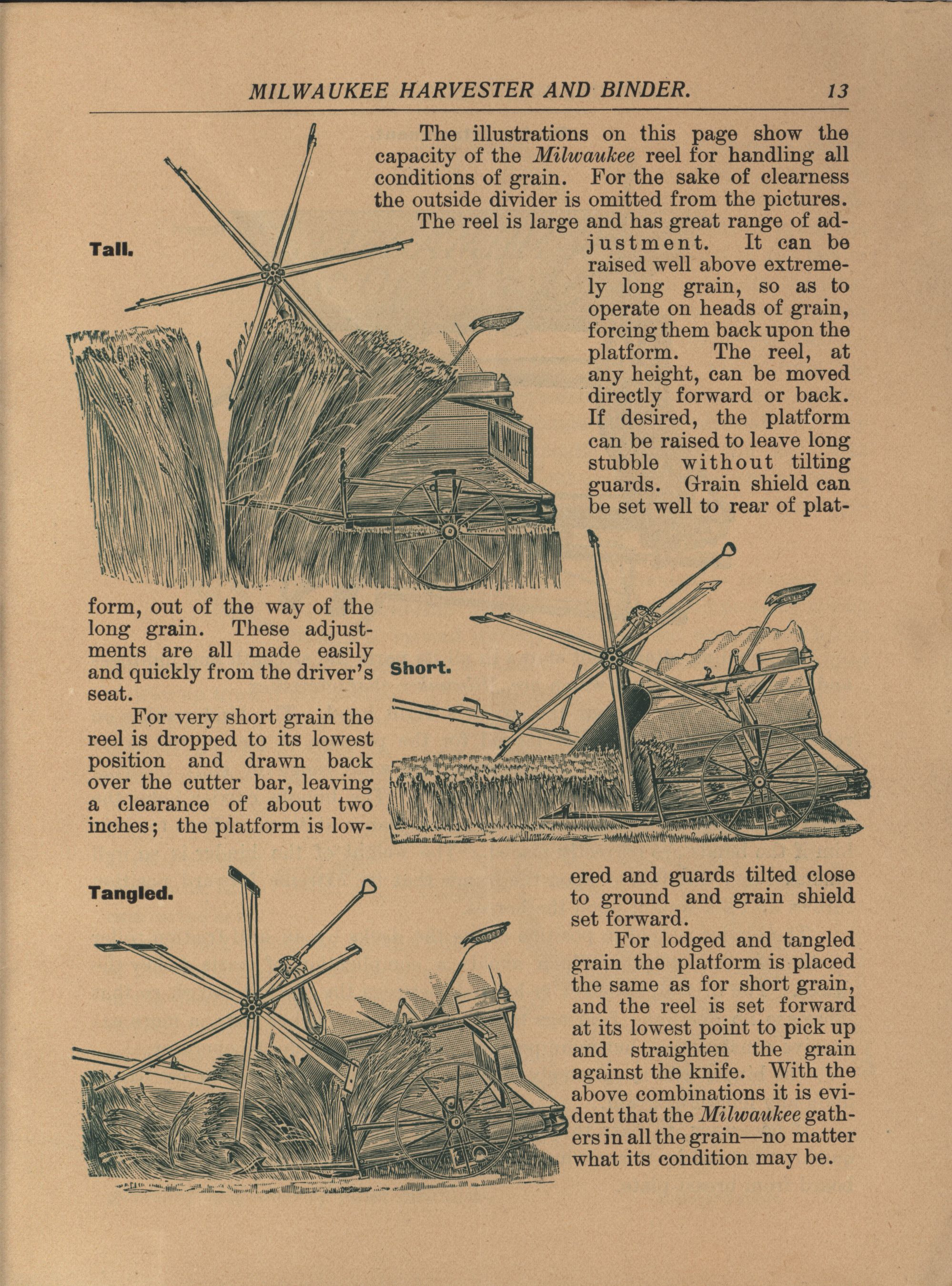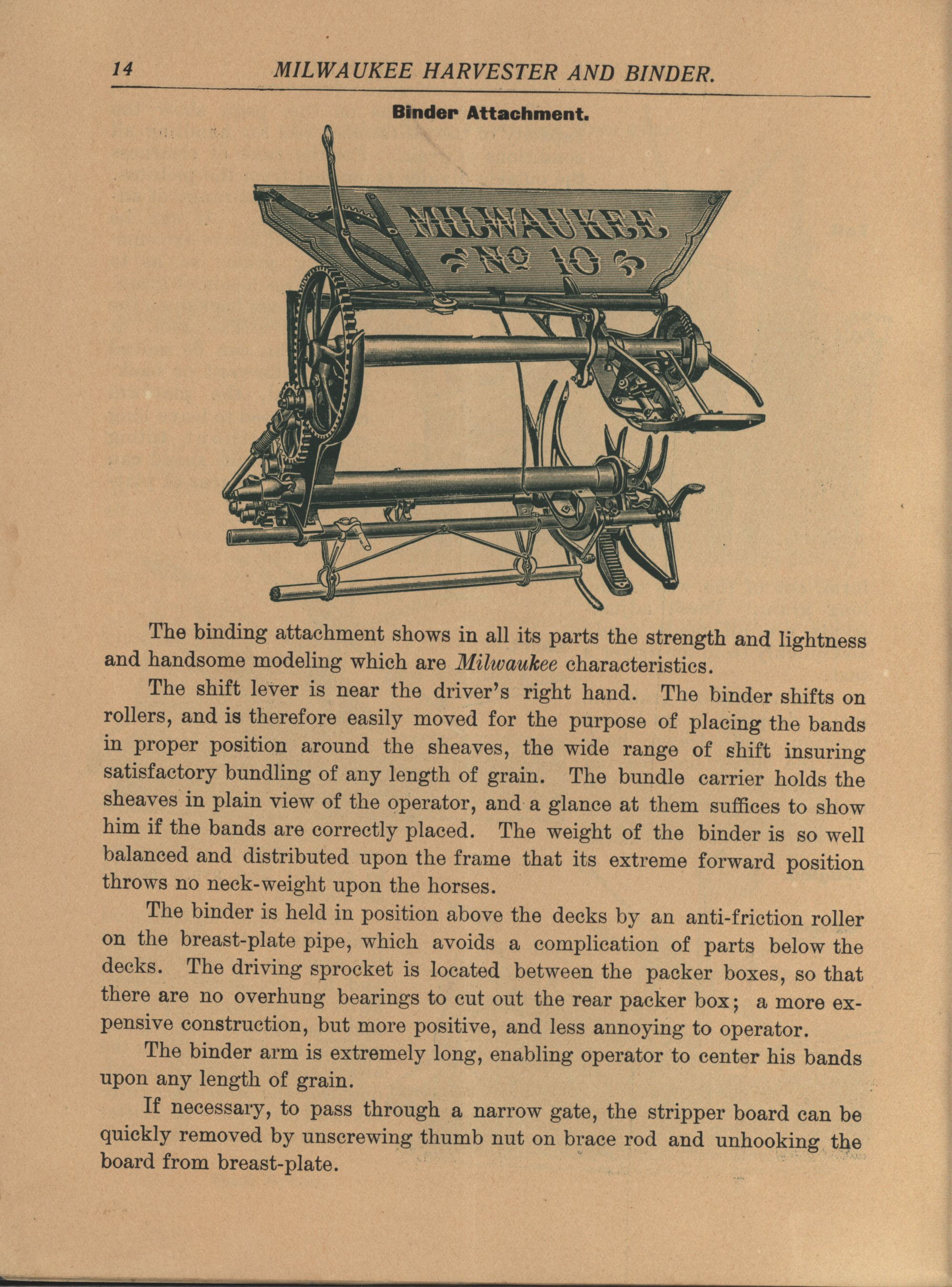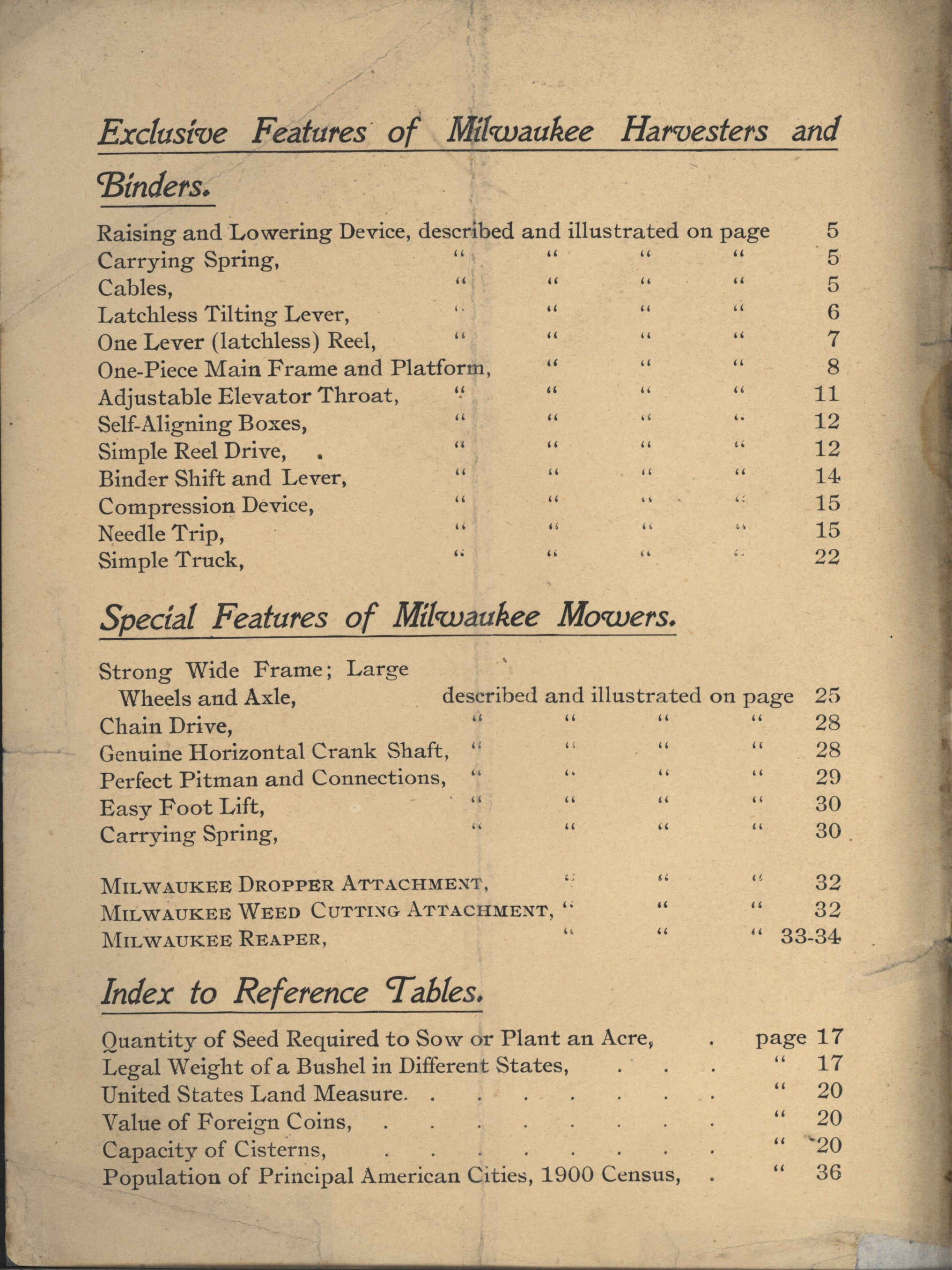 - "Milwaukee Harvester Company harvesters, mowers and reapers catalog", Agricultural Machinery Literature Collection, Iowa State University Library Digital Collections