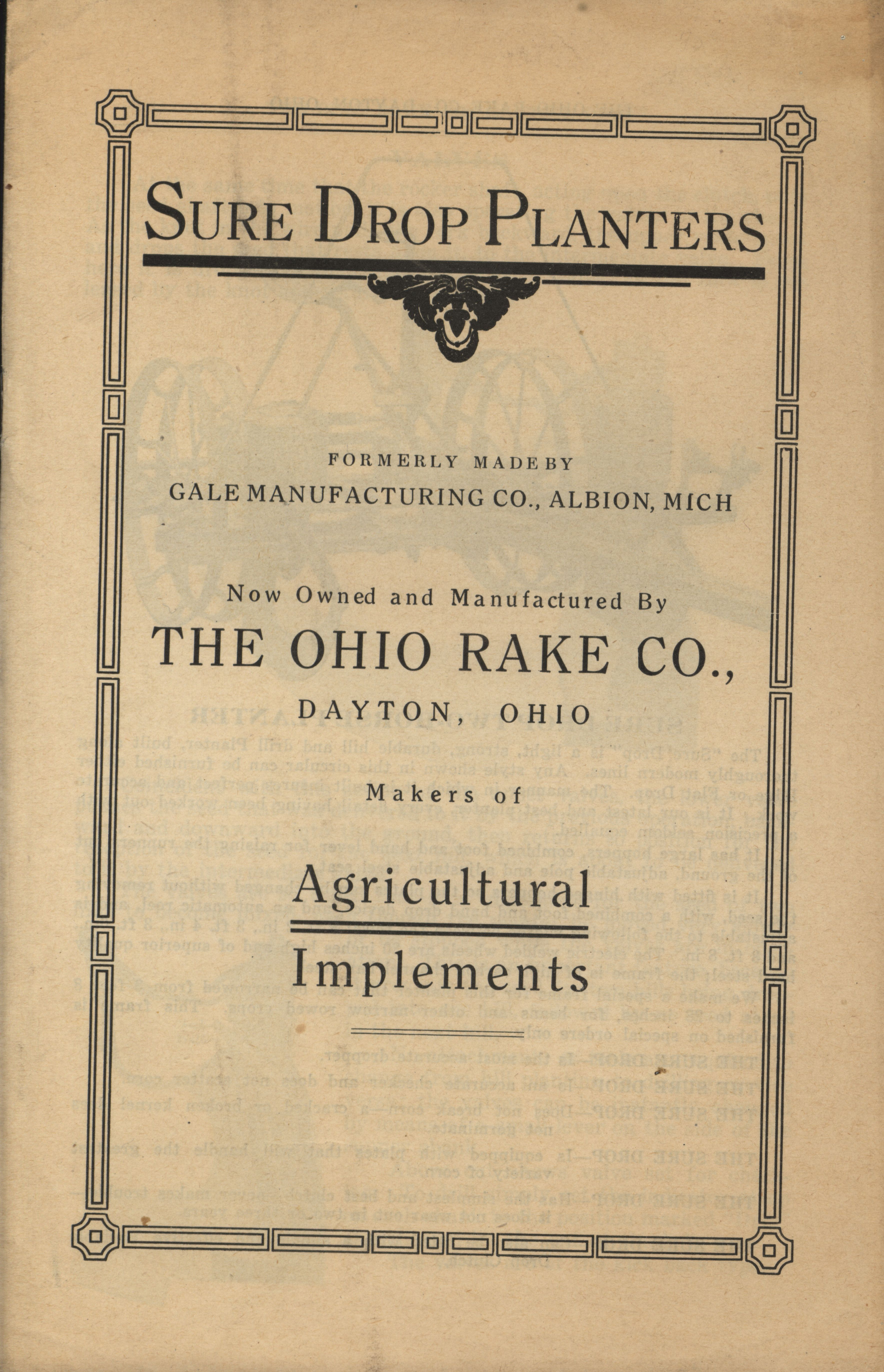 - "The Ohio Rake Company agricultural implements catalog", Agricultural Machinery Literature Collection, Iowa State University Library Digital Collections