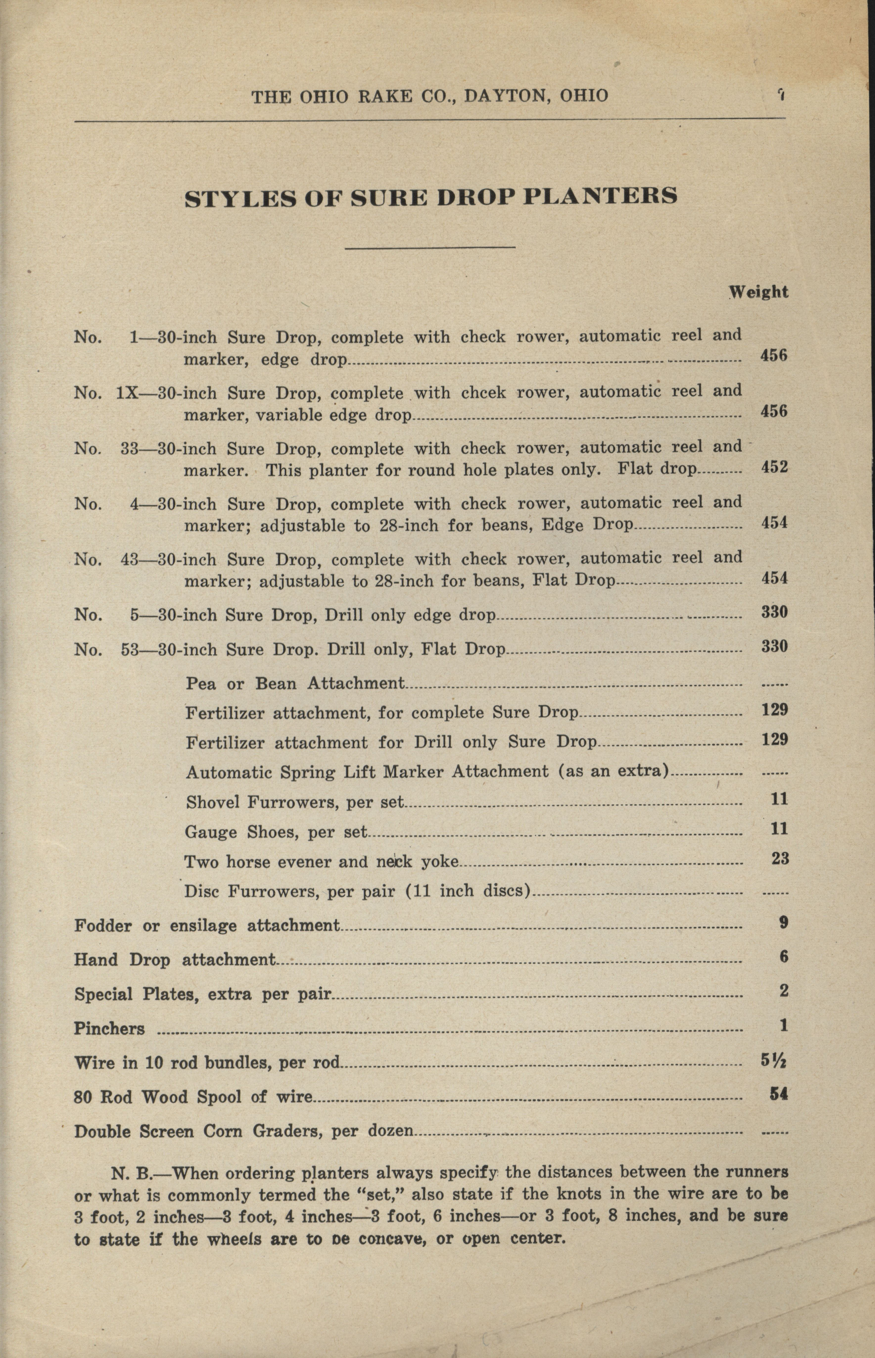 The Ohio Rake Company agricultural implements catalog Item Info