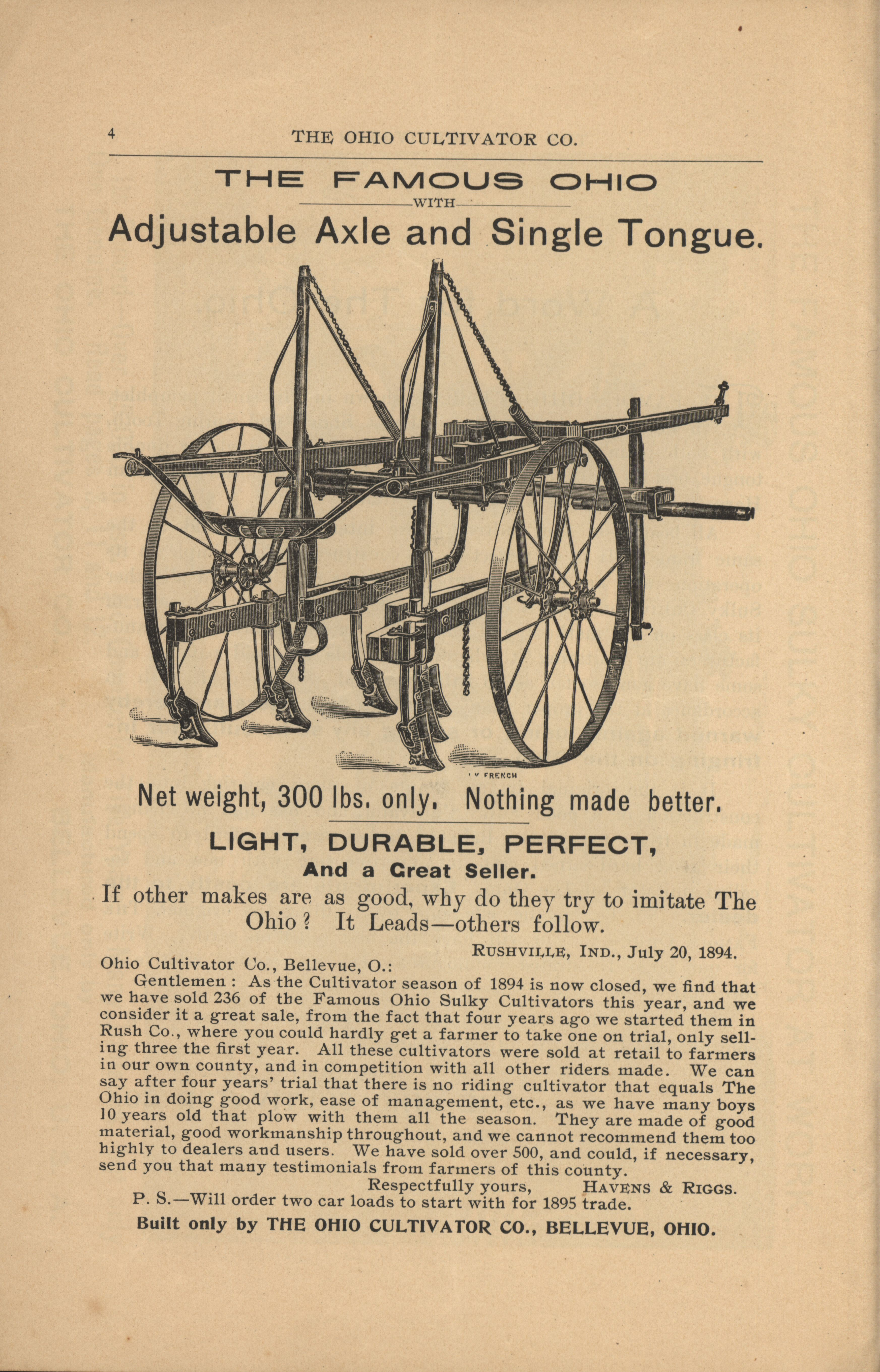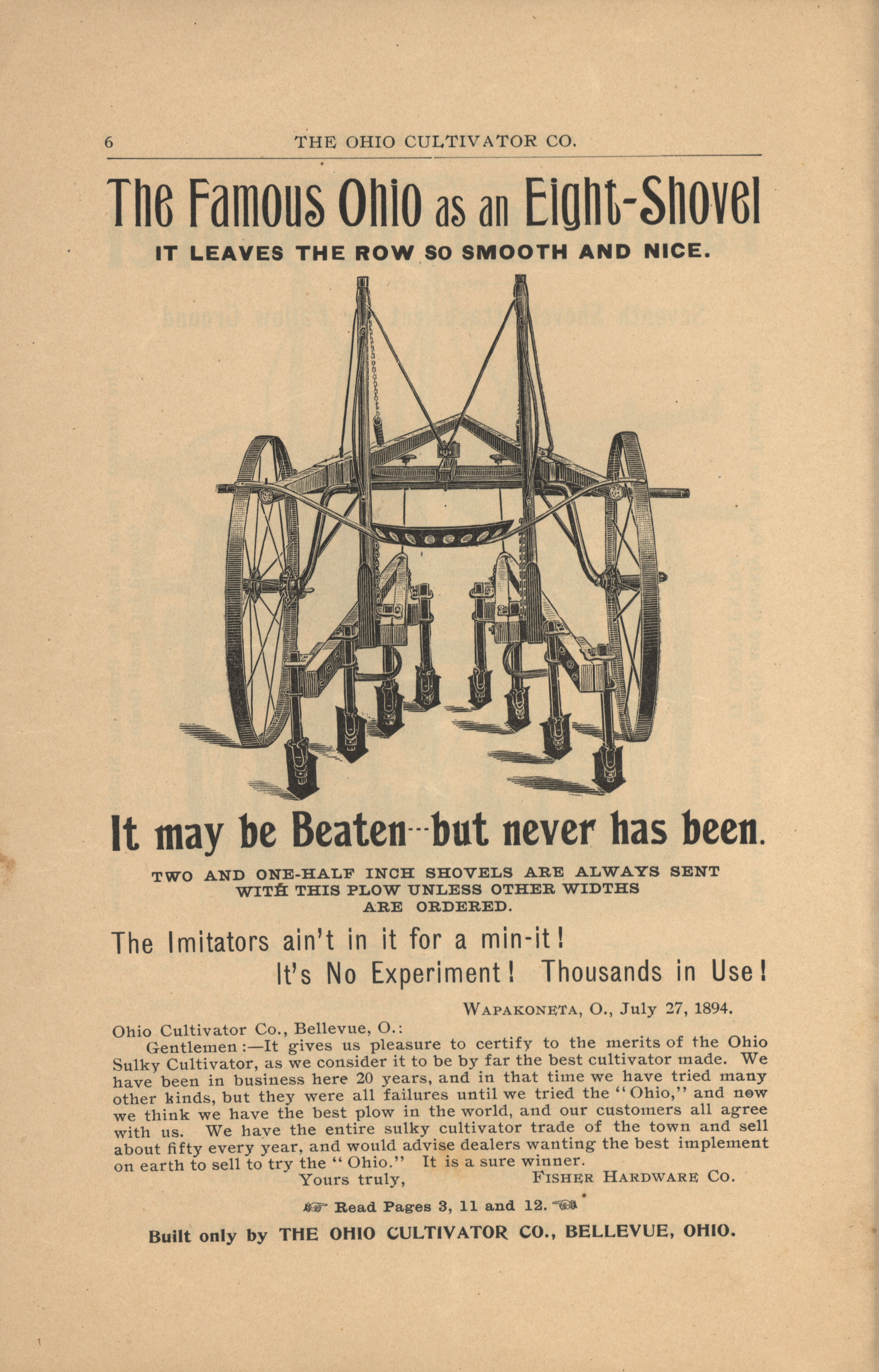 - Illustrated catalog describing the agricultural implements offered by Ohio Cultivator Company in 1894.