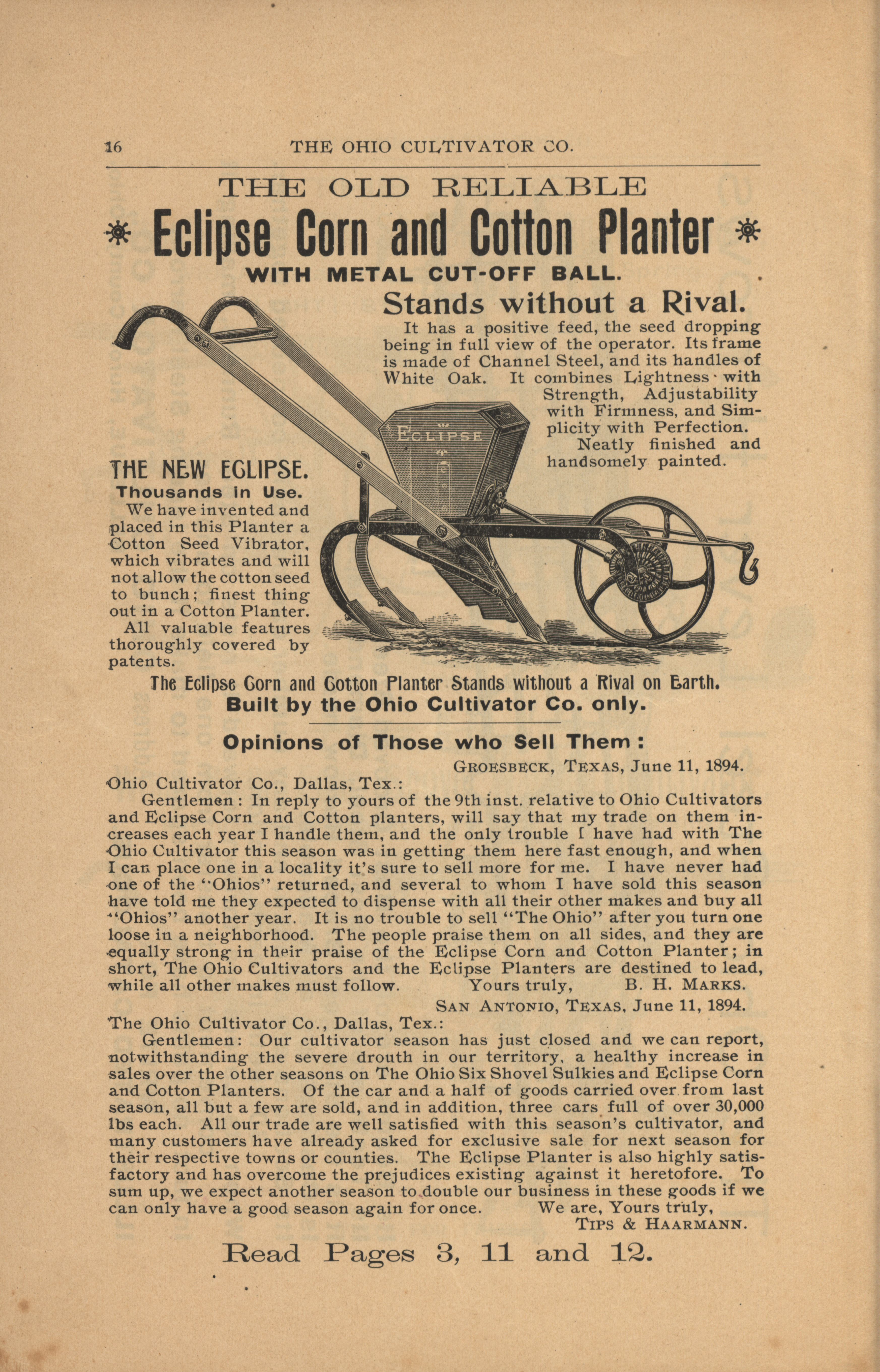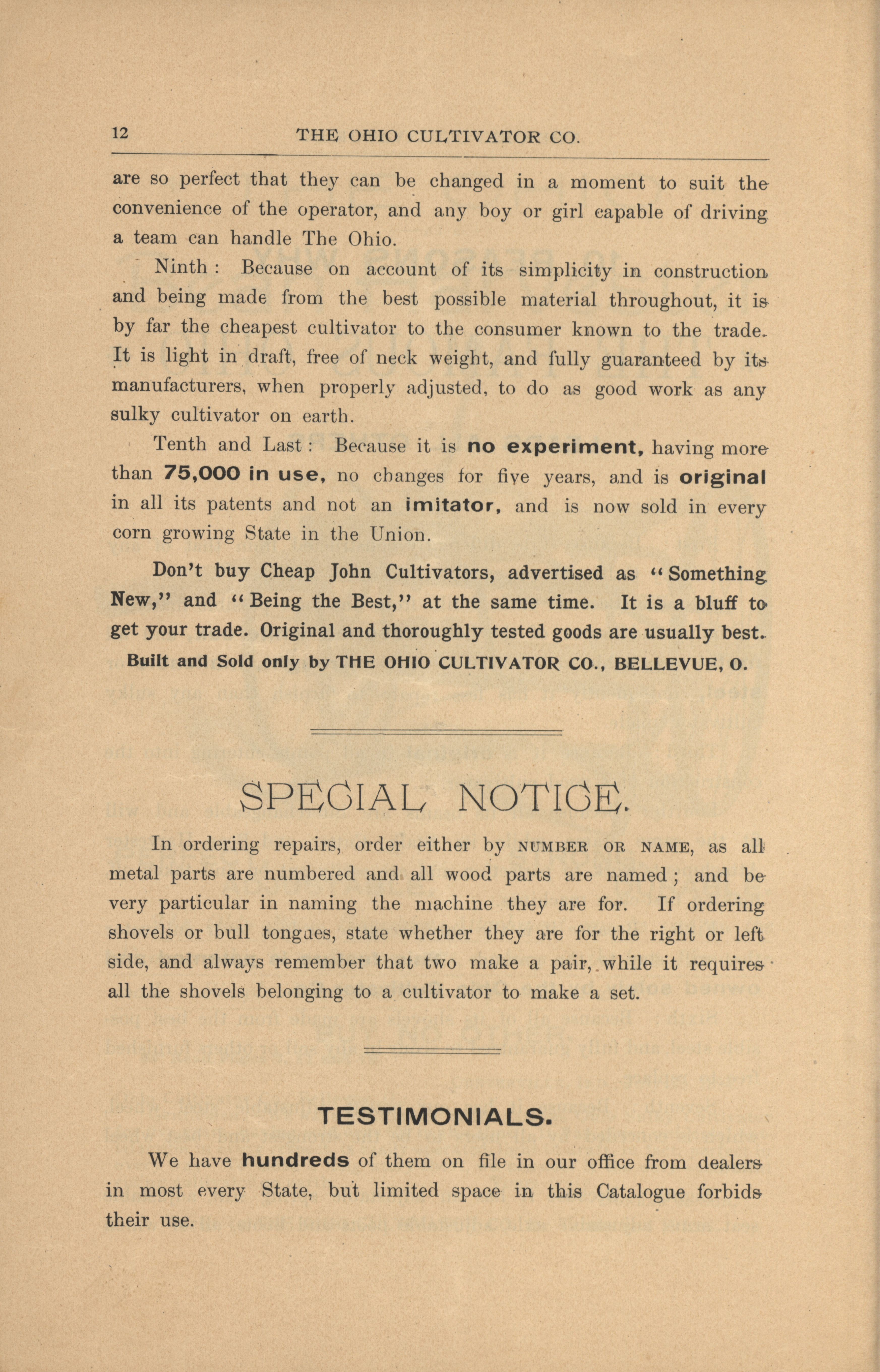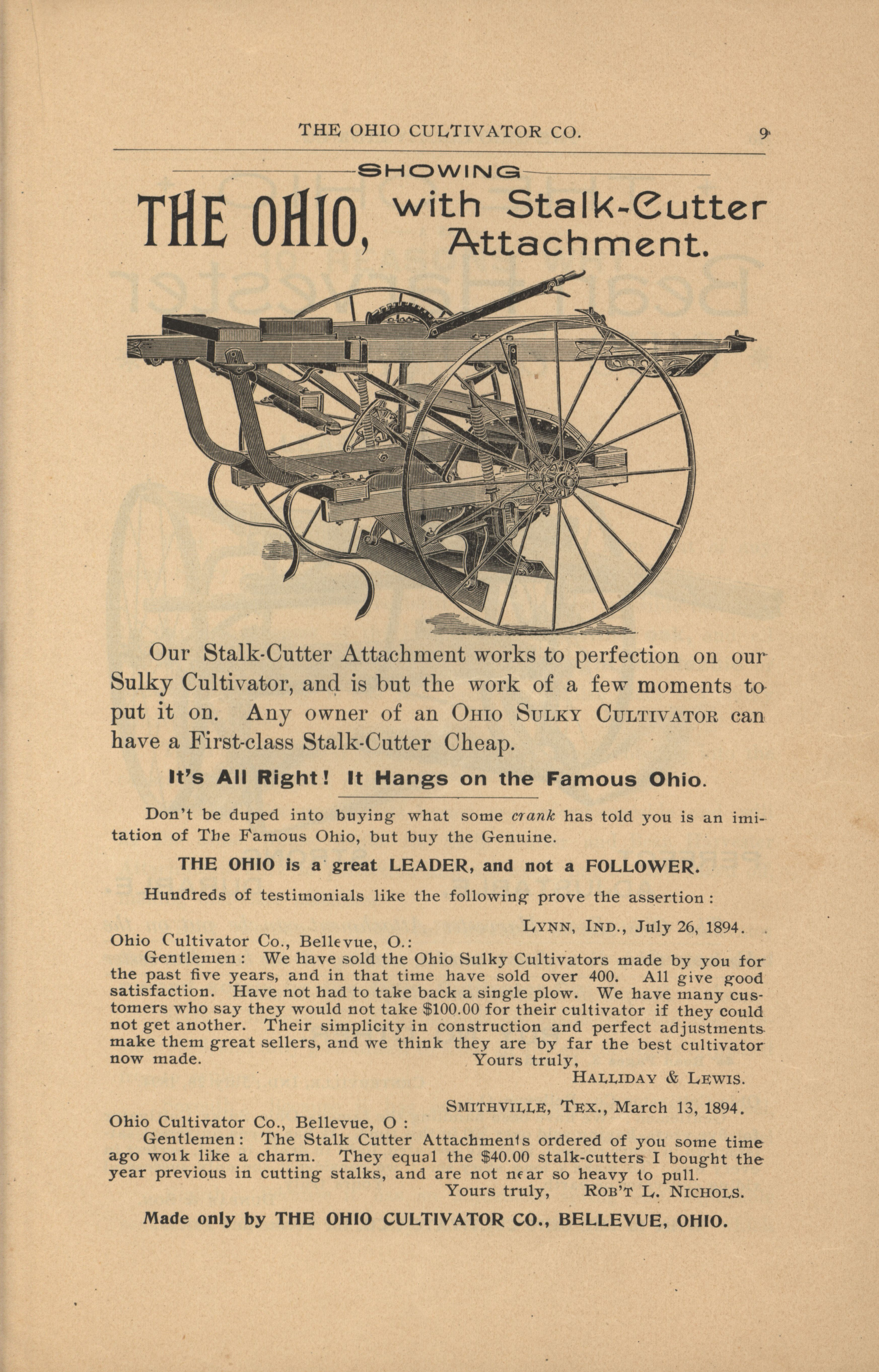 - "Ohio Cultivator Company 1894 catalog", Agricultural Machinery Literature Collection, Iowa State University Library Digital Collections