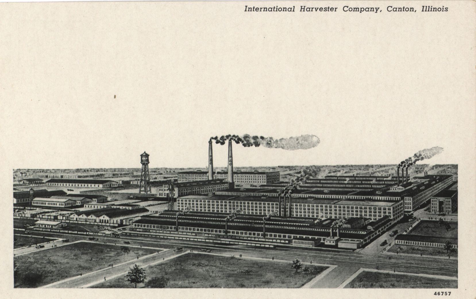 - Illustrated postcard depicting the International Harvester Company of America manufacturing plant.