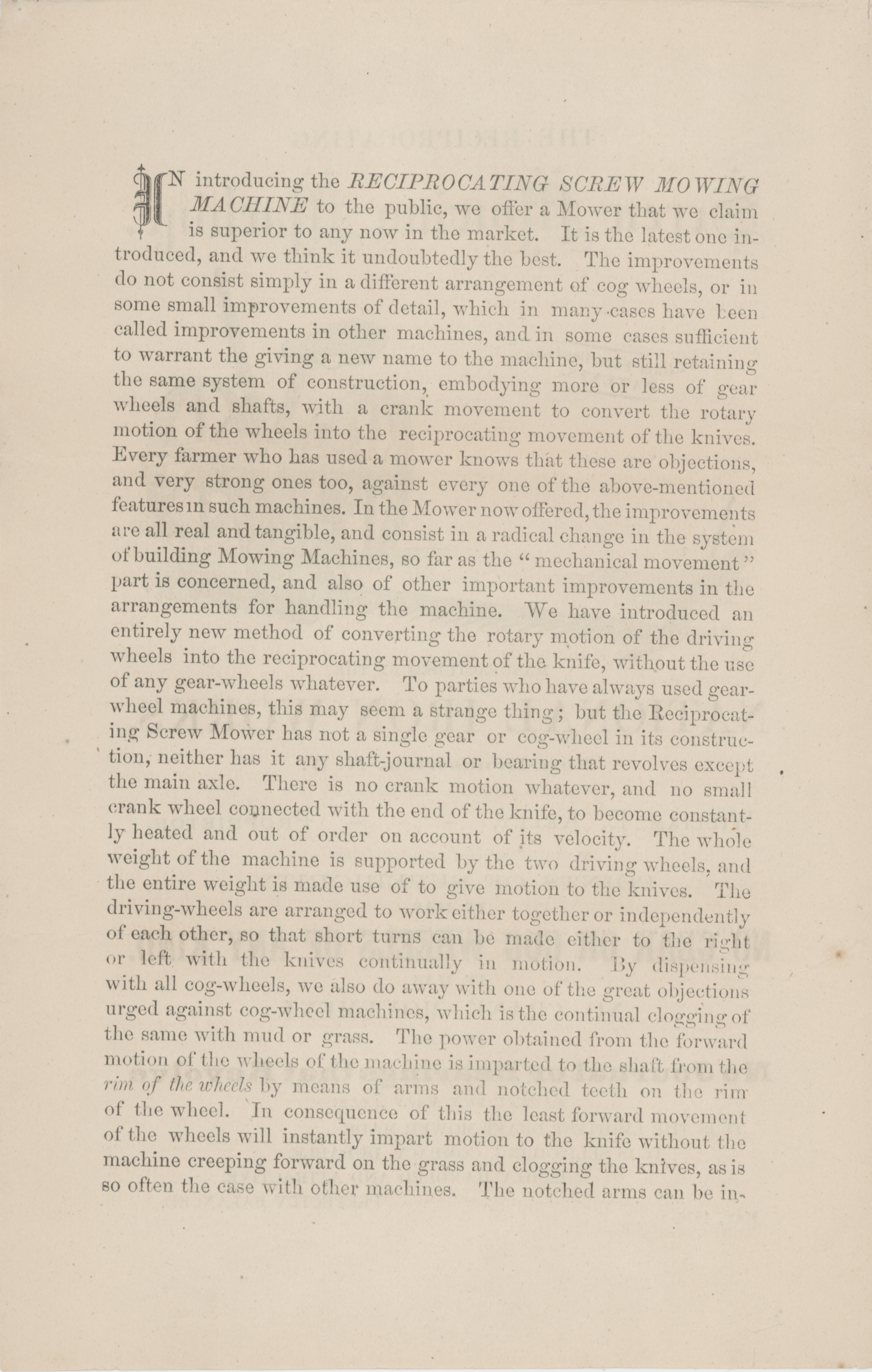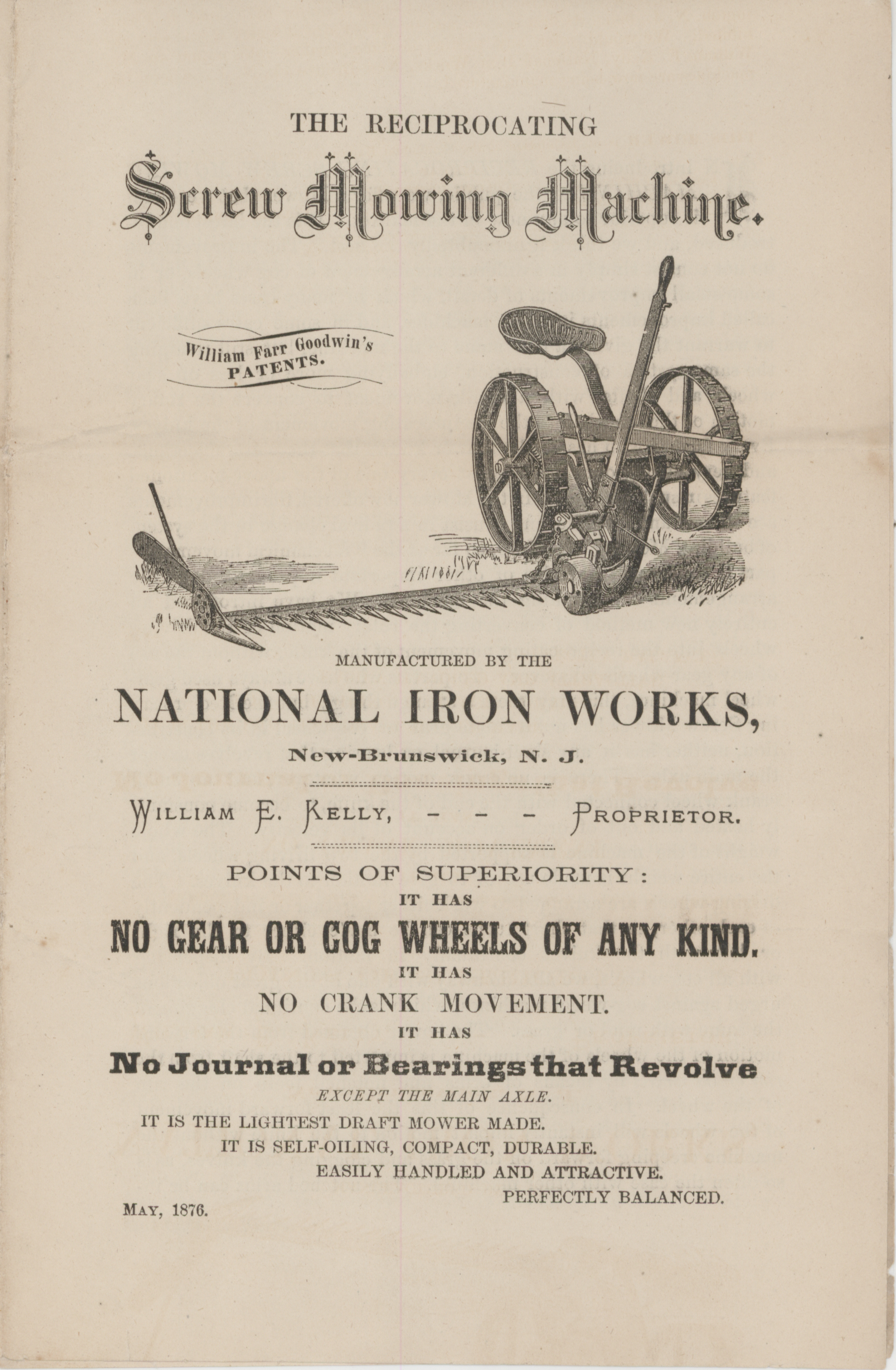 - Illustrated catalog advertising a mower manufactured by National Iron Works.