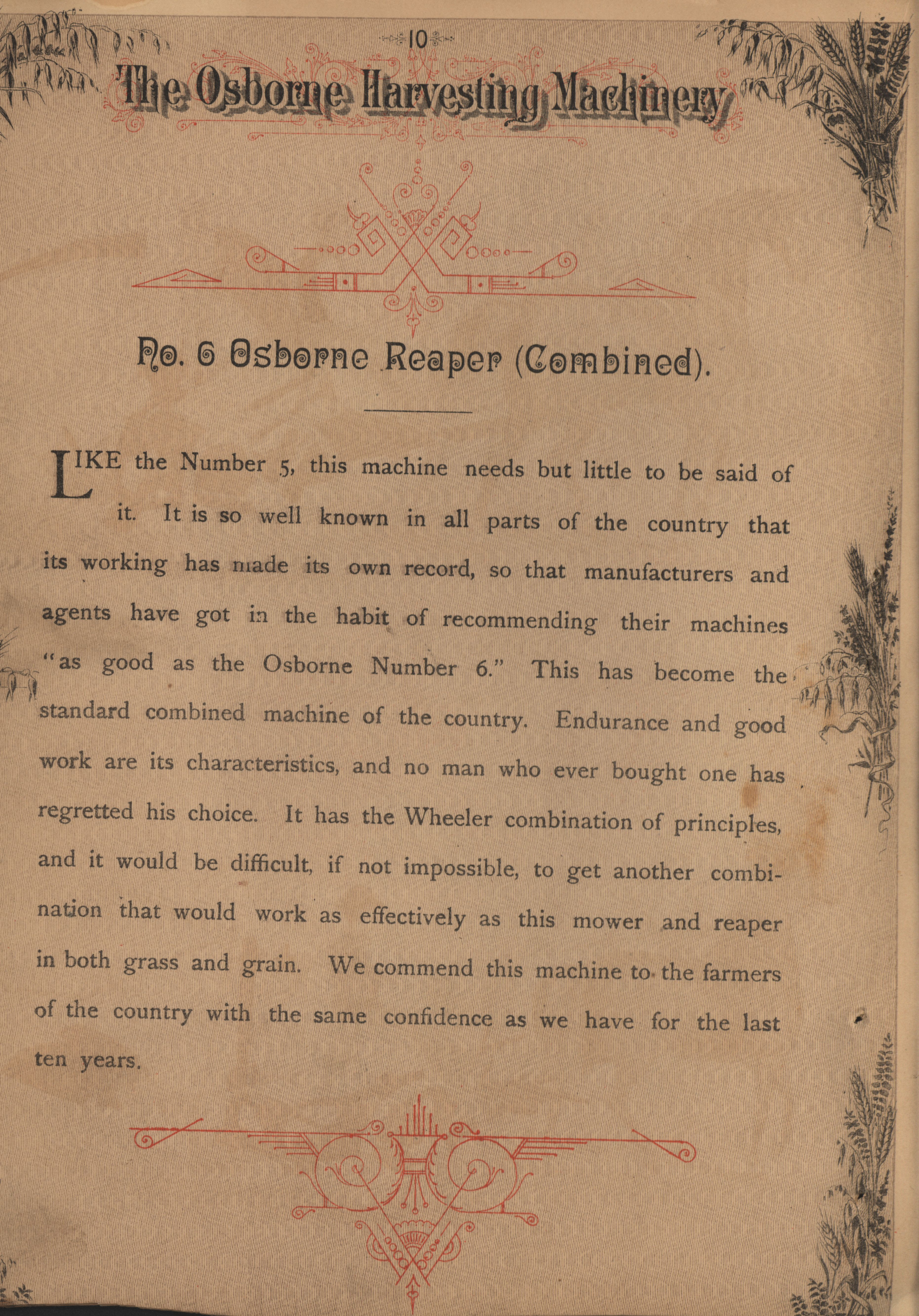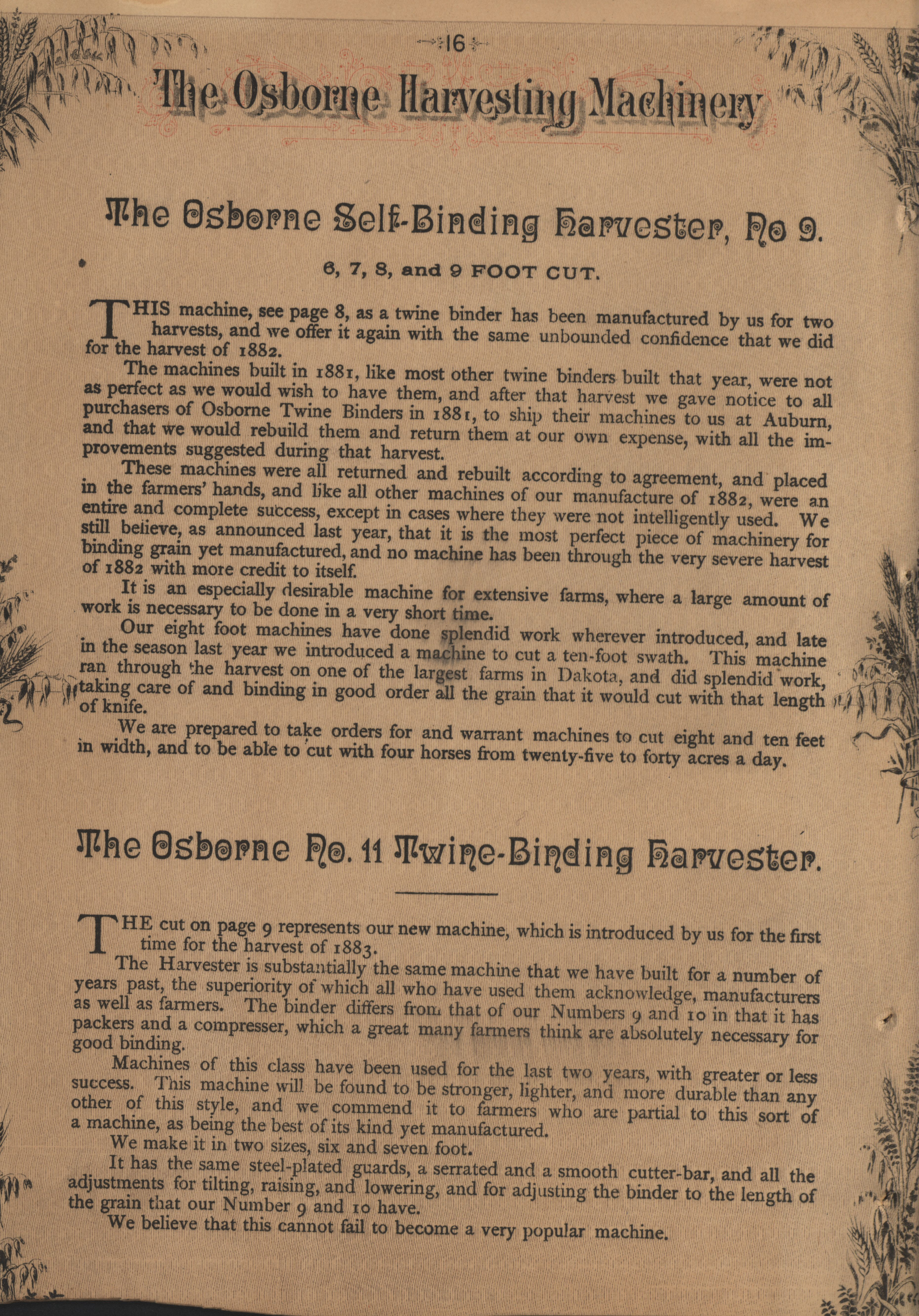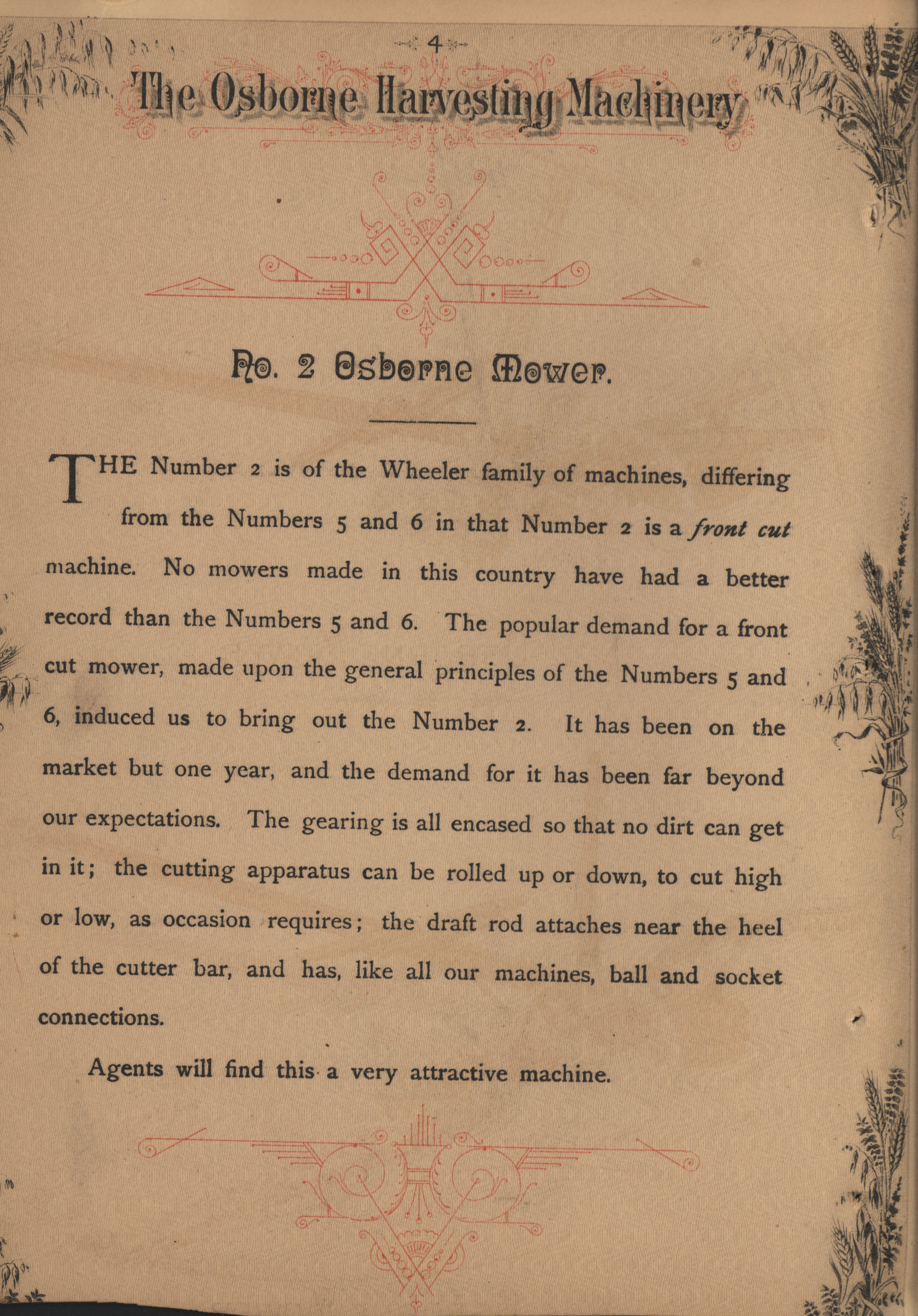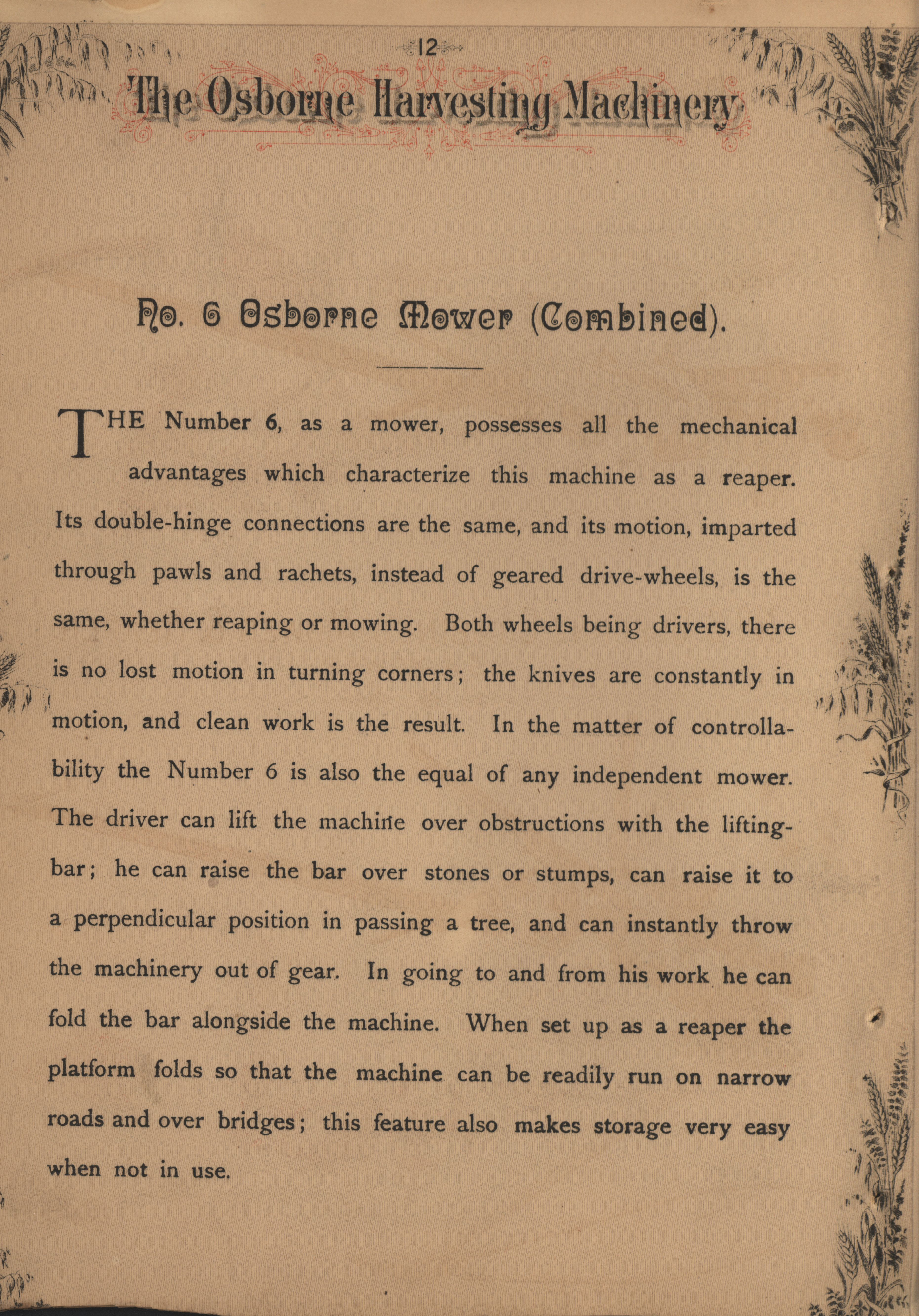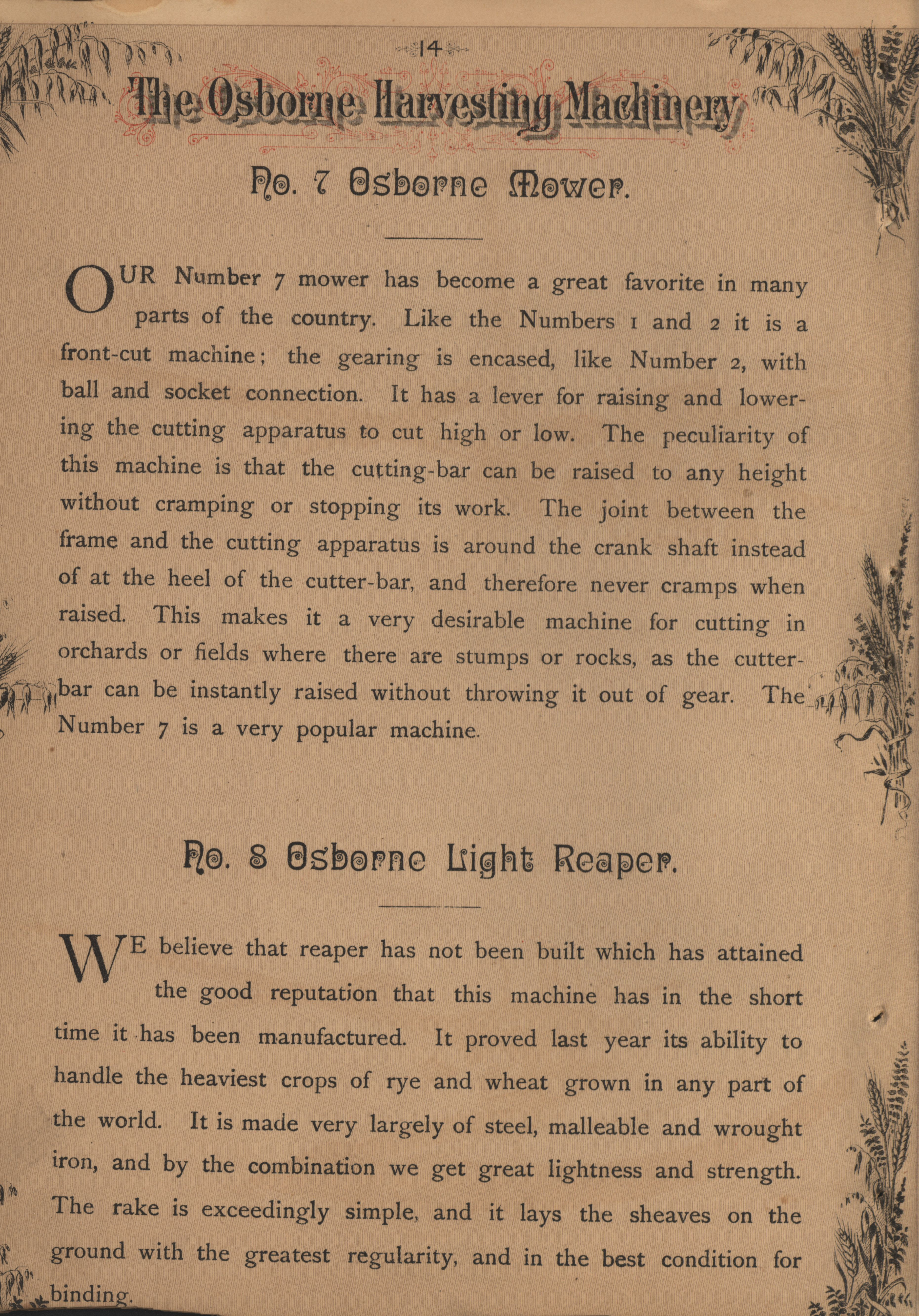 - "Illustrated catalog for D.M. Osborne and Co.", Agricultural Machinery Literature Collection, Iowa State University Library Digital Collections