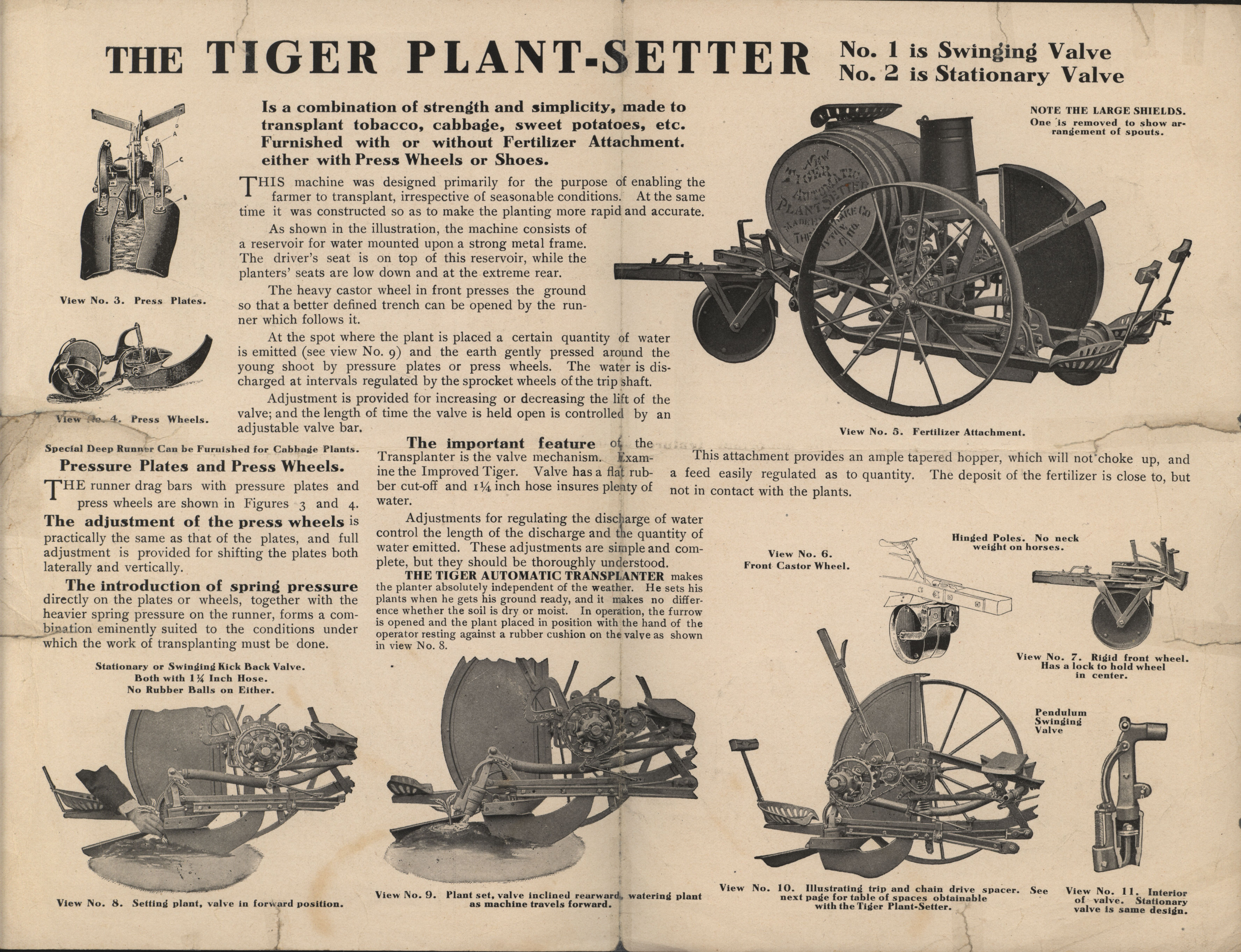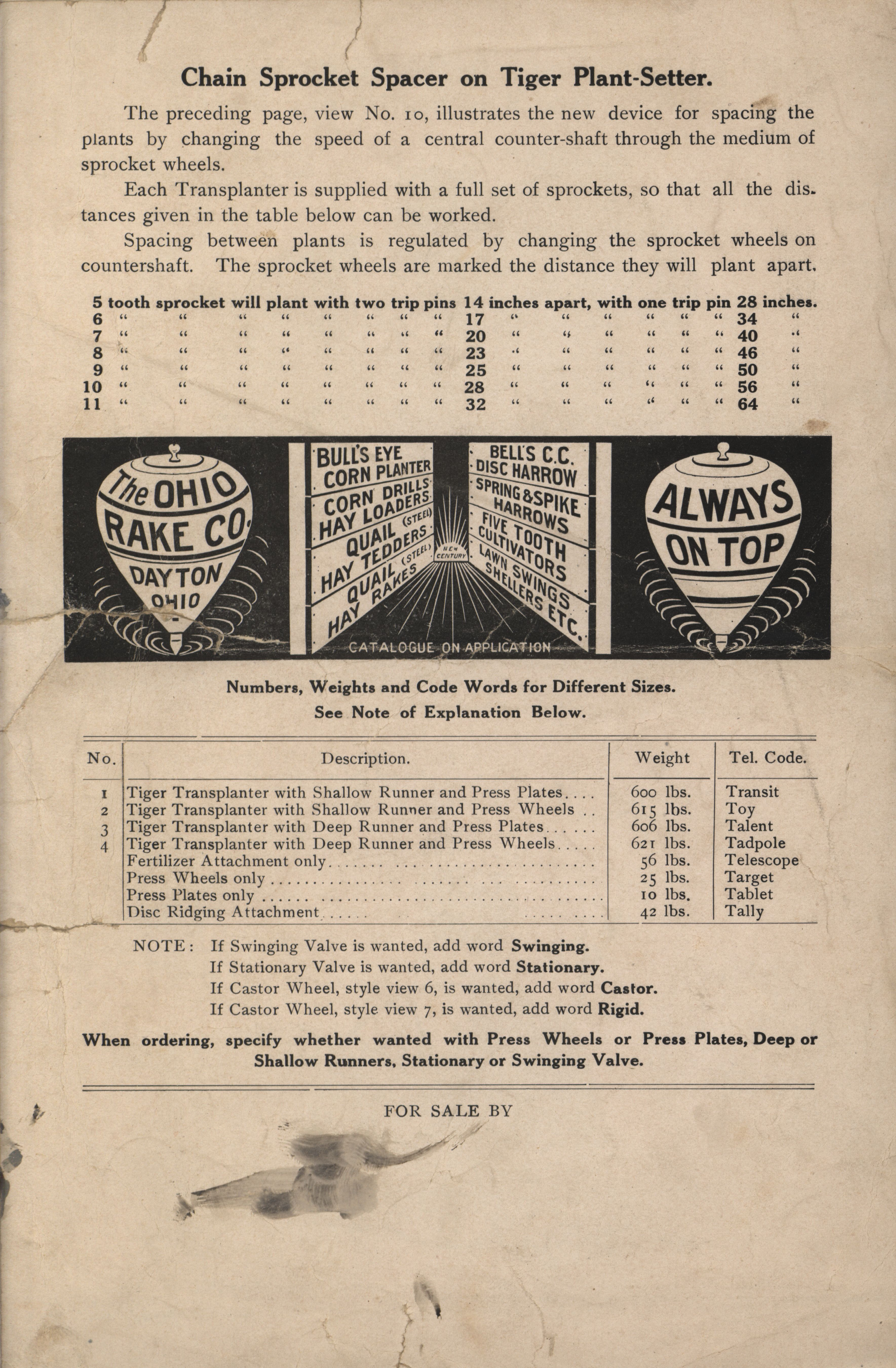 - "Ohio Rake Company Tiger Plant-Setter advertisement", Agricultural Machinery Literature Collection, Iowa State University Library Digital Collections