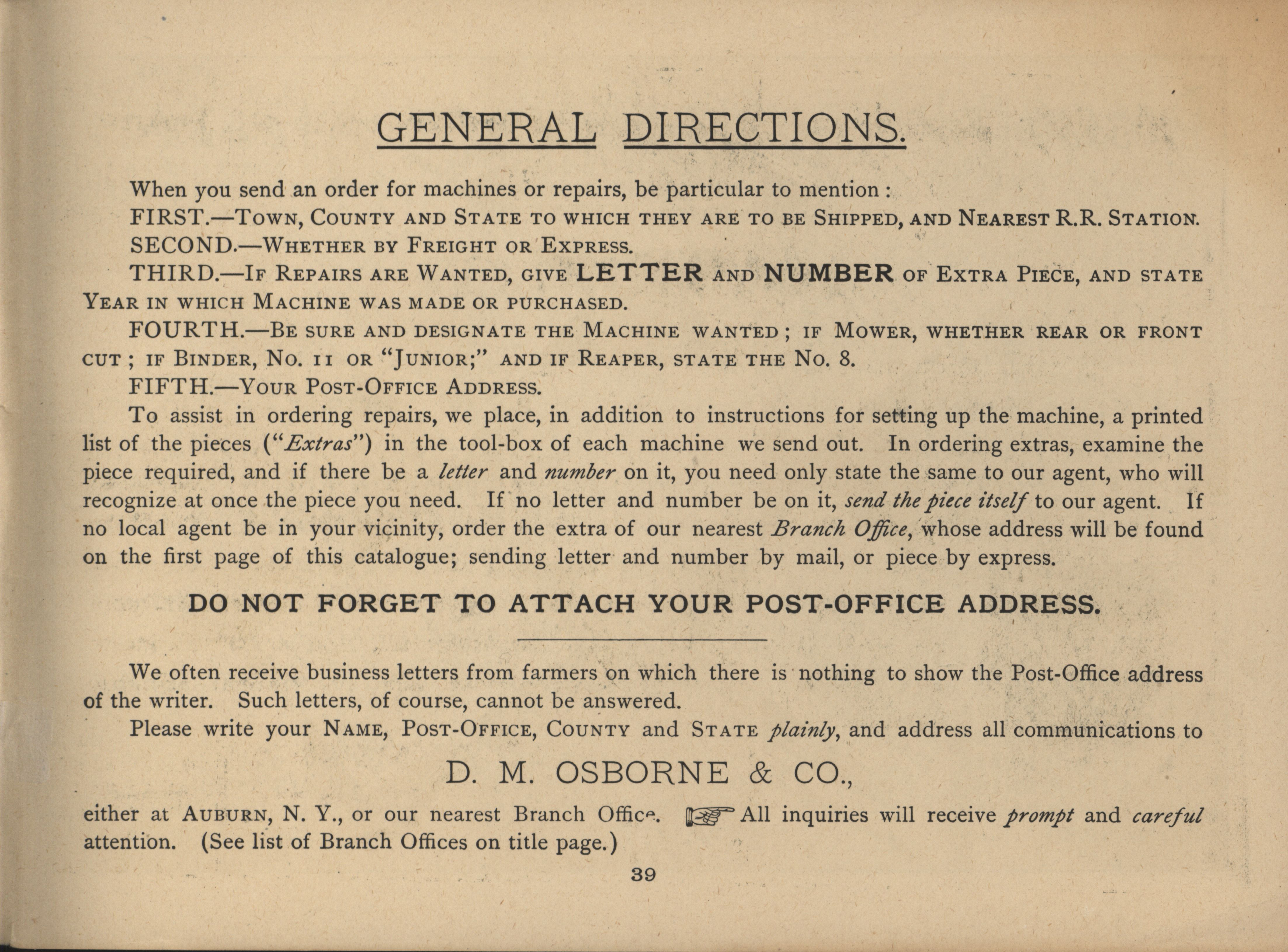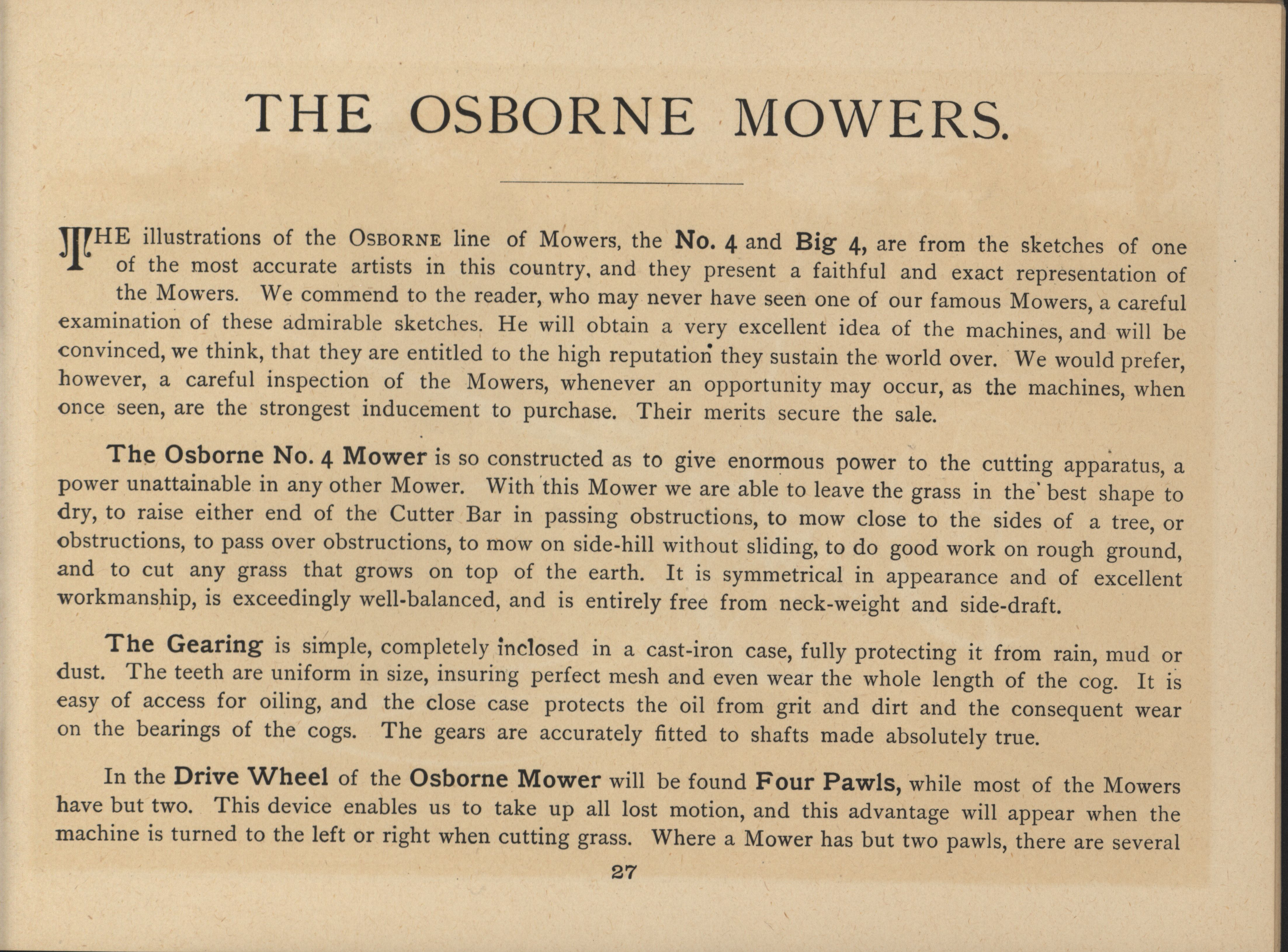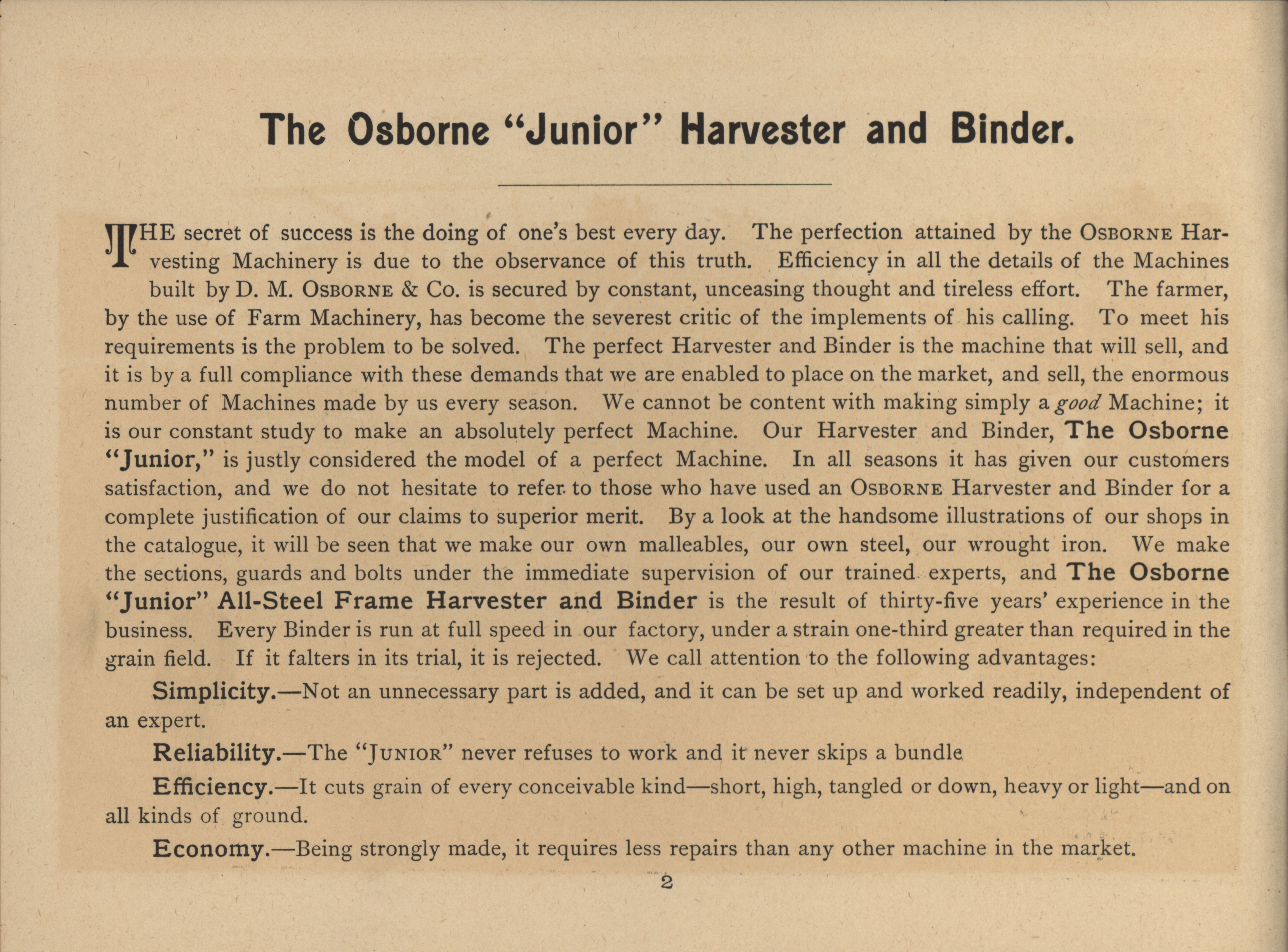- "Illustrated catalog for D.M. Osborne and Co.", Agricultural Machinery Literature Collection, Iowa State University Library Digital Collections