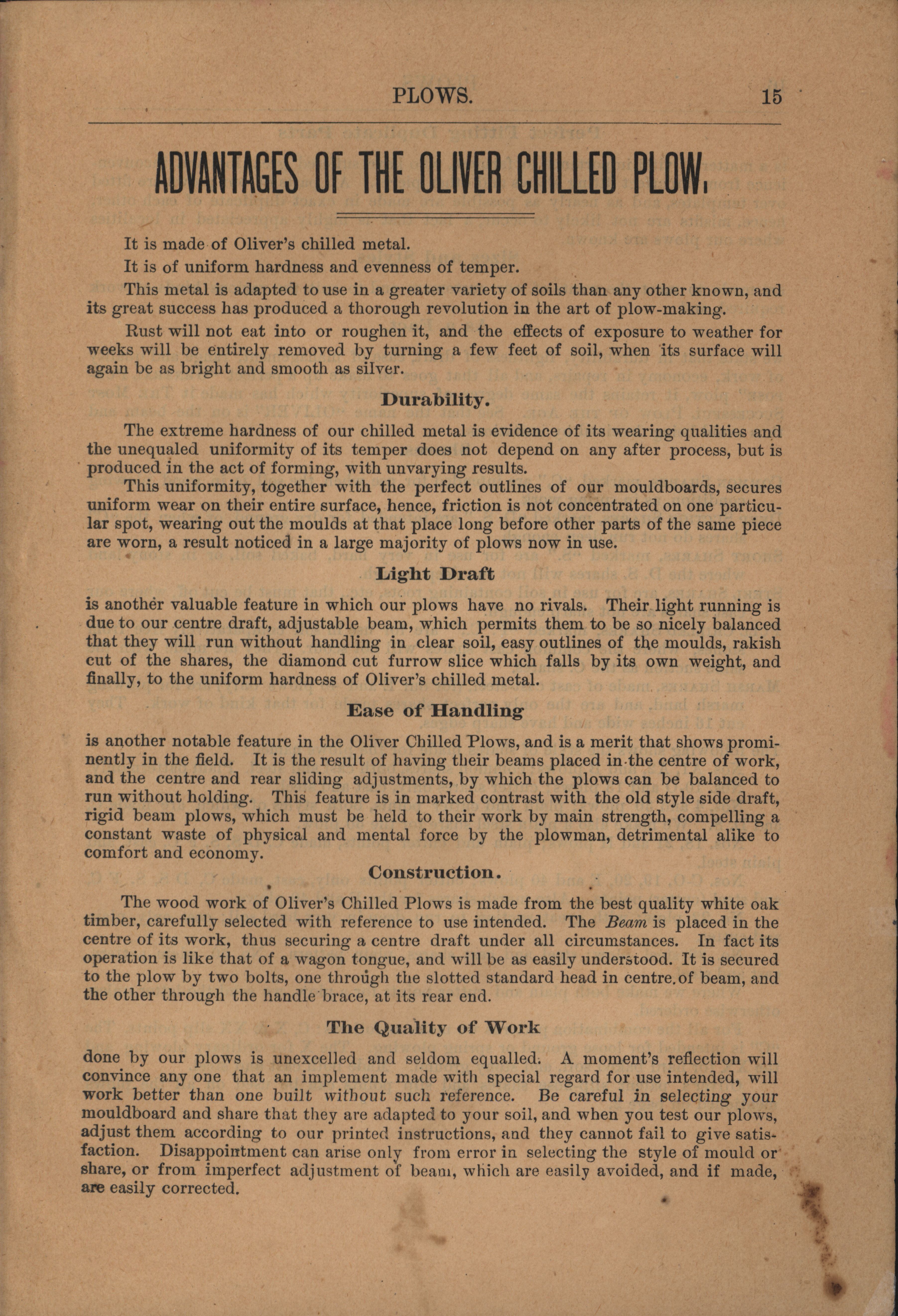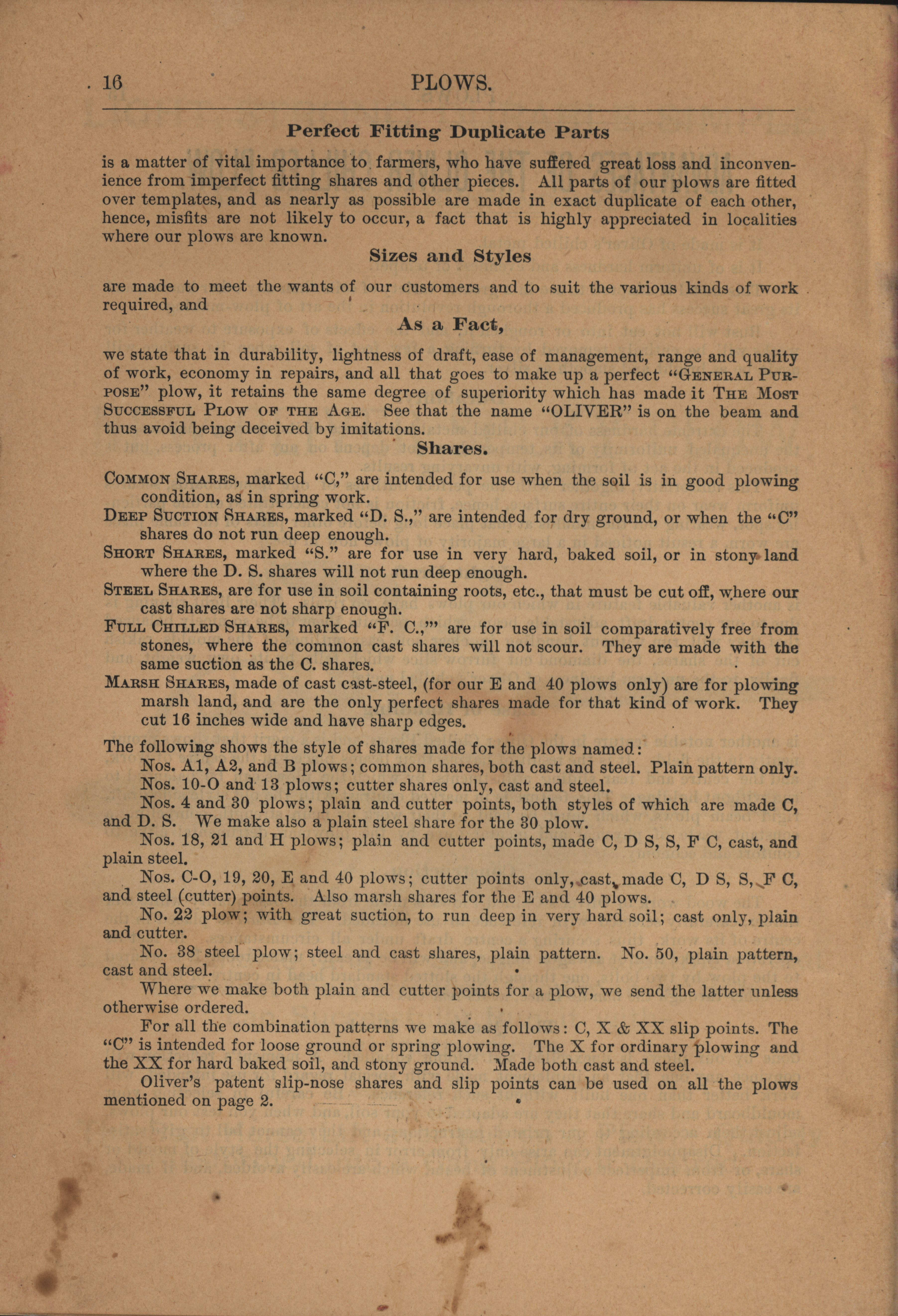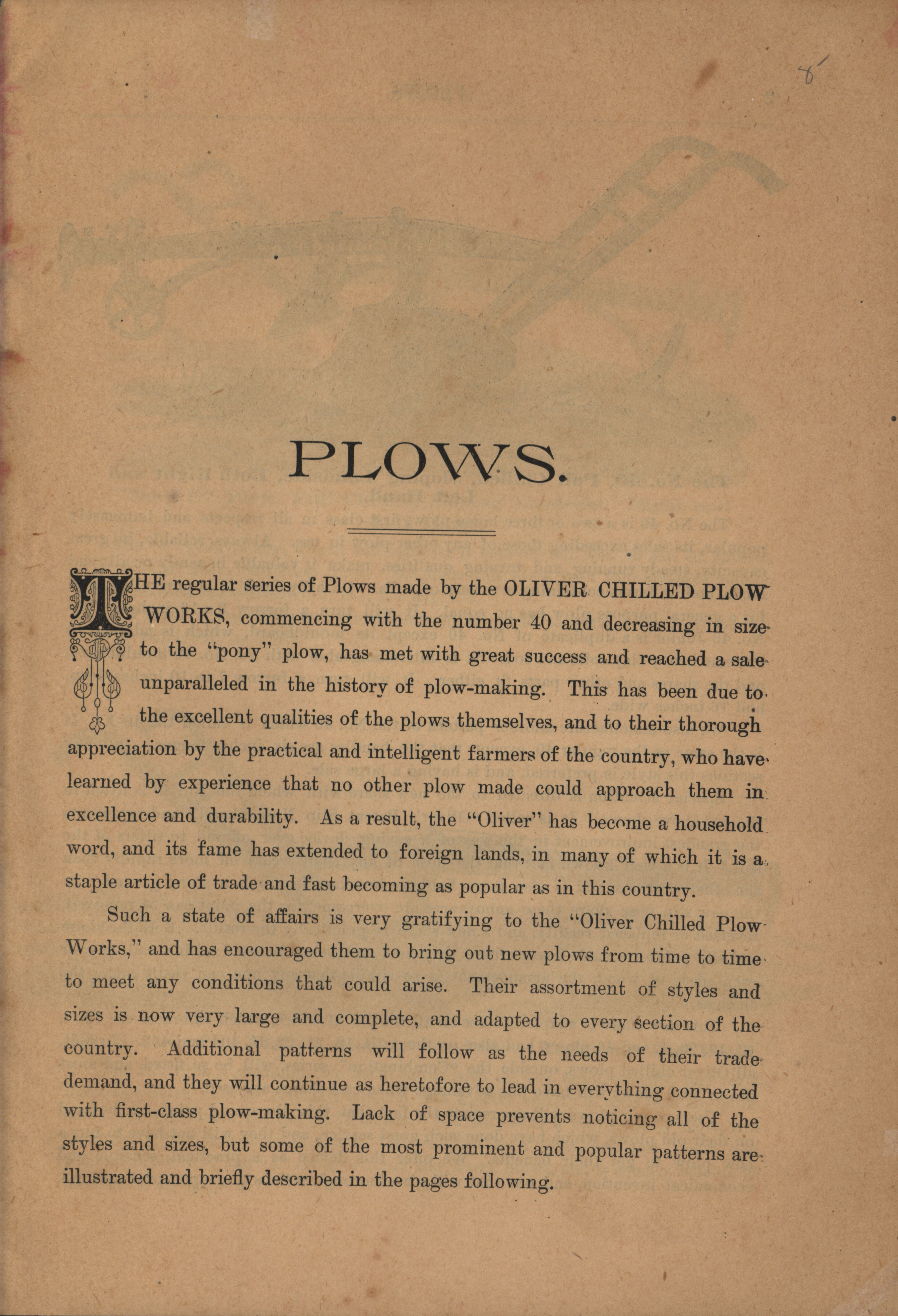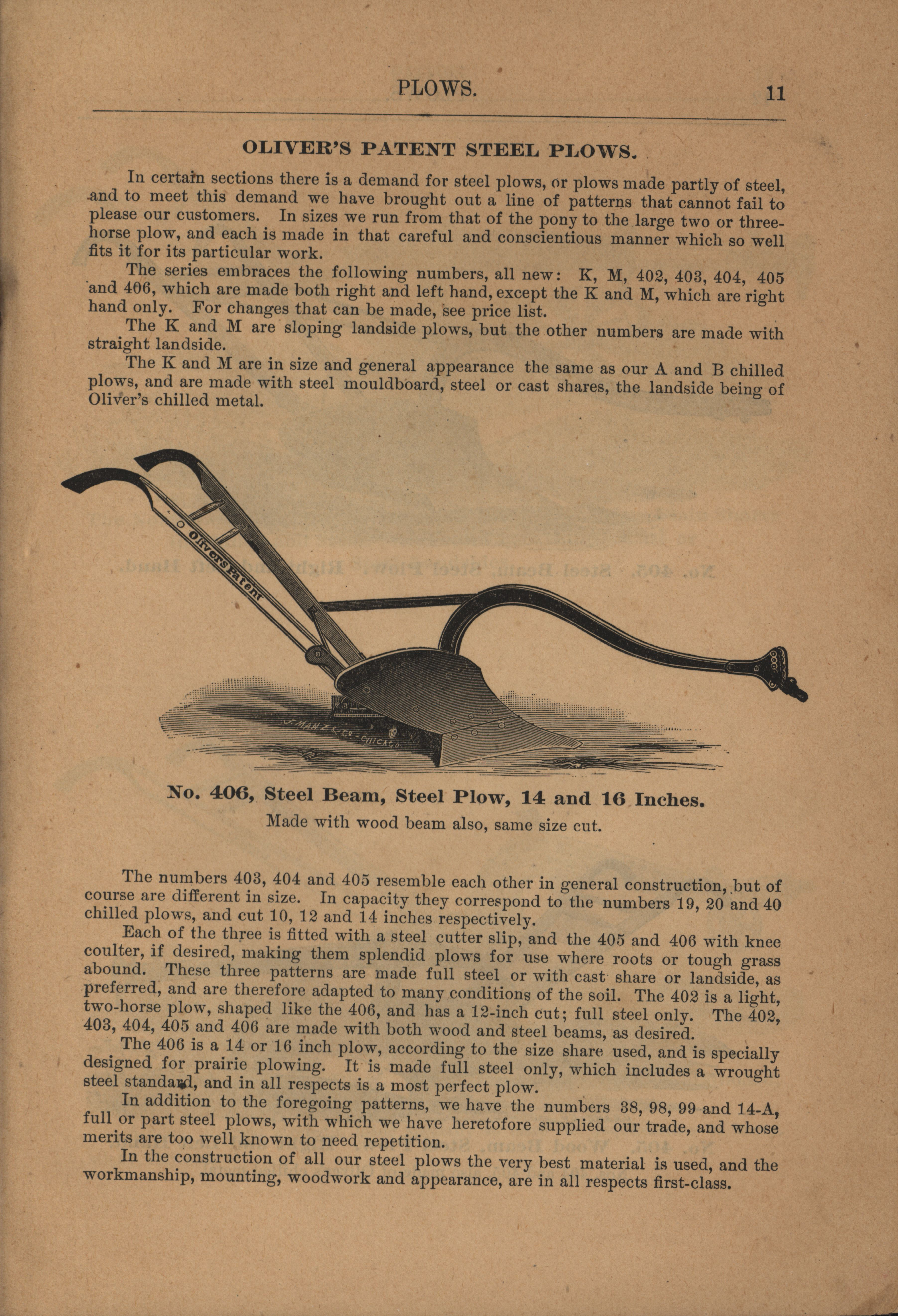 - "Illustrated catalog for Oliver Chilled Plow Works", Agricultural Machinery Literature Collection, Iowa State University Library Digital Collections