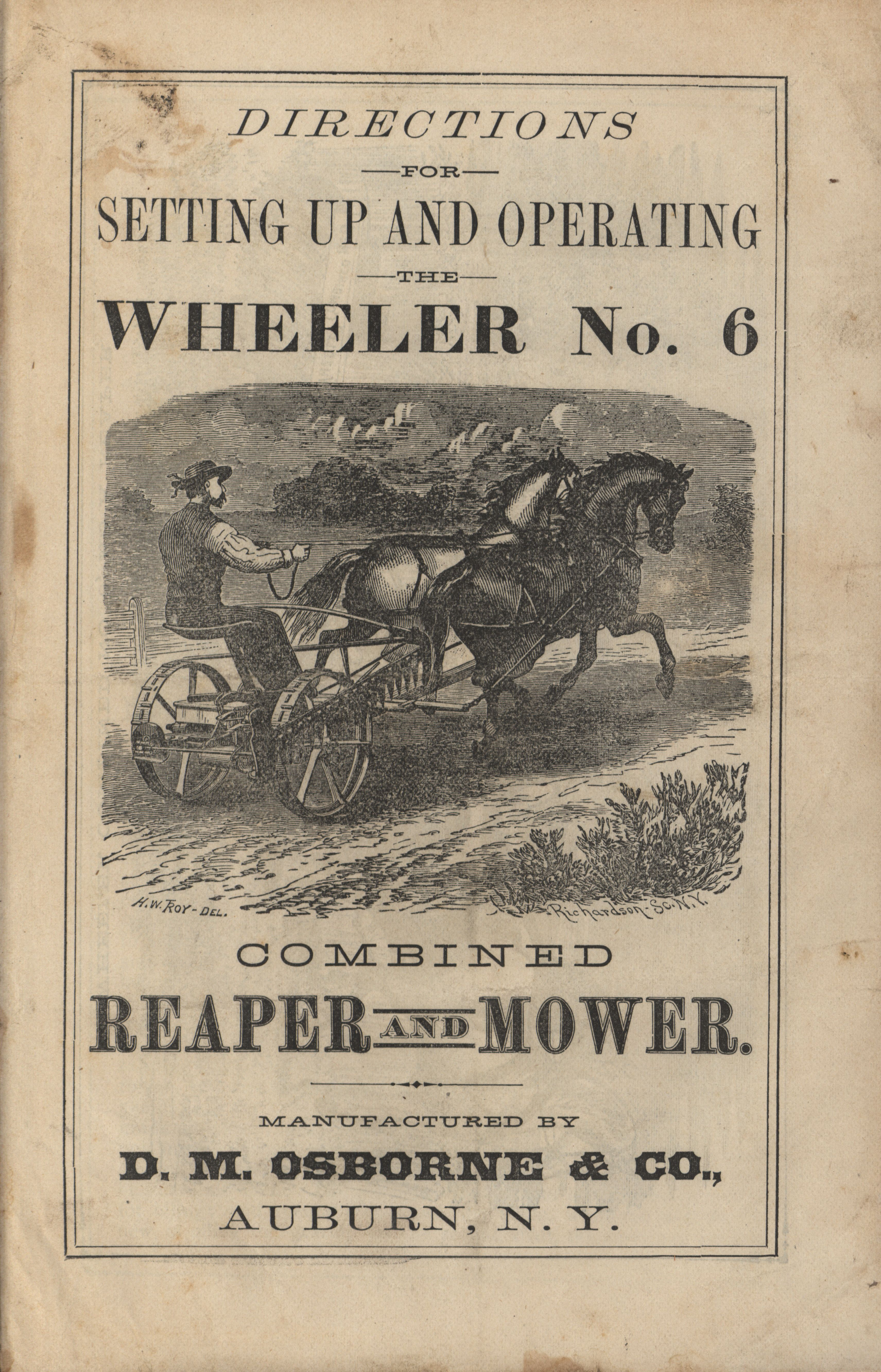 - Directions for setting up and operating the Wheeler No. 6 Combined Reaper and Mower, D.M. Osborne & Co.