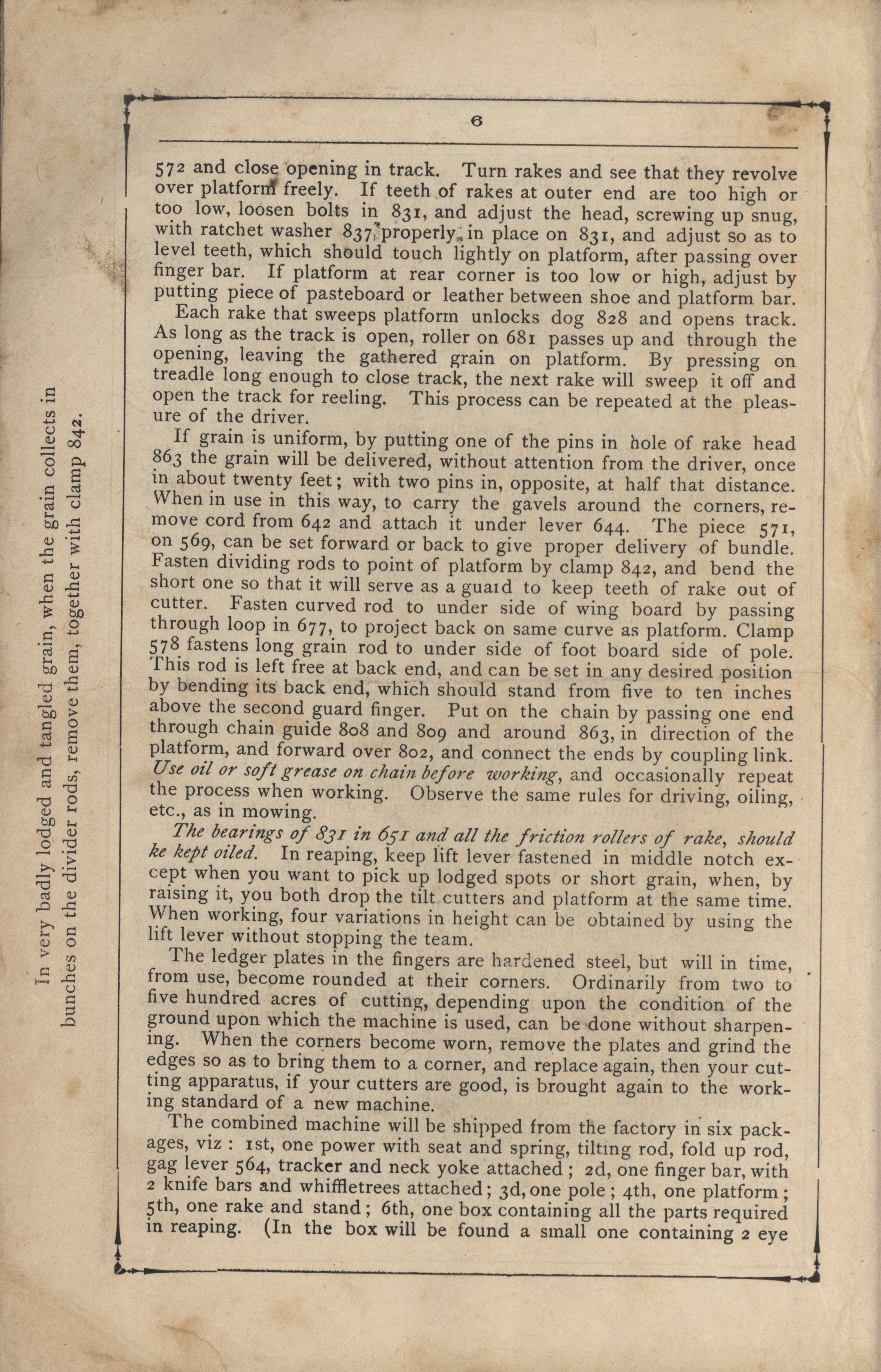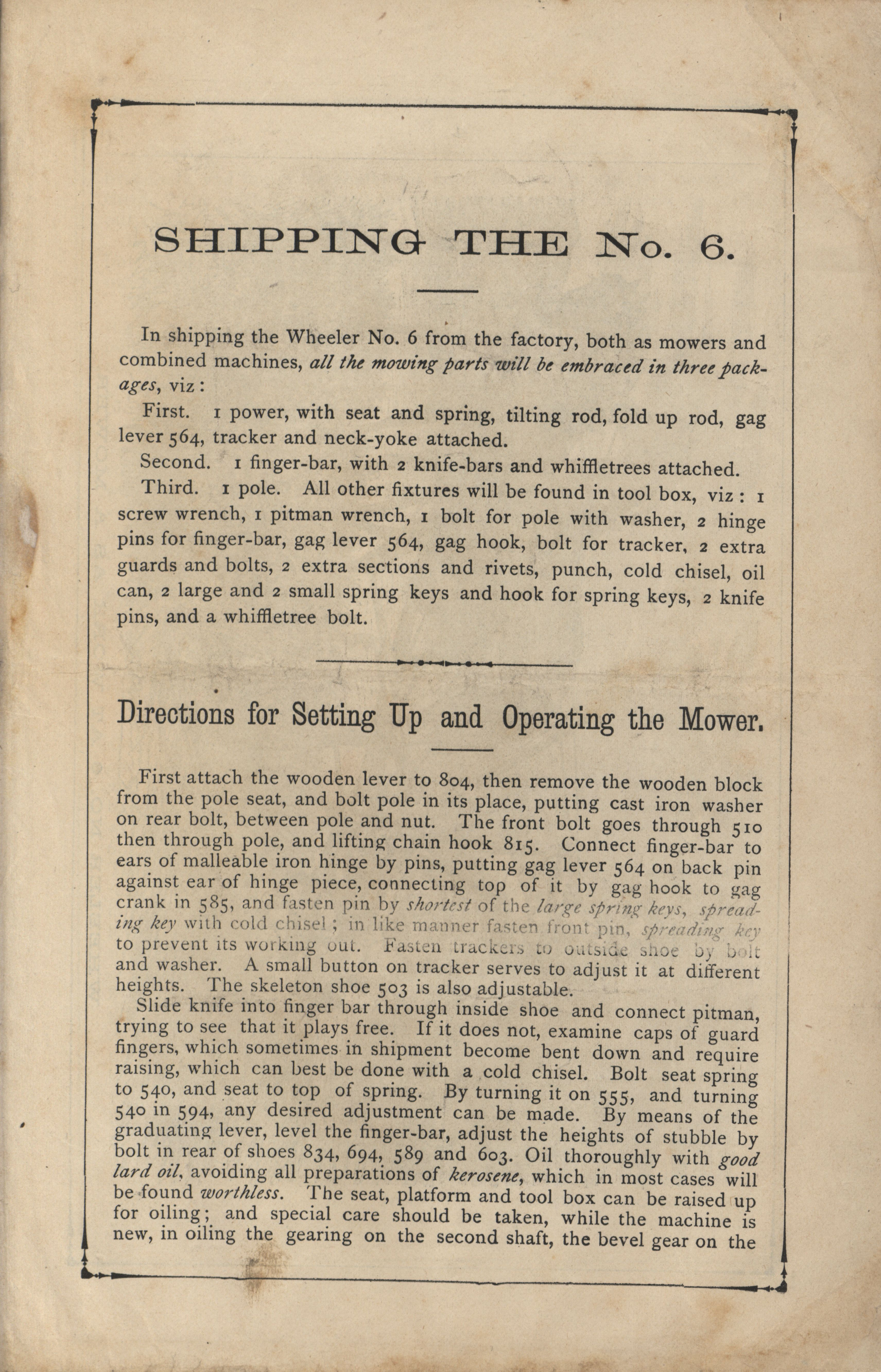 - Illustrated operation manual the Wheeler No. 6 Combined Reaper and Mower, manufactured by D.M. Osborne and Company.