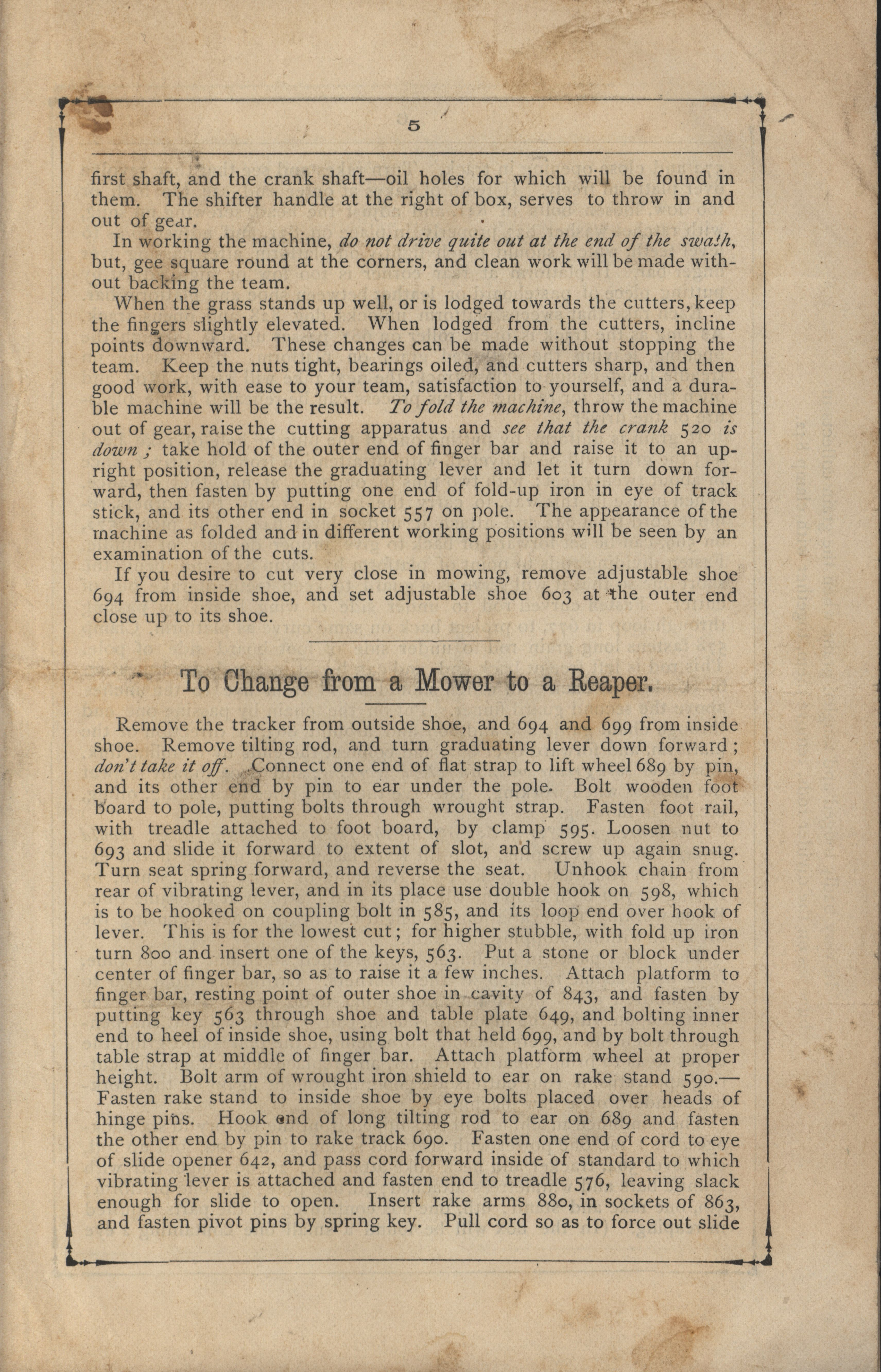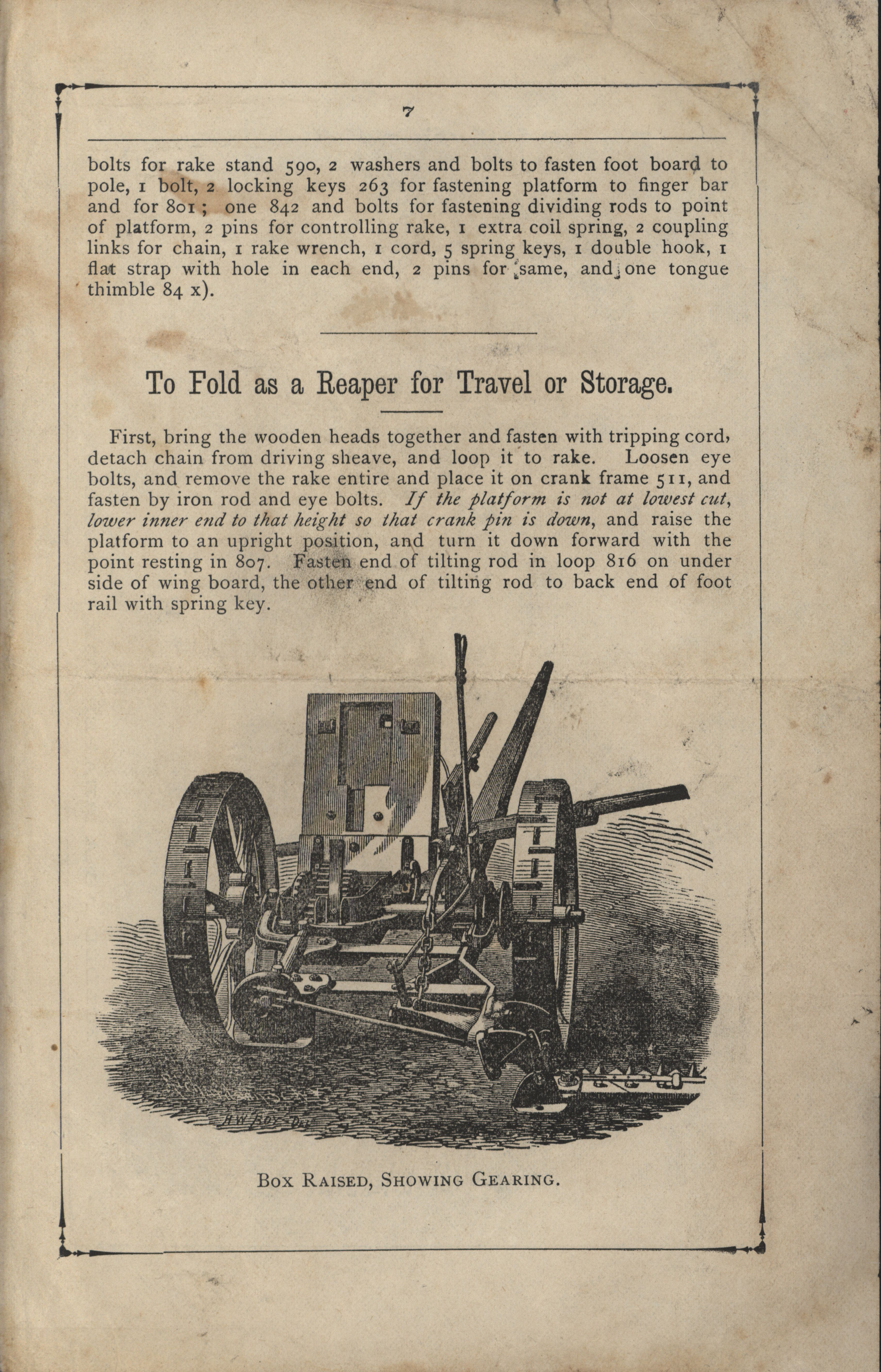 Directions for setting up and operating the Wheeler No. 6 Combined Reaper and Mower, D.M. Osborne & Co. Item Info
